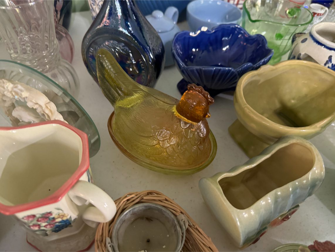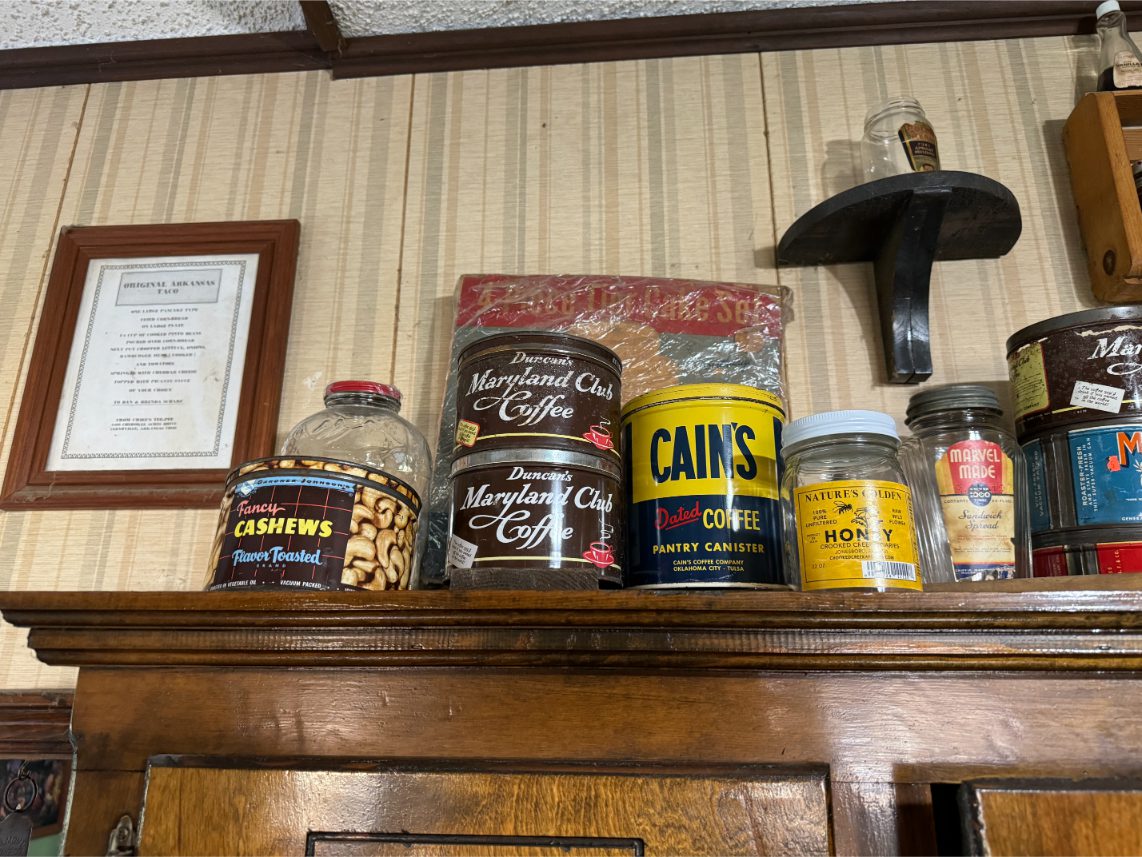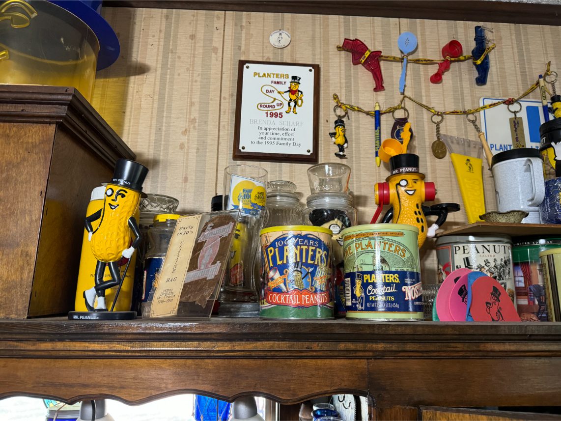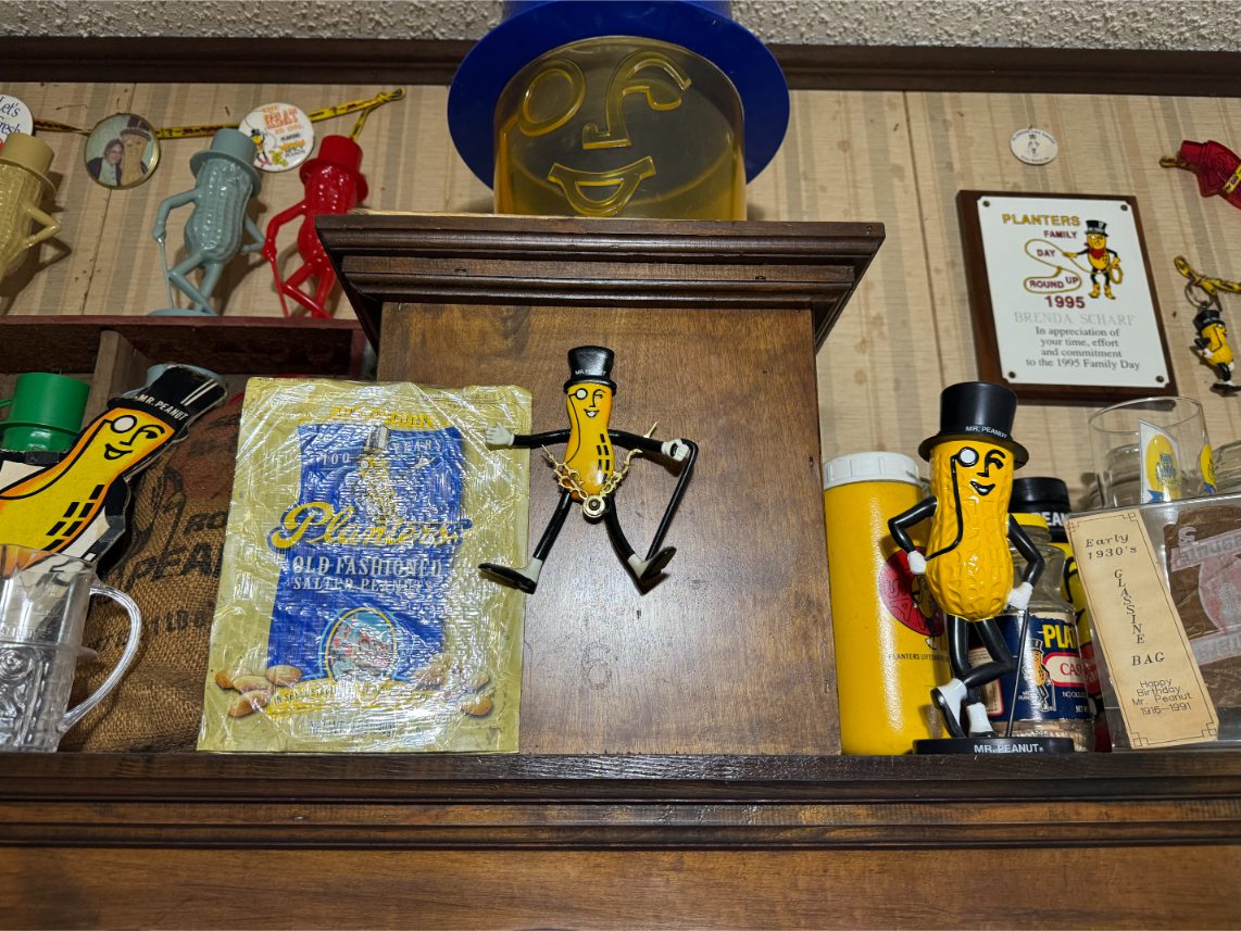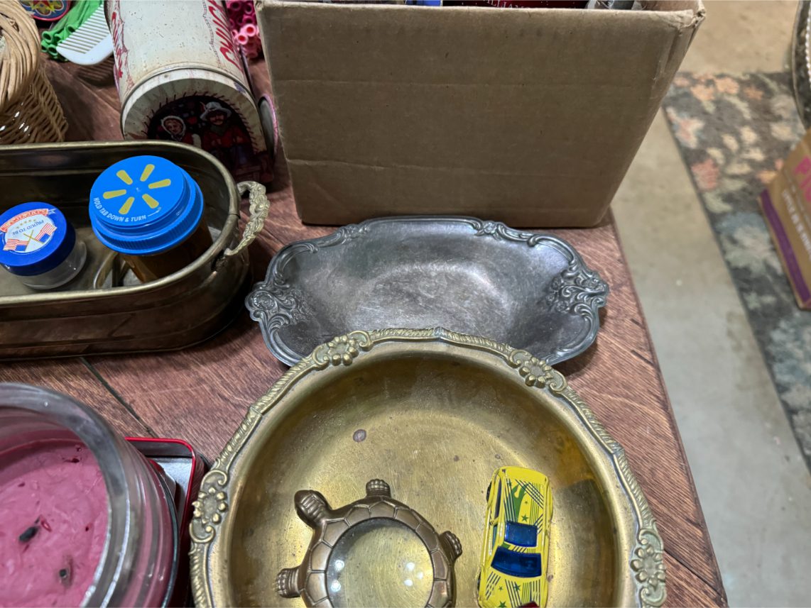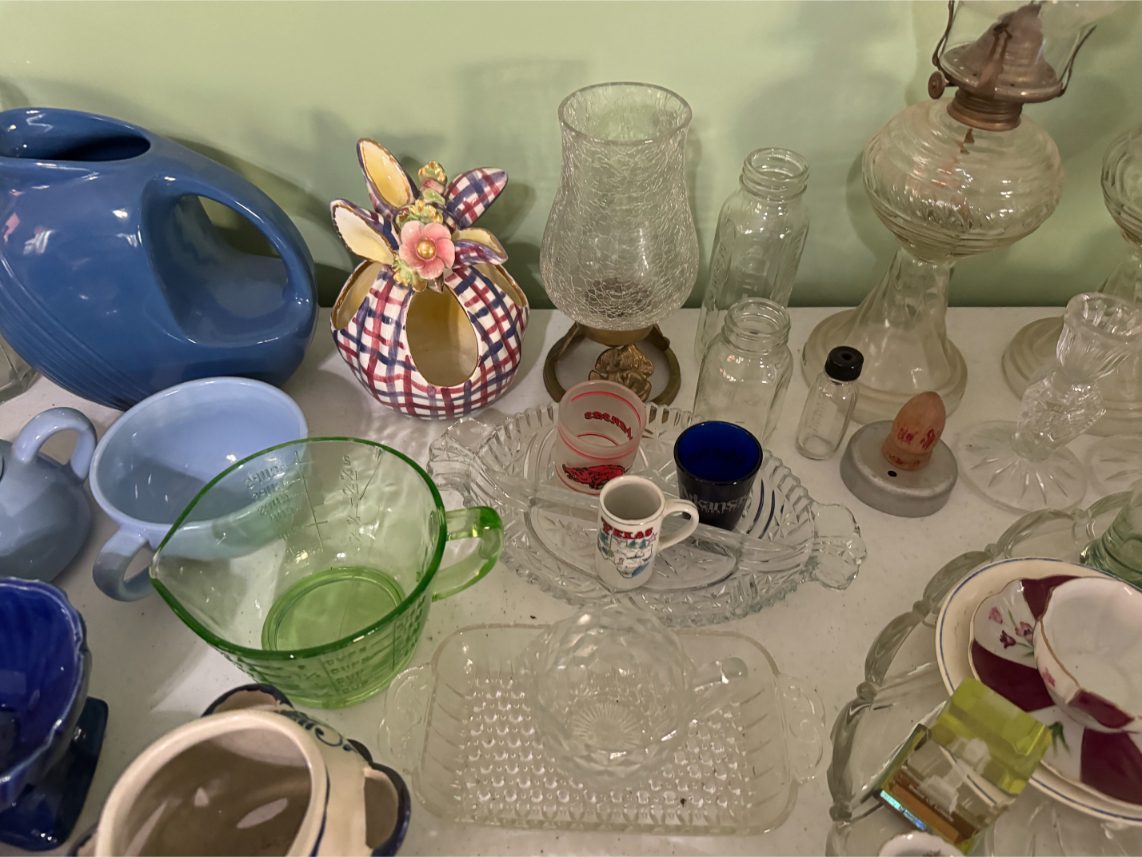 Antiques/Collectibles: Planters Peanuts – Tins – Coca-Cola Advertising – Arbuckles Coffee Sign – Rub Boards – Jars – Glass Bottles – Enamel – Coffee Cans – Peanut Jars – Radios – Planters Peanuts Salt/Pepper Shakers – Glass Rolling Pins – Hen on Nest – Kerosine Lamps – Fire Extinguisher – Typewriter Trays – Snuff Jars – Cigar Boxes – Quilts – Cast Iron Bell – Galvanized Tubs