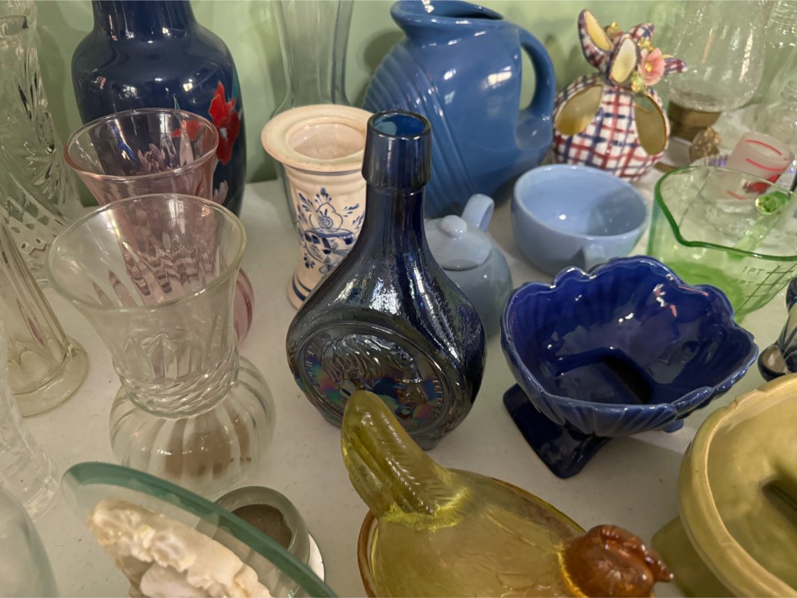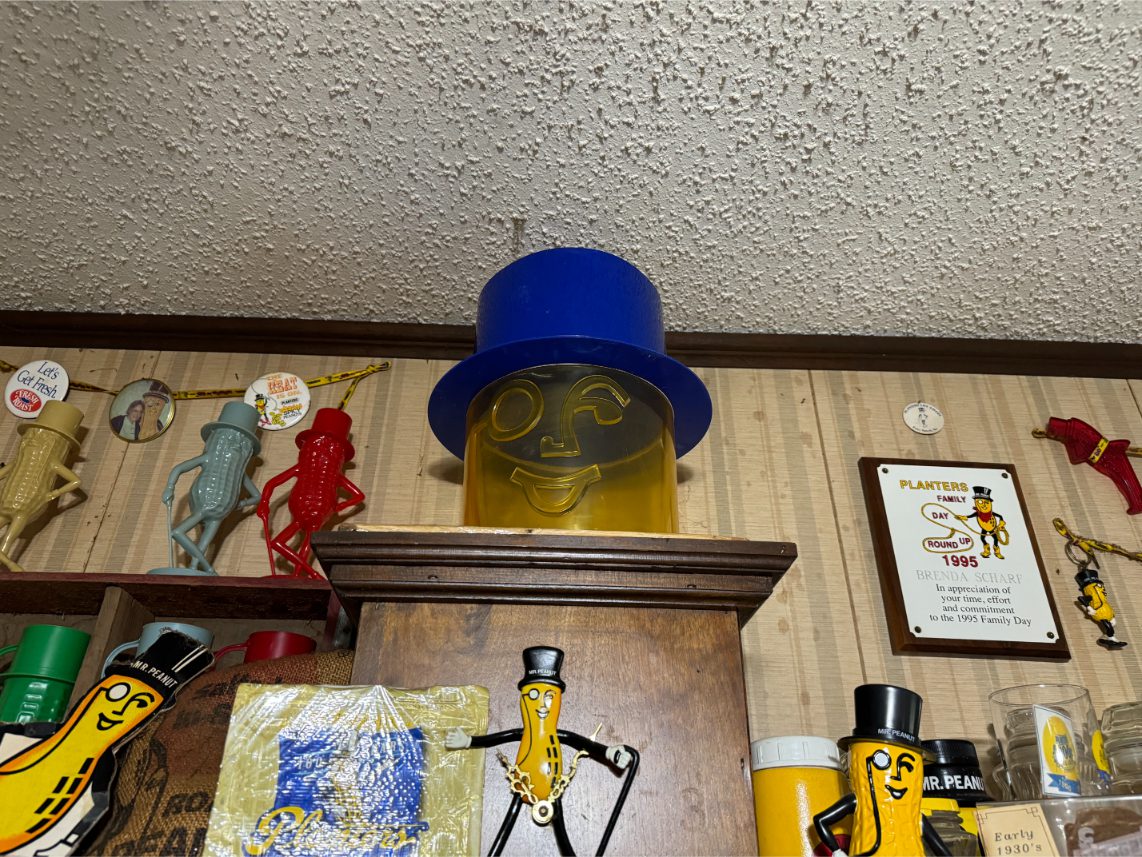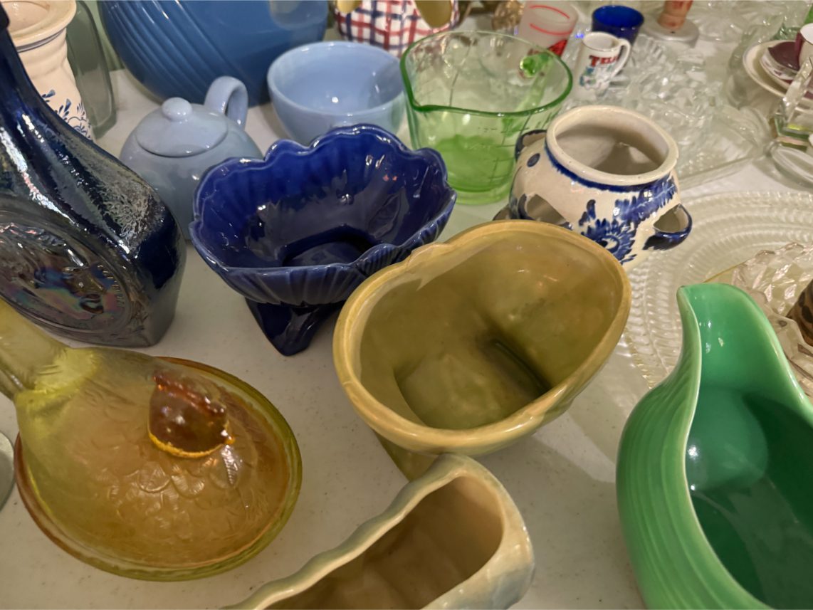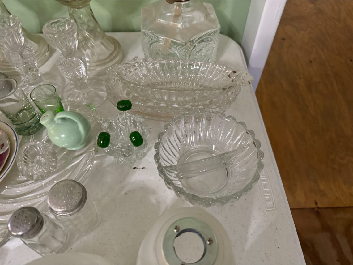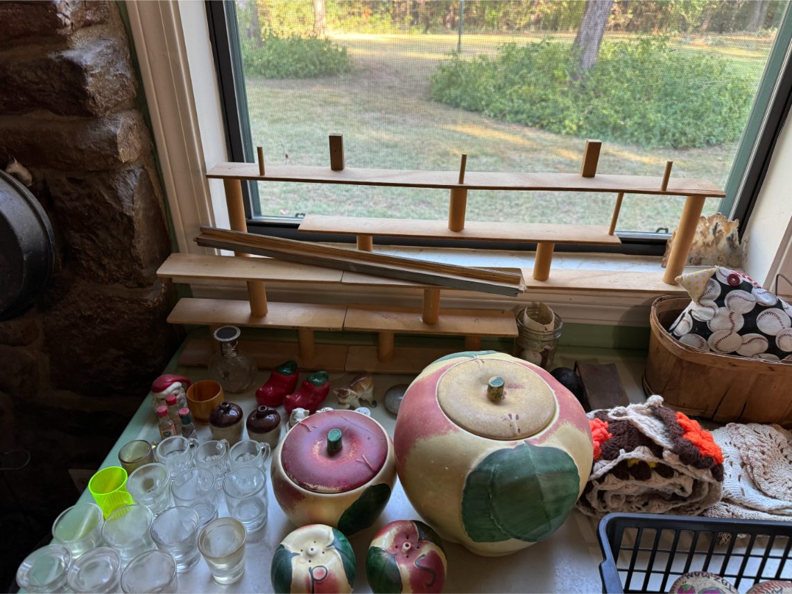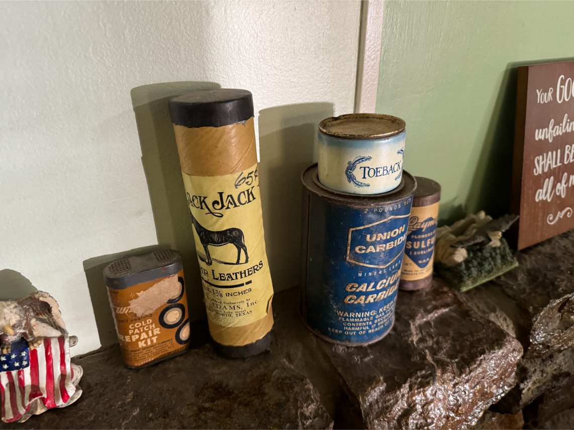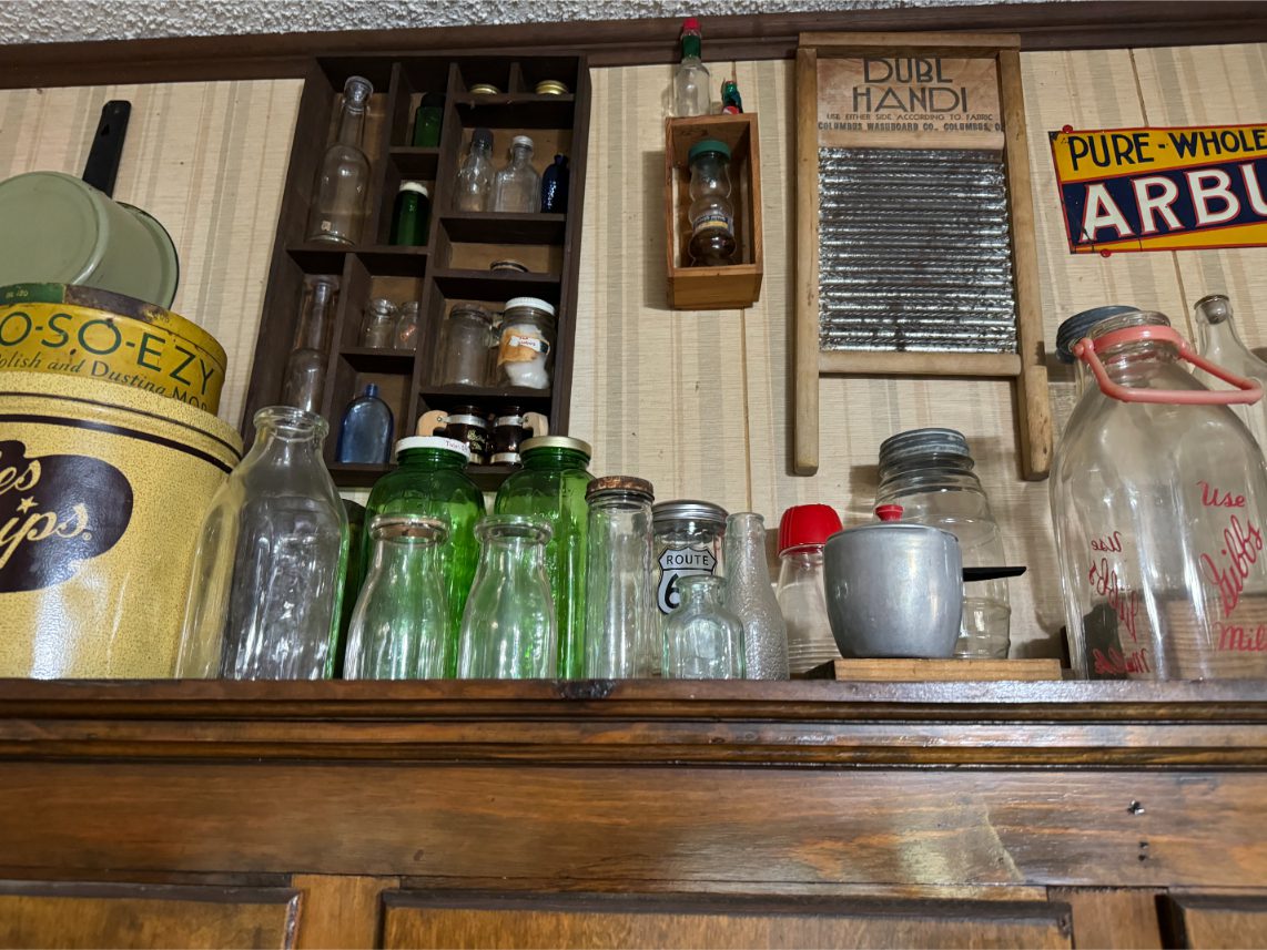 Antiques/Collectibles: Planters Peanuts – Tins – Coca-Cola Advertising – Arbuckles Coffee Sign – Rub Boards – Jars – Glass Bottles – Enamel – Coffee Cans – Peanut Jars – Radios – Planters Peanuts Salt/Pepper Shakers – Glass Rolling Pins – Hen on Nest – Kerosine Lamps – Fire Extinguisher – Typewriter Trays – Snuff Jars – Cigar Boxes – Quilts – Cast Iron Bell – Galvanized Tubs