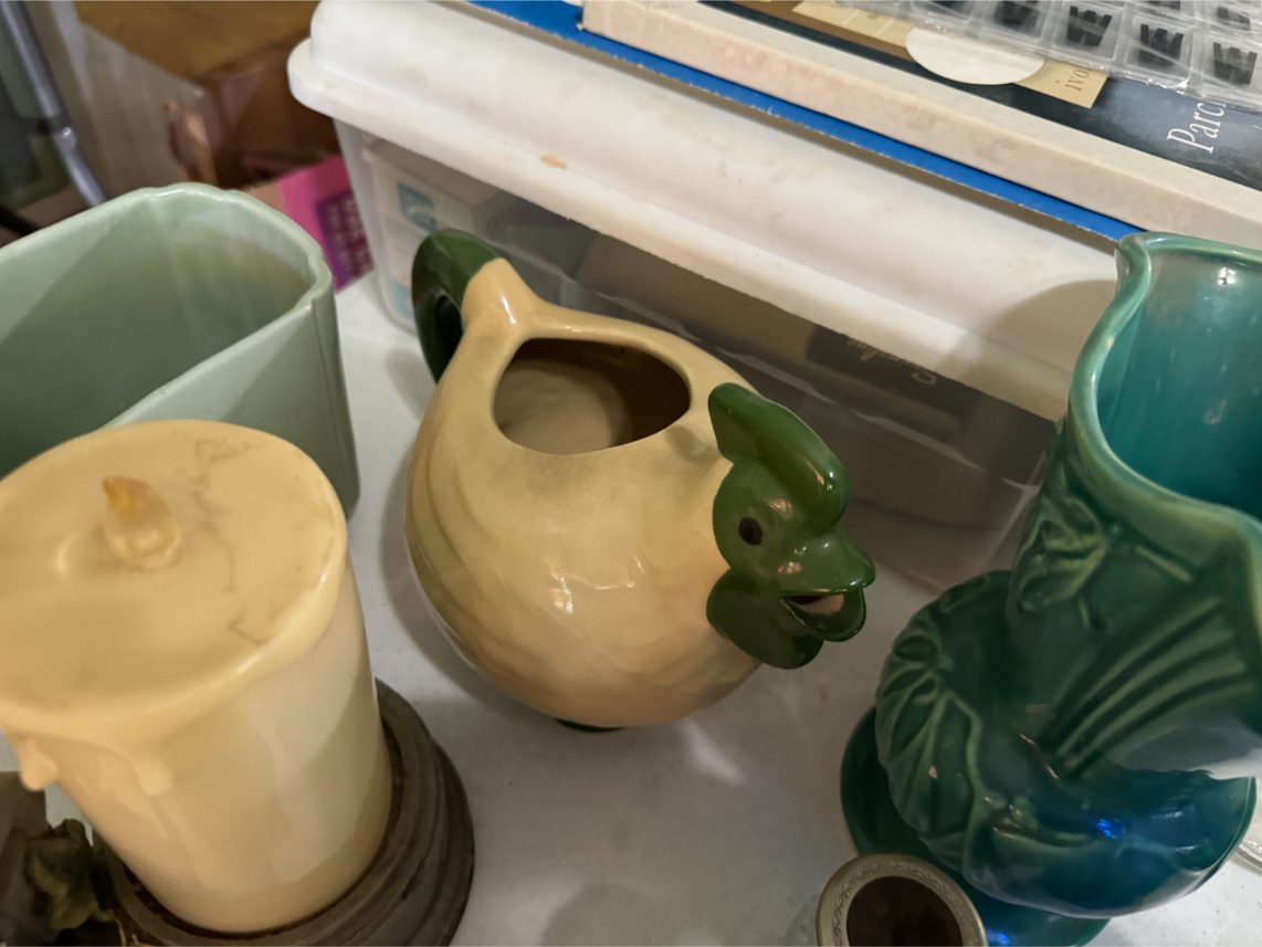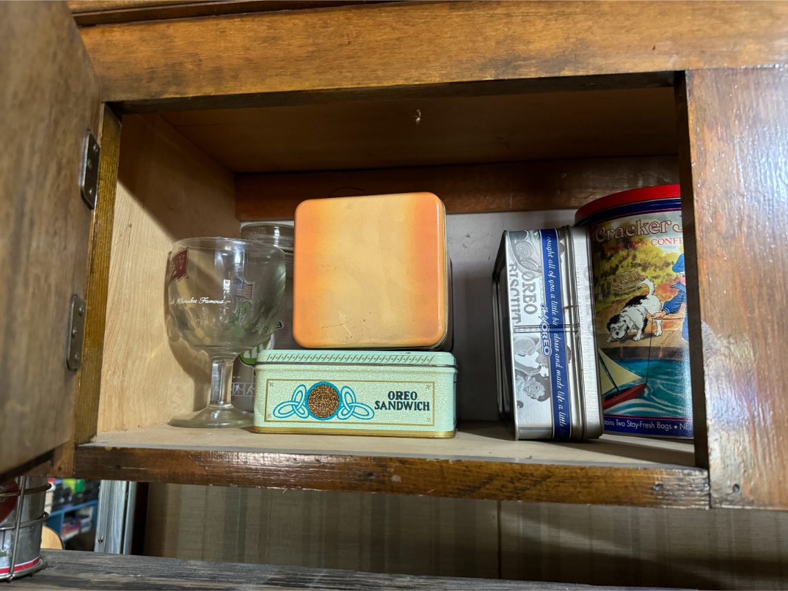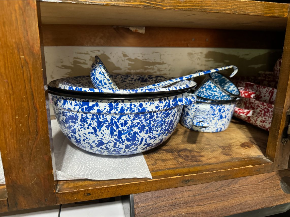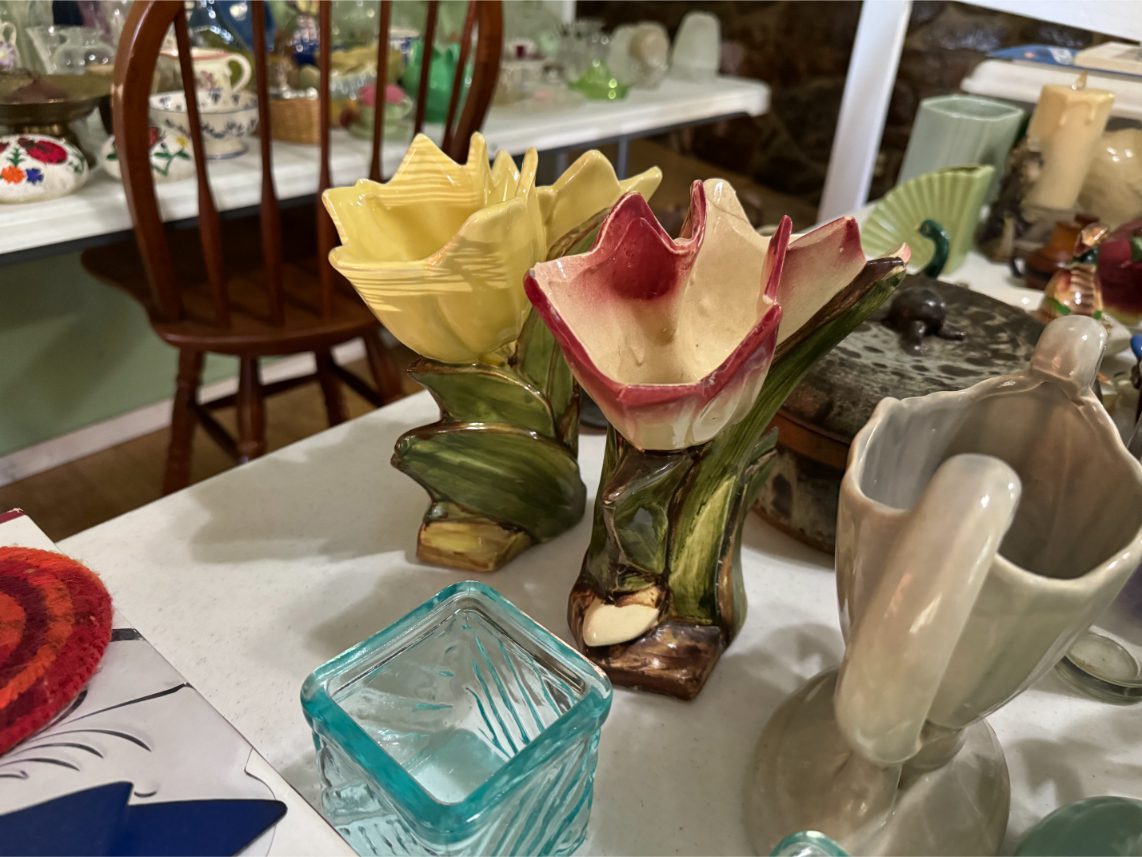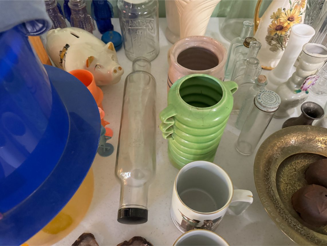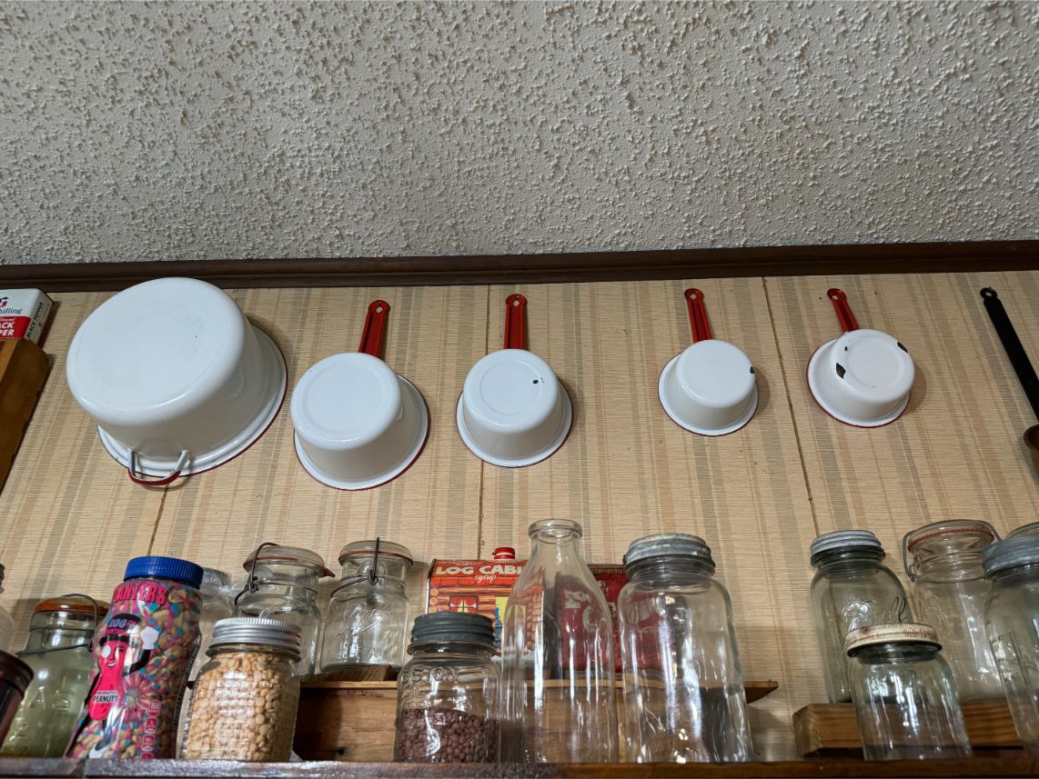 Antiques/Collectibles: Planters Peanuts – Tins – Coca-Cola Advertising – Arbuckles Coffee Sign – Rub Boards – Jars – Glass Bottles – Enamel – Coffee Cans – Peanut Jars – Radios – Planters Peanuts Salt/Pepper Shakers – Glass Rolling Pins – Hen on Nest – Kerosine Lamps – Fire Extinguisher – Typewriter Trays – Snuff Jars – Cigar Boxes – Quilts – Cast Iron Bell – Galvanized Tubs