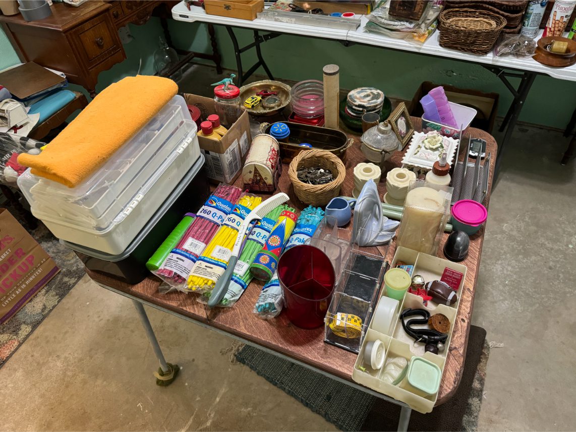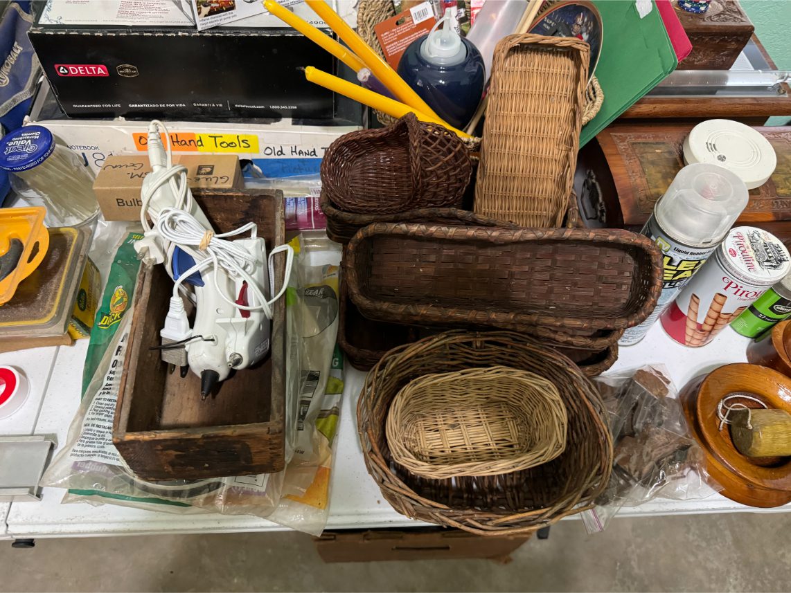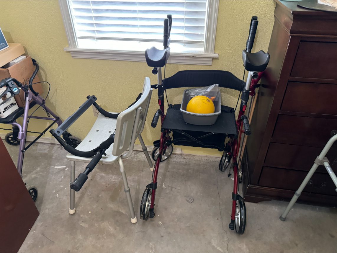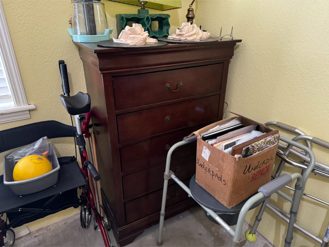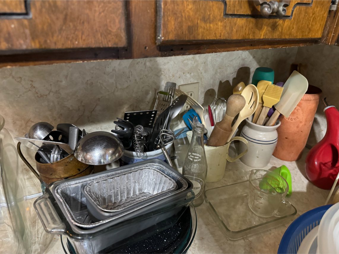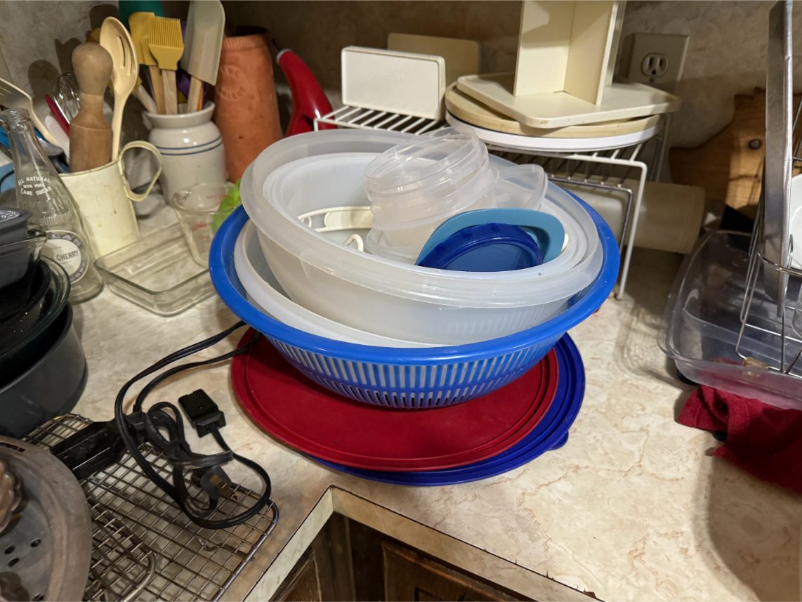Household Items: Microwave – Kitchen Utensils – Kitchen Appliances – Pots/Pans – Bread Maker – Pitchers – Bowls – Tupperware – Glassware – VHS Tapes – Books – Pictures – Paintings – Sony Stereo – Vases – Clear Glass – Jewelry – Samsung TV – Whirlpool Washer – Whirlpool Dryer – Linens – Sewing Supplies – Record Player – Filing Cabinet – Medical Equipment – Playstation 2 and Games – Baskets – Mirrors – Electric Wheelchair