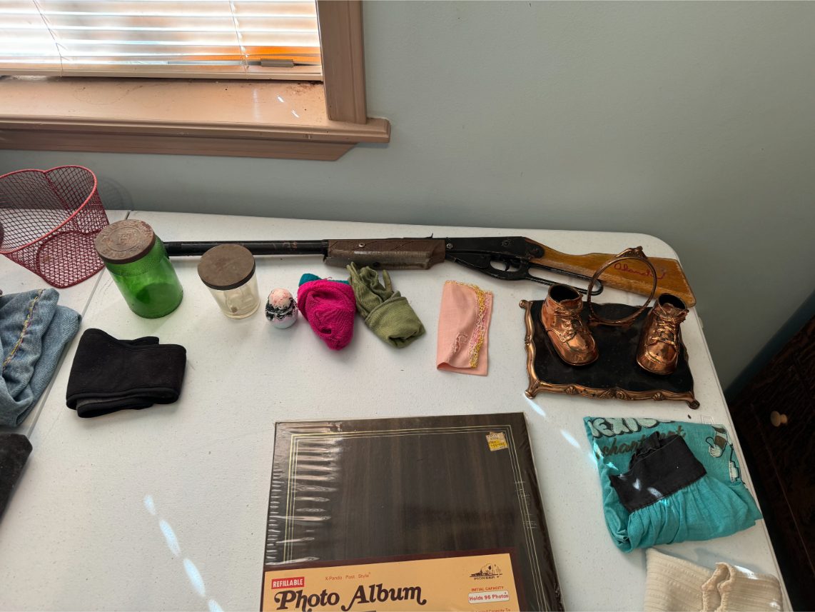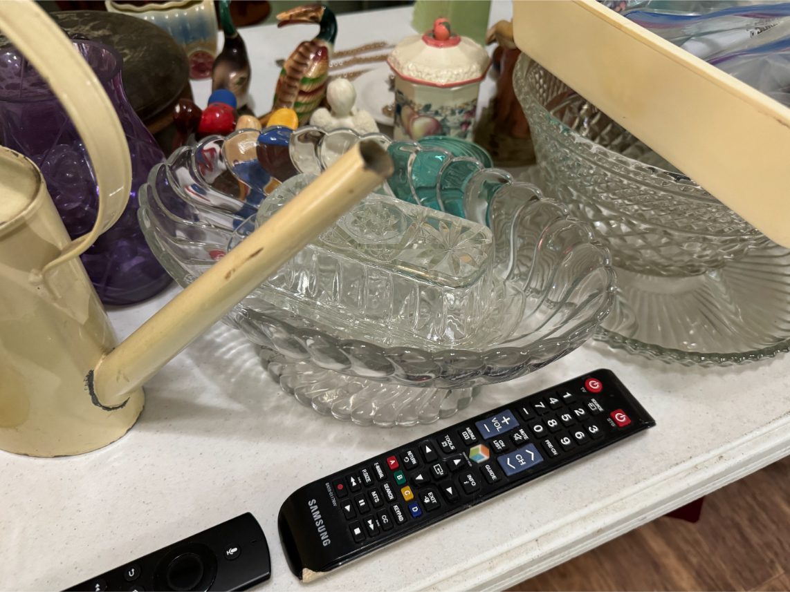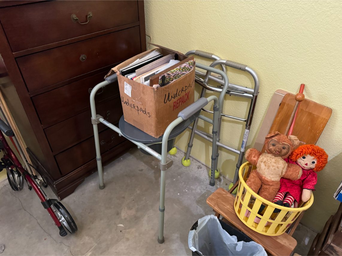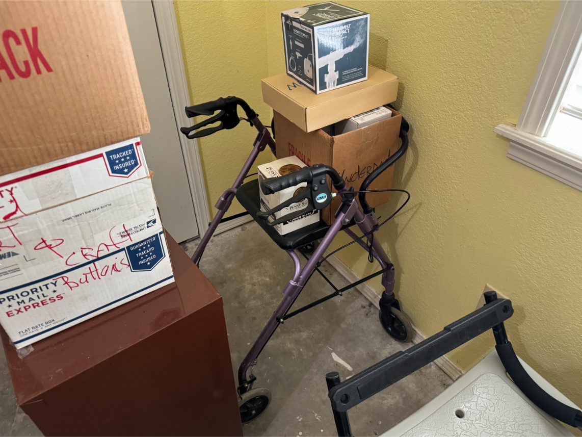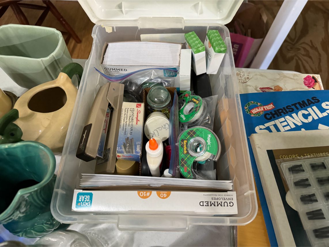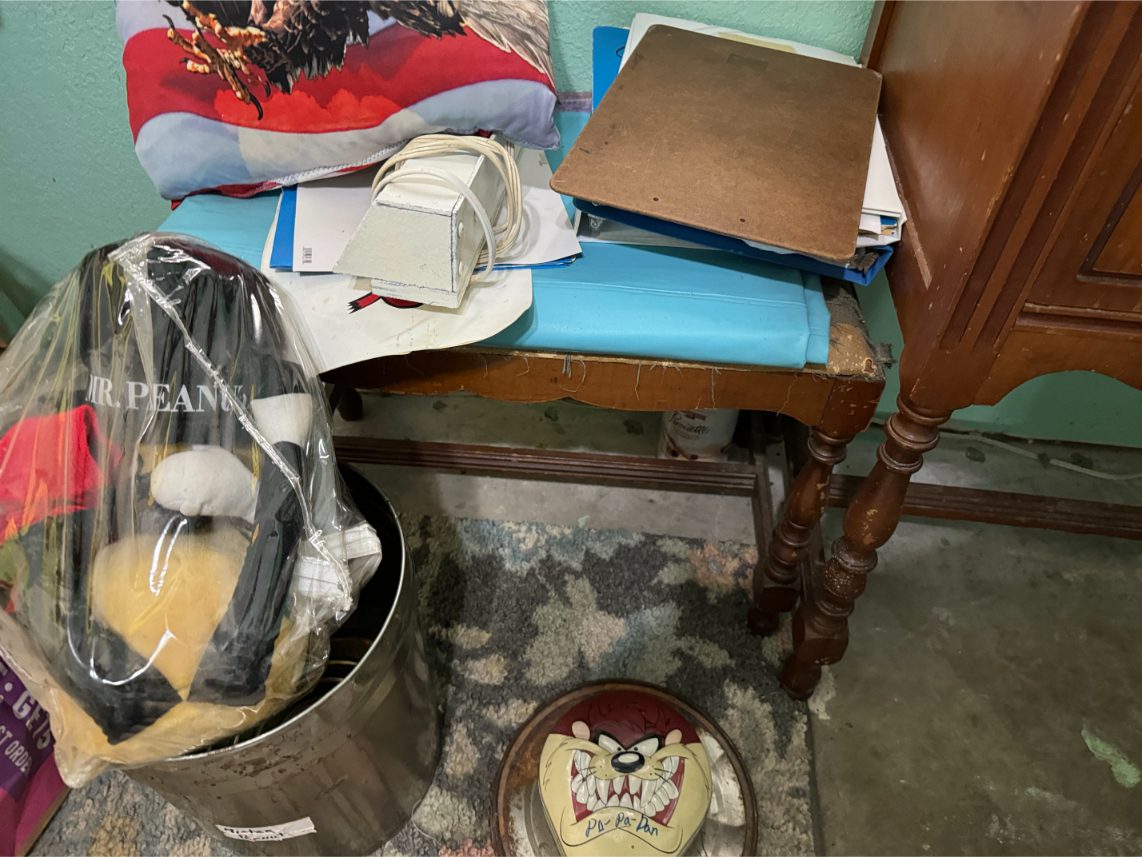 Household Items: Microwave – Kitchen Utensils – Kitchen Appliances – Pots/Pans – Bread Maker – Pitchers – Bowls – Tupperware – Glassware – VHS Tapes – Books – Pictures – Paintings – Sony Stereo – Vases – Clear Glass – Jewelry – Samsung TV – Whirlpool Washer – Whirlpool Dryer – Linens – Sewing Supplies – Record Player – Filing Cabinet – Medical Equipment – Playstation 2 and Games – Baskets – Mirrors – Electric Wheelchair