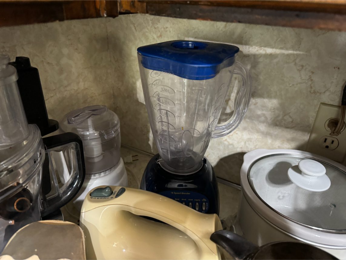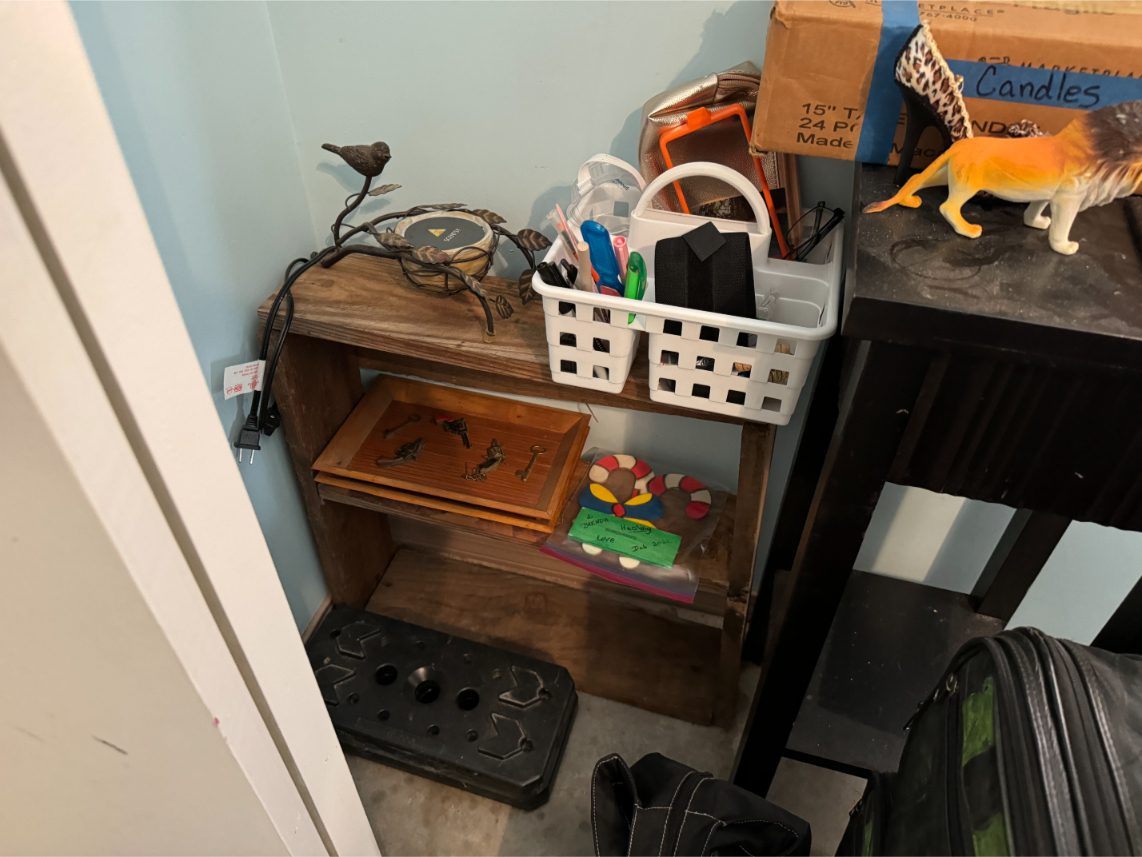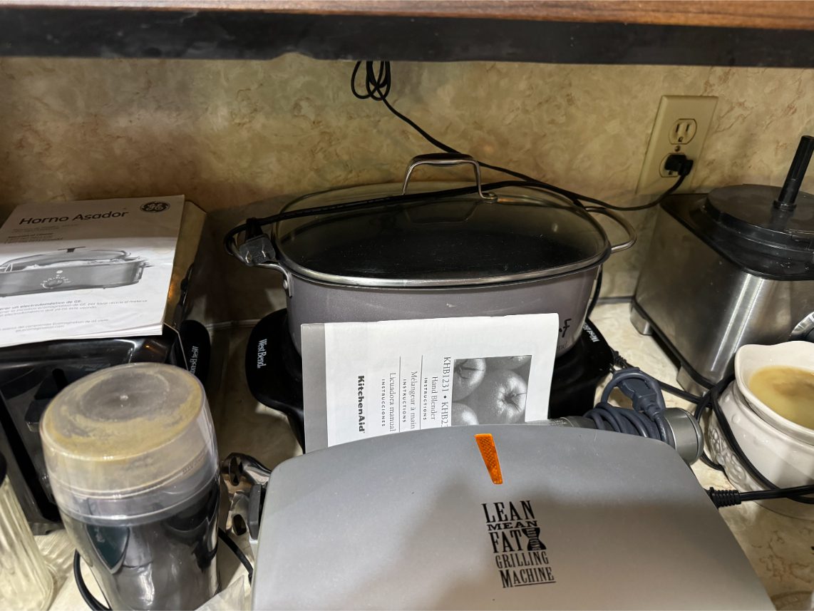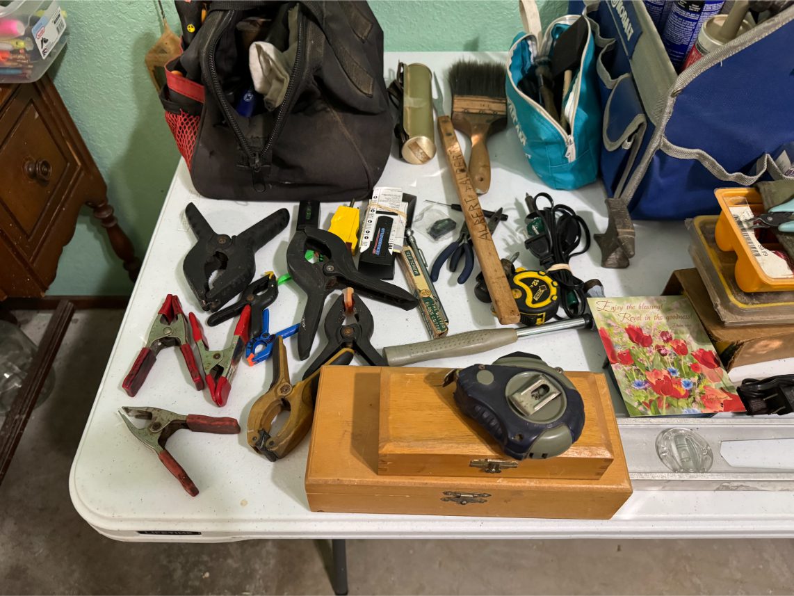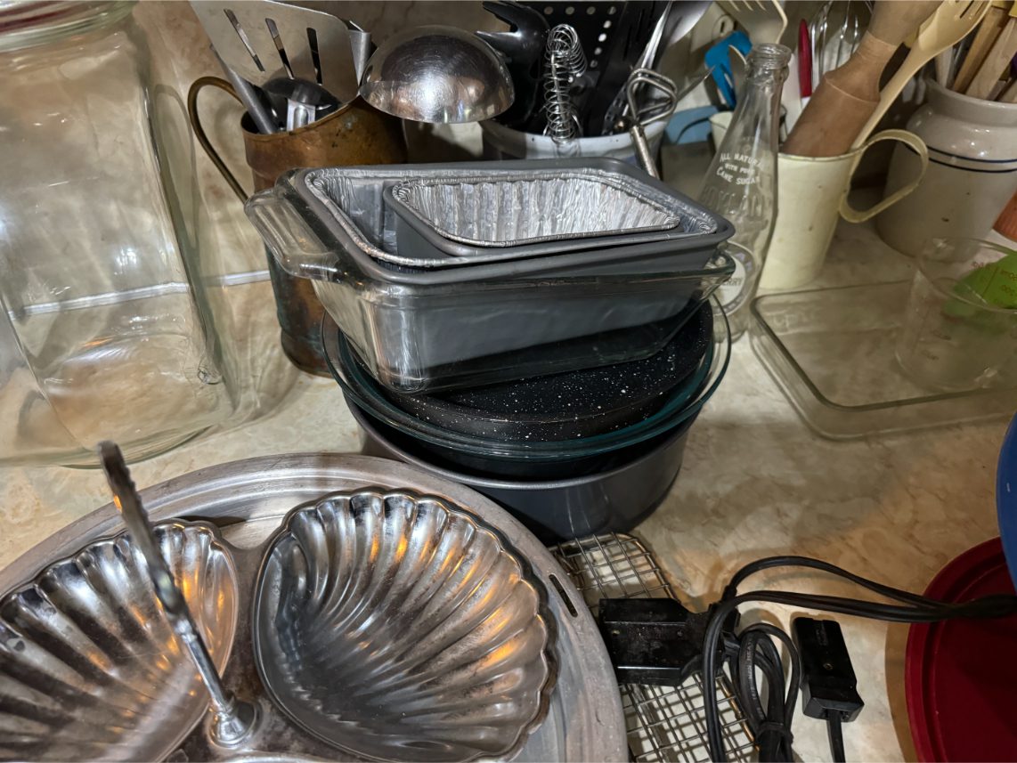 Household Items: Microwave – Kitchen Utensils – Kitchen Appliances – Pots/Pans – Bread Maker – Pitchers – Bowls – Tupperware – Glassware – VHS Tapes – Books – Pictures – Paintings – Sony Stereo – Vases – Clear Glass – Jewelry – Samsung TV – Whirlpool Washer – Whirlpool Dryer – Linens – Sewing Supplies – Record Player – Filing Cabinet – Medical Equipment – Playstation 2 and Games – Baskets – Mirrors – Electric Wheelchair