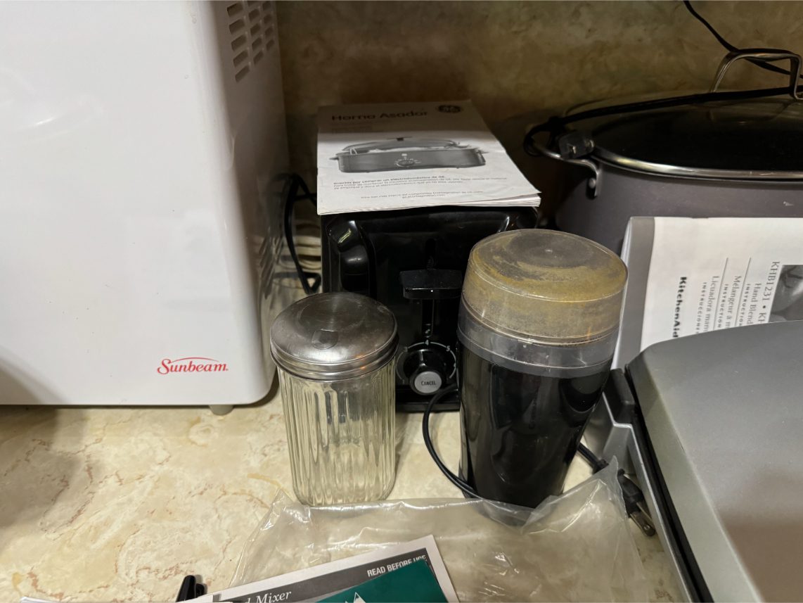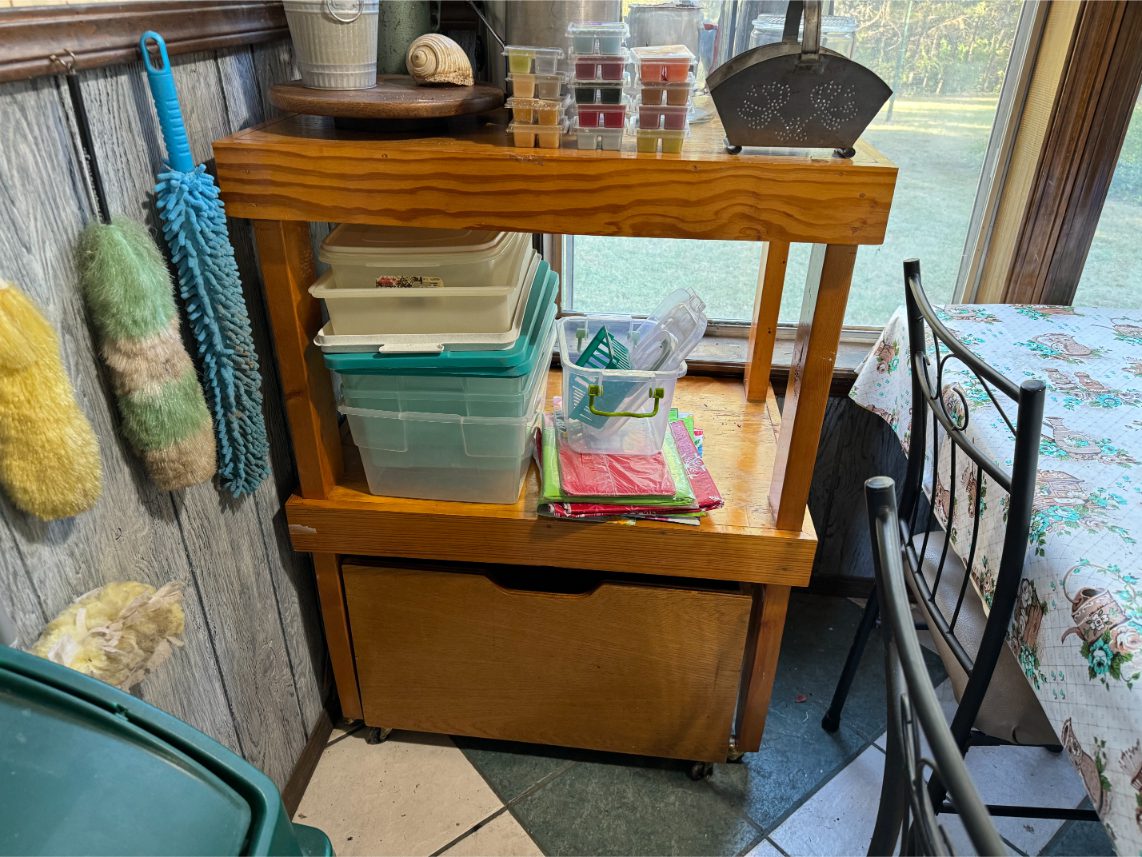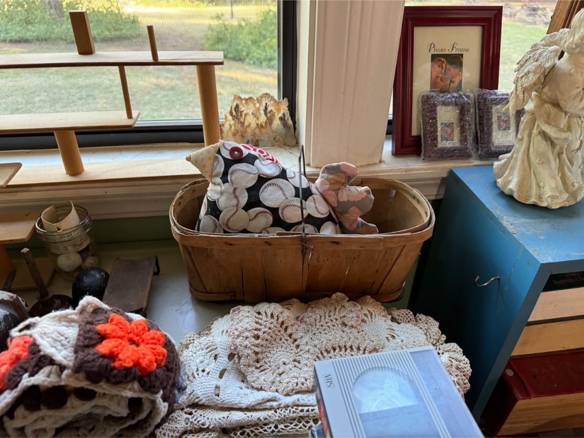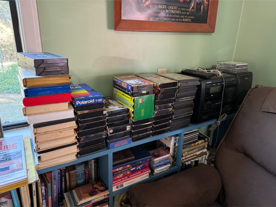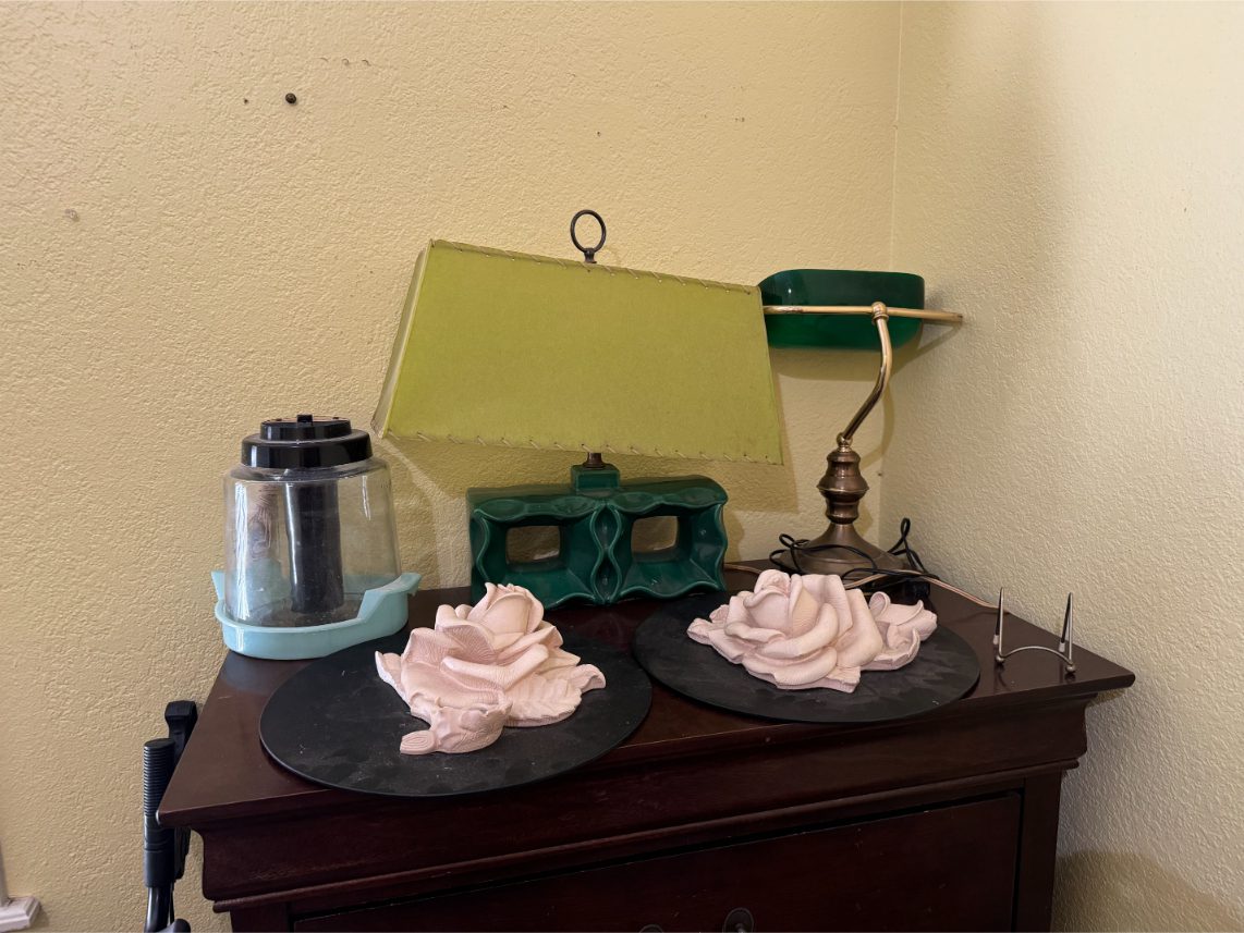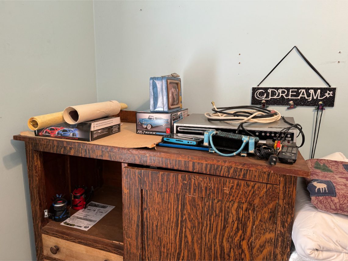 Household Items: Microwave – Kitchen Utensils – Kitchen Appliances – Pots/Pans – Bread Maker – Pitchers – Bowls – Tupperware – Glassware – VHS Tapes – Books – Pictures – Paintings – Sony Stereo – Vases – Clear Glass – Jewelry – Samsung TV – Whirlpool Washer – Whirlpool Dryer – Linens – Sewing Supplies – Record Player – Filing Cabinet – Medical Equipment – Playstation 2 and Games – Baskets – Mirrors – Electric Wheelchair