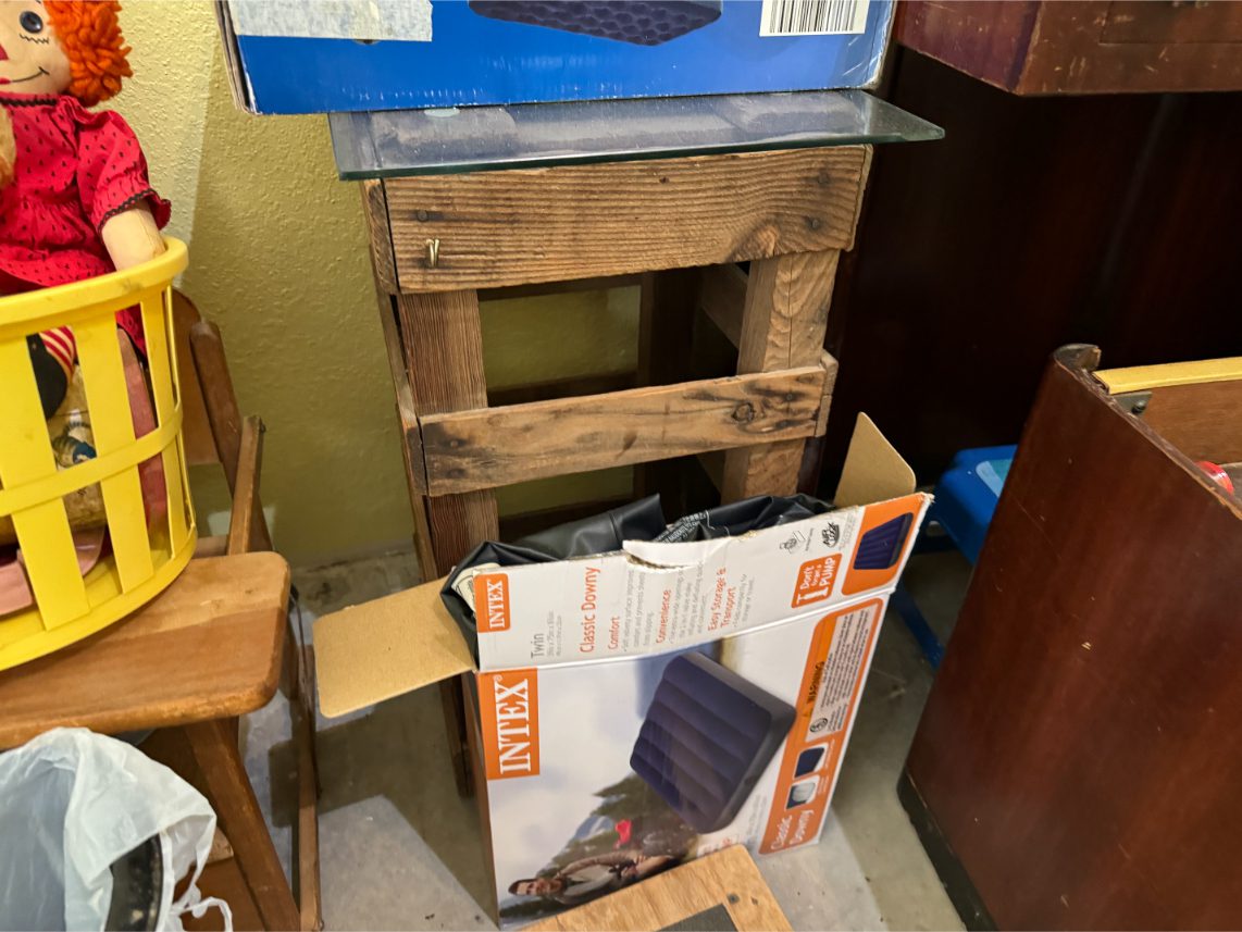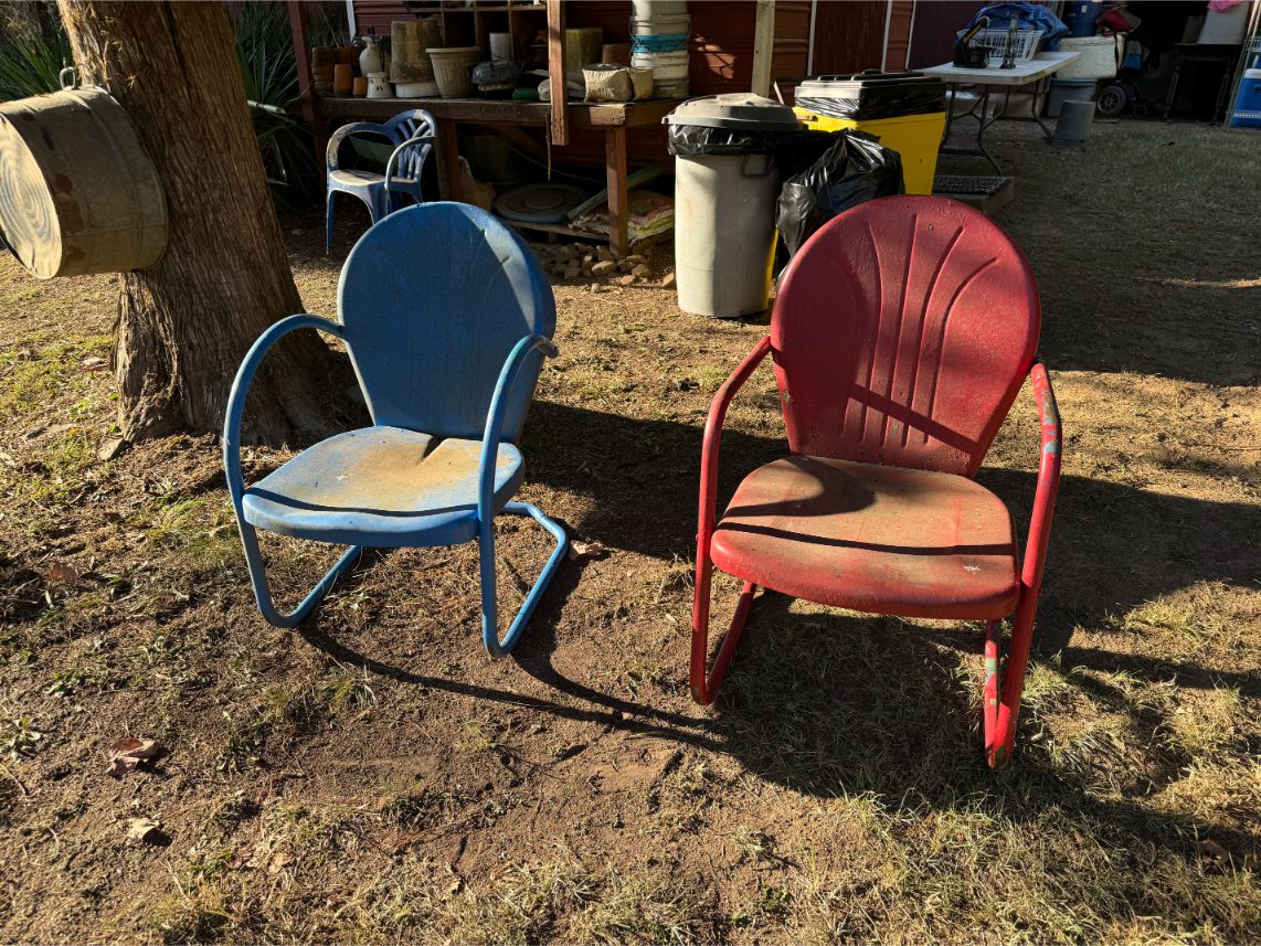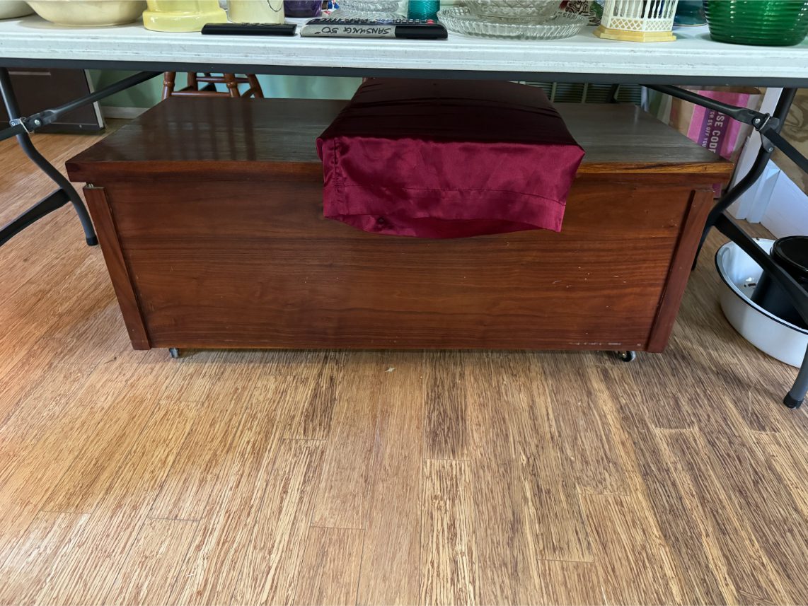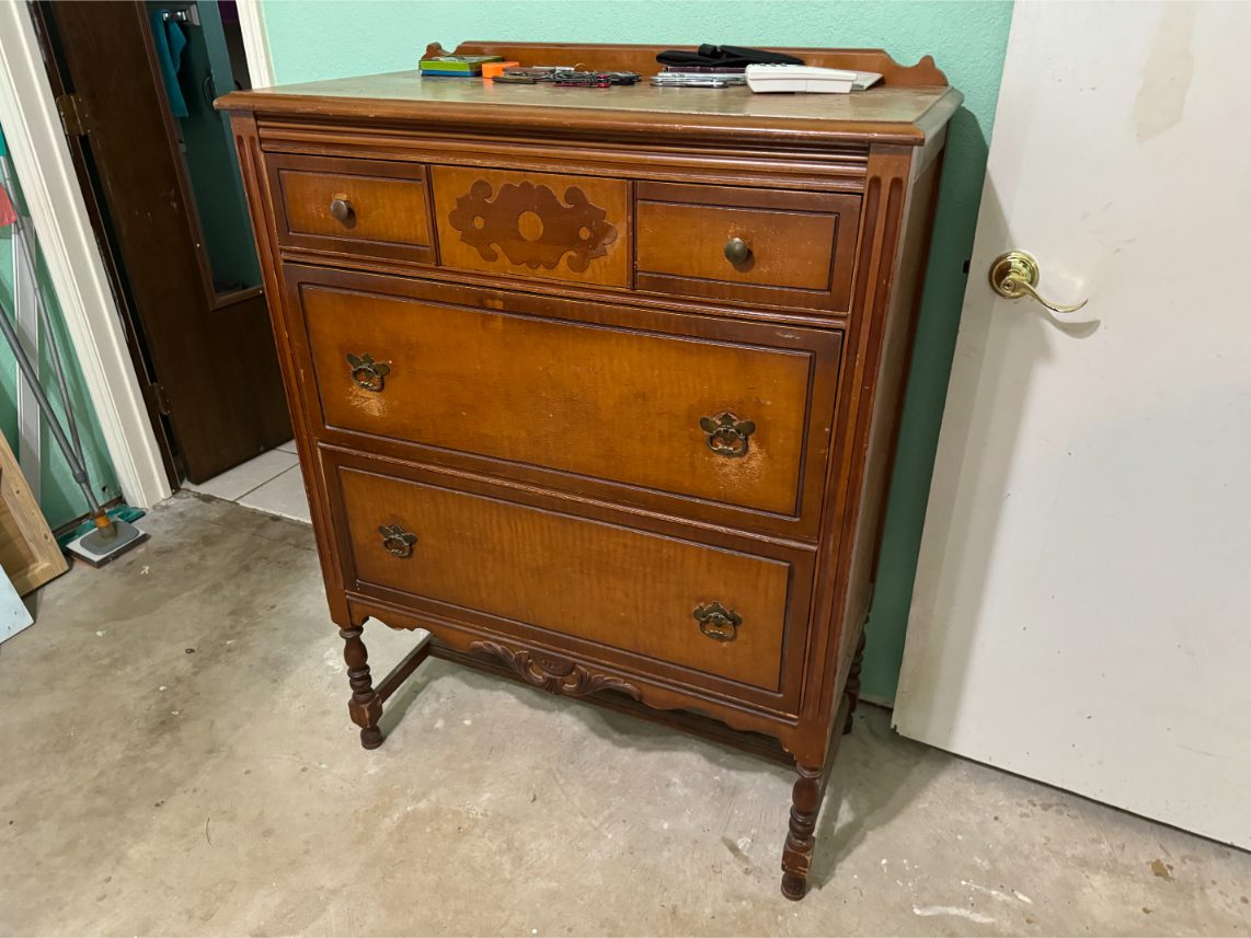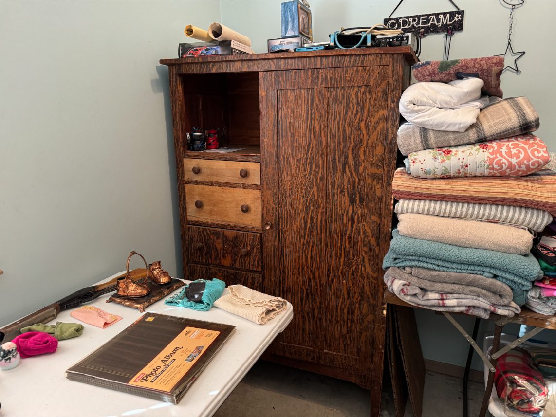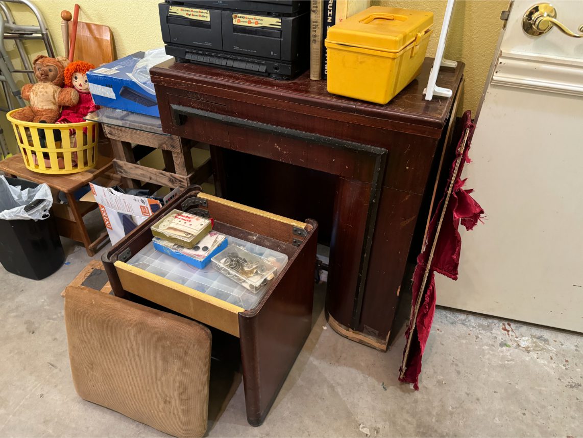 Furniture: Sofa – Recliner – Barstools – Trunk – Sewing Machine Cabinet – Chest of Drawers – Wardrobe – Vanity – Card Tables – Patio Furniture – Drafting Table – Metal Twin-Sized Bed