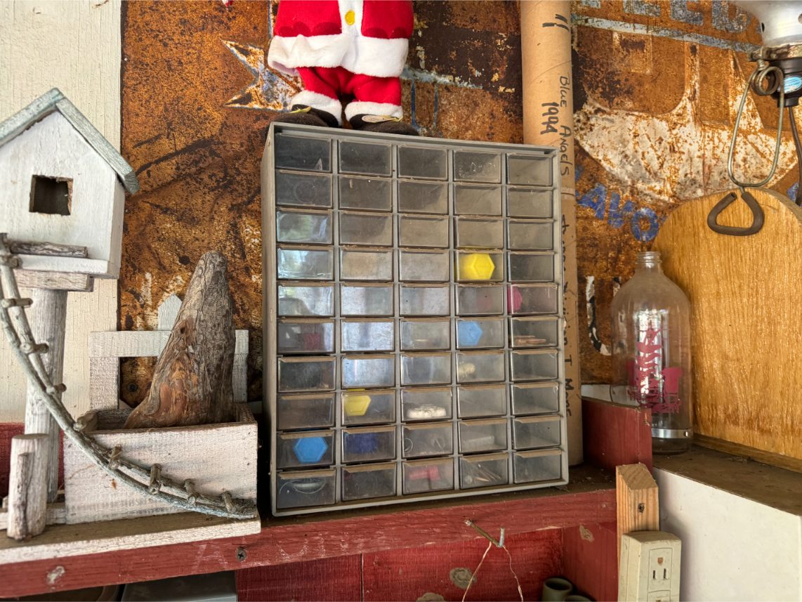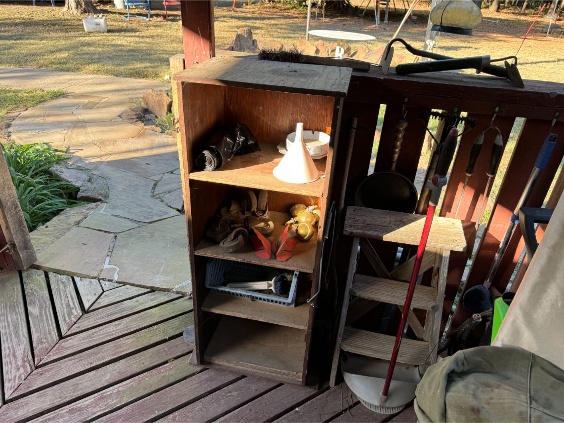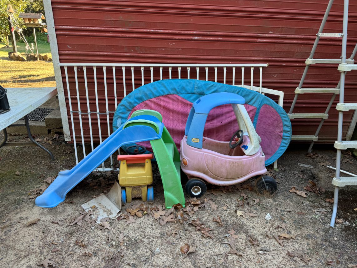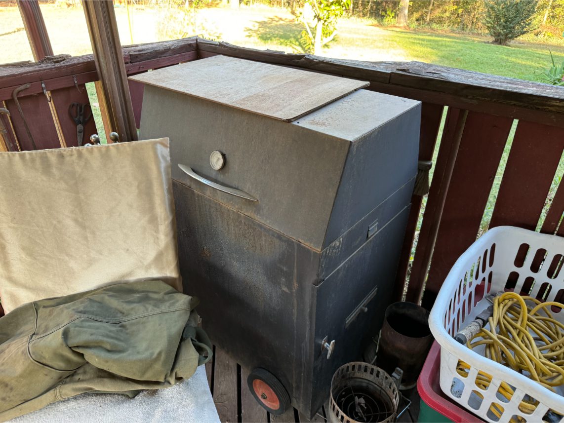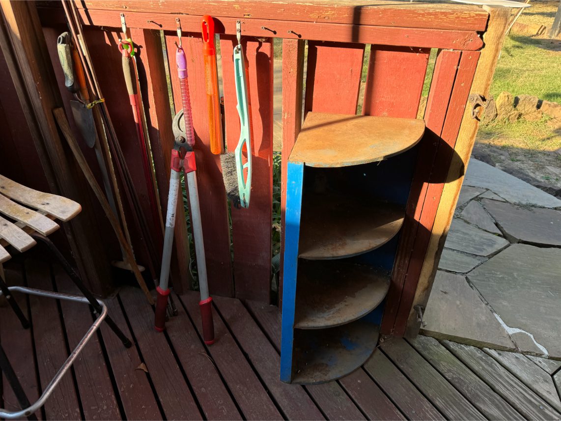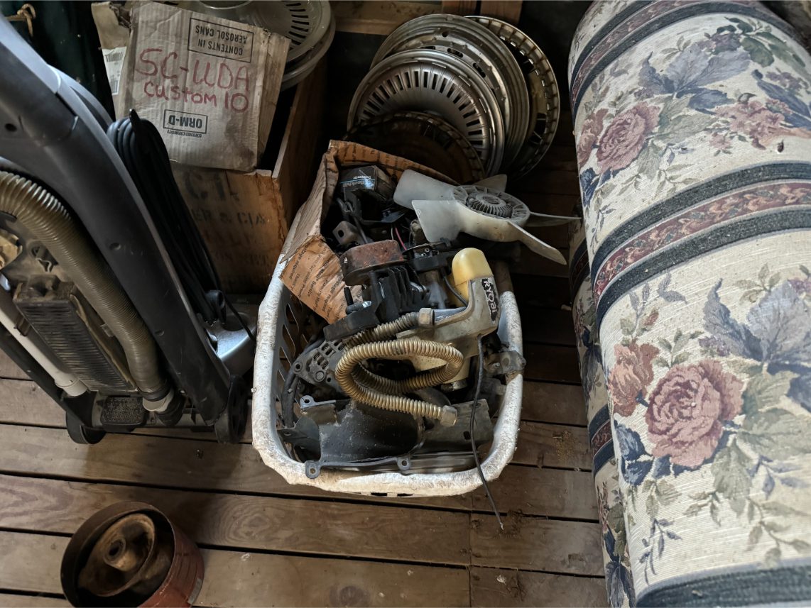 Shop Items: Fishing Rods and Reels – Hand Tools – Power Tools – Yard Tools – Smoker – Extension Cords – Bolt Bins – Belt Sander – Jacks – Wire Baskets – Coolers – Cot – Poulan Chainsaw – A-Frame – Dollies – Stainless Sink W/ Table – Metal Shelving – Cement Mixer – Floor Jacks – Saw Horses – Ladders