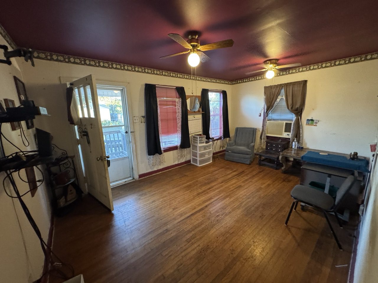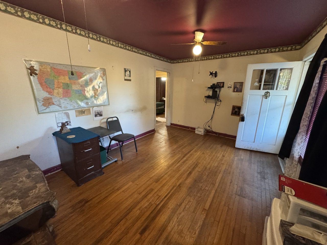 Charming approximately 768 sq ft two-bedroom home featuring vinyl siding, wooden floors, and a deck with ramp access. The property boasts a metal shop building and an additional lot, making it ideal for a personal residence or investment property. Property will be offered in 2 tracts. Tract 1 – Home on 1 lot and Tract 2 – Vacant lot.