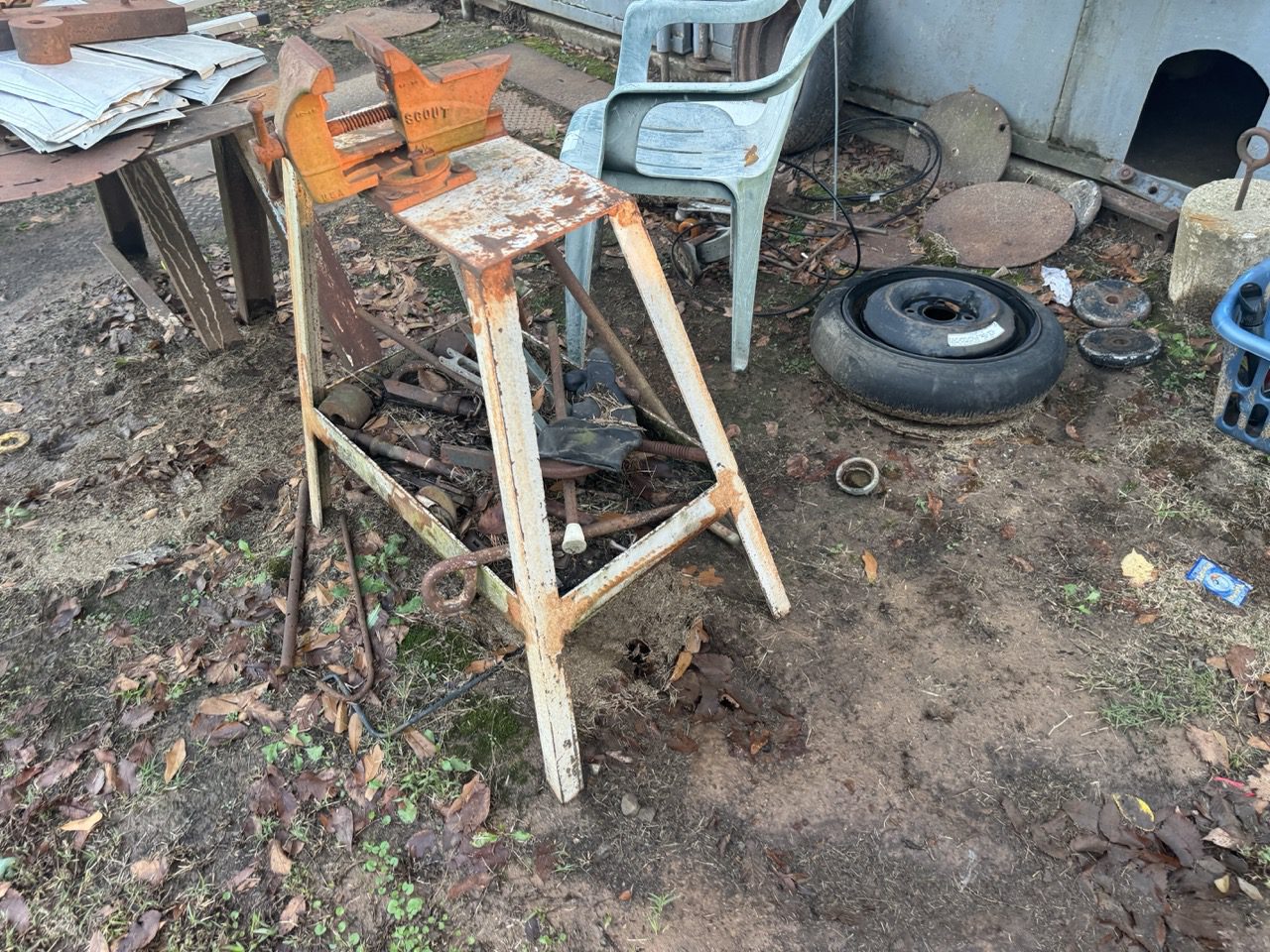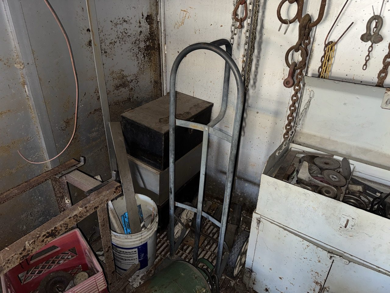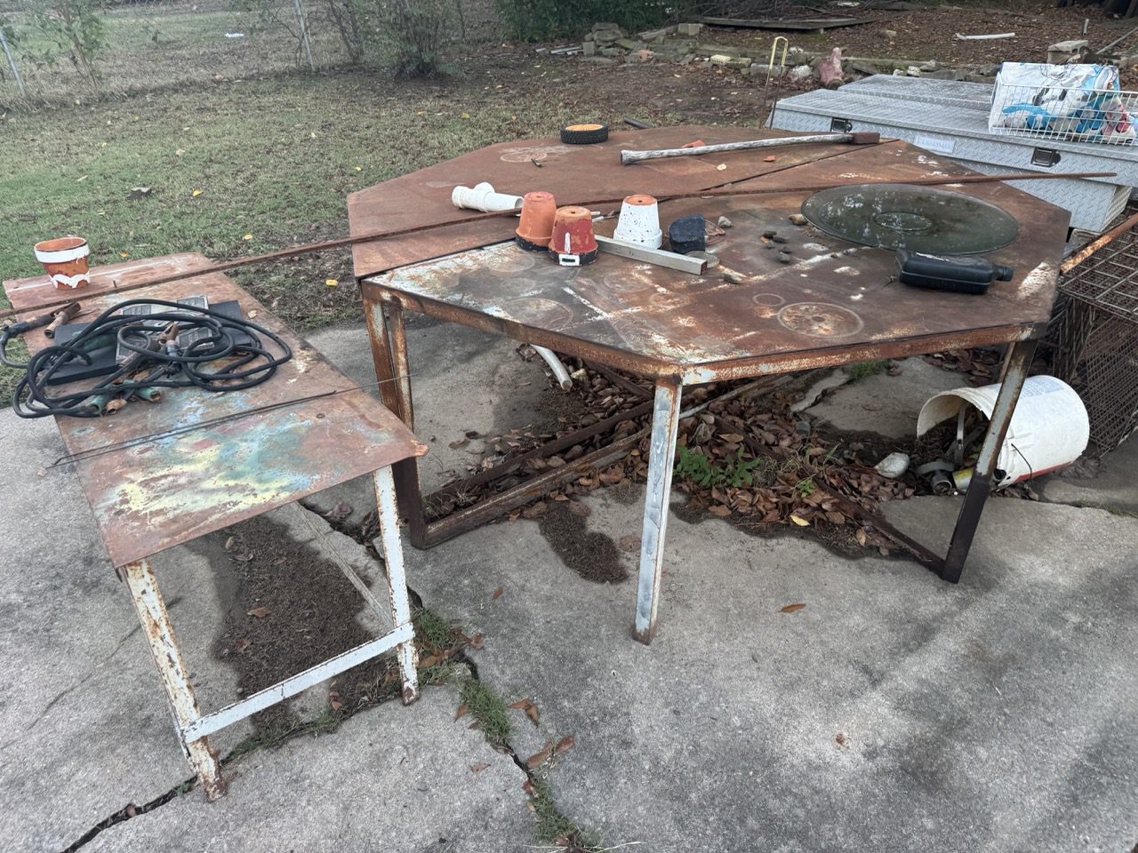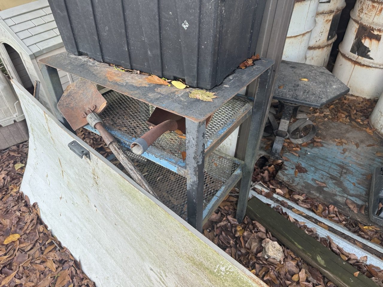 Shop Items: Metal Shop Tables – Metal Cages – Diamond Plate Truck Tool Boxes – Wheelbarrow – Flat Metal – Metal Grate – Stainless & Aluminum – Scrap Metal – Engine Stand – Metal Barrels – Air Compressors – Log Chain – Shop Vise – Metal Saw Horses – Dolly – Coleman Propane Fuel –