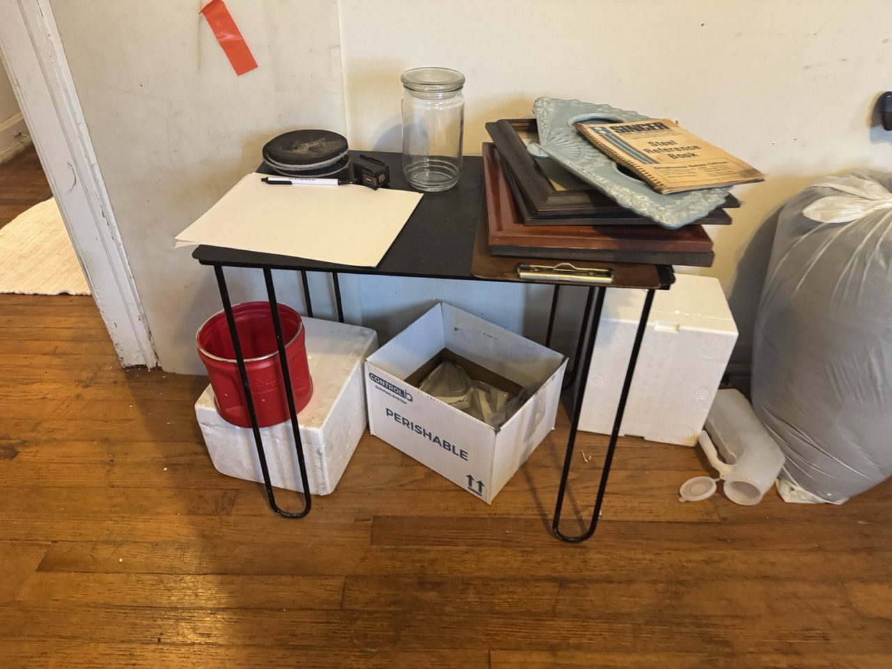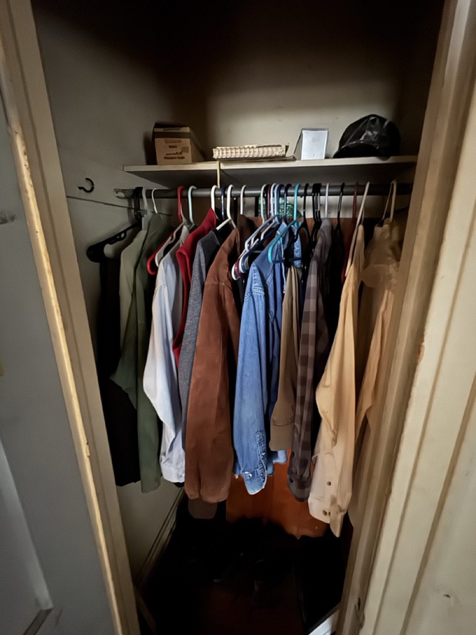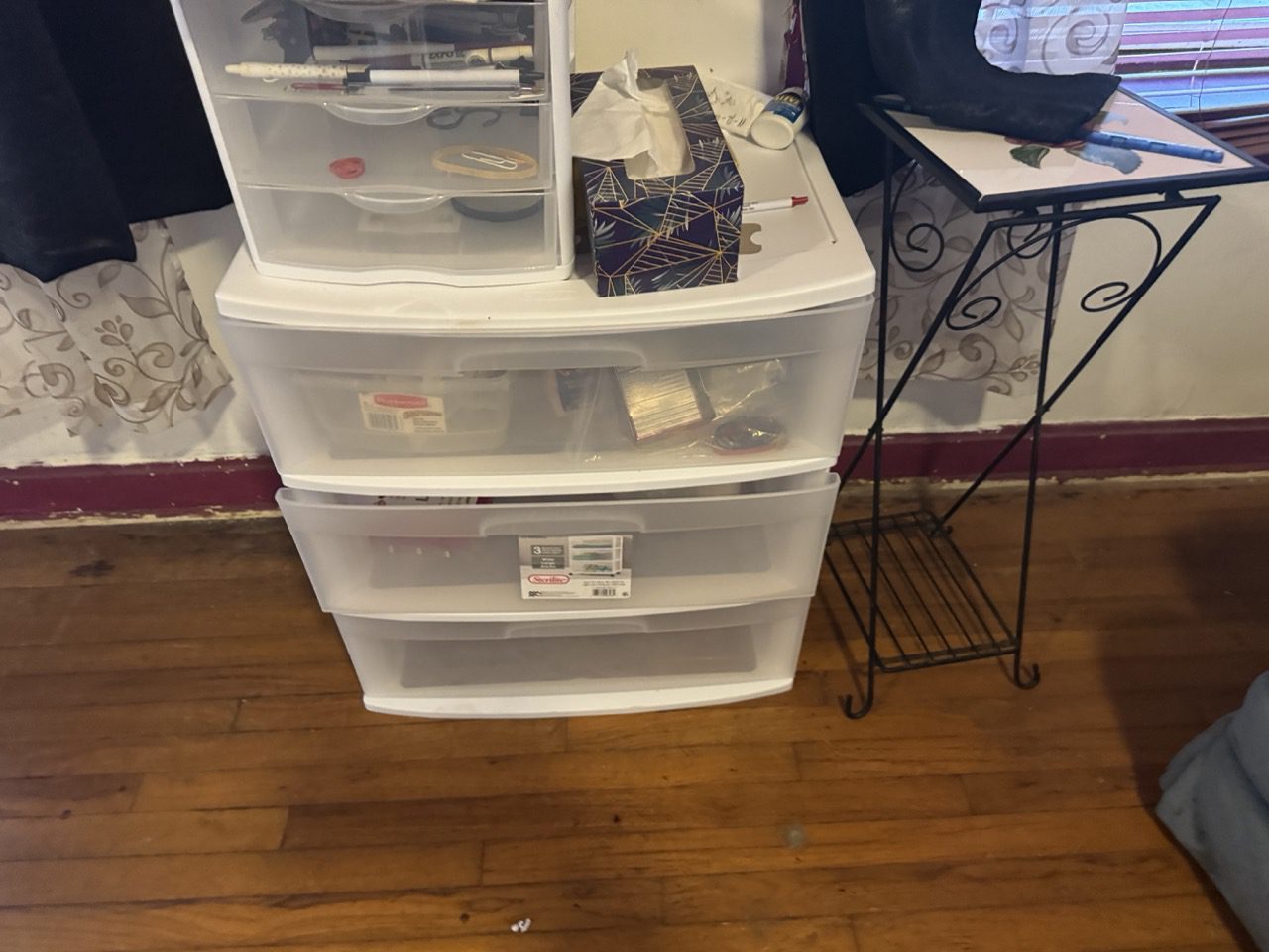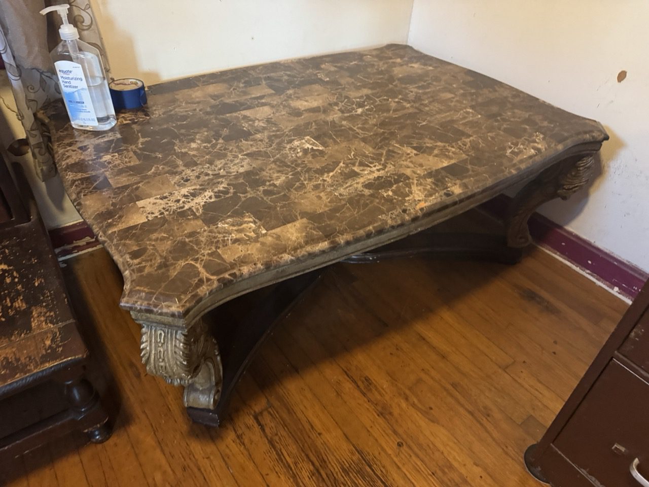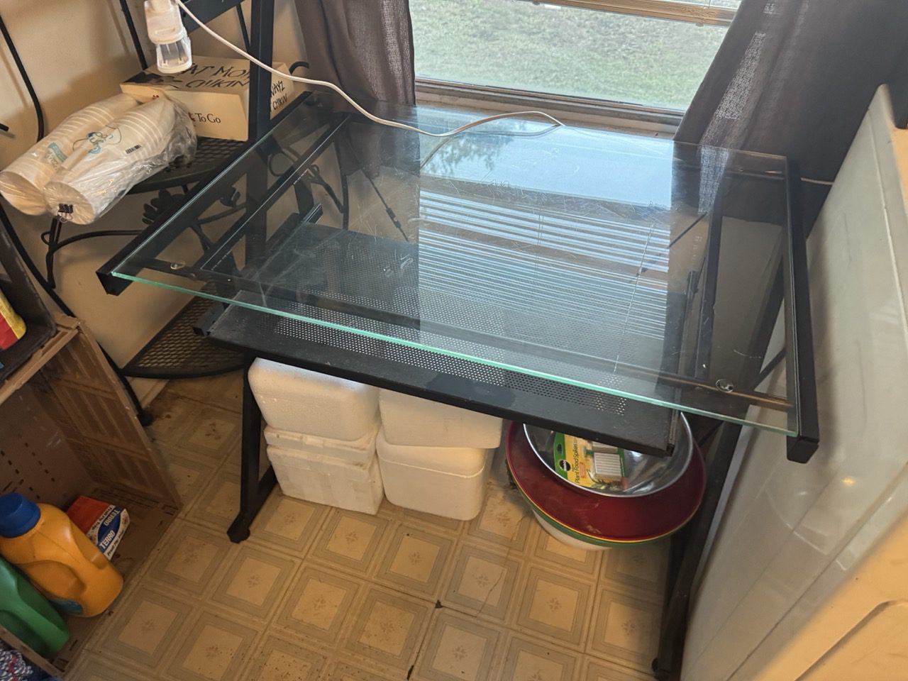 Household Items: Washer & Dryer – Refrigerator – File Cabinet – R/A Table – Marble Top Table – End Table – Rocking Chair – Plastic Organizers – Plaid Sofa – Chest of Drawers – Telescope – Dresser – Aquarium – Scales – Leather Coats – Oak Chest – Microwave – Glass Computer Desk – Glassware – Silverware