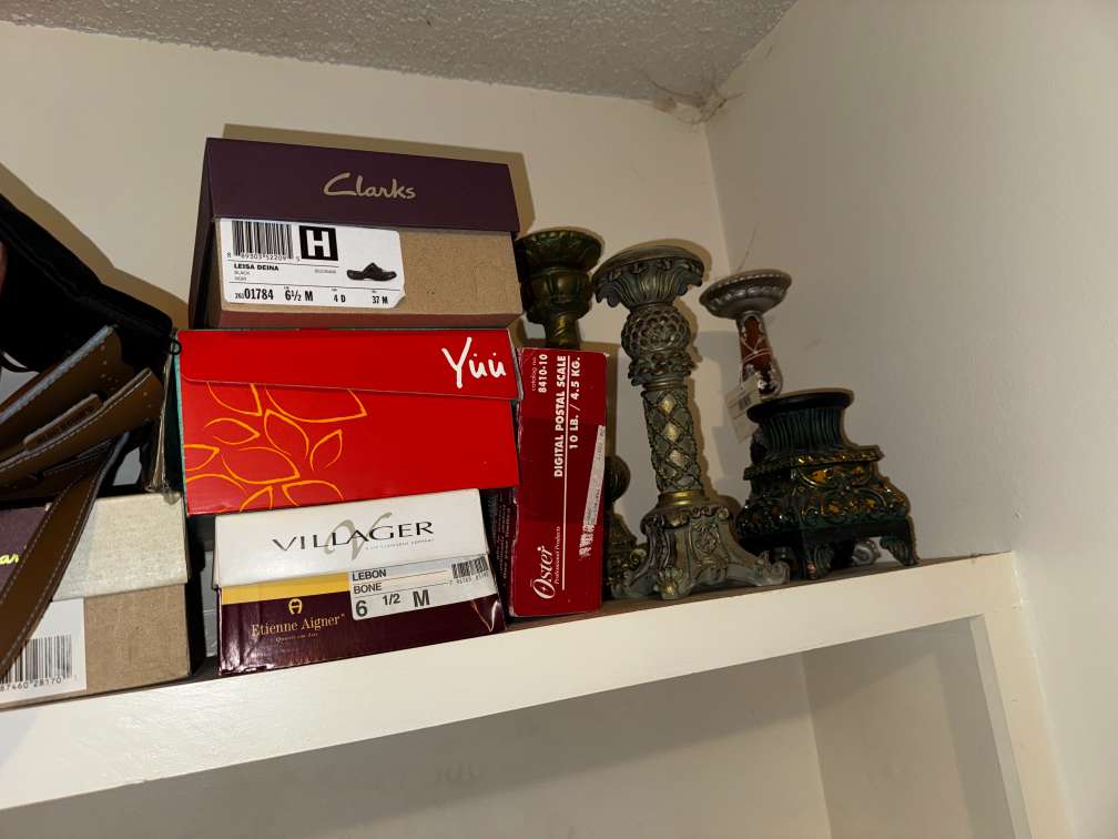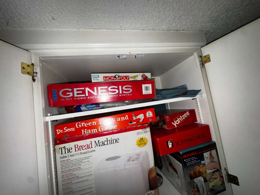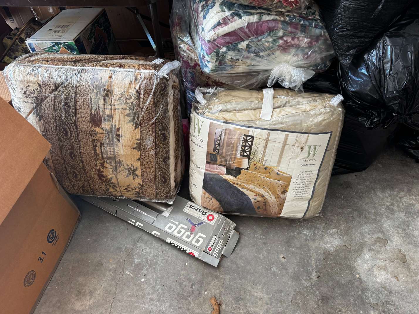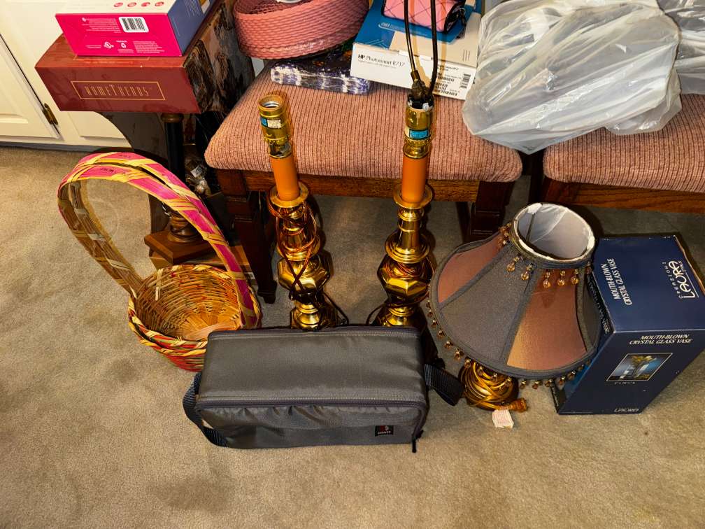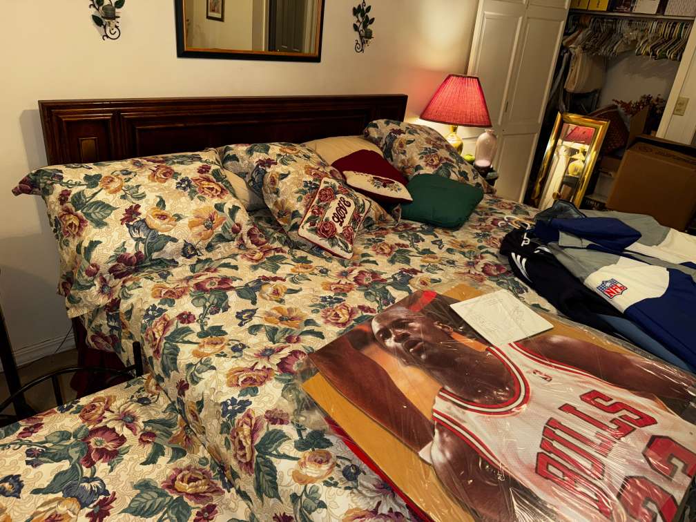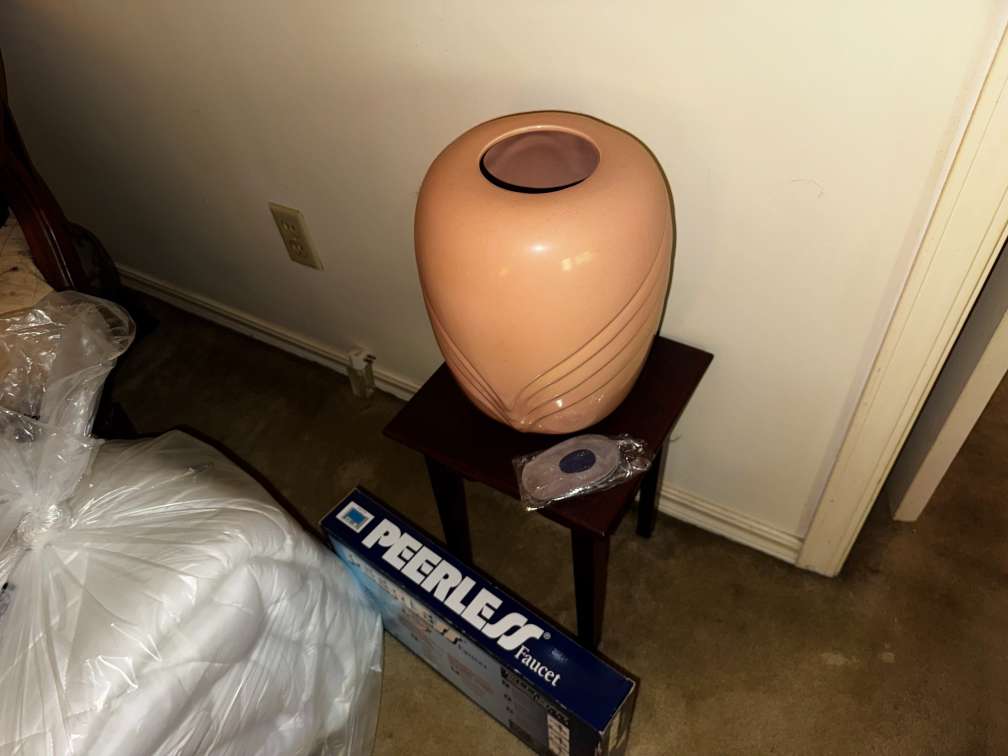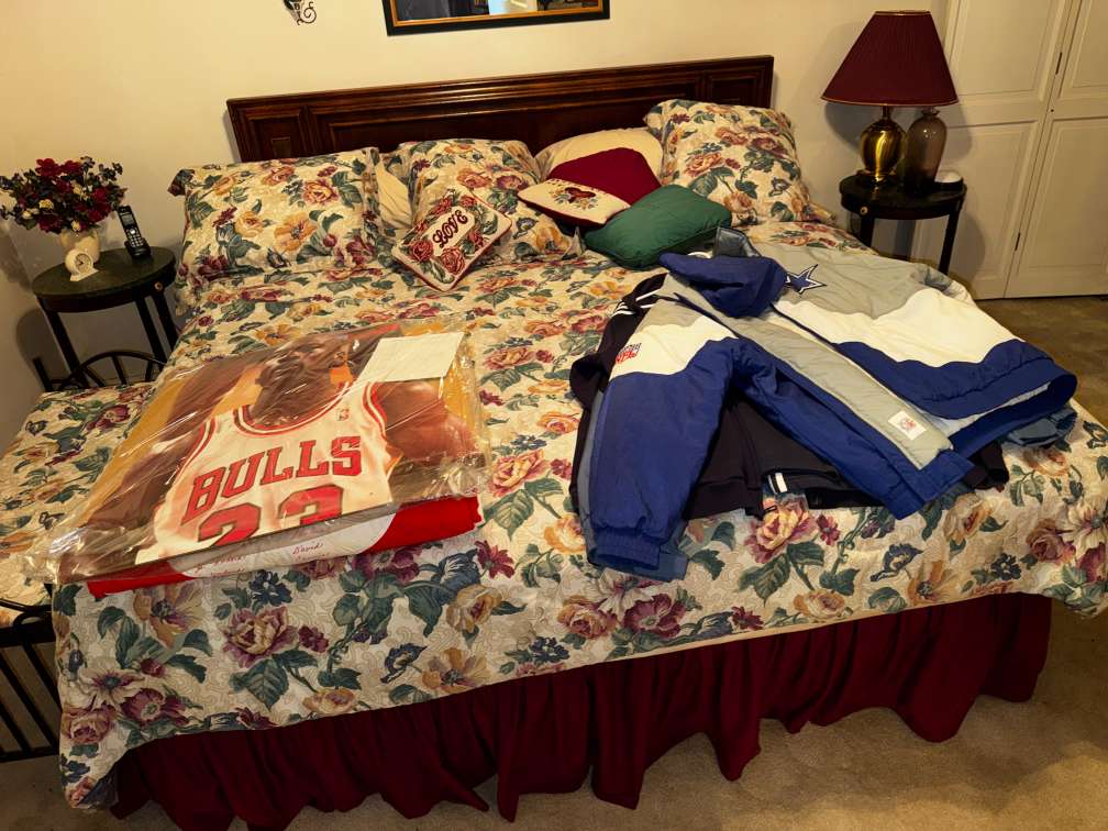 Household Items: Pfaltzgraff Dishes – Frankoma Dishes – Clear Glass – Pitchers – Glass Serving Dishes – Cake Plates – Vases – Candle Holders – Cookie Jars – Royal Staffordshire Glassware – Magic Bullet – Pots – Pans – Baking Ware – Roseville – Lamps – Mikasa China – Christmas Decorations – Framed Paintings – Mixer – Flower Pots – Whirlpool Upright Freezer – Refrigerator – Clothes Rack – Clothing – Shoes – Maytag Washer – Maytag Dryer – Towels – Board Games – Coke Bottles – Meat Slicer – Beard Maker – JVC Television – Dehumidifiers – (2) Michael Jordan Cut-Outs – Stereo Equipment – Clocks – Crystal – Floor Lamps – Rugs – Coolers – Luggage – Filing Cabinets – (New) Comforters and Linens – Steins – Gibson Housewares – Quilts – Records – Patio Furniture – Concrete Bird Bath – Michael Jordan “Liftoff” Figurines – Picture Frames – Samsung Television – Elgin Clock – Sony Speakers – CDs – Sony Stereo System – Samsung Blu-ray Player – Kitchen Appliances – Kitchen Utensils – Cameras – Model Ships – Paintings – Purses – Vacuums – Bissell Carpet Cleaner – Toys – Bose Headphones – Corning Ware – Tupperware – Costume Jewelry – Jewelry Boxes – Miscellaneous Décor – Records