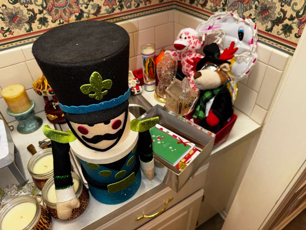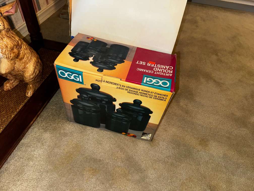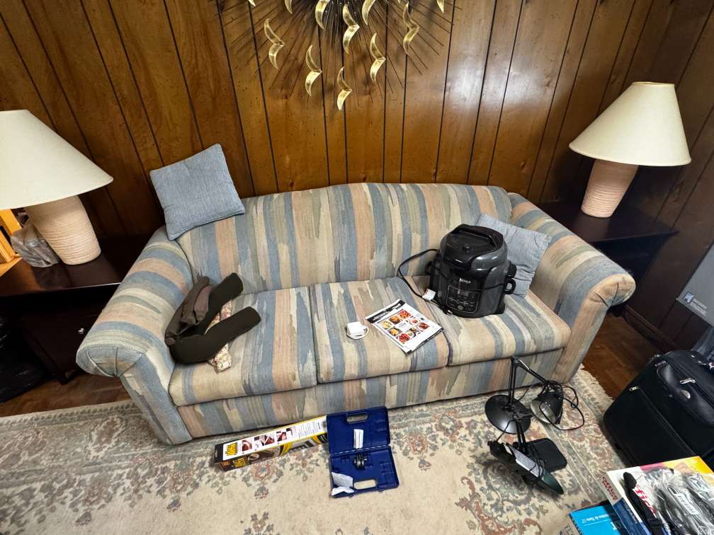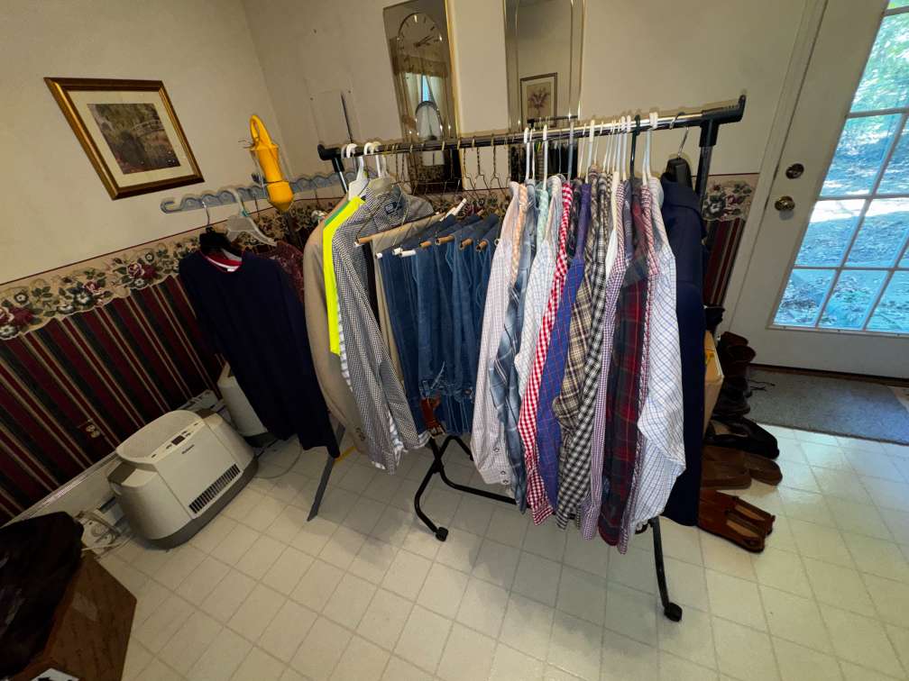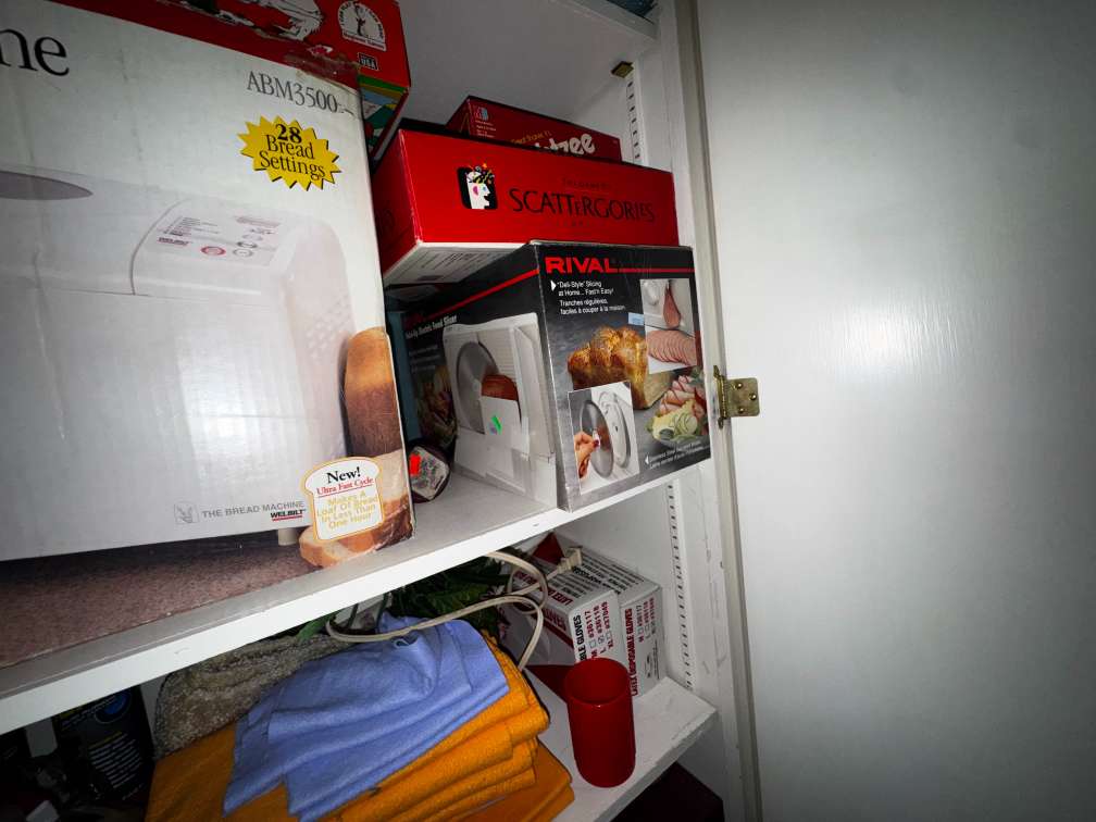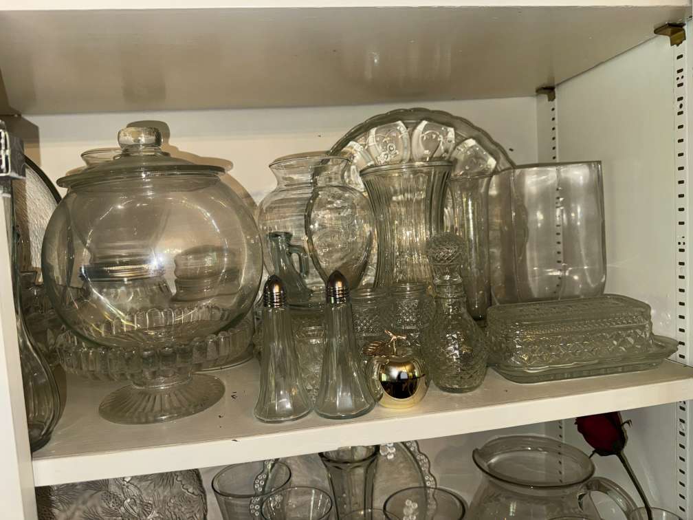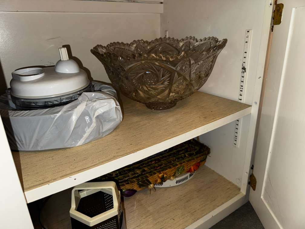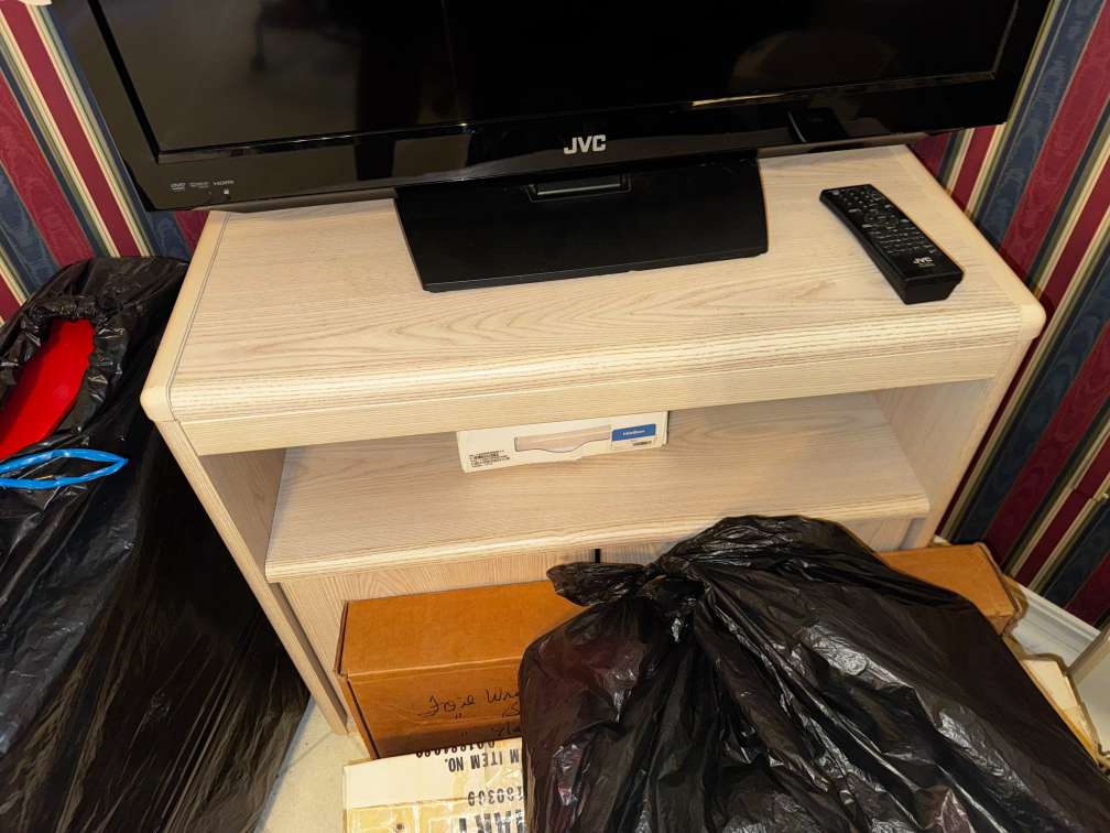 Household Items: Pfaltzgraff Dishes – Frankoma Dishes – Clear Glass – Pitchers – Glass Serving Dishes – Cake Plates – Vases – Candle Holders – Cookie Jars – Royal Staffordshire Glassware – Magic Bullet – Pots – Pans – Baking Ware – Roseville – Lamps – Mikasa China – Christmas Decorations – Framed Paintings – Mixer – Flower Pots – Whirlpool Upright Freezer – Refrigerator – Clothes Rack – Clothing – Shoes – Maytag Washer – Maytag Dryer – Towels – Board Games – Coke Bottles – Meat Slicer – Beard Maker – JVC Television – Dehumidifiers – (2) Michael Jordan Cut-Outs – Stereo Equipment – Clocks – Crystal – Floor Lamps – Rugs – Coolers – Luggage – Filing Cabinets – (New) Comforters and Linens – Steins – Gibson Housewares – Quilts – Records – Patio Furniture – Concrete Bird Bath – Michael Jordan “Liftoff” Figurines – Picture Frames – Samsung Television – Elgin Clock – Sony Speakers – CDs – Sony Stereo System – Samsung Blu-ray Player – Kitchen Appliances – Kitchen Utensils – Cameras – Model Ships – Paintings – Purses – Vacuums – Bissell Carpet Cleaner – Toys – Bose Headphones – Corning Ware – Tupperware – Costume Jewelry – Jewelry Boxes – Miscellaneous Décor – Records