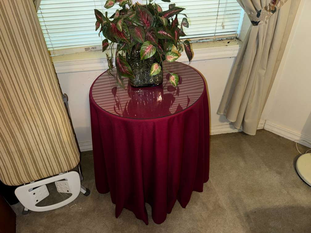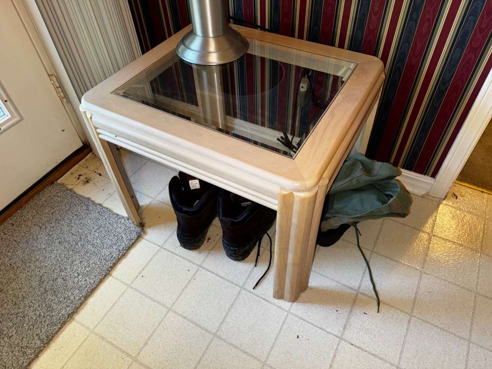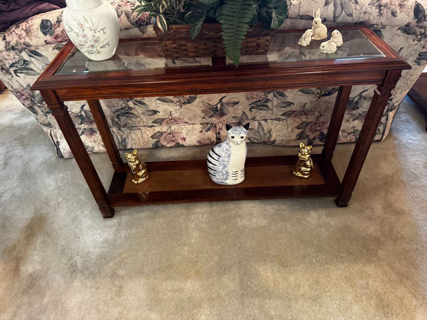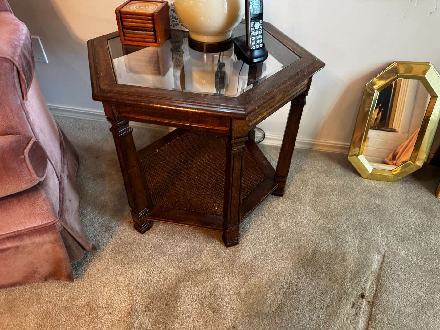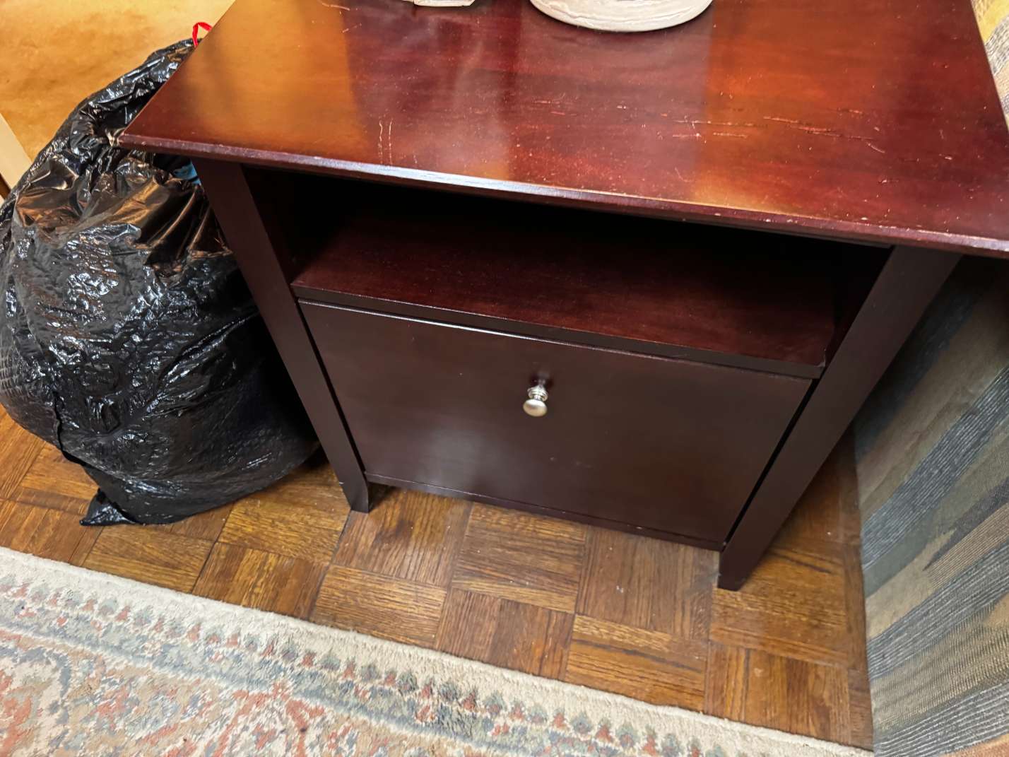 Furniture: Glass-Top End Table – Desk – Chest of Drawers – Mirrors – Dining Table and Chairs – China Hutch – Hall Table – Recliners – End Tables – Sofa – Coffee Table – TV Console – Ottoman – Office Chairs – Dressers – Bookshelves – King-Size Bed – Night Stands