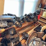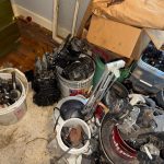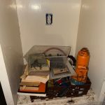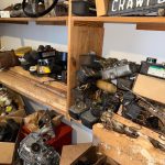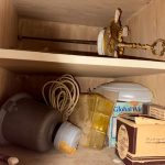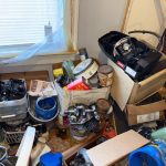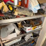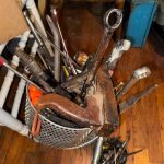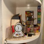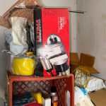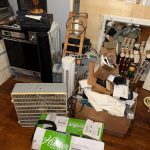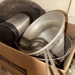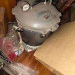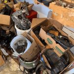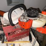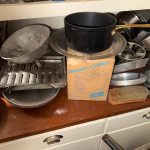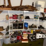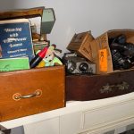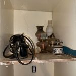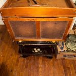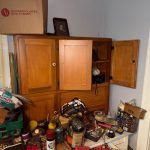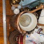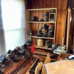 Antiques & Household: Antique Kitchen Cabinet – Antique Oak Tables – Antique Chairs – Upright Piano – Chests – Lamps – Kerosene Lamps – Misc Electronics – Croquet Set – Guitar Cases – Trombone – Philco Radio Cabinet – Globe on Stand – Books – Pots & Pans
