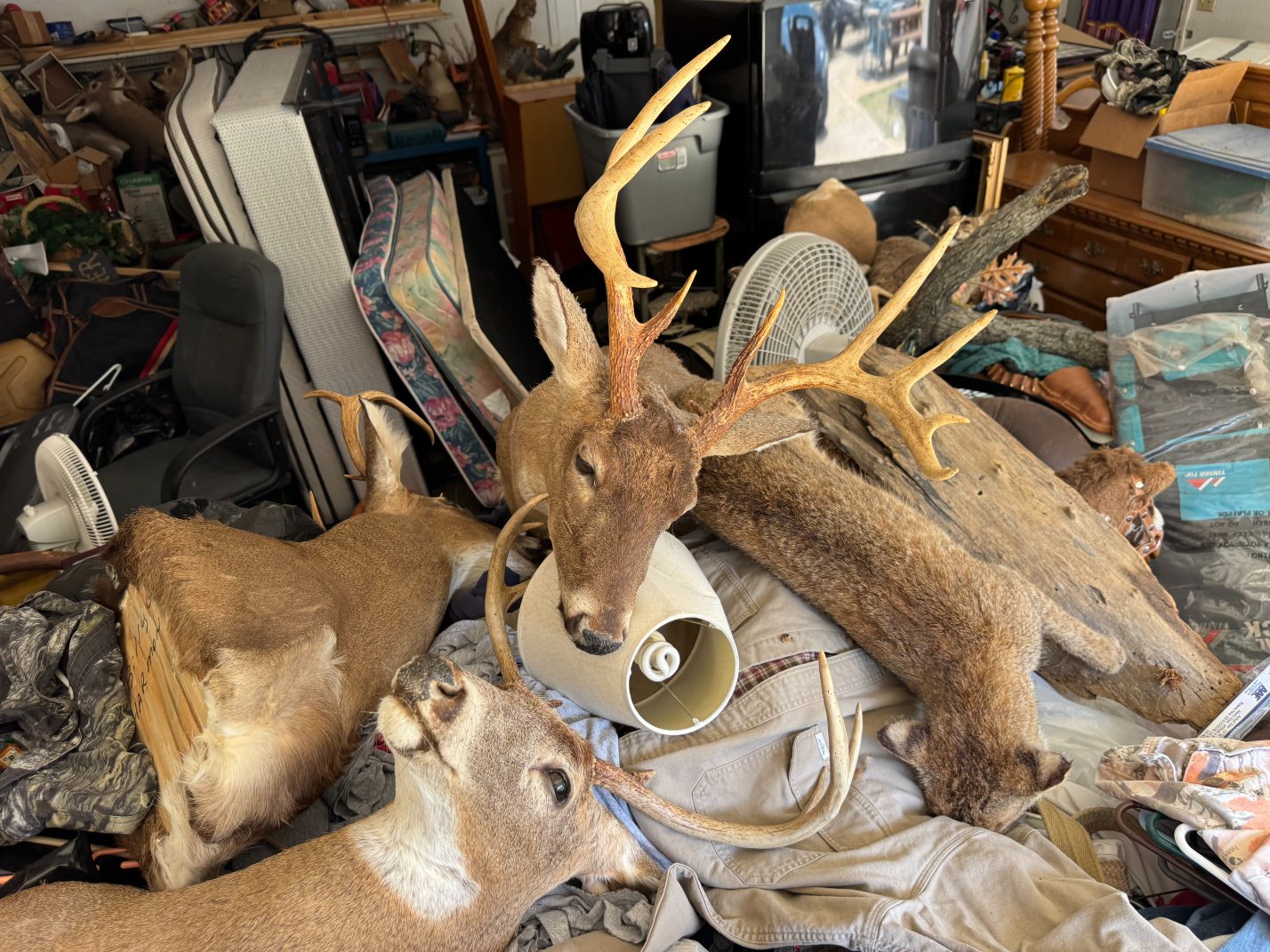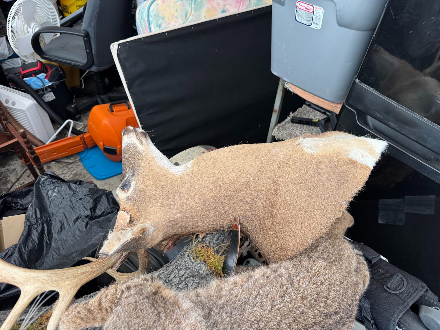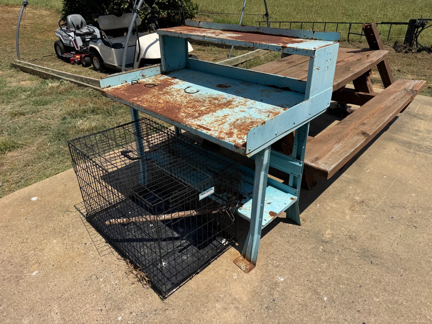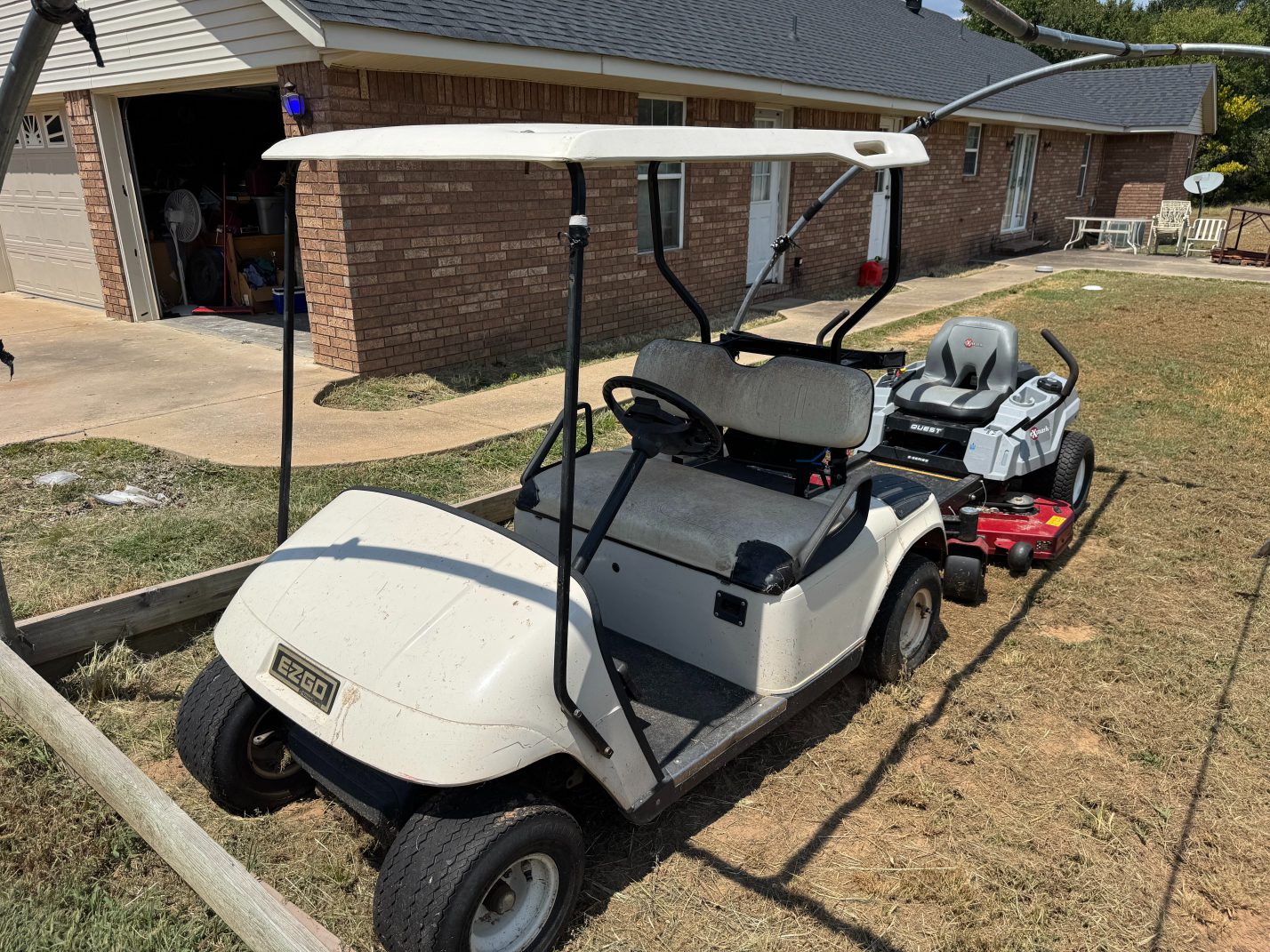 Tools/Shop Items: EZ-GO Battery-Powered Golf Cart – Texas Bragg Single Axle Trailer – Metal Shop Table – 3pt. Spring Tooth Cultivator – 3pt. Cultivator – Lumber – Metal – Galvanized Bucket – Metal Barrels – Briggs Motor – Chainlink Fencing – Deer Stand – Propane BBQ Grill – Murray Leaf Blower – Snap-On Creeper – Yard Tools – ATV Gun Case – Fishing Poles – Bobcat Mount – DeWalt Radio – Shop Fan – Deer Mounts – Sprayer – Stihl String Trimmer – Gas Cans – Trouble Lights – Lanterns – Chainsaws – Tires – Fans – Deer Feeder – Log Rack –