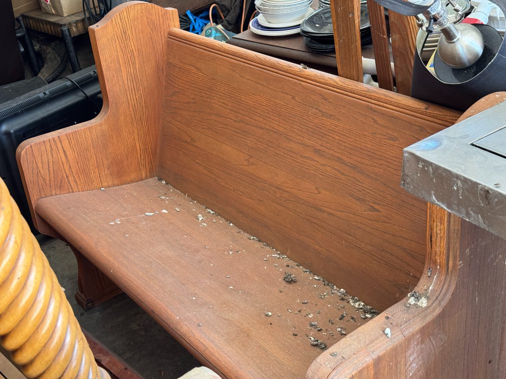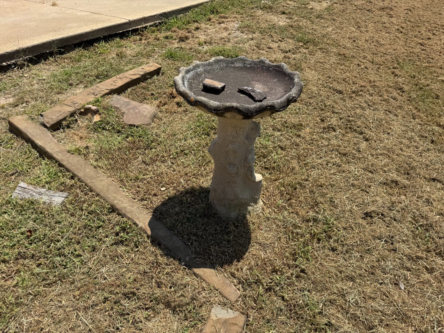 Furniture/Household Items: Picnic Table – Chair and Ottoman – Kitchen Utensils – Church Pew – Glassware – Dishes – Vacuums – Office Chair – Dresser W/ Mirror – Queen-Sized Bed Frame – Kitchen Table and Chairs – Kenmore Refrigerator – Pet Taxi – Misc. Clothing – Double Recliner – Mattresses – Patio Furniture – Rock Bench – Concrete Bird Bath –