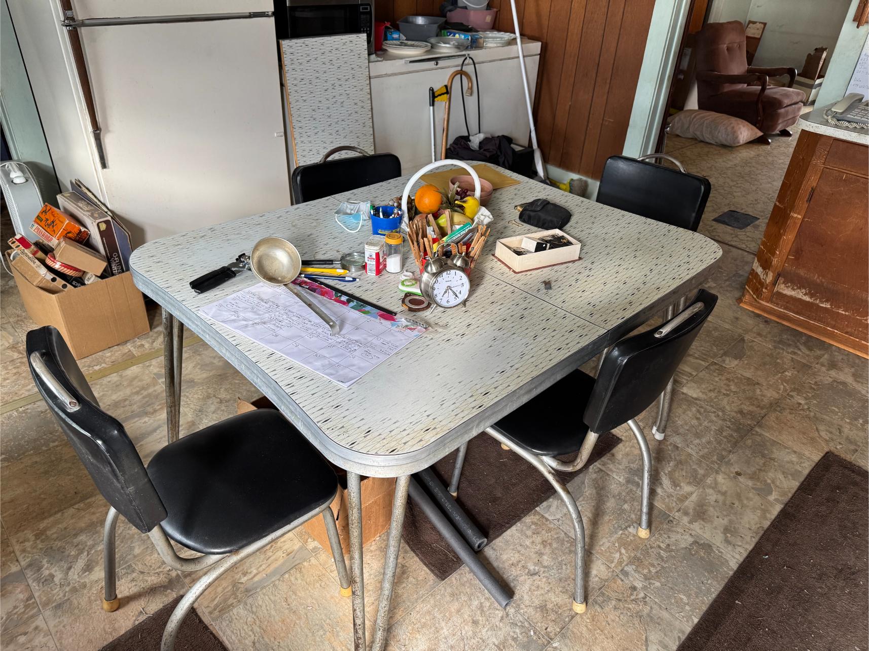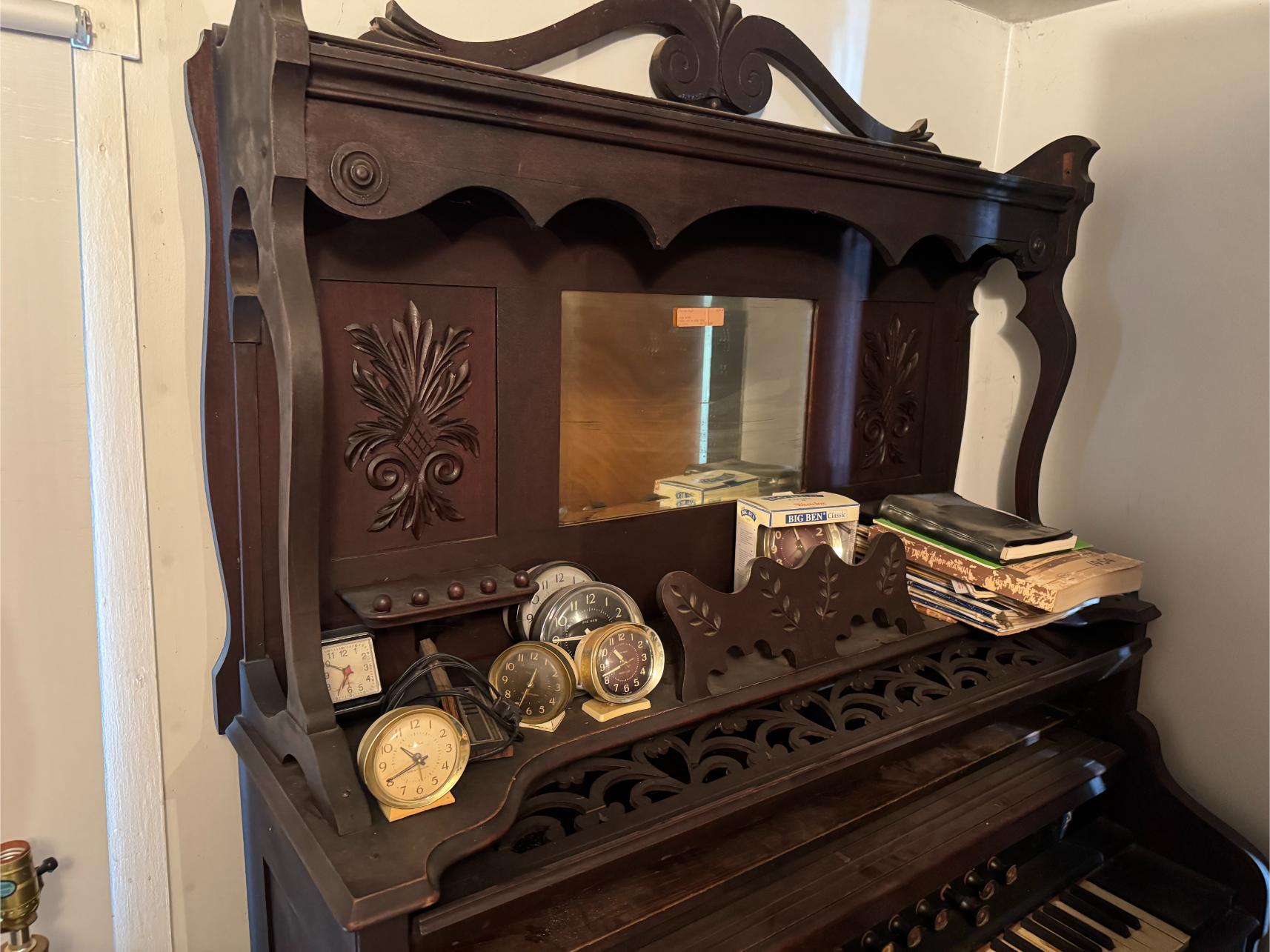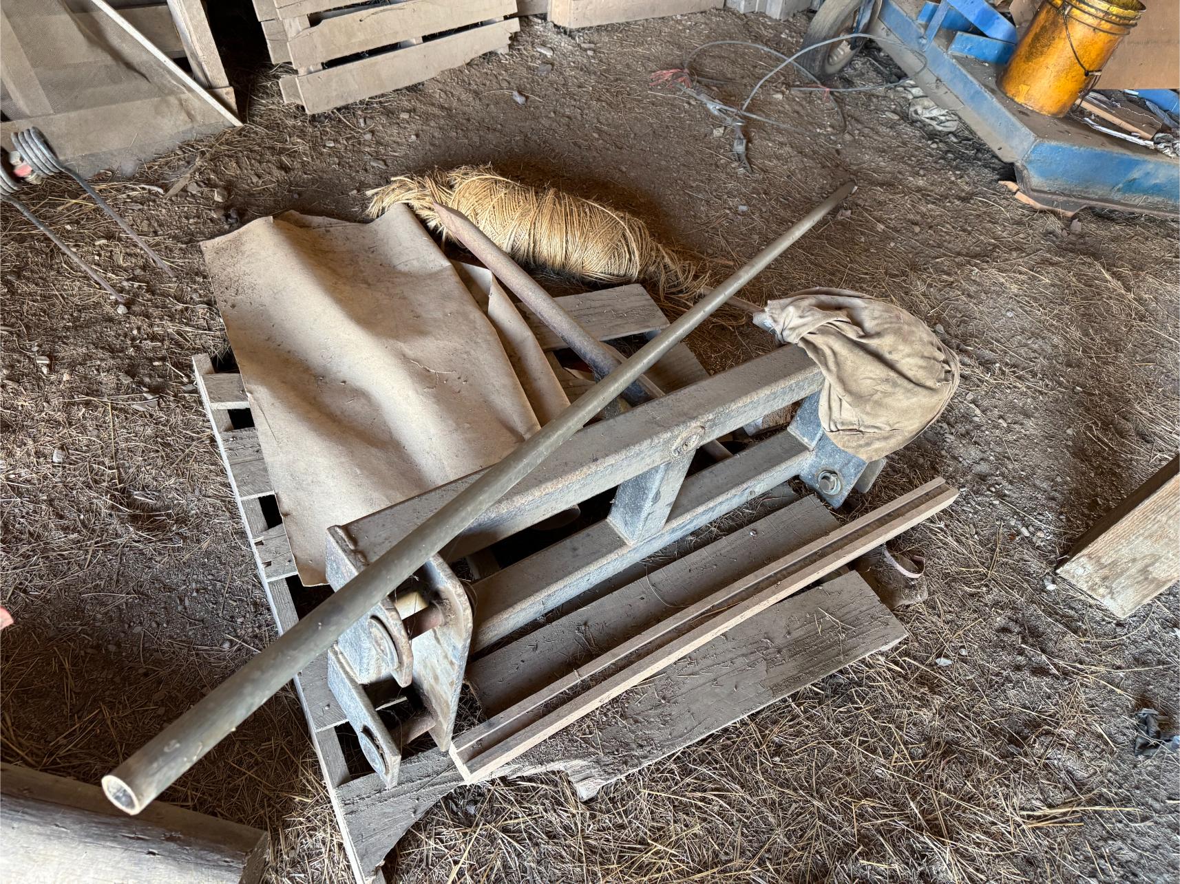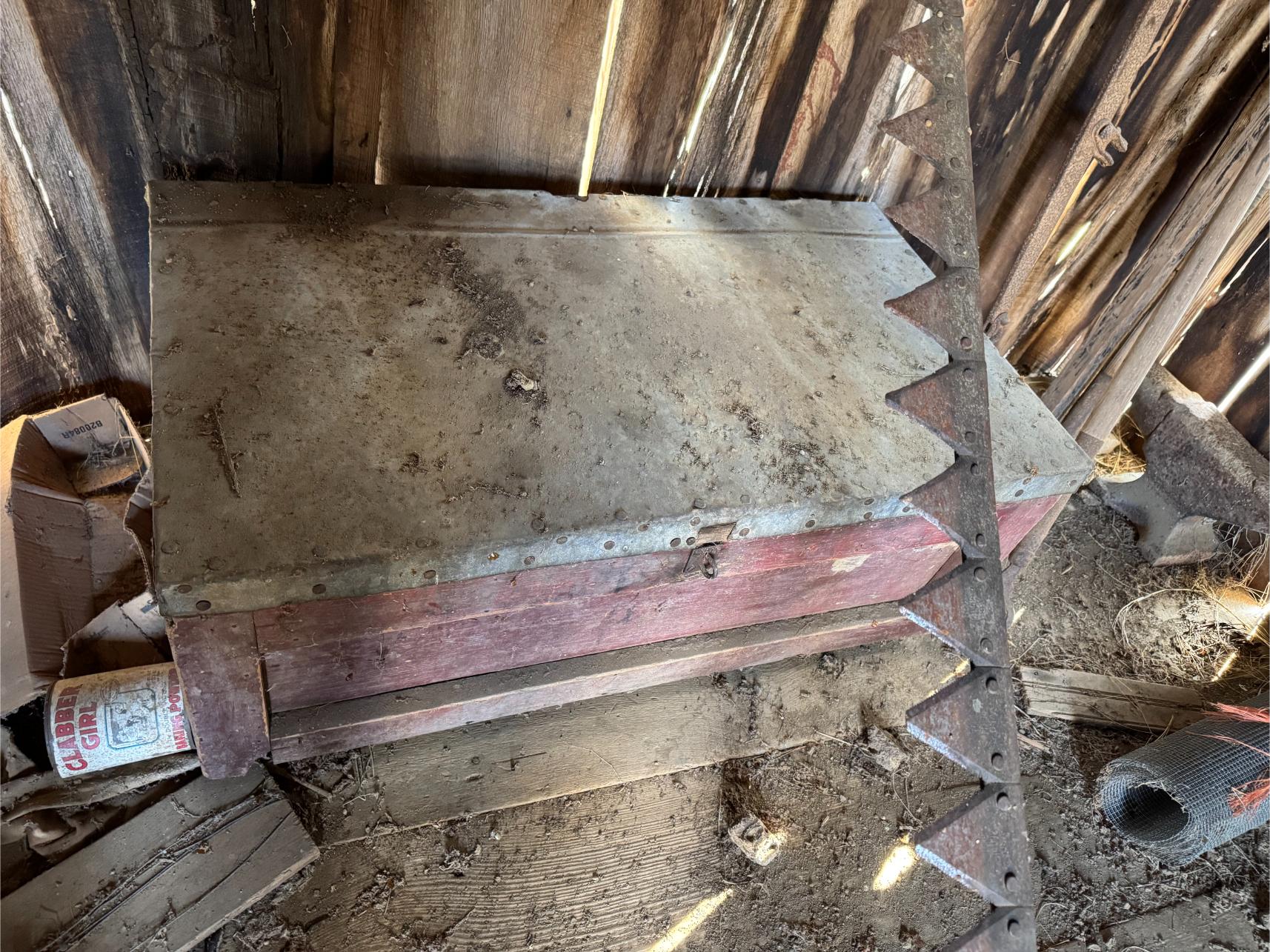 Antiques & Collectibles:Â Chrome Dinette & Chairs – Oak Kitchen Cabinet – Cherry End Table – Oak Chairs – Occasional Chairs – (3) Iron Beds – Metal Bed – Oak Serpentine Front Dresser – Dresser & Chest – Mahogany Dresser – Oak Wardrobe – Shelf – Concert Turn Table (in case) – Silvertone Mandolin – Zenith Radio – Singer Treadle Sewing Machine – Pipes – Razor Straps – Lamps – Kerosene Lamp – Cookie Jar – Pyrex – Melmac Dishes – Figurines – Crock – Stone Bowl – Iron Skillets – Cream Cans – Stetson Hat w/Box – Linens, Crochet – Clock – Big Ben Alarm Clocks – Wringer Washer – Galv Tub & Buckets – Grinding Stone on Stand – Wood Wagon Bows – The Harrand Company Organ – Saddles, Harness – Carpenter’s Box – Small Anvil – 2-Man Saws – Nail Keg – Hand Tools – Single Trees – Cotton Scales – Cow Bells – Well Pulleys – Vintage GamesÂ