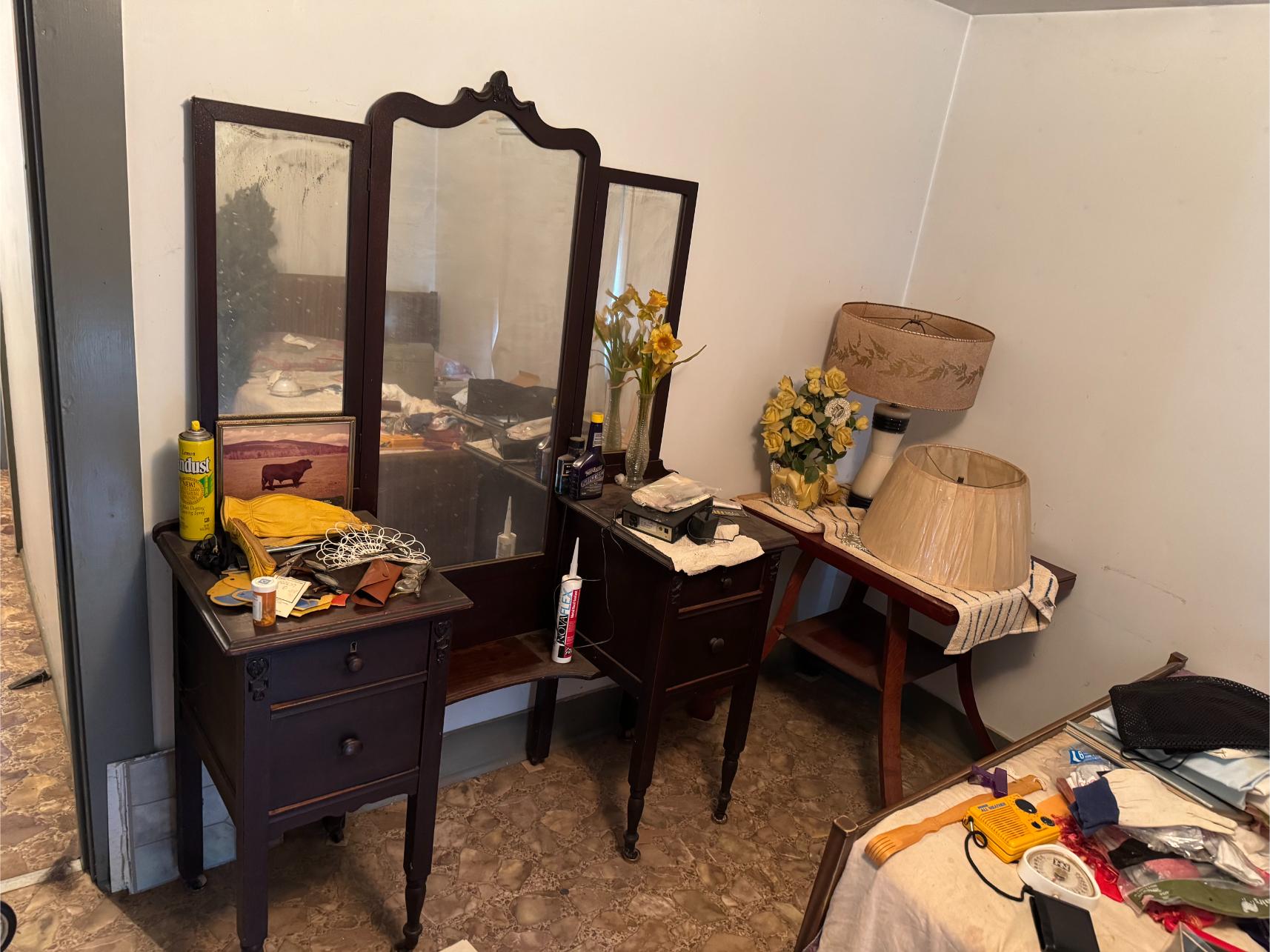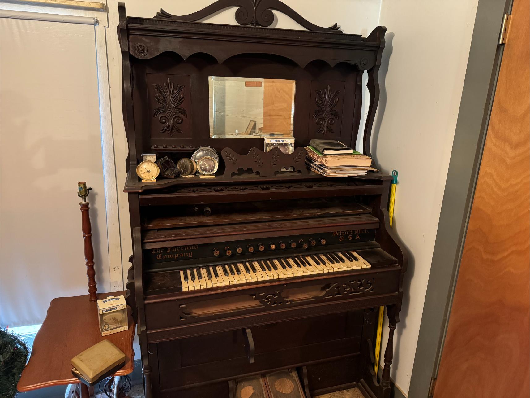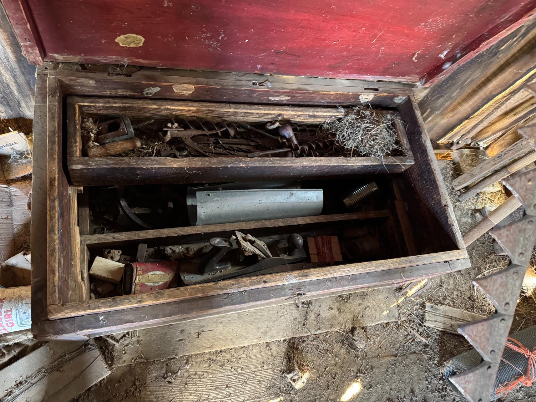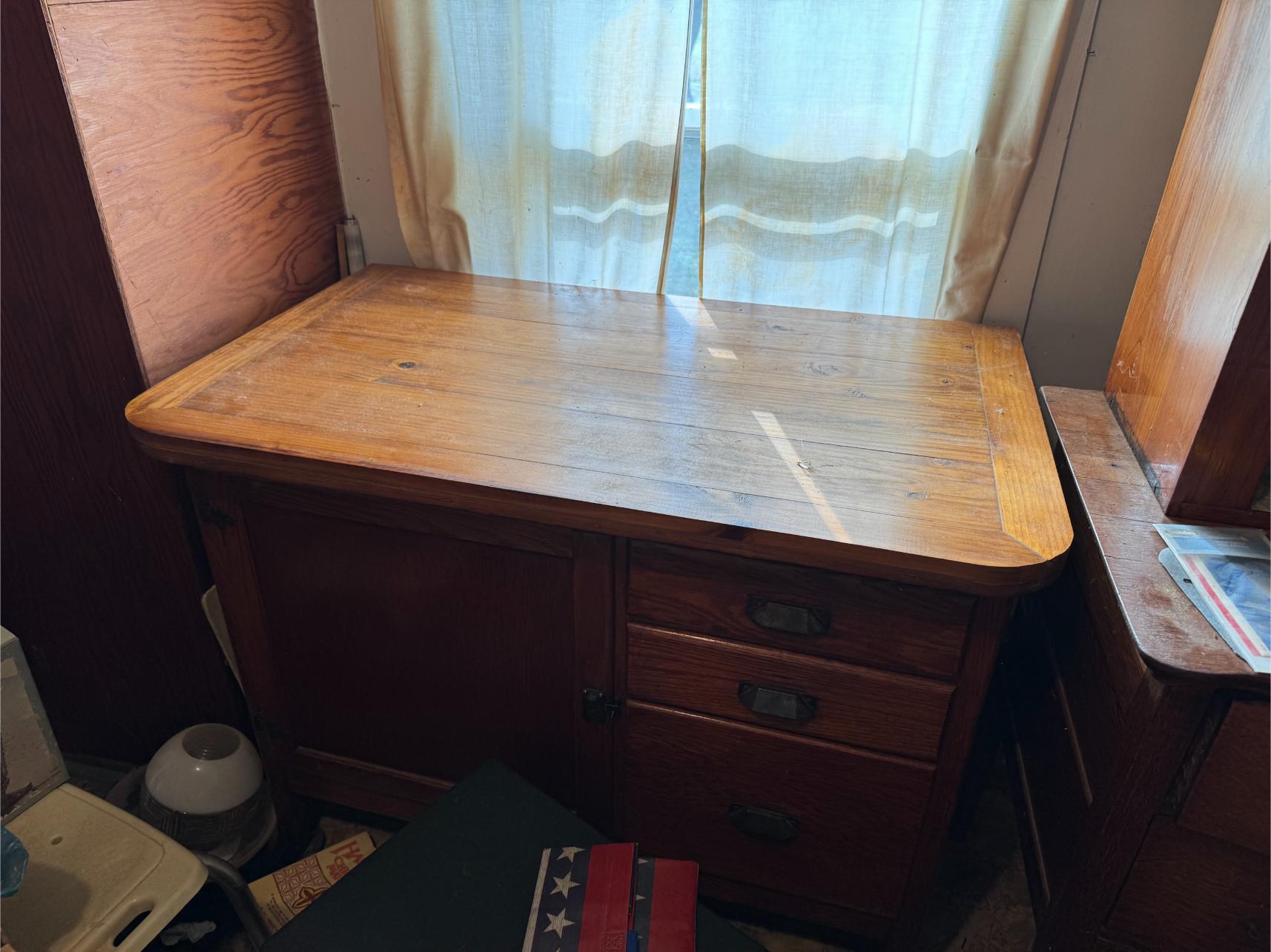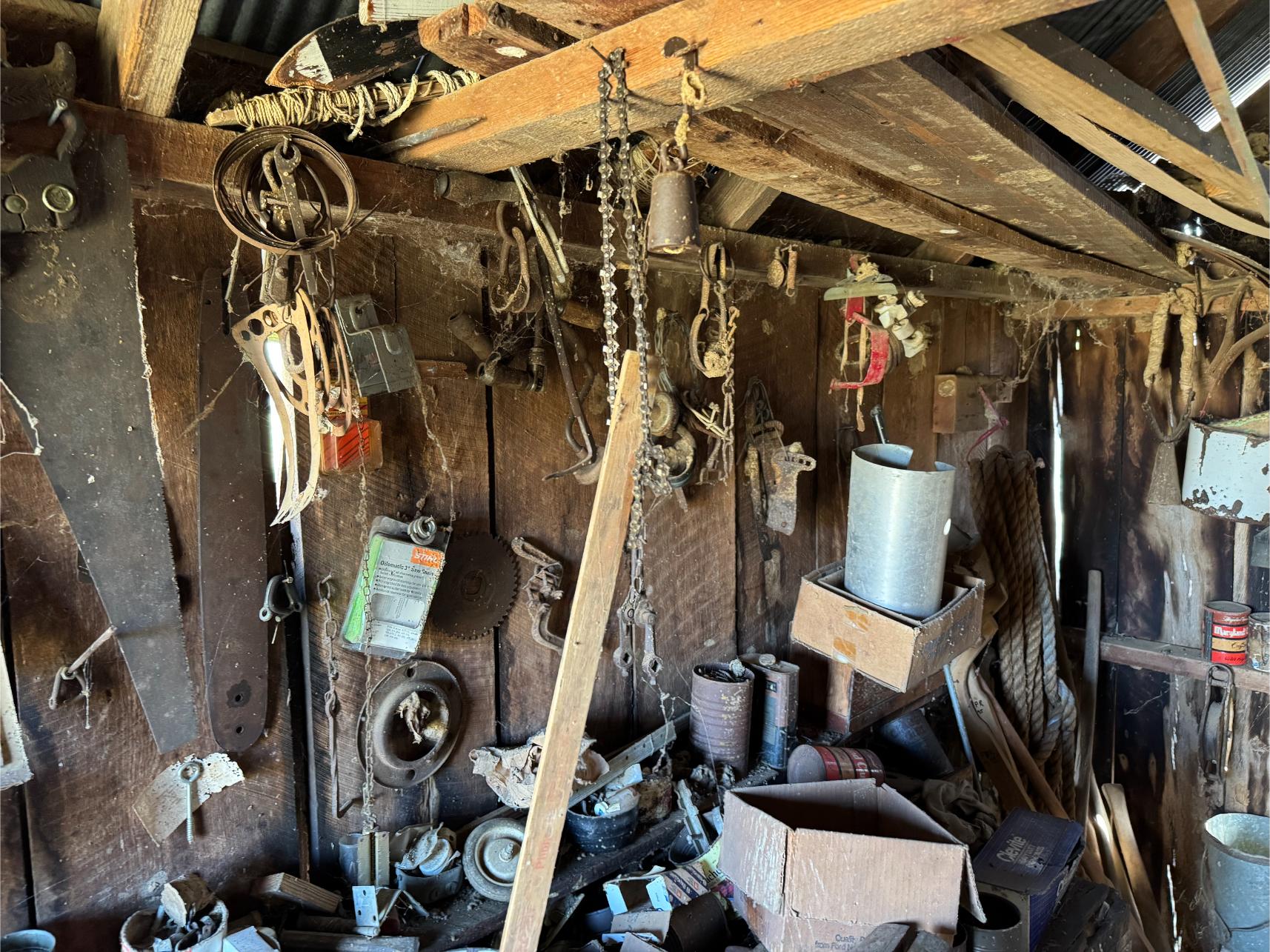Antiques & Collectibles:Â Chrome Dinette & Chairs – Oak Kitchen Cabinet – Cherry End Table – Oak Chairs – Occasional Chairs – (3) Iron Beds – Metal Bed – Oak Serpentine Front Dresser – Dresser & Chest – Mahogany Dresser – Oak Wardrobe – Shelf – Concert Turn Table (in case) – Silvertone Mandolin – Zenith Radio – Singer Treadle Sewing Machine – Pipes – Razor Straps – Lamps – Kerosene Lamp – Cookie Jar – Pyrex – Melmac Dishes – Figurines – Crock – Stone Bowl – Iron Skillets – Cream Cans – Stetson Hat w/Box – Linens, Crochet – Clock – Big Ben Alarm Clocks – Wringer Washer – Galv Tub & Buckets – Grinding Stone on Stand – Wood Wagon Bows – The Harrand Company Organ – Saddles, Harness – Carpenter’s Box – Small Anvil – 2-Man Saws – Nail Keg – Hand Tools – Single Trees – Cotton Scales – Cow Bells – Well Pulleys – Vintage GamesÂ
