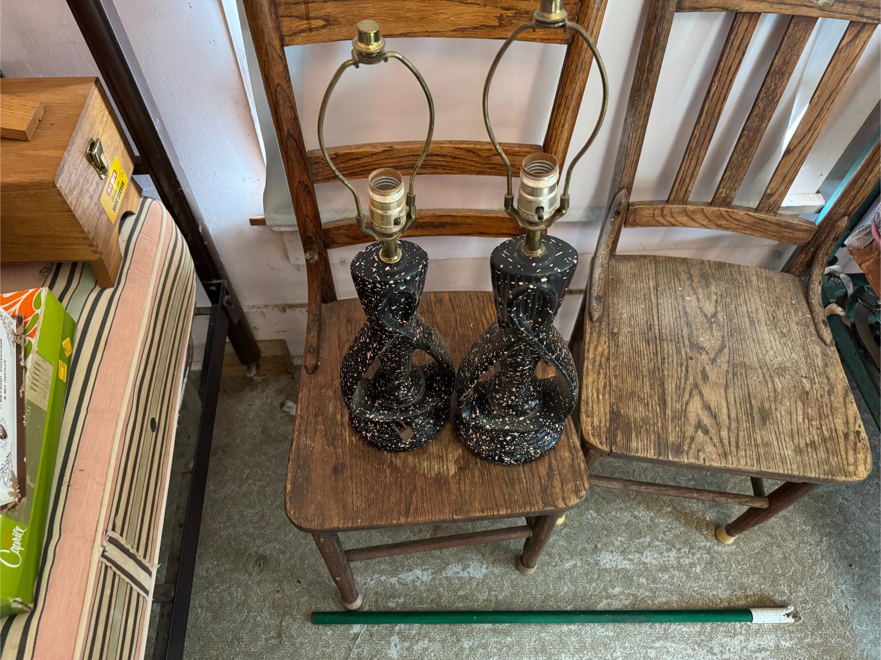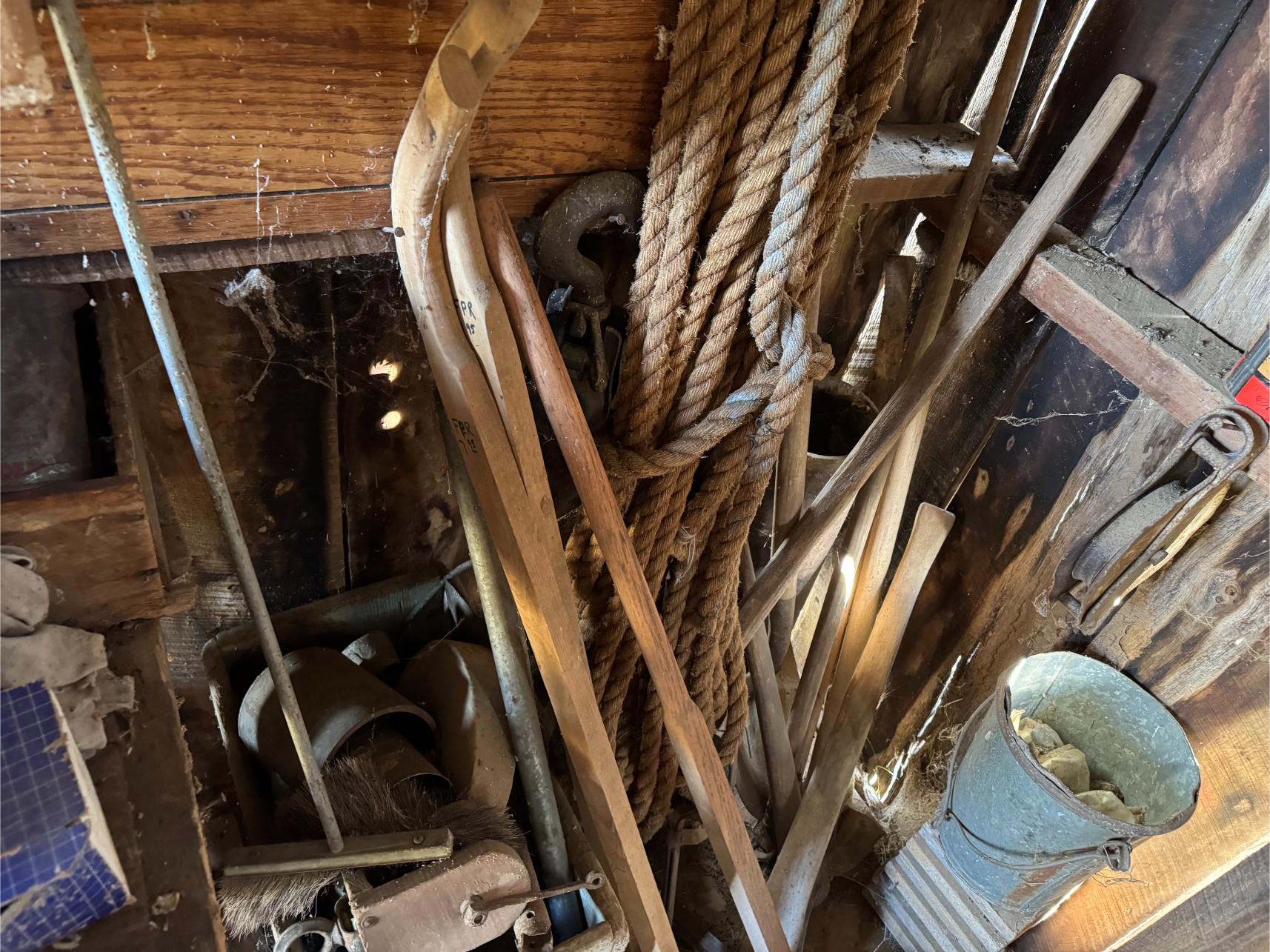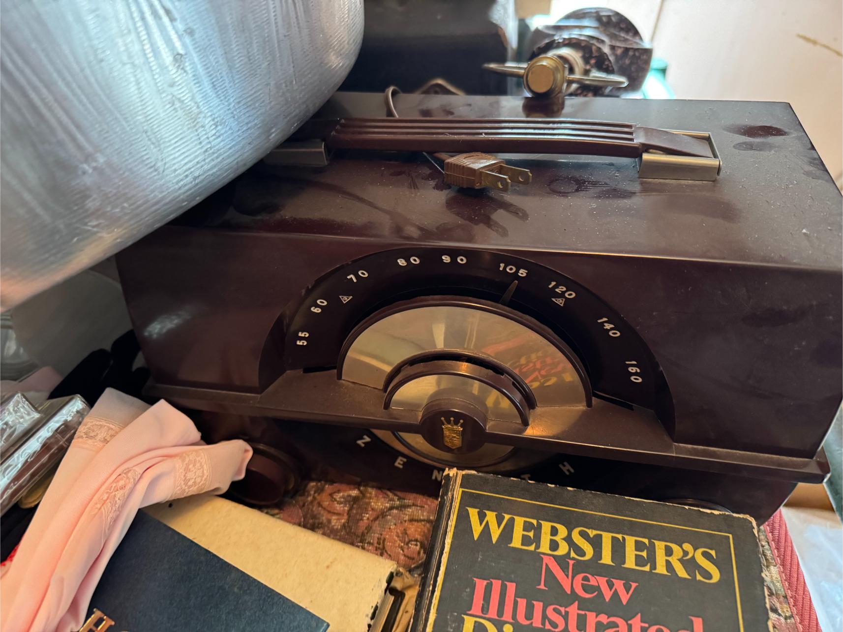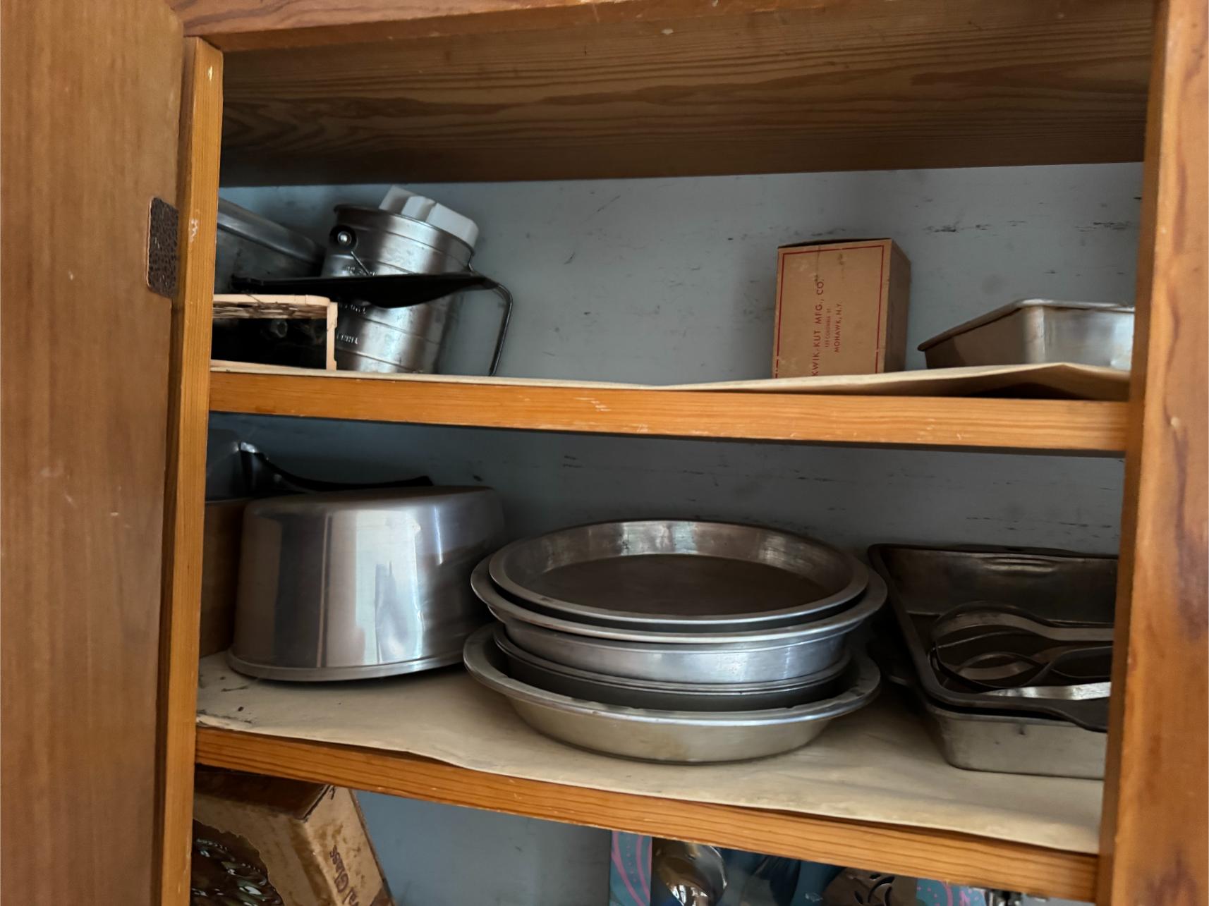 Antiques & Collectibles:Â Chrome Dinette & Chairs – Oak Kitchen Cabinet – Cherry End Table – Oak Chairs – Occasional Chairs – (3) Iron Beds – Metal Bed – Oak Serpentine Front Dresser – Dresser & Chest – Mahogany Dresser – Oak Wardrobe – Shelf – Concert Turn Table (in case) – Silvertone Mandolin – Zenith Radio – Singer Treadle Sewing Machine – Pipes – Razor Straps – Lamps – Kerosene Lamp – Cookie Jar – Pyrex – Melmac Dishes – Figurines – Crock – Stone Bowl – Iron Skillets – Cream Cans – Stetson Hat w/Box – Linens, Crochet – Clock – Big Ben Alarm Clocks – Wringer Washer – Galv Tub & Buckets – Grinding Stone on Stand – Wood Wagon Bows – The Harrand Company Organ – Saddles, Harness – Carpenter’s Box – Small Anvil – 2-Man Saws – Nail Keg – Hand Tools – Single Trees – Cotton Scales – Cow Bells – Well Pulleys – Vintage GamesÂ