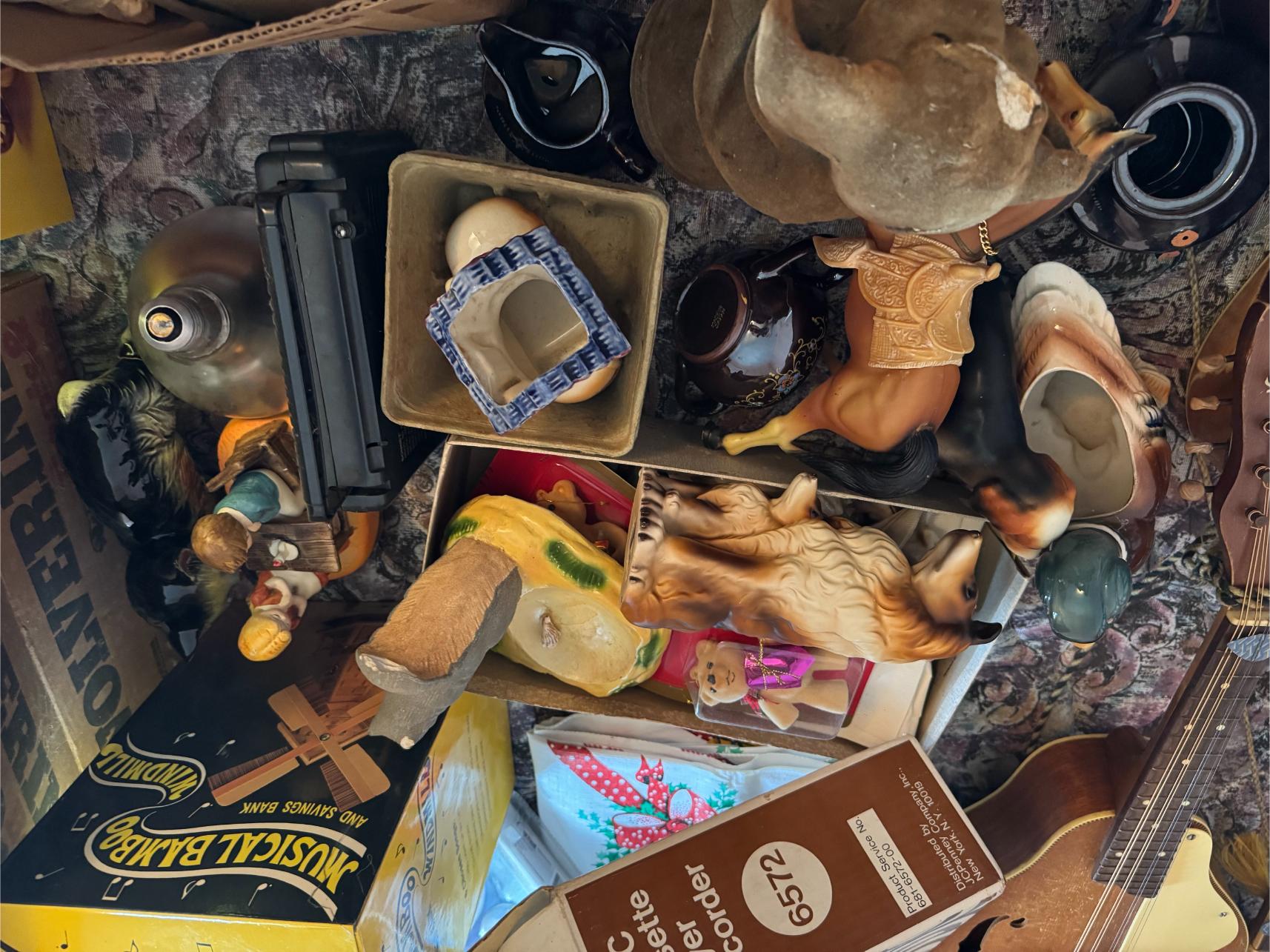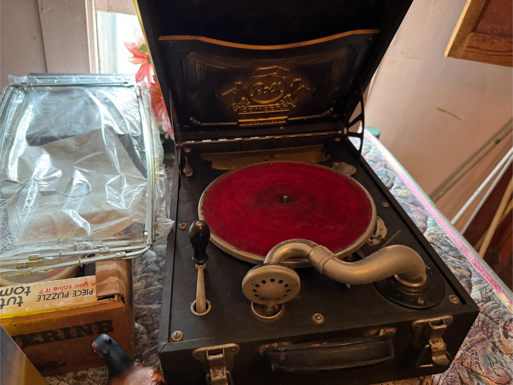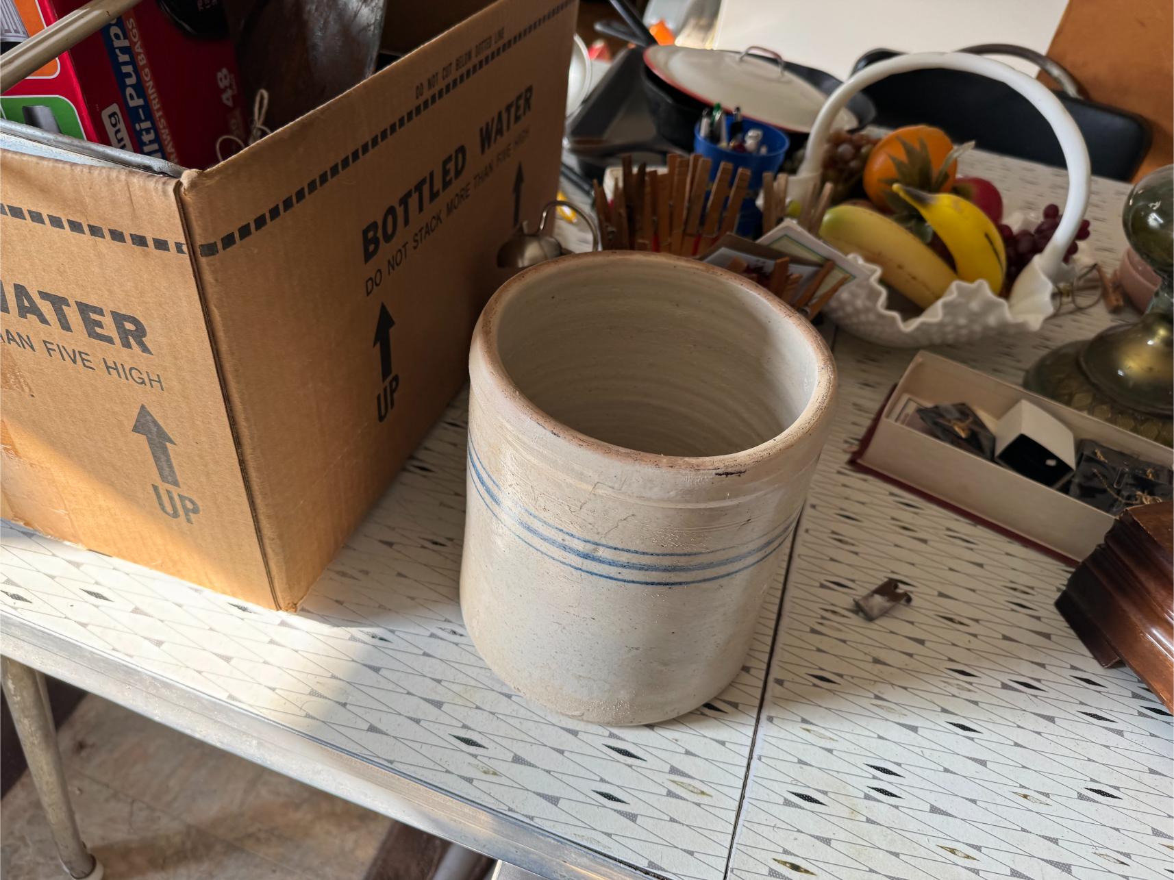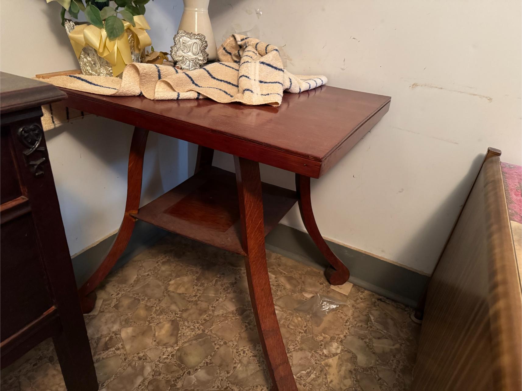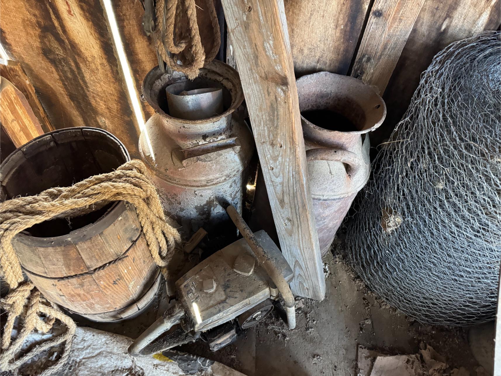 Antiques & Collectibles:Â Chrome Dinette & Chairs – Oak Kitchen Cabinet – Cherry End Table – Oak Chairs – Occasional Chairs – (3) Iron Beds – Metal Bed – Oak Serpentine Front Dresser – Dresser & Chest – Mahogany Dresser – Oak Wardrobe – Shelf – Concert Turn Table (in case) – Silvertone Mandolin – Zenith Radio – Singer Treadle Sewing Machine – Pipes – Razor Straps – Lamps – Kerosene Lamp – Cookie Jar – Pyrex – Melmac Dishes – Figurines – Crock – Stone Bowl – Iron Skillets – Cream Cans – Stetson Hat w/Box – Linens, Crochet – Clock – Big Ben Alarm Clocks – Wringer Washer – Galv Tub & Buckets – Grinding Stone on Stand – Wood Wagon Bows – The Harrand Company Organ – Saddles, Harness – Carpenter’s Box – Small Anvil – 2-Man Saws – Nail Keg – Hand Tools – Single Trees – Cotton Scales – Cow Bells – Well Pulleys – Vintage GamesÂ