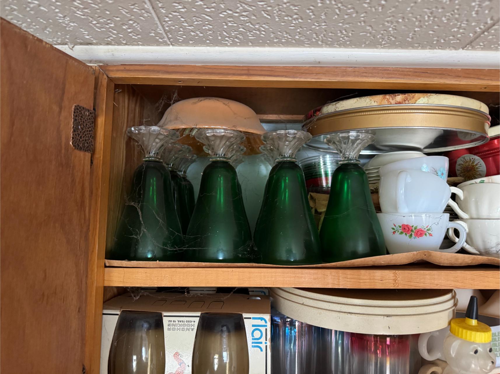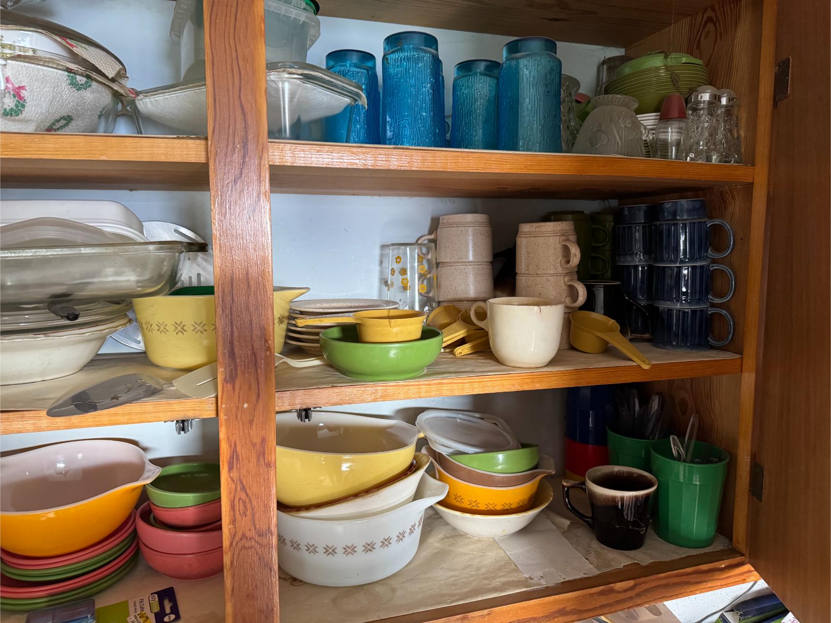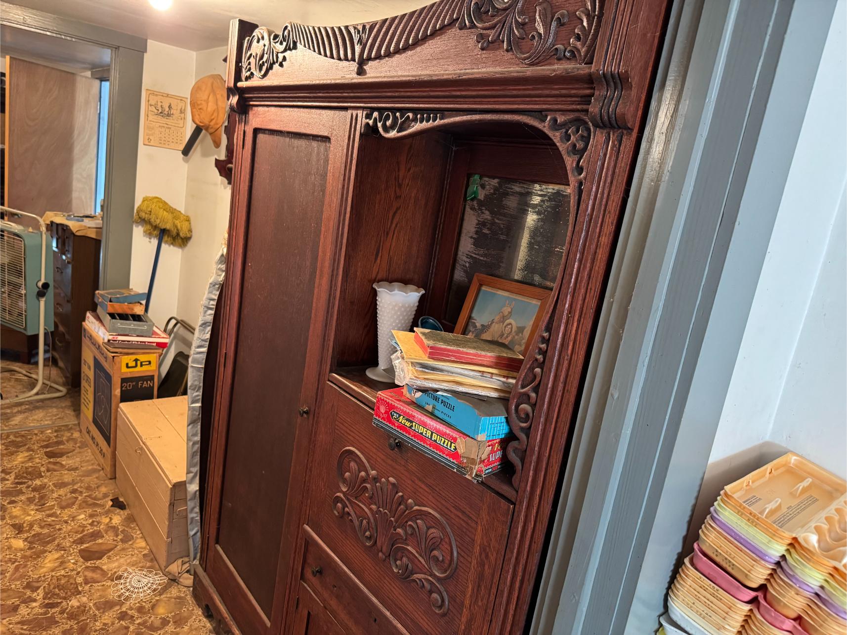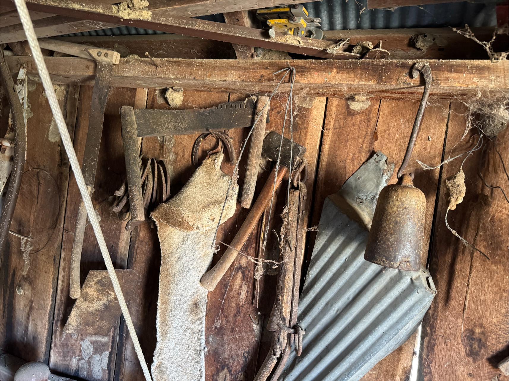 Antiques & Collectibles:Â Chrome Dinette & Chairs – Oak Kitchen Cabinet – Cherry End Table – Oak Chairs – Occasional Chairs – (3) Iron Beds – Metal Bed – Oak Serpentine Front Dresser – Dresser & Chest – Mahogany Dresser – Oak Wardrobe – Shelf – Concert Turn Table (in case) – Silvertone Mandolin – Zenith Radio – Singer Treadle Sewing Machine – Pipes – Razor Straps – Lamps – Kerosene Lamp – Cookie Jar – Pyrex – Melmac Dishes – Figurines – Crock – Stone Bowl – Iron Skillets – Cream Cans – Stetson Hat w/Box – Linens, Crochet – Clock – Big Ben Alarm Clocks – Wringer Washer – Galv Tub & Buckets – Grinding Stone on Stand – Wood Wagon Bows – The Harrand Company Organ – Saddles, Harness – Carpenter’s Box – Small Anvil – 2-Man Saws – Nail Keg – Hand Tools – Single Trees – Cotton Scales – Cow Bells – Well Pulleys – Vintage GamesÂ