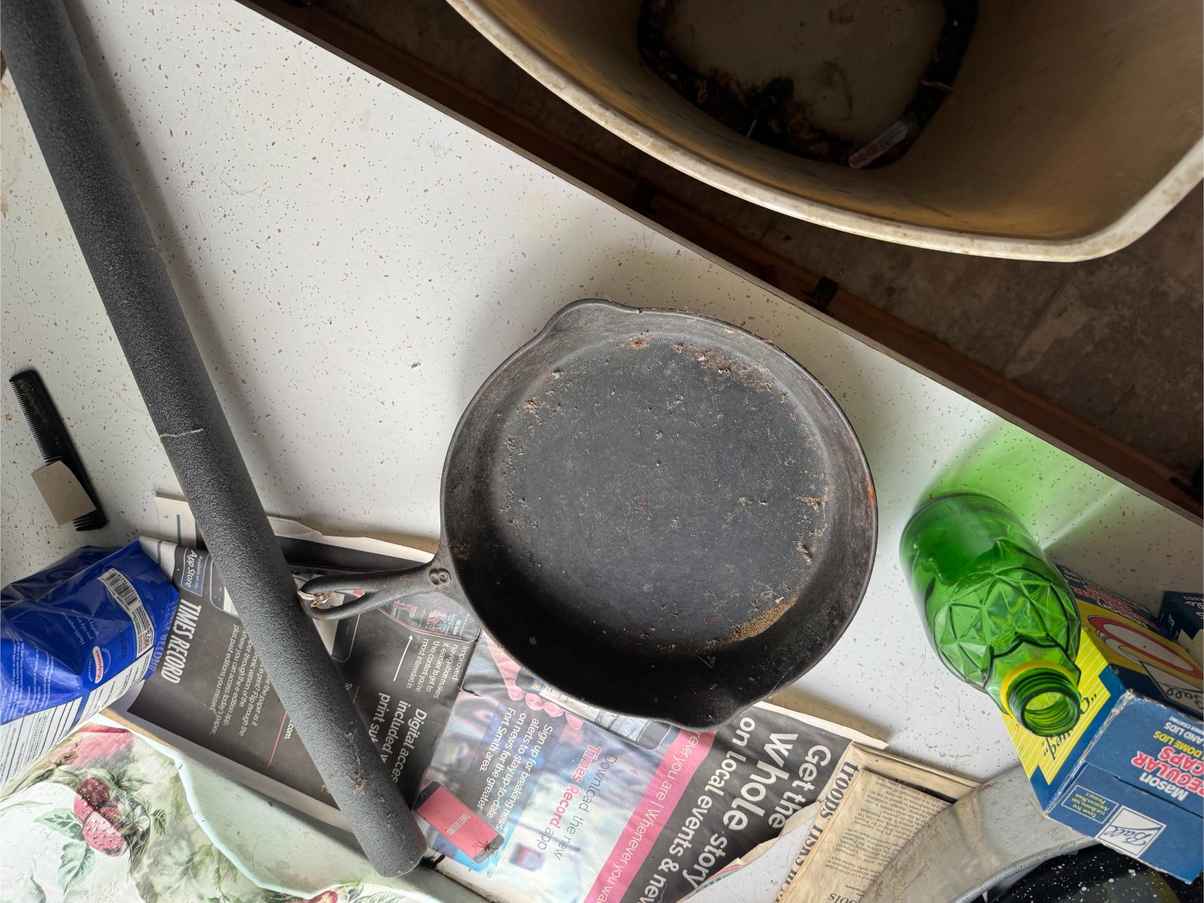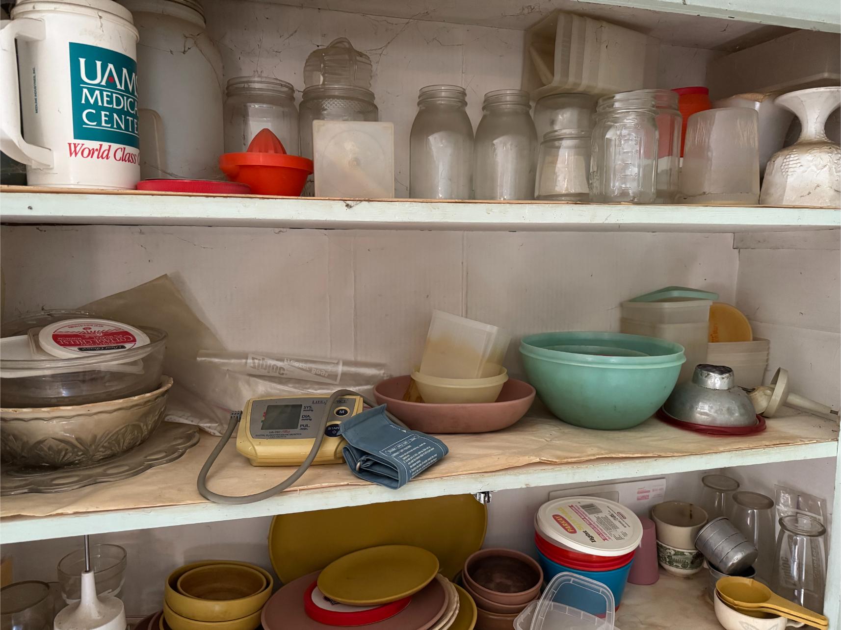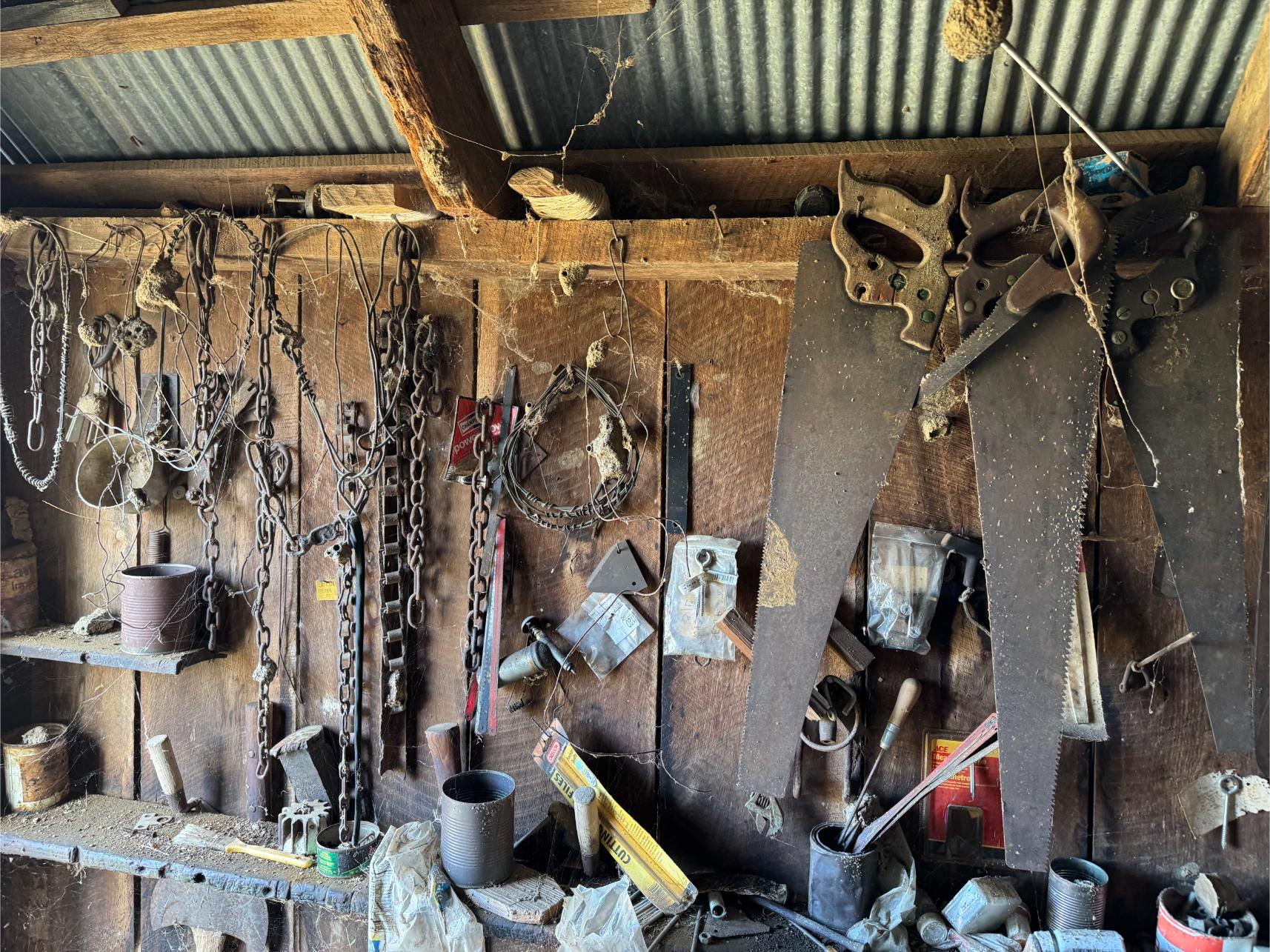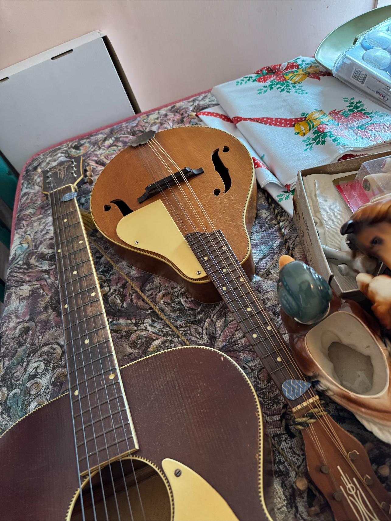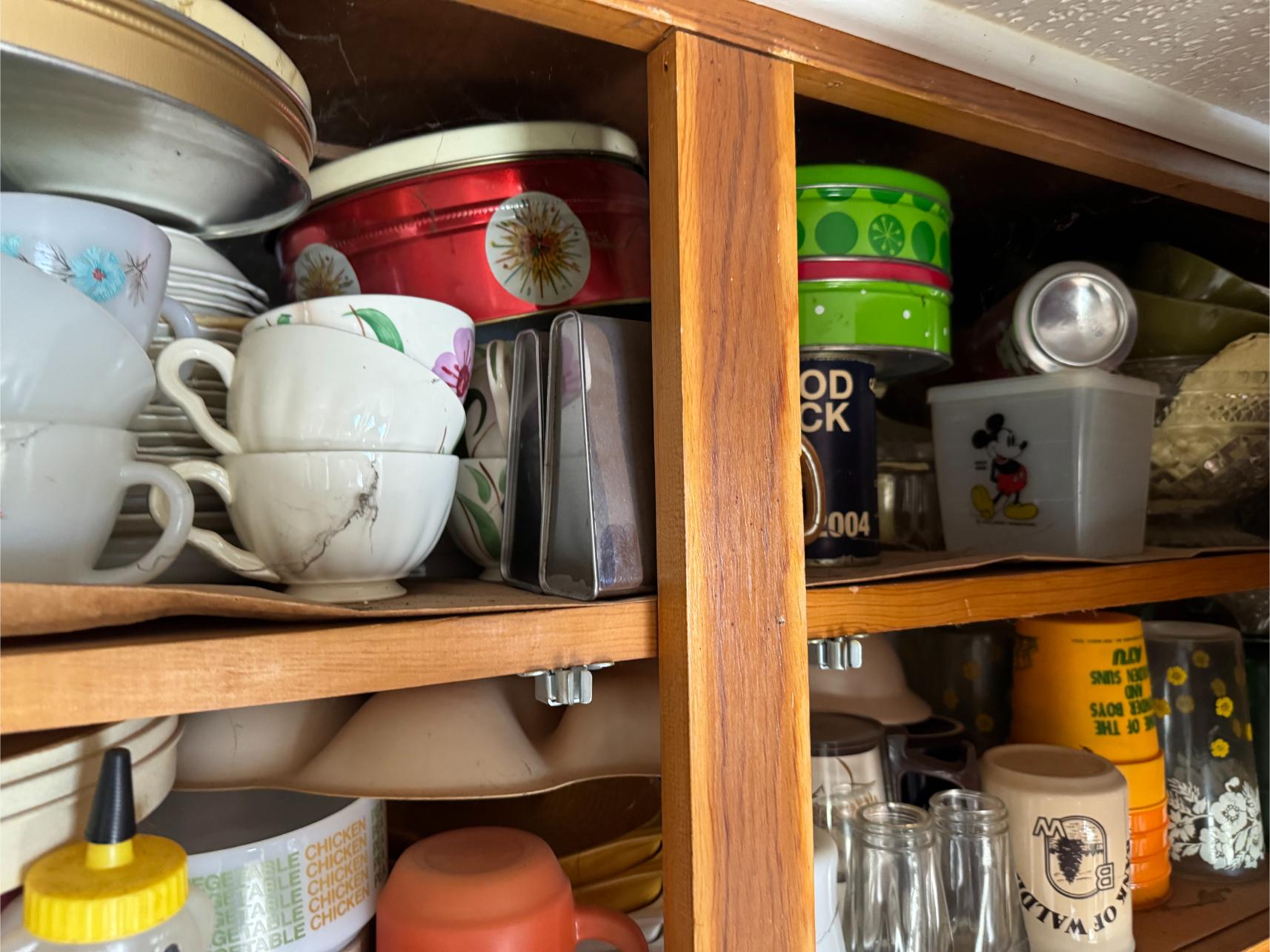 Antiques & Collectibles:Â Chrome Dinette & Chairs – Oak Kitchen Cabinet – Cherry End Table – Oak Chairs – Occasional Chairs – (3) Iron Beds – Metal Bed – Oak Serpentine Front Dresser – Dresser & Chest – Mahogany Dresser – Oak Wardrobe – Shelf – Concert Turn Table (in case) – Silvertone Mandolin – Zenith Radio – Singer Treadle Sewing Machine – Pipes – Razor Straps – Lamps – Kerosene Lamp – Cookie Jar – Pyrex – Melmac Dishes – Figurines – Crock – Stone Bowl – Iron Skillets – Cream Cans – Stetson Hat w/Box – Linens, Crochet – Clock – Big Ben Alarm Clocks – Wringer Washer – Galv Tub & Buckets – Grinding Stone on Stand – Wood Wagon Bows – The Harrand Company Organ – Saddles, Harness – Carpenter’s Box – Small Anvil – 2-Man Saws – Nail Keg – Hand Tools – Single Trees – Cotton Scales – Cow Bells – Well Pulleys – Vintage GamesÂ