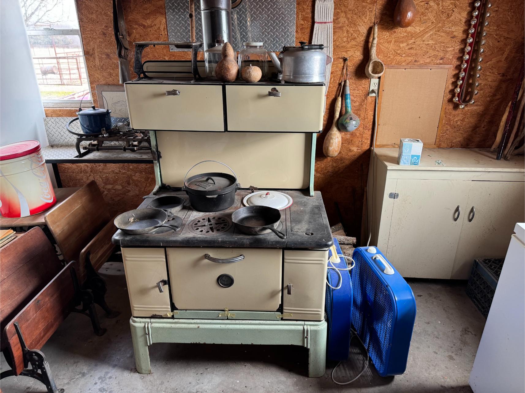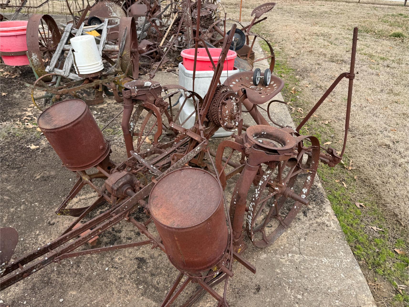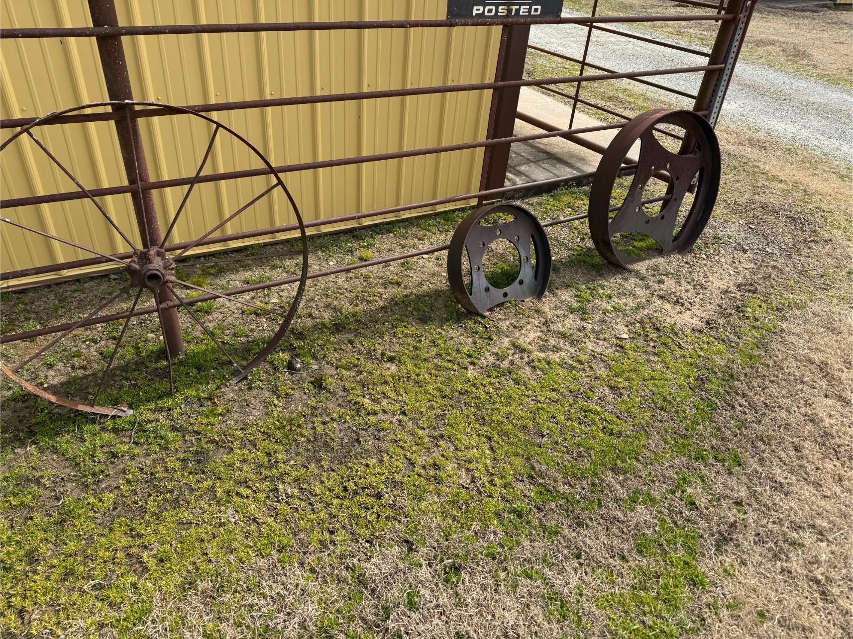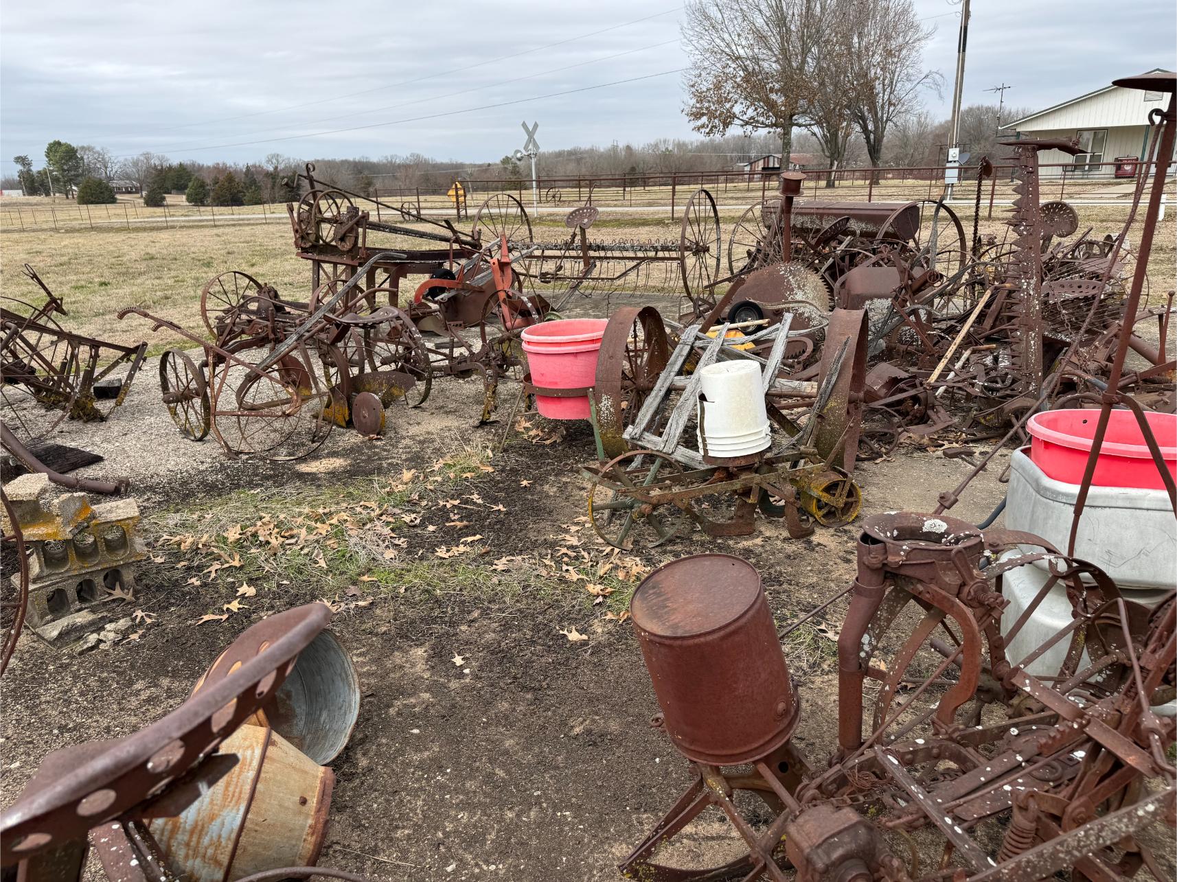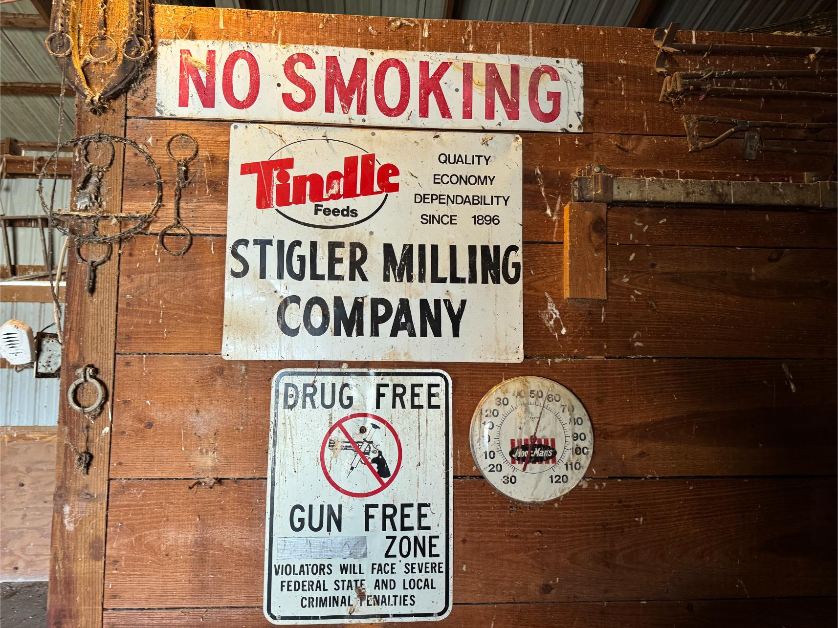 Antiques & Collectibles:Â Oak Kitchen Cabinet – Oak Table & 6 Ladder Back Chairs – Pie Safe – Oak Washstand – Oak Curio – Center Table – Produce Cart – Acme Ice Cream Freezer – Rockers – School Desk – 6′ Showcase – Enamel Cook Stove – Iron Bed – Oak Dresser – Treadle Sewing Machine – Camel Back & Sq Trunks – Lane Cedar Chest – Wrought Iron Tables & Chairs – Oak High Chair – Glass & Wood Churns – #4 Churn – #3, #5 & #10 Crocks – Crock Bowls – Stoneware Bowls & Cookie Jar – McCoy & Hull Pottery – Fire King Bowls & Cups – Green Tea Glasses – Snuff Glasses – Green Oatmeal Dishes – Carnival Glass – Franciscan Desert Rose Dishes – Tom & Jerry Bowl & Cups – Milk Glass – Wexford – Head Vases – Glass Baskets – Scottie Dog Collection – S&P Collection – Refrigerator Dishes – Cast Iron Skillets – Medicine Bottles – Enamel Coffee Pot – Glass Paper Weights – Marbles – Egg Scale – Fans – Purses – Pictures – Costume Jewelry – Sewing Box – Longaberger Basket – Thermometers – Kerosene Lamps – Aladdin Lamps – Butter Molds – Rope Box – Post Cards – Tin Toys – Barbie & Cabbage Patch Dolls – Stigler Drug Co Cash Register & Stand – Crank Telephone – Lanterns – Rub Boards – Wagon Hub – Mannequin – Sad Irons – Rocking Horse – Tricycles – Wood Chicken Coop – Chicken Feeder – Push Garden Plows – Coke Box – Iron Wheels – Egg Basket & Crate – Well Pulley – Ice Tongs – Painted Saw Blades – 2-Man Saws – Cow Skulls – Walking Sticks – Cow Bells – Iron Wash Pot – Metal Lawn Chairs – Corn Sheller & Box – Cream Cans – Water Pump – Tractor Seats – Whiskey Barrels – Cotton Scales – Hames – Platform Scales – Purina Scale – RR Crossing Sign & Light – Metal Tindle Feed Sign – Dekalb Seed Dealer Sign – Texas Cattleman Sign – Cast Iron Bells – Telephone Booth