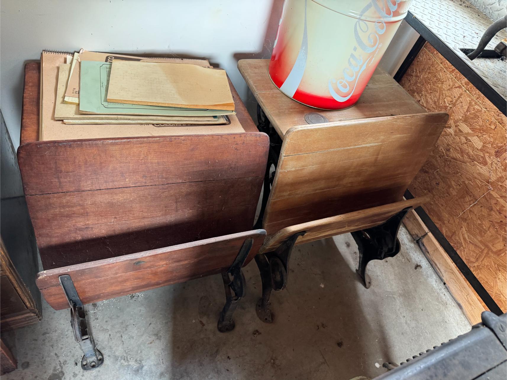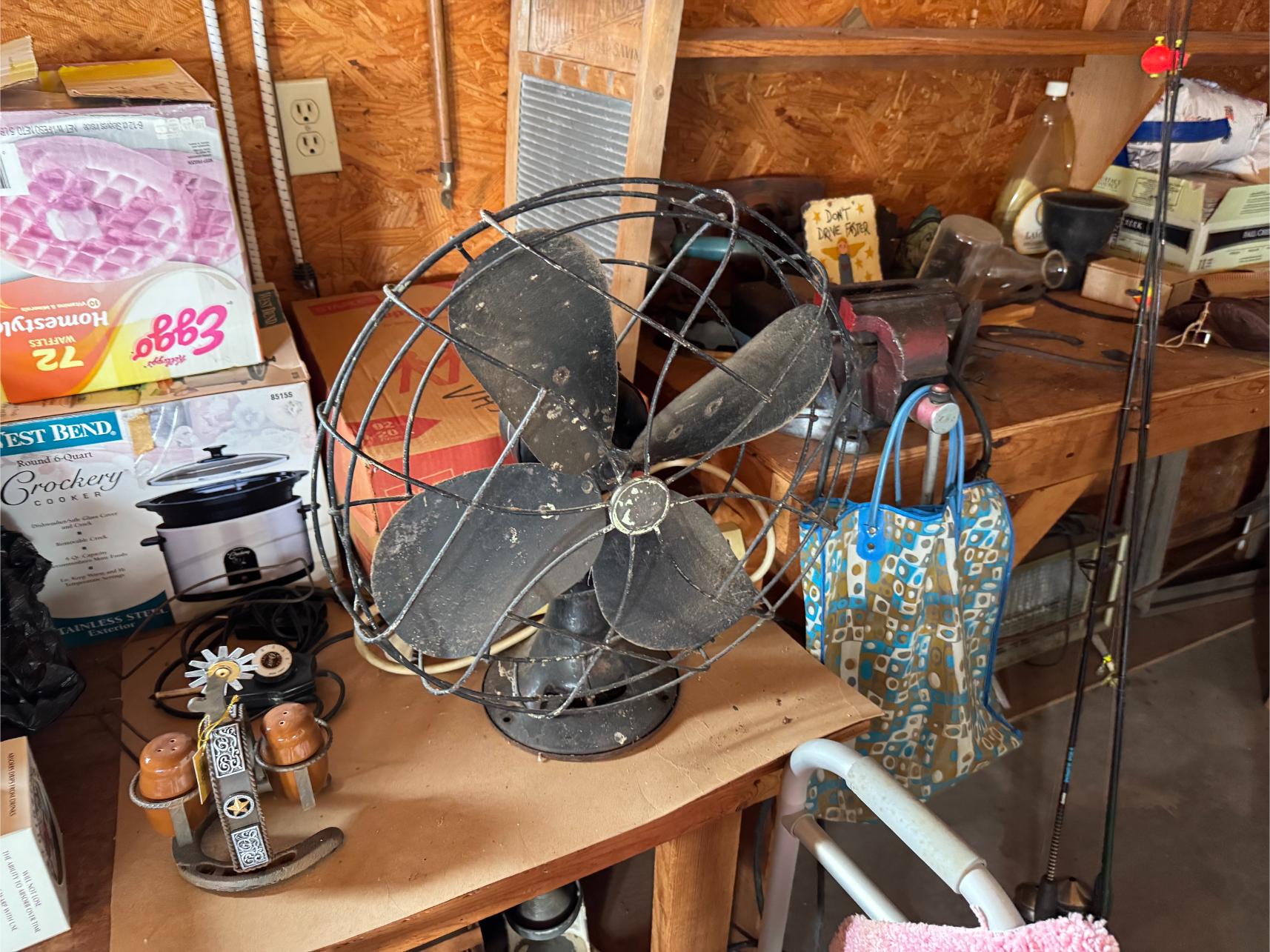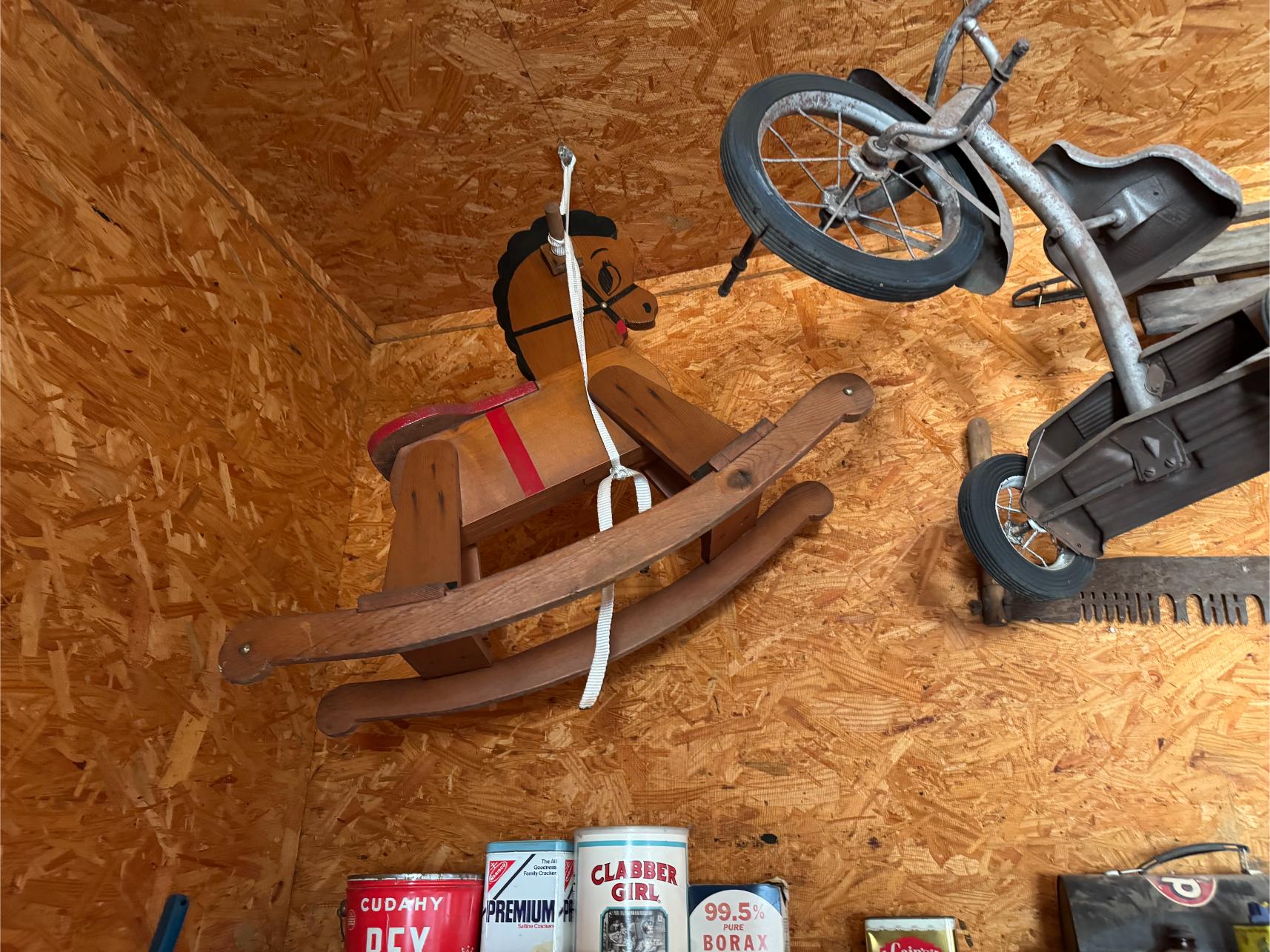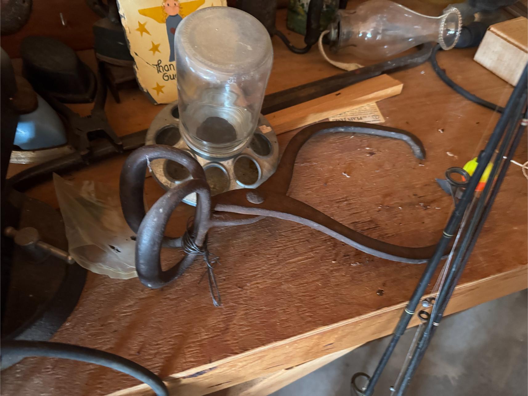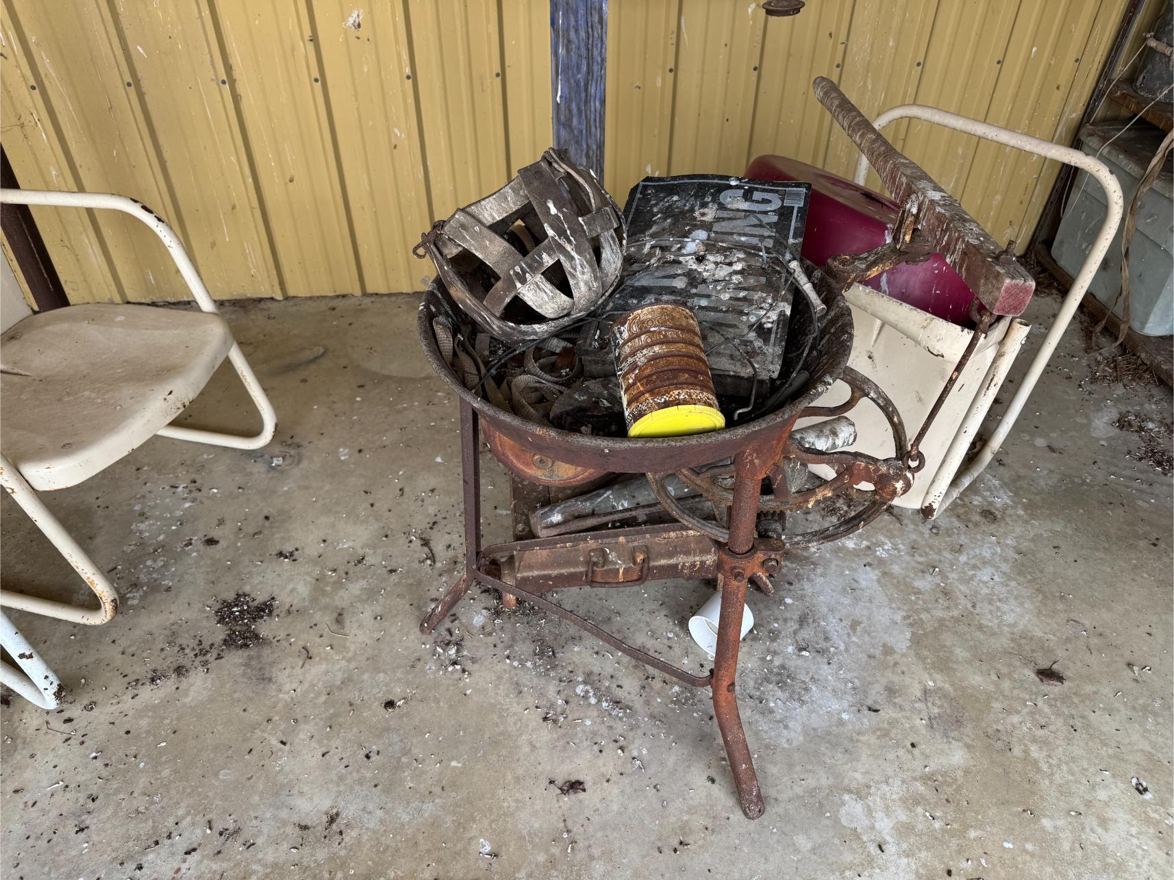 Antiques & Collectibles:Â Oak Kitchen Cabinet – Oak Table & 6 Ladder Back Chairs – Pie Safe – Oak Washstand – Oak Curio – Center Table – Produce Cart – Acme Ice Cream Freezer – Rockers – School Desk – 6′ Showcase – Enamel Cook Stove – Iron Bed – Oak Dresser – Treadle Sewing Machine – Camel Back & Sq Trunks – Lane Cedar Chest – Wrought Iron Tables & Chairs – Oak High Chair – Glass & Wood Churns – #4 Churn – #3, #5 & #10 Crocks – Crock Bowls – Stoneware Bowls & Cookie Jar – McCoy & Hull Pottery – Fire King Bowls & Cups – Green Tea Glasses – Snuff Glasses – Green Oatmeal Dishes – Carnival Glass – Franciscan Desert Rose Dishes – Tom & Jerry Bowl & Cups – Milk Glass – Wexford – Head Vases – Glass Baskets – Scottie Dog Collection – S&P Collection – Refrigerator Dishes – Cast Iron Skillets – Medicine Bottles – Enamel Coffee Pot – Glass Paper Weights – Marbles – Egg Scale – Fans – Purses – Pictures – Costume Jewelry – Sewing Box – Longaberger Basket – Thermometers – Kerosene Lamps – Aladdin Lamps – Butter Molds – Rope Box – Post Cards – Tin Toys – Barbie & Cabbage Patch Dolls – Stigler Drug Co Cash Register & Stand – Crank Telephone – Lanterns – Rub Boards – Wagon Hub – Mannequin – Sad Irons – Rocking Horse – Tricycles – Wood Chicken Coop – Chicken Feeder – Push Garden Plows – Coke Box – Iron Wheels – Egg Basket & Crate – Well Pulley – Ice Tongs – Painted Saw Blades – 2-Man Saws – Cow Skulls – Walking Sticks – Cow Bells – Iron Wash Pot – Metal Lawn Chairs – Corn Sheller & Box – Cream Cans – Water Pump – Tractor Seats – Whiskey Barrels – Cotton Scales – Hames – Platform Scales – Purina Scale – RR Crossing Sign & Light – Metal Tindle Feed Sign – Dekalb Seed Dealer Sign – Texas Cattleman Sign – Cast Iron Bells – Telephone Booth
