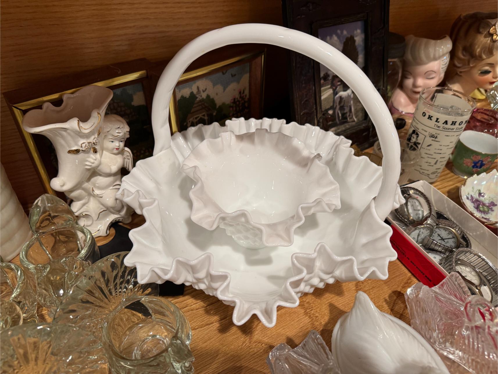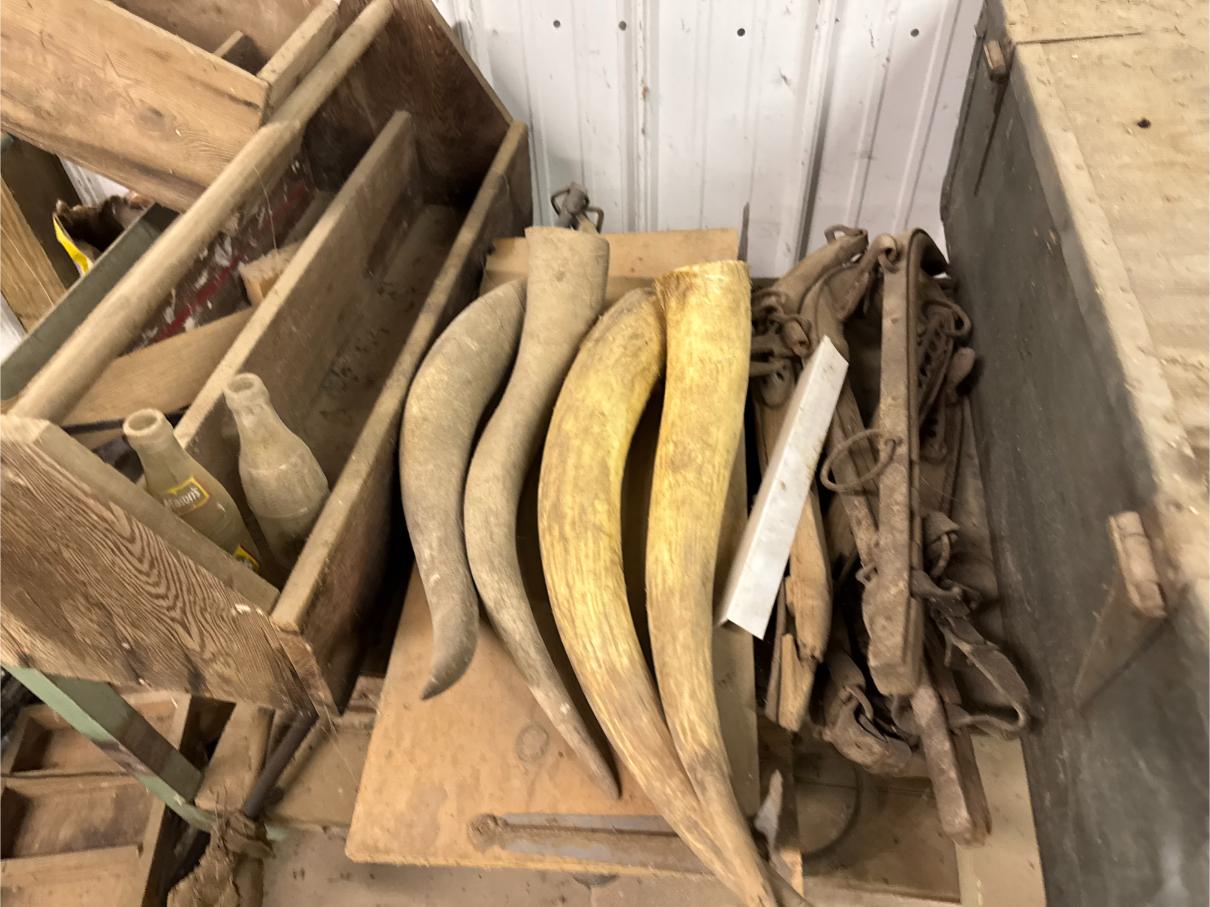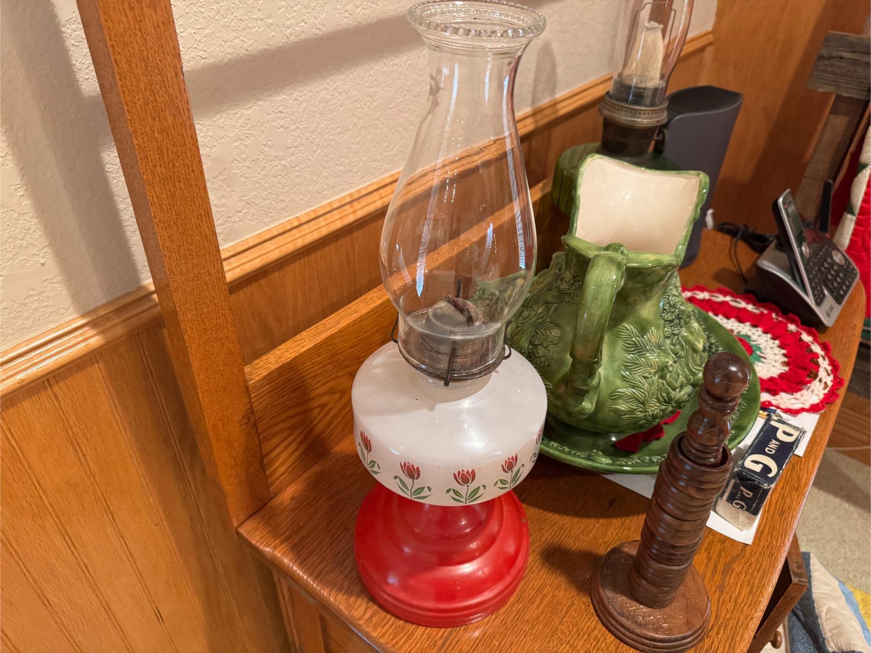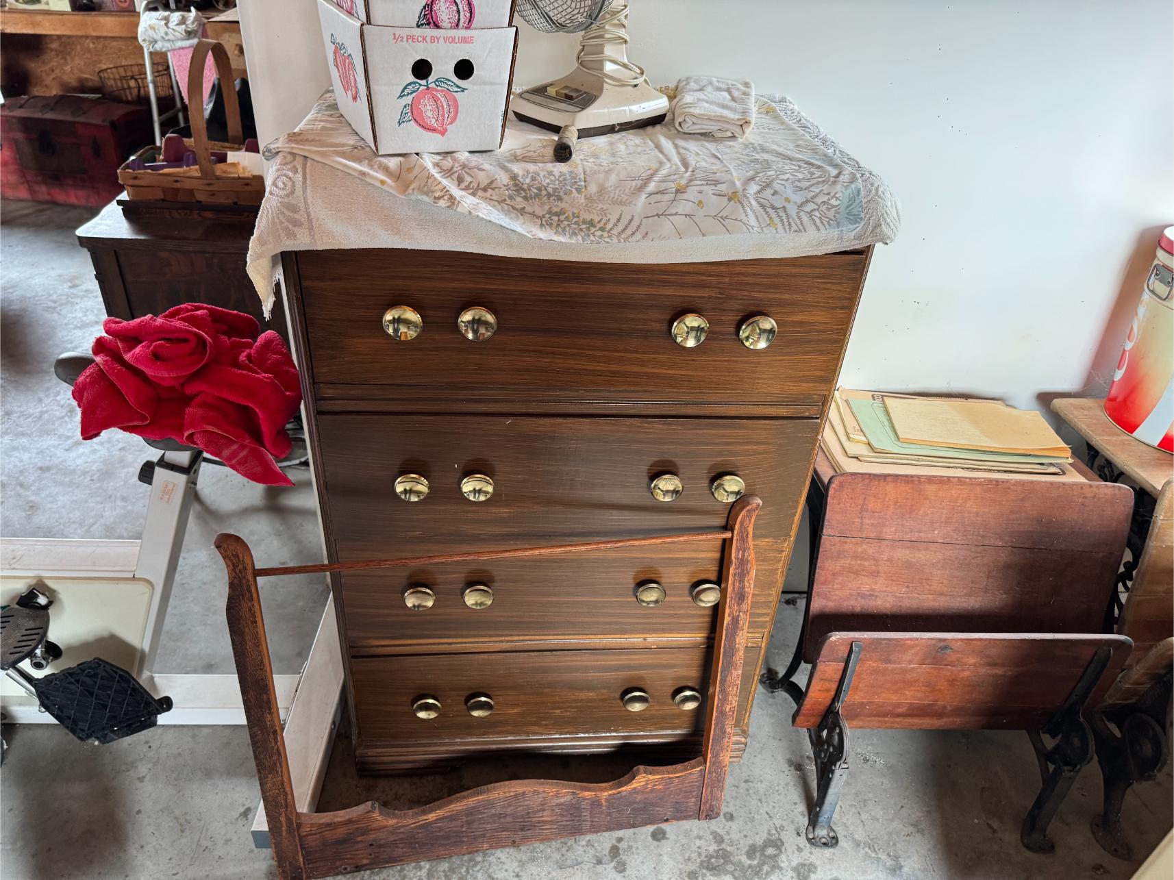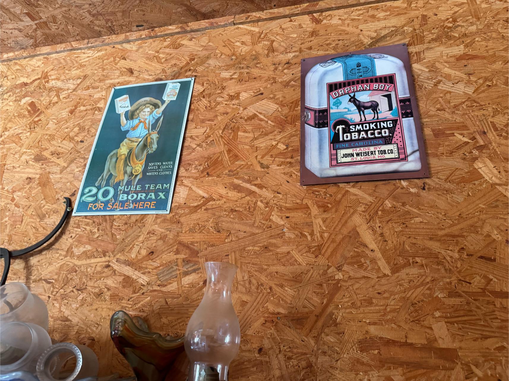 Antiques & Collectibles:Â Oak Kitchen Cabinet – Oak Table & 6 Ladder Back Chairs – Pie Safe – Oak Washstand – Oak Curio – Center Table – Produce Cart – Acme Ice Cream Freezer – Rockers – School Desk – 6′ Showcase – Enamel Cook Stove – Iron Bed – Oak Dresser – Treadle Sewing Machine – Camel Back & Sq Trunks – Lane Cedar Chest – Wrought Iron Tables & Chairs – Oak High Chair – Glass & Wood Churns – #4 Churn – #3, #5 & #10 Crocks – Crock Bowls – Stoneware Bowls & Cookie Jar – McCoy & Hull Pottery – Fire King Bowls & Cups – Green Tea Glasses – Snuff Glasses – Green Oatmeal Dishes – Carnival Glass – Franciscan Desert Rose Dishes – Tom & Jerry Bowl & Cups – Milk Glass – Wexford – Head Vases – Glass Baskets – Scottie Dog Collection – S&P Collection – Refrigerator Dishes – Cast Iron Skillets – Medicine Bottles – Enamel Coffee Pot – Glass Paper Weights – Marbles – Egg Scale – Fans – Purses – Pictures – Costume Jewelry – Sewing Box – Longaberger Basket – Thermometers – Kerosene Lamps – Aladdin Lamps – Butter Molds – Rope Box – Post Cards – Tin Toys – Barbie & Cabbage Patch Dolls – Stigler Drug Co Cash Register & Stand – Crank Telephone – Lanterns – Rub Boards – Wagon Hub – Mannequin – Sad Irons – Rocking Horse – Tricycles – Wood Chicken Coop – Chicken Feeder – Push Garden Plows – Coke Box – Iron Wheels – Egg Basket & Crate – Well Pulley – Ice Tongs – Painted Saw Blades – 2-Man Saws – Cow Skulls – Walking Sticks – Cow Bells – Iron Wash Pot – Metal Lawn Chairs – Corn Sheller & Box – Cream Cans – Water Pump – Tractor Seats – Whiskey Barrels – Cotton Scales – Hames – Platform Scales – Purina Scale – RR Crossing Sign & Light – Metal Tindle Feed Sign – Dekalb Seed Dealer Sign – Texas Cattleman Sign – Cast Iron Bells – Telephone Booth