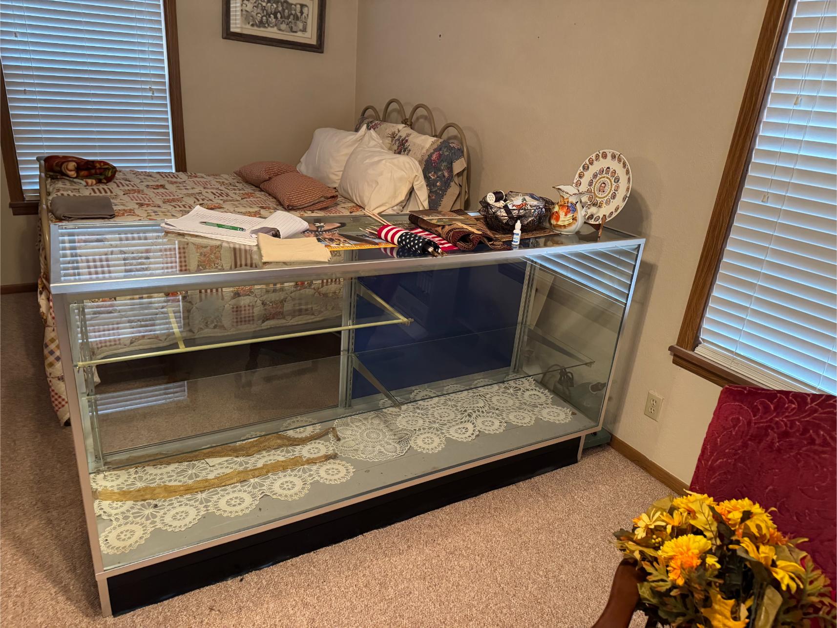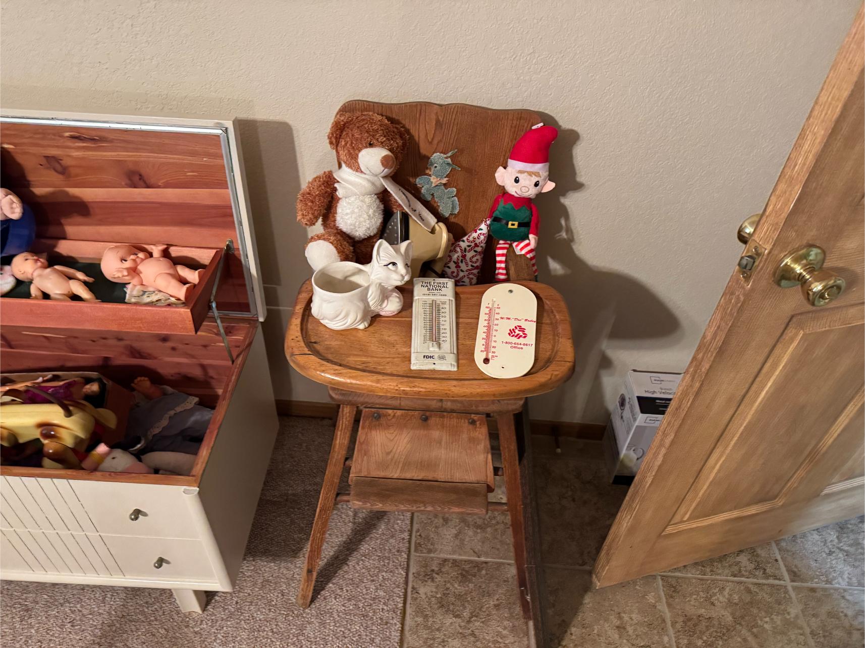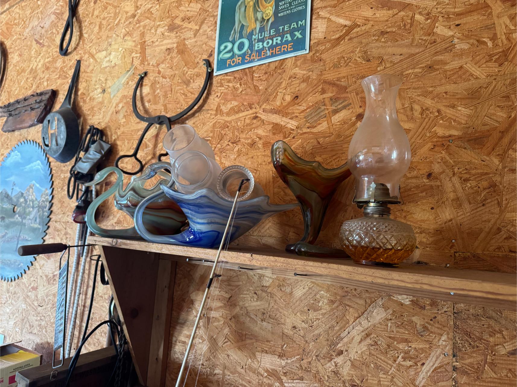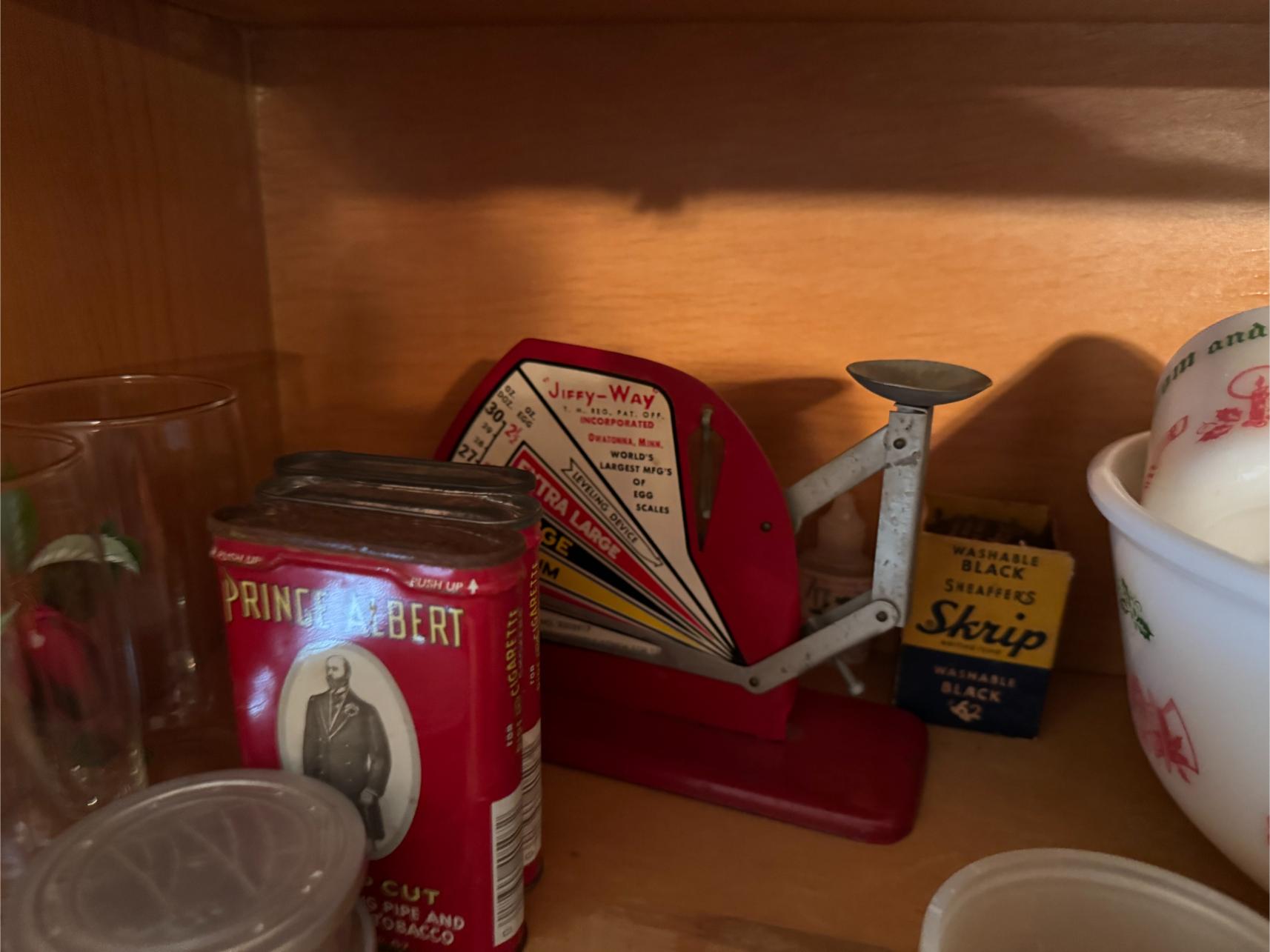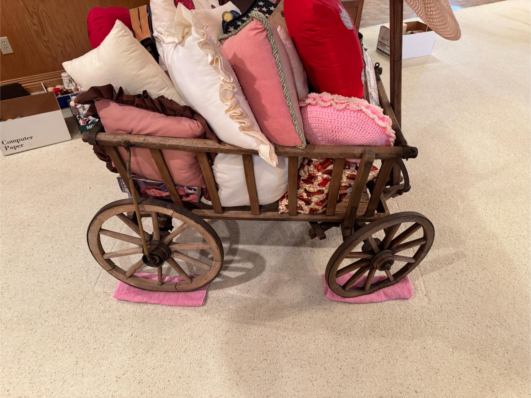Antiques & Collectibles:Â Oak Kitchen Cabinet – Oak Table & 6 Ladder Back Chairs – Pie Safe – Oak Washstand – Oak Curio – Center Table – Produce Cart – Acme Ice Cream Freezer – Rockers – School Desk – 6′ Showcase – Enamel Cook Stove – Iron Bed – Oak Dresser – Treadle Sewing Machine – Camel Back & Sq Trunks – Lane Cedar Chest – Wrought Iron Tables & Chairs – Oak High Chair – Glass & Wood Churns – #4 Churn – #3, #5 & #10 Crocks – Crock Bowls – Stoneware Bowls & Cookie Jar – McCoy & Hull Pottery – Fire King Bowls & Cups – Green Tea Glasses – Snuff Glasses – Green Oatmeal Dishes – Carnival Glass – Franciscan Desert Rose Dishes – Tom & Jerry Bowl & Cups – Milk Glass – Wexford – Head Vases – Glass Baskets – Scottie Dog Collection – S&P Collection – Refrigerator Dishes – Cast Iron Skillets – Medicine Bottles – Enamel Coffee Pot – Glass Paper Weights – Marbles – Egg Scale – Fans – Purses – Pictures – Costume Jewelry – Sewing Box – Longaberger Basket – Thermometers – Kerosene Lamps – Aladdin Lamps – Butter Molds – Rope Box – Post Cards – Tin Toys – Barbie & Cabbage Patch Dolls – Stigler Drug Co Cash Register & Stand – Crank Telephone – Lanterns – Rub Boards – Wagon Hub – Mannequin – Sad Irons – Rocking Horse – Tricycles – Wood Chicken Coop – Chicken Feeder – Push Garden Plows – Coke Box – Iron Wheels – Egg Basket & Crate – Well Pulley – Ice Tongs – Painted Saw Blades – 2-Man Saws – Cow Skulls – Walking Sticks – Cow Bells – Iron Wash Pot – Metal Lawn Chairs – Corn Sheller & Box – Cream Cans – Water Pump – Tractor Seats – Whiskey Barrels – Cotton Scales – Hames – Platform Scales – Purina Scale – RR Crossing Sign & Light – Metal Tindle Feed Sign – Dekalb Seed Dealer Sign – Texas Cattleman Sign – Cast Iron Bells – Telephone Booth