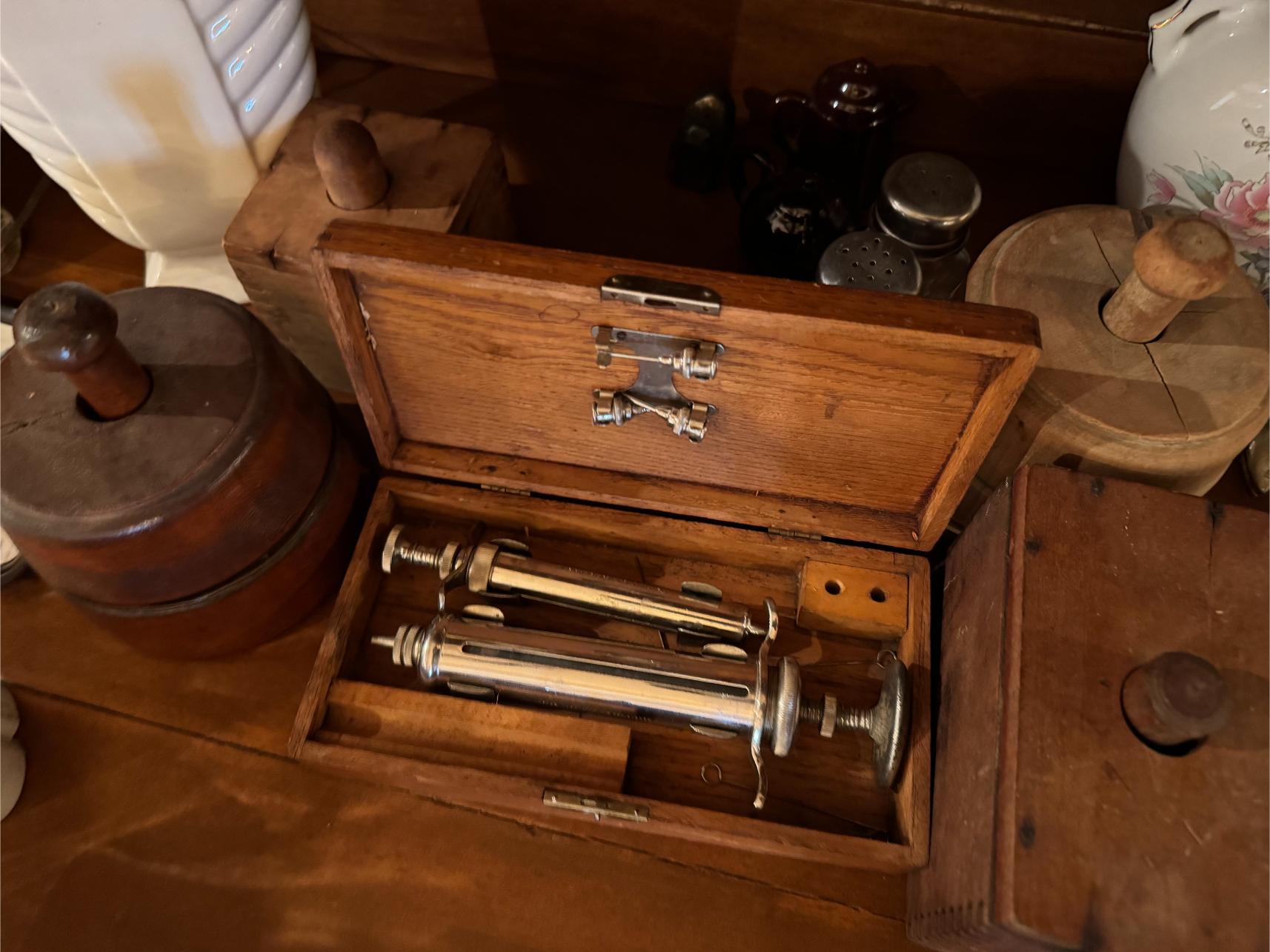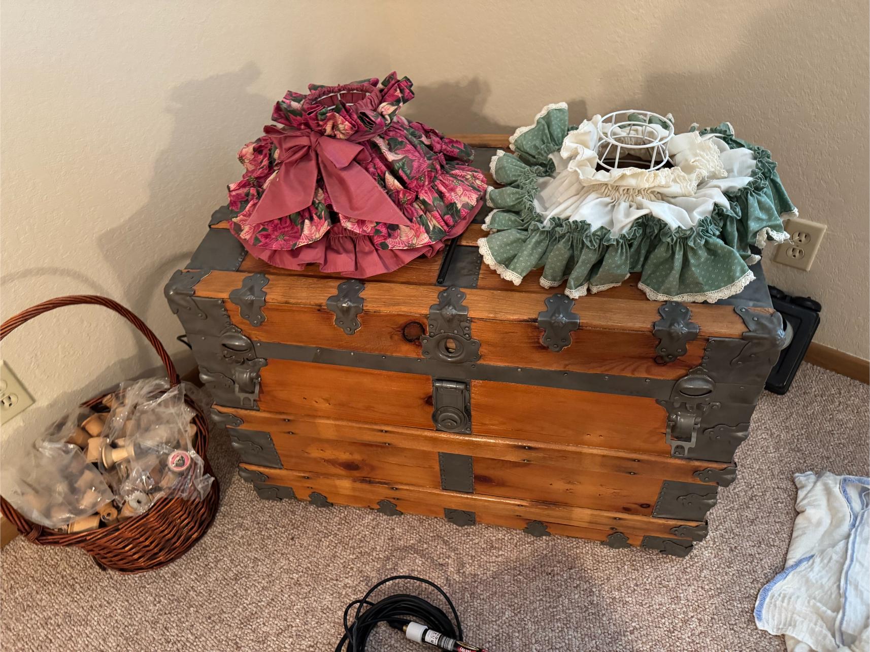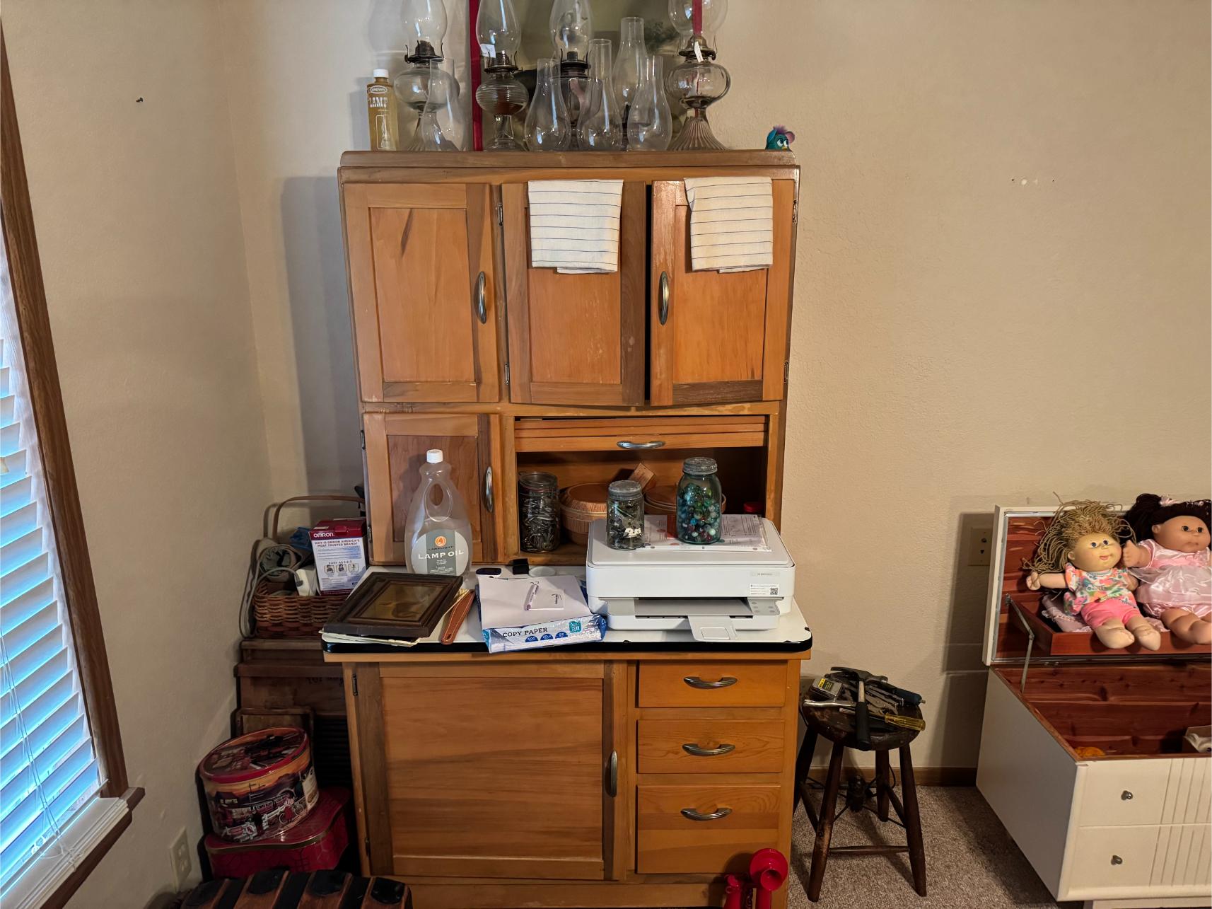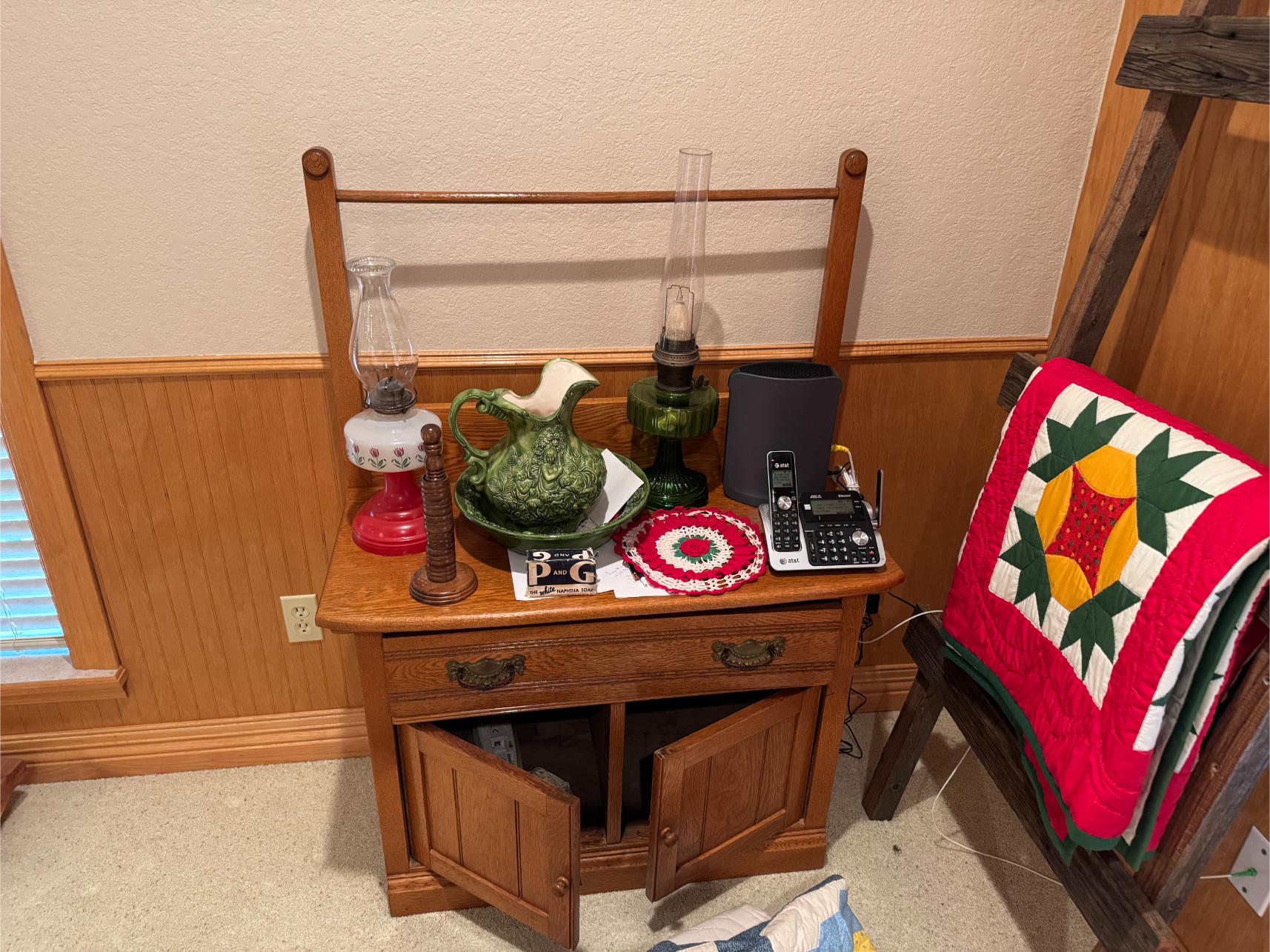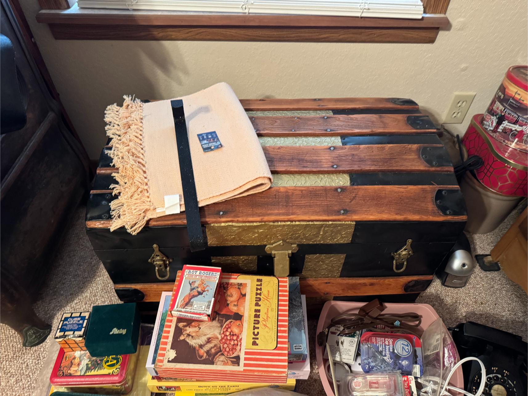 Antiques & Collectibles:Â Oak Kitchen Cabinet – Oak Table & 6 Ladder Back Chairs – Pie Safe – Oak Washstand – Oak Curio – Center Table – Produce Cart – Acme Ice Cream Freezer – Rockers – School Desk – 6′ Showcase – Enamel Cook Stove – Iron Bed – Oak Dresser – Treadle Sewing Machine – Camel Back & Sq Trunks – Lane Cedar Chest – Wrought Iron Tables & Chairs – Oak High Chair – Glass & Wood Churns – #4 Churn – #3, #5 & #10 Crocks – Crock Bowls – Stoneware Bowls & Cookie Jar – McCoy & Hull Pottery – Fire King Bowls & Cups – Green Tea Glasses – Snuff Glasses – Green Oatmeal Dishes – Carnival Glass – Franciscan Desert Rose Dishes – Tom & Jerry Bowl & Cups – Milk Glass – Wexford – Head Vases – Glass Baskets – Scottie Dog Collection – S&P Collection – Refrigerator Dishes – Cast Iron Skillets – Medicine Bottles – Enamel Coffee Pot – Glass Paper Weights – Marbles – Egg Scale – Fans – Purses – Pictures – Costume Jewelry – Sewing Box – Longaberger Basket – Thermometers – Kerosene Lamps – Aladdin Lamps – Butter Molds – Rope Box – Post Cards – Tin Toys – Barbie & Cabbage Patch Dolls – Stigler Drug Co Cash Register & Stand – Crank Telephone – Lanterns – Rub Boards – Wagon Hub – Mannequin – Sad Irons – Rocking Horse – Tricycles – Wood Chicken Coop – Chicken Feeder – Push Garden Plows – Coke Box – Iron Wheels – Egg Basket & Crate – Well Pulley – Ice Tongs – Painted Saw Blades – 2-Man Saws – Cow Skulls – Walking Sticks – Cow Bells – Iron Wash Pot – Metal Lawn Chairs – Corn Sheller & Box – Cream Cans – Water Pump – Tractor Seats – Whiskey Barrels – Cotton Scales – Hames – Platform Scales – Purina Scale – RR Crossing Sign & Light – Metal Tindle Feed Sign – Dekalb Seed Dealer Sign – Texas Cattleman Sign – Cast Iron Bells – Telephone Booth