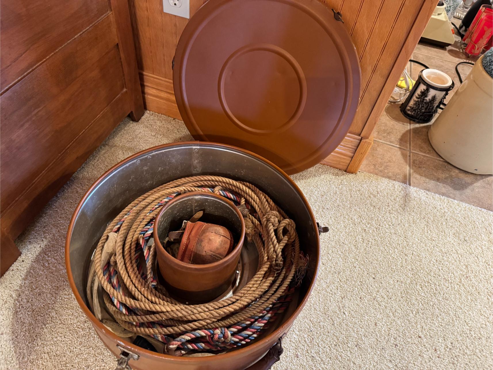 Household:Â Breakfast Table & 2 Chairs – TV – Hot Point Washer & Dryer – Roper Washer – Whirlpool Upright Freezer – Amana Chest Freezer – GE Microwave – Small Appliances – SS Bowls – Linens, Clothing – Cowboy Boots – Treadmill – BBQ Grills