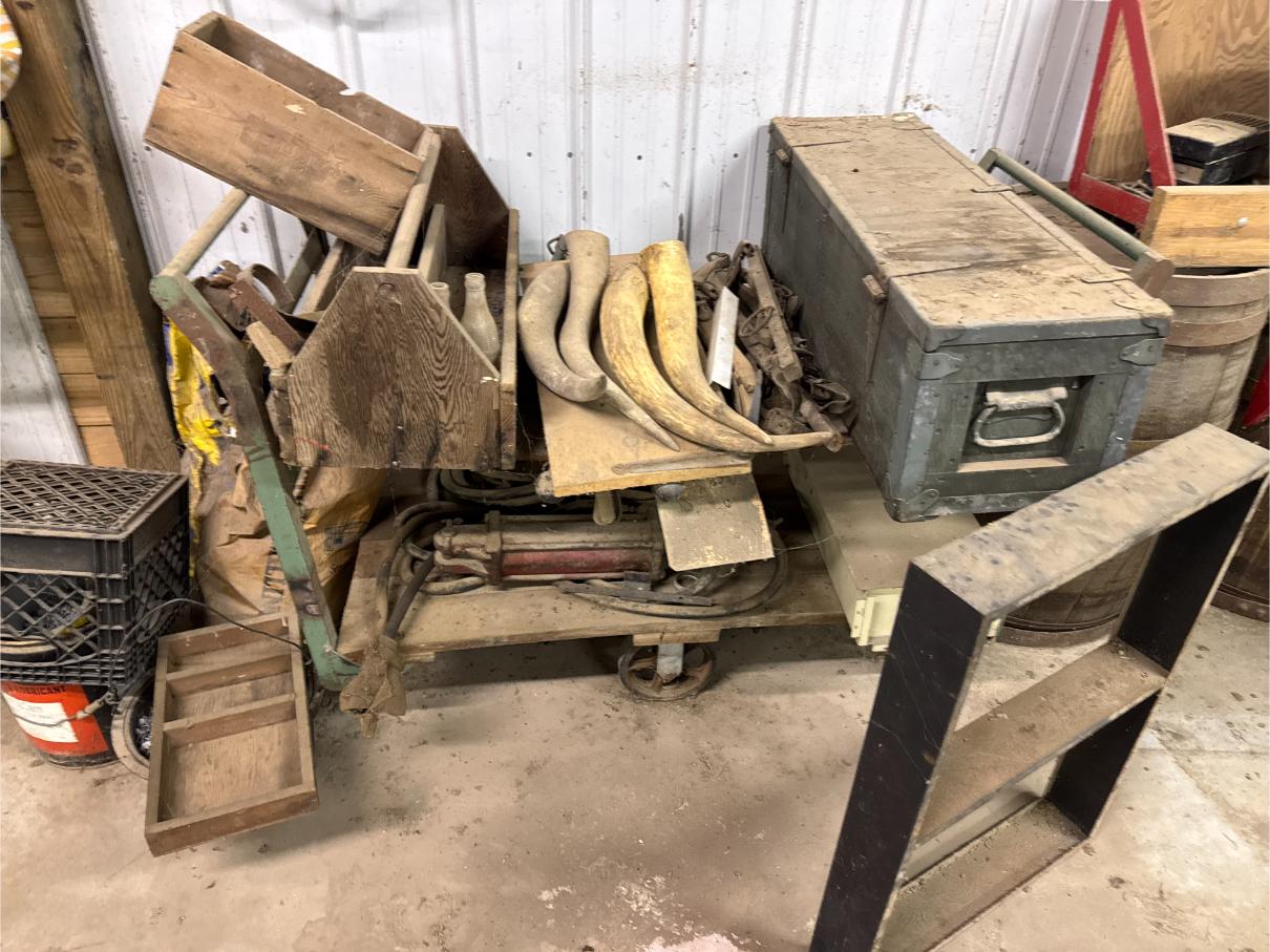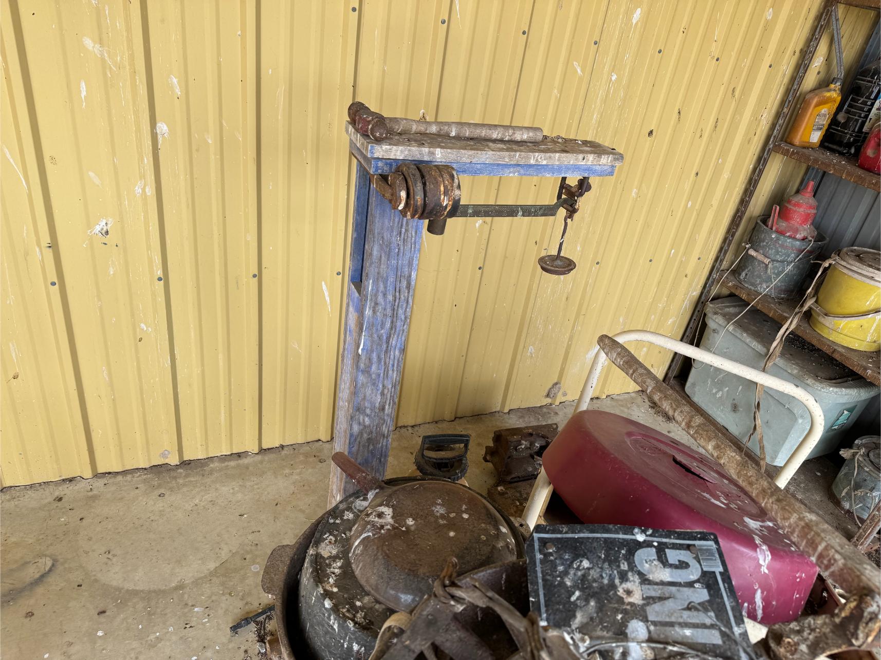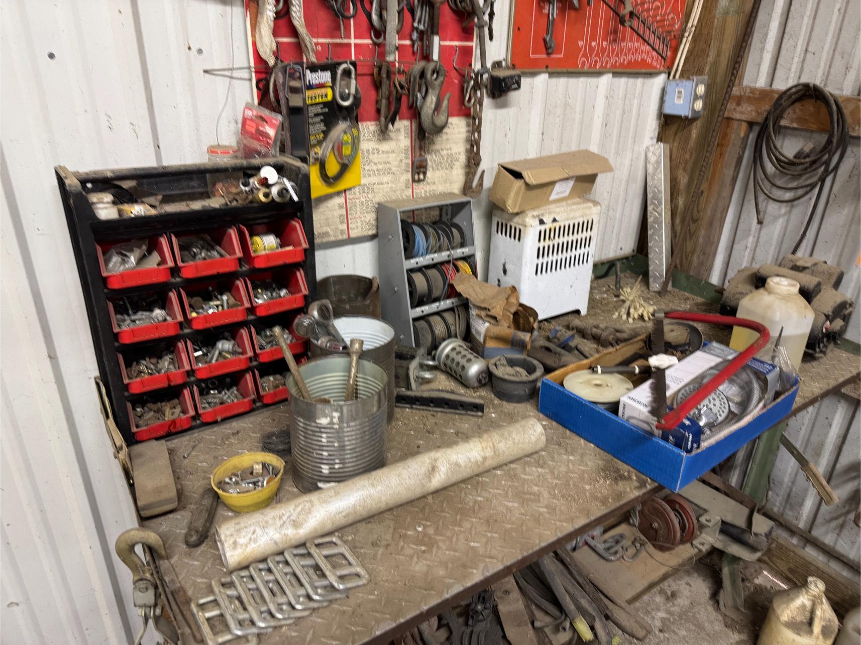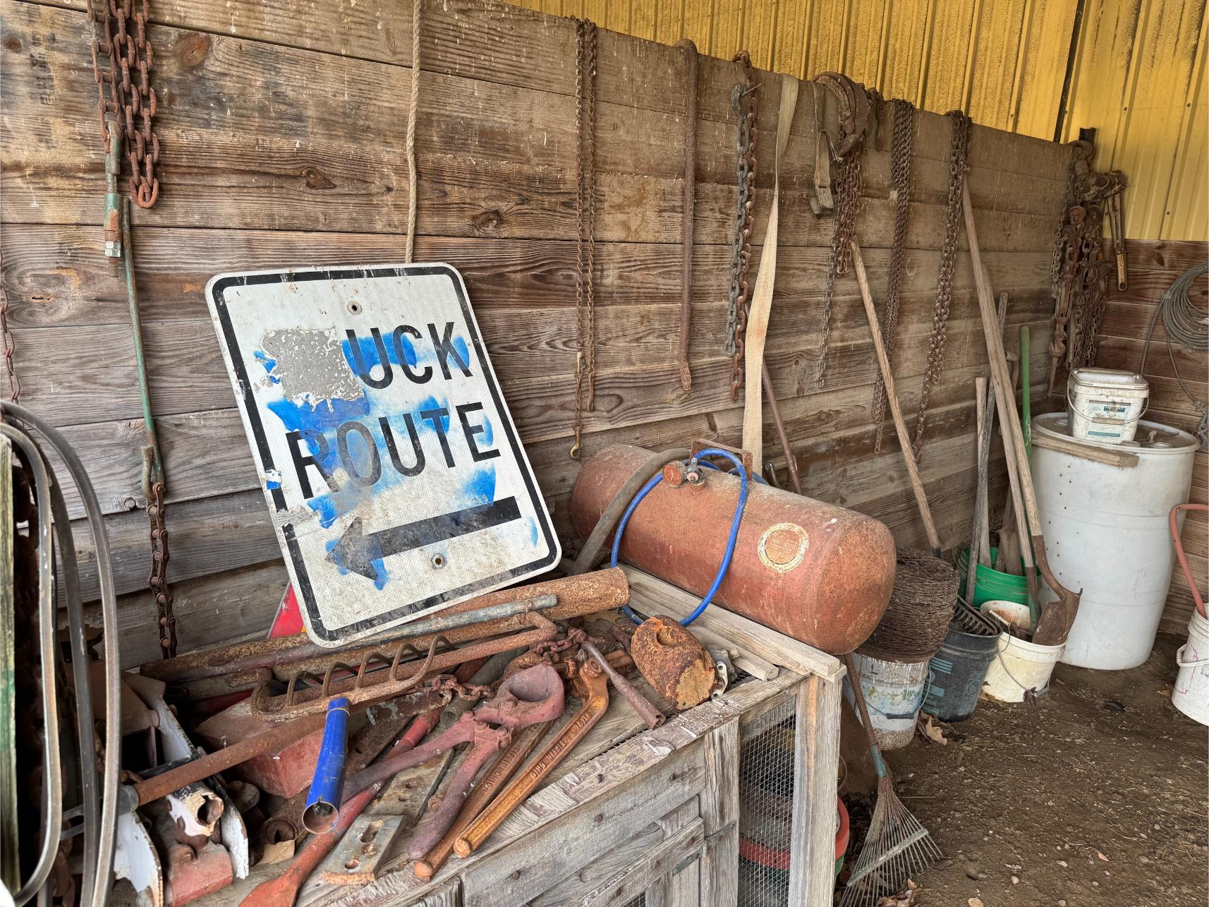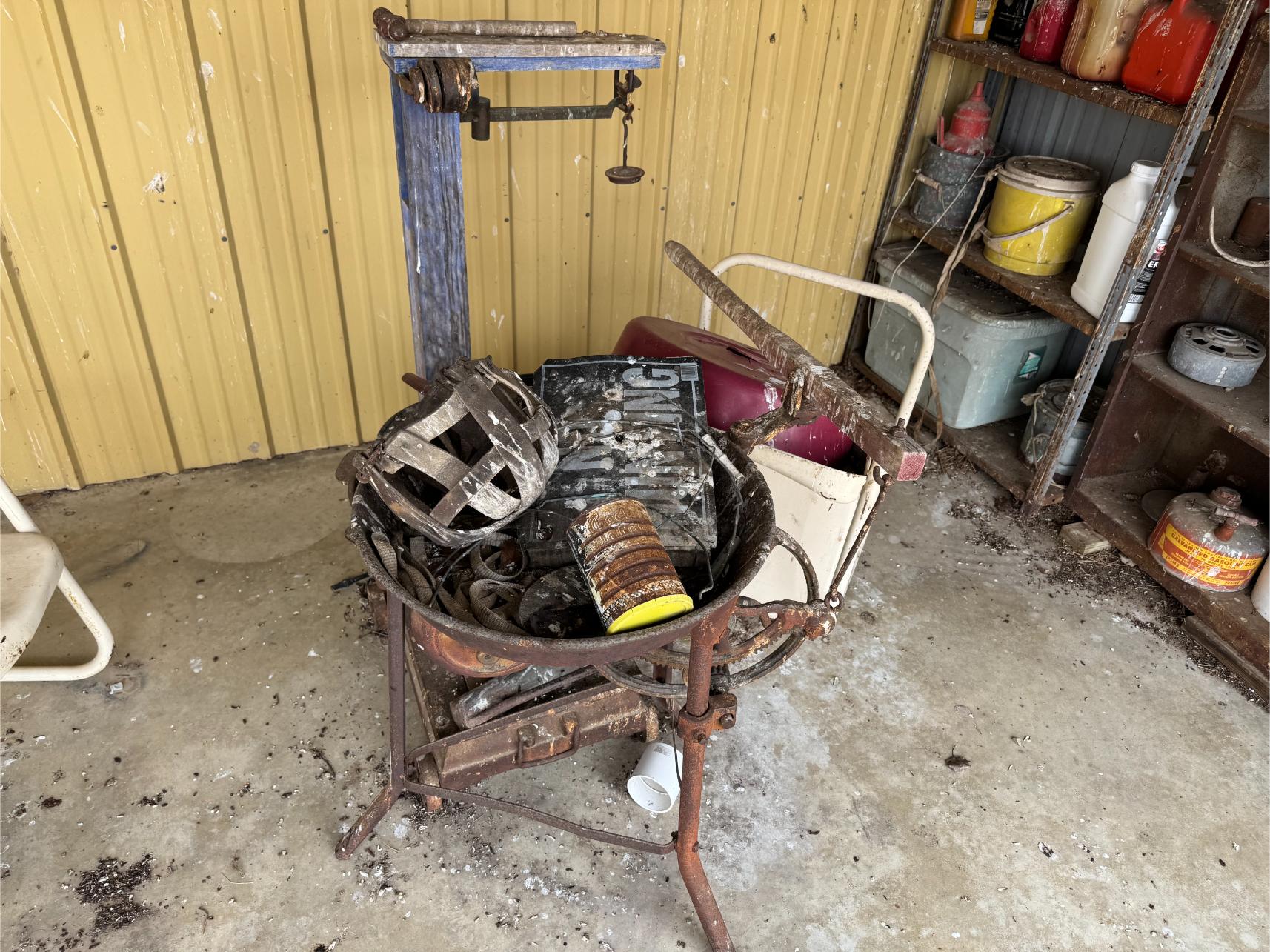 And:Â John Deere Plow – US General Upright Compressor – 5000 Watt Generator – Lincoln 225 Welder – Welding Supplies – Acetylene Hoses & Gauges – Truck Bed Trailer – Small Trailer – Horse Feeder – Sev Saddles – Fiberglass Ladder – Barbed Wire – Chains – Hand Tools – Elec Wire – Battery Charger – Shop Fan – Cages – Propane Bottles – Horse Drawn Equipment (Sulky Rake, Mowing Machines, Disks, Plows, Planters, Grader, etc) – Copper – Scrap Metal (Tractor Implements, Chute, etc)