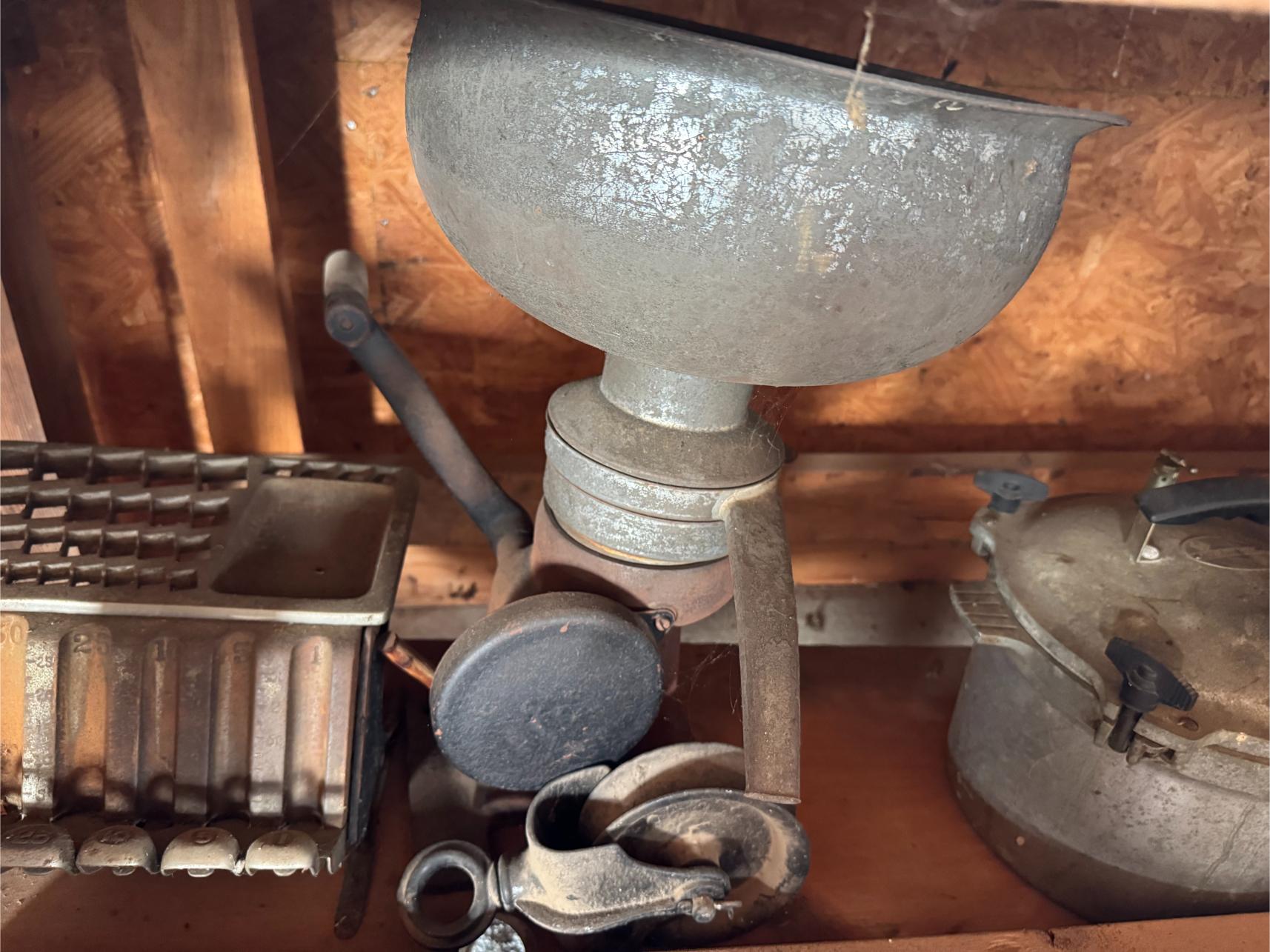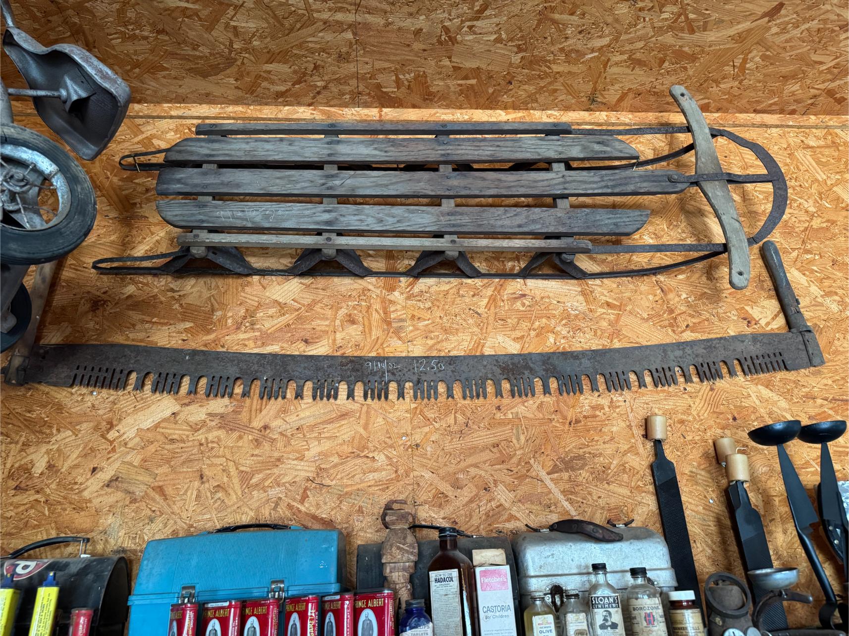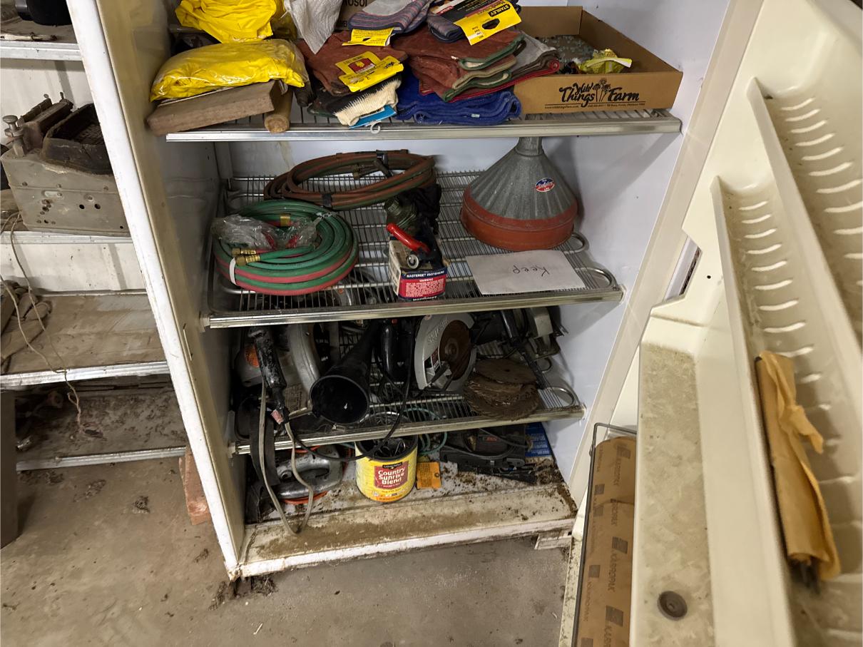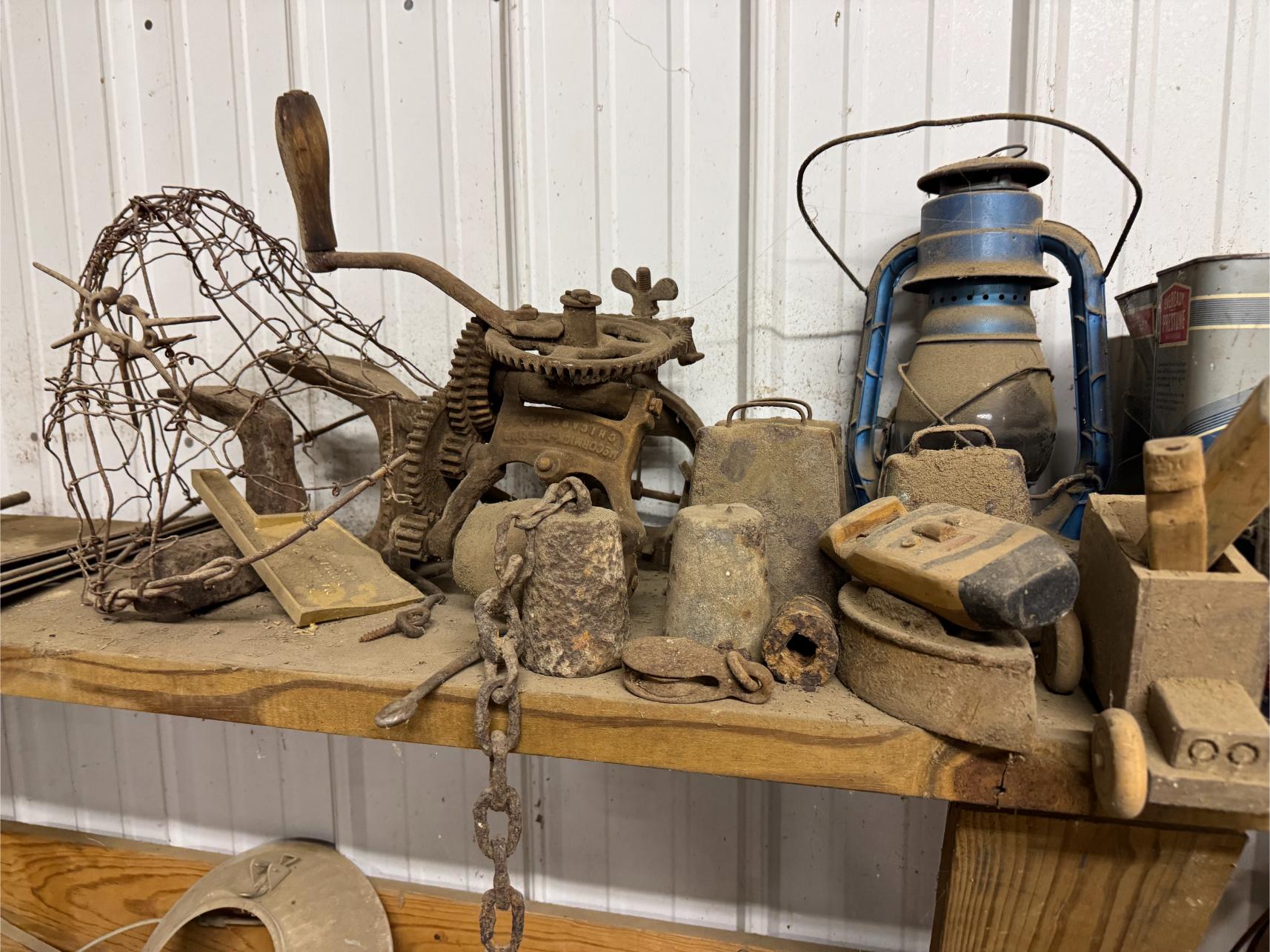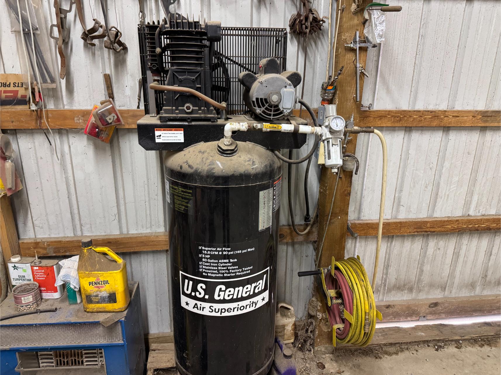 And:Â John Deere Plow – US General Upright Compressor – 5000 Watt Generator – Lincoln 225 Welder – Welding Supplies – Acetylene Hoses & Gauges – Truck Bed Trailer – Small Trailer – Horse Feeder – Sev Saddles – Fiberglass Ladder – Barbed Wire – Chains – Hand Tools – Elec Wire – Battery Charger – Shop Fan – Cages – Propane Bottles – Horse Drawn Equipment (Sulky Rake, Mowing Machines, Disks, Plows, Planters, Grader, etc) – Copper – Scrap Metal (Tractor Implements, Chute, etc)