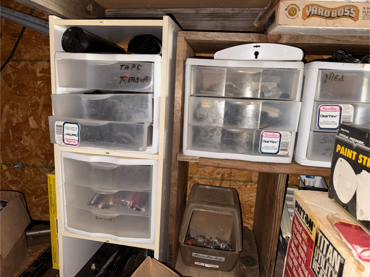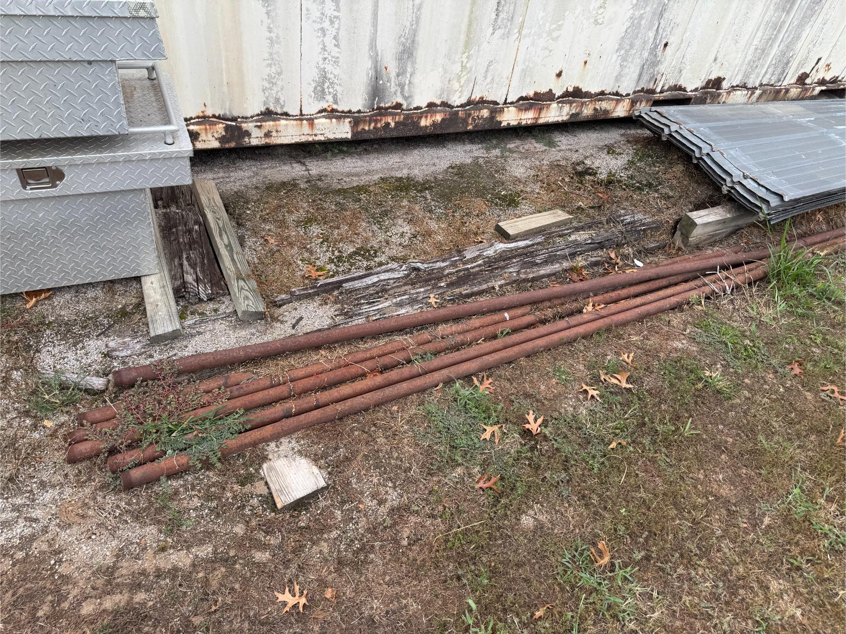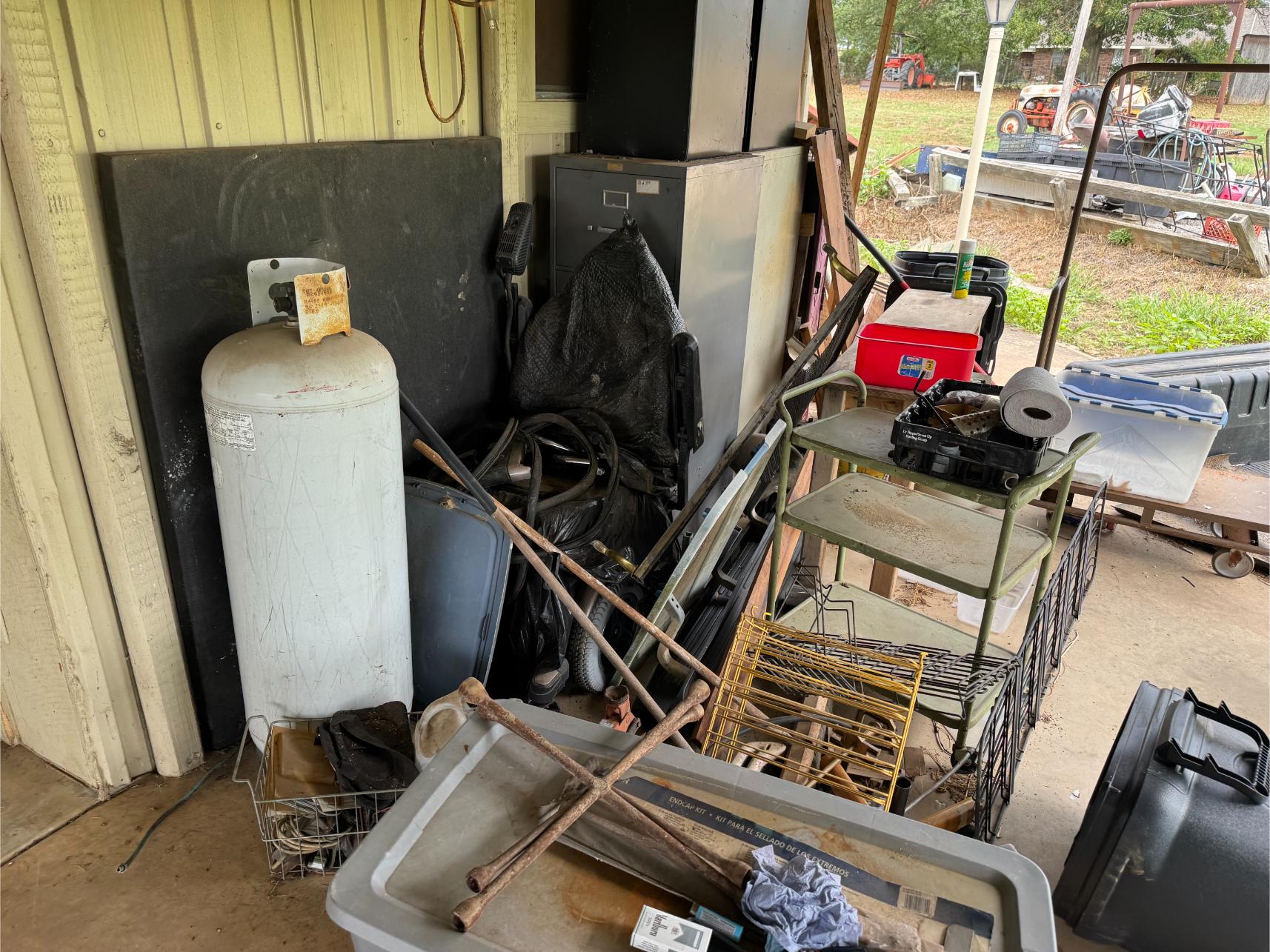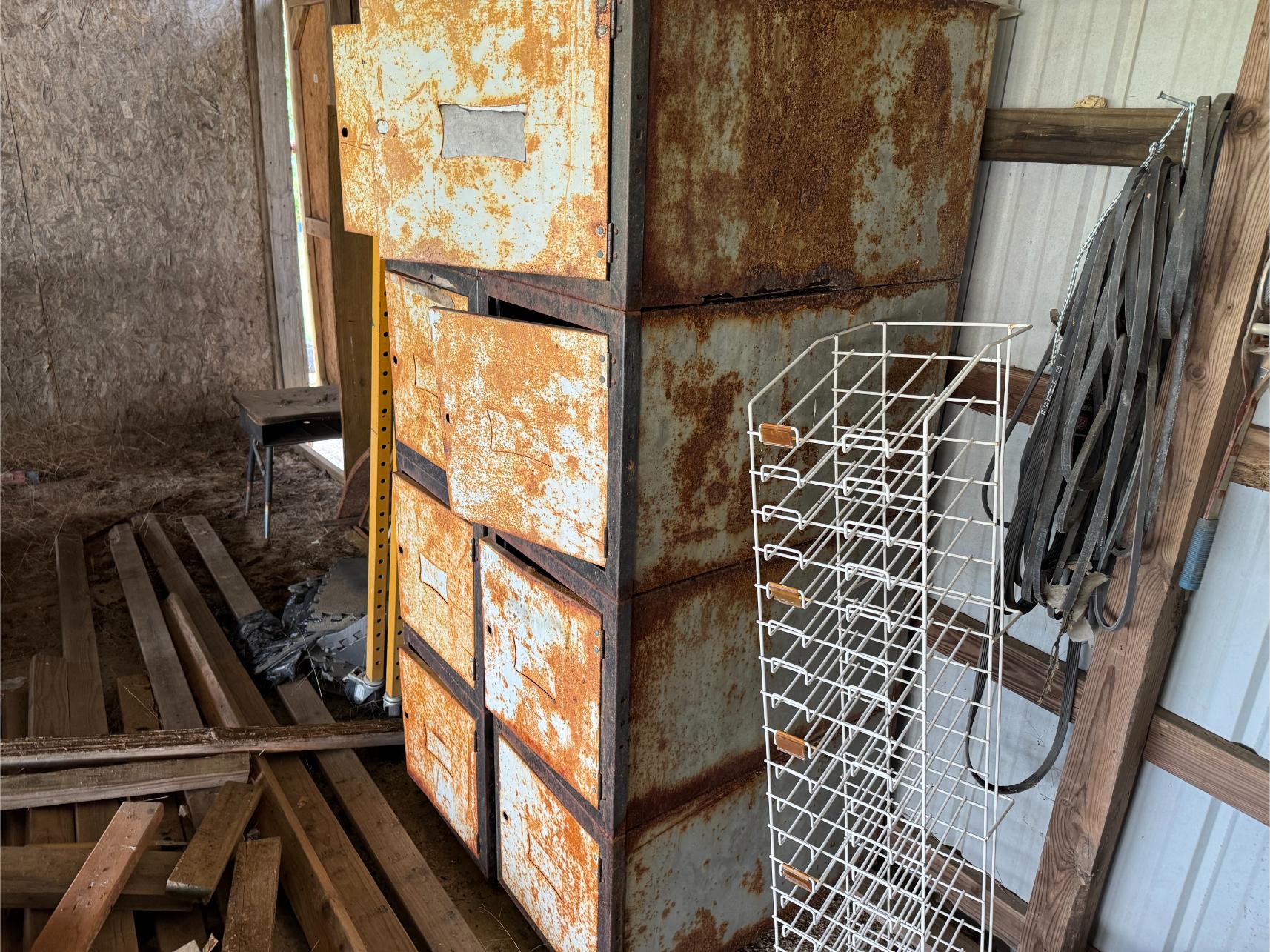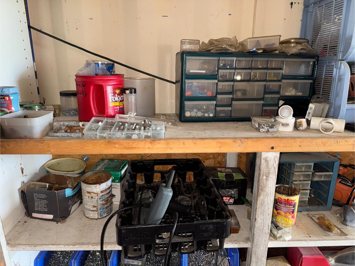 Shop Items & More:Â (2) 40′ Metal Shipping Containers – 16′ Portable Building on Trailer – Sheet Metal – Metal Pipe – Pipe Stand – Troy Bilt Riding Mower – Craftsman 46″ Riding Mower – 5,000 Watt Generator – Miller Welder – Acetylene Bottles, Torches & Cart – Platform Scales – Appx 15 Rolls of Barbed Wire – 100’s T-Posts – Galv Gates – Wire Panels – Romex Wire – Metal Ramps – Alum Ramps – (4) Job Boxes – Roll Around Toolboxes – Diamond Plate Toolboxes – 8,000 Winch – Engine Hoist – Miter Saw – Circular Saw – Craftsman Radial Arm Saw – Scaffolding – Shop Fan – (3) Buddy Heaters – Air Compressor – Drill Press – Bench Vise – Battery Charger – (3) 45 Watt Solar Panel Kits – Alum & Fiberglass Ext Ladders – Hand Tools – Bolt Bins- Dollys – Lumber – Metal Shelves – Propane Tank – Tires & Wheels – Metal Locker – Boat Seats – Security Lights – LED Lights – Camping Supplies – Hunting Clothes, Blinds