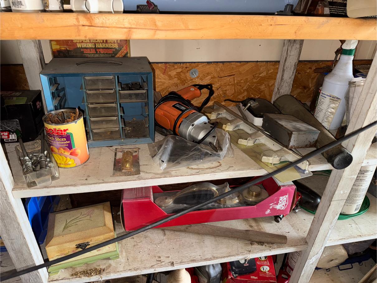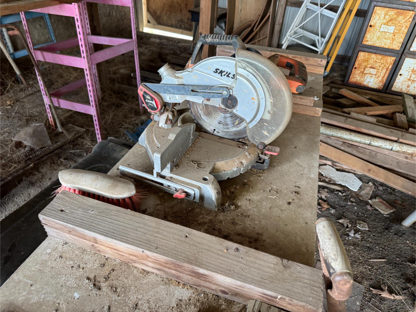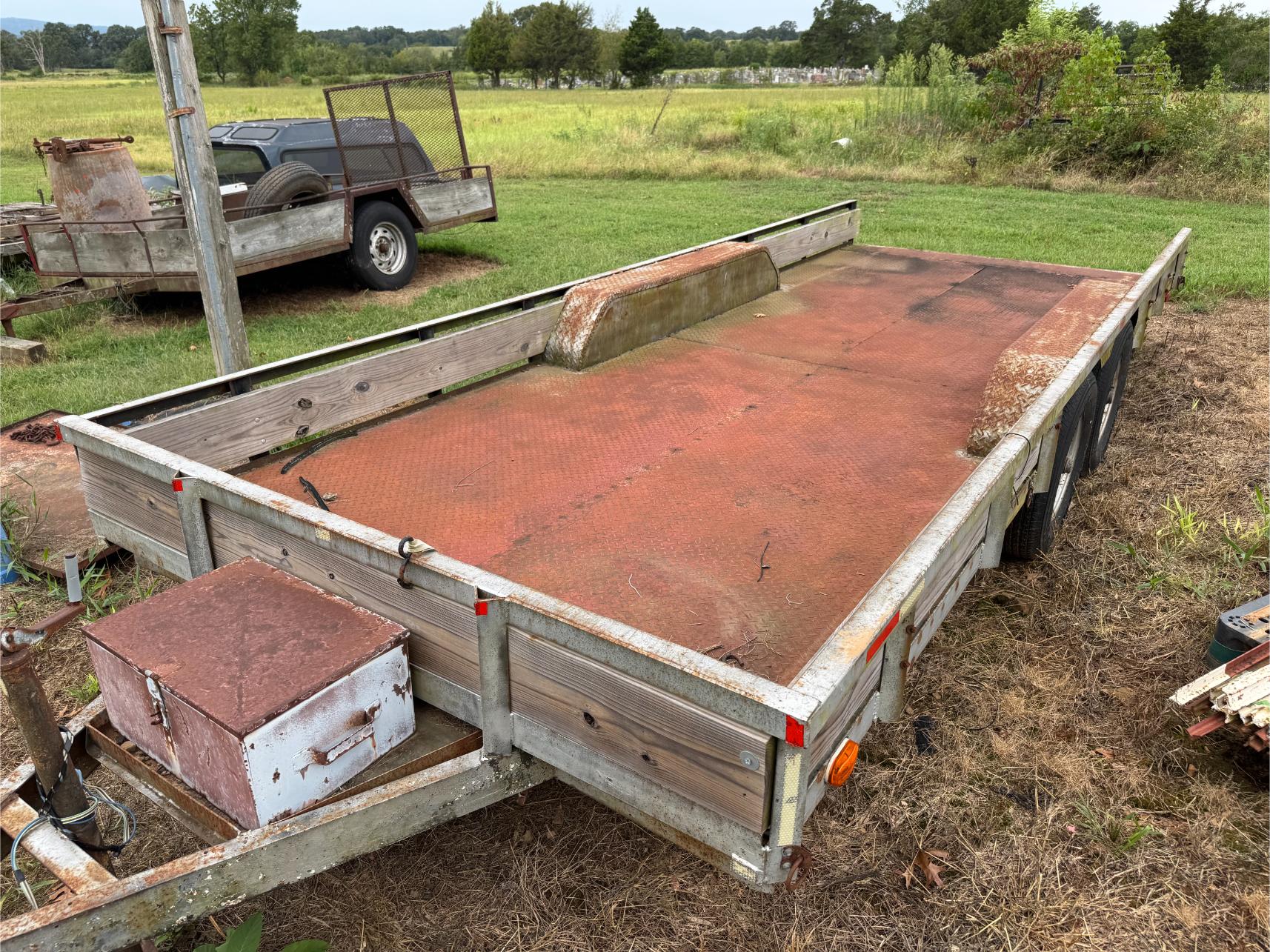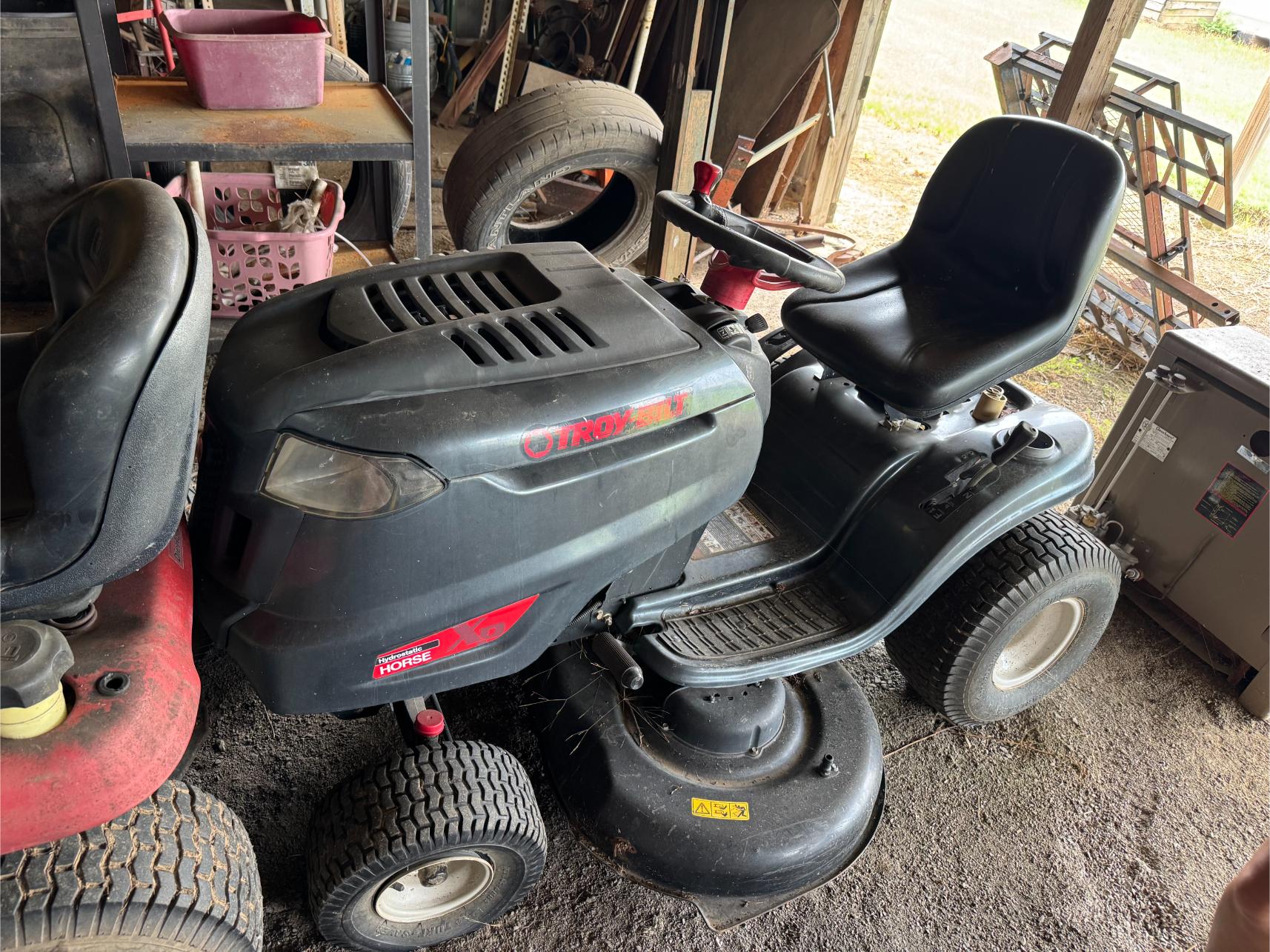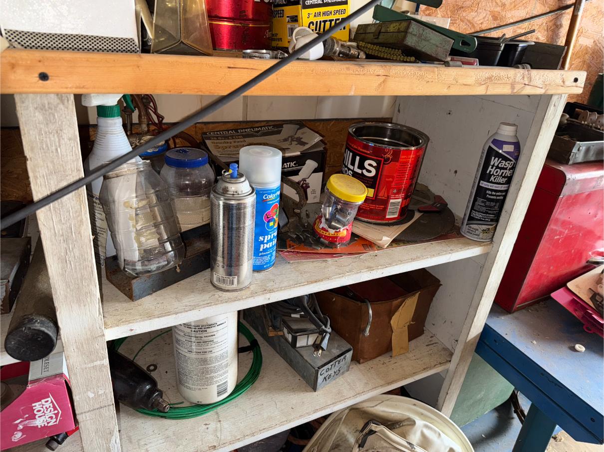 Shop Items & More:Â (2) 40′ Metal Shipping Containers – 16′ Portable Building on Trailer – Sheet Metal – Metal Pipe – Pipe Stand – Troy Bilt Riding Mower – Craftsman 46″ Riding Mower – 5,000 Watt Generator – Miller Welder – Acetylene Bottles, Torches & Cart – Platform Scales – Appx 15 Rolls of Barbed Wire – 100’s T-Posts – Galv Gates – Wire Panels – Romex Wire – Metal Ramps – Alum Ramps – (4) Job Boxes – Roll Around Toolboxes – Diamond Plate Toolboxes – 8,000 Winch – Engine Hoist – Miter Saw – Circular Saw – Craftsman Radial Arm Saw – Scaffolding – Shop Fan – (3) Buddy Heaters – Air Compressor – Drill Press – Bench Vise – Battery Charger – (3) 45 Watt Solar Panel Kits – Alum & Fiberglass Ext Ladders – Hand Tools – Bolt Bins- Dollys – Lumber – Metal Shelves – Propane Tank – Tires & Wheels – Metal Locker – Boat Seats – Security Lights – LED Lights – Camping Supplies – Hunting Clothes, Blinds