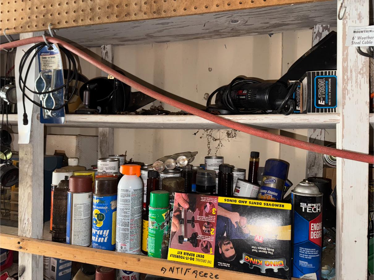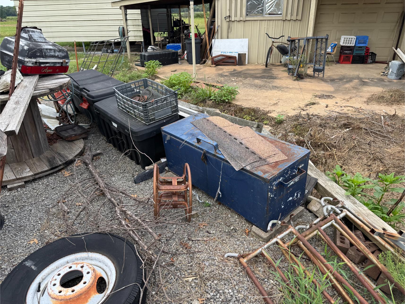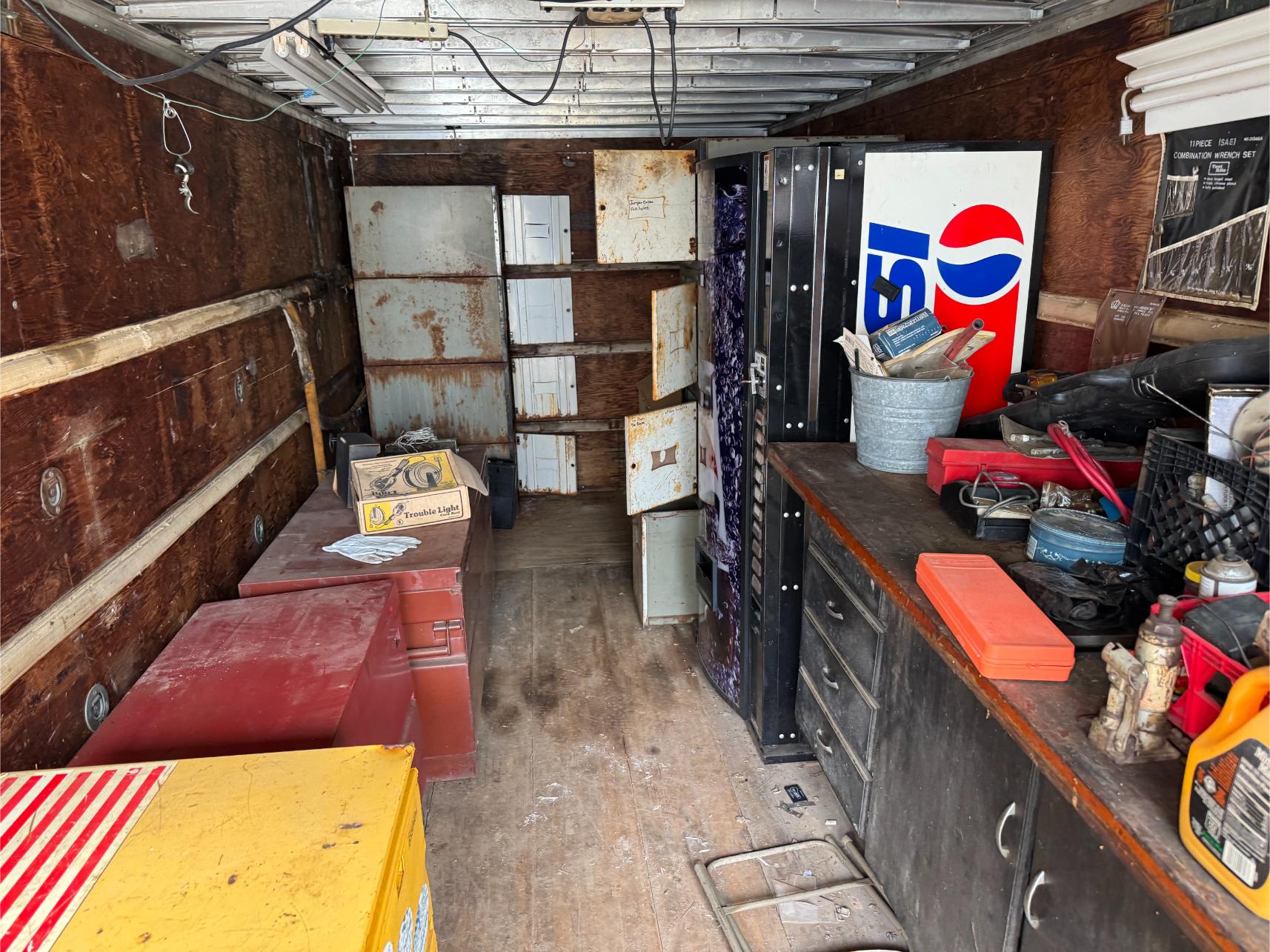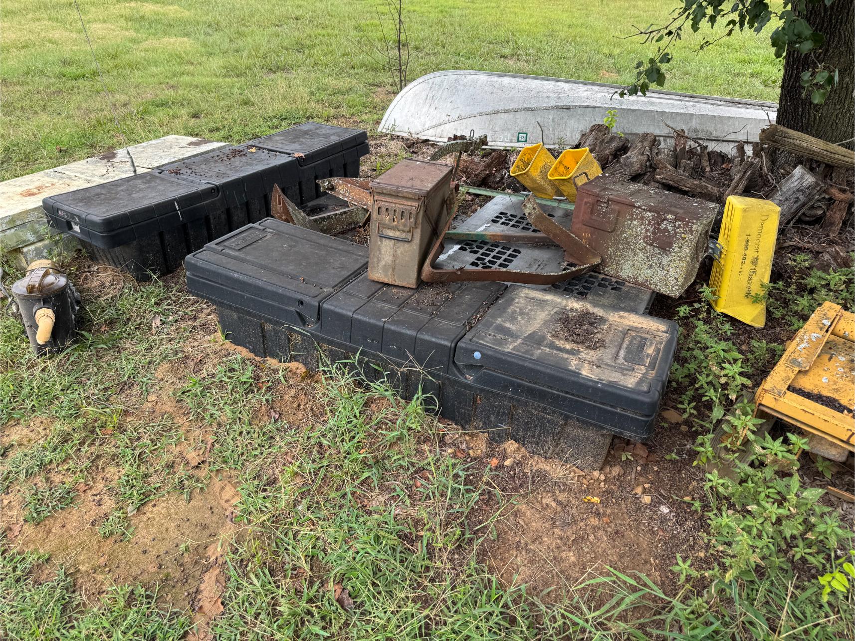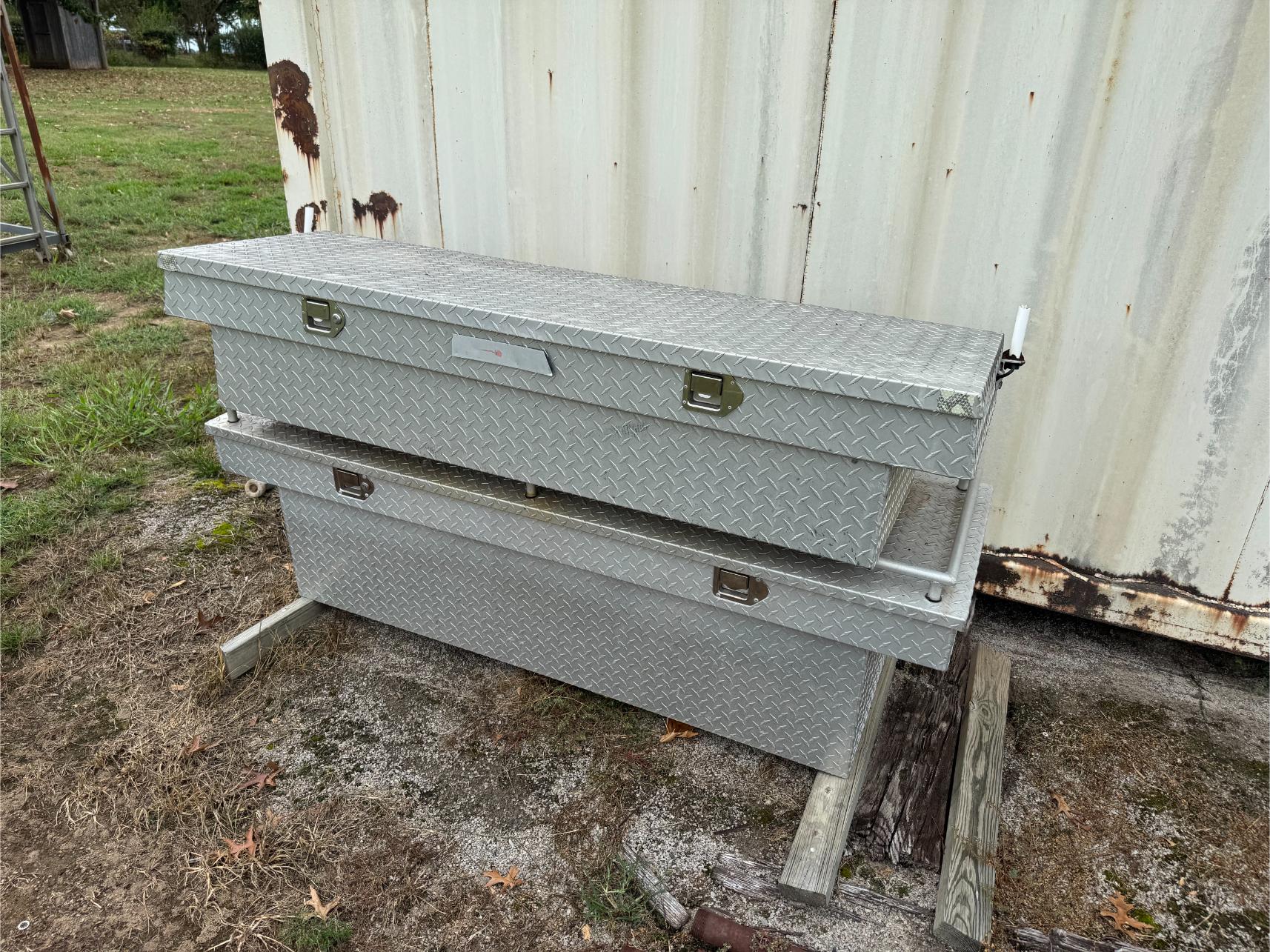 Shop Items & More:Â (2) 40′ Metal Shipping Containers – 16′ Portable Building on Trailer – Sheet Metal – Metal Pipe – Pipe Stand – Troy Bilt Riding Mower – Craftsman 46″ Riding Mower – 5,000 Watt Generator – Miller Welder – Acetylene Bottles, Torches & Cart – Platform Scales – Appx 15 Rolls of Barbed Wire – 100’s T-Posts – Galv Gates – Wire Panels – Romex Wire – Metal Ramps – Alum Ramps – (4) Job Boxes – Roll Around Toolboxes – Diamond Plate Toolboxes – 8,000 Winch – Engine Hoist – Miter Saw – Circular Saw – Craftsman Radial Arm Saw – Scaffolding – Shop Fan – (3) Buddy Heaters – Air Compressor – Drill Press – Bench Vise – Battery Charger – (3) 45 Watt Solar Panel Kits – Alum & Fiberglass Ext Ladders – Hand Tools – Bolt Bins- Dollys – Lumber – Metal Shelves – Propane Tank – Tires & Wheels – Metal Locker – Boat Seats – Security Lights – LED Lights – Camping Supplies – Hunting Clothes, Blinds