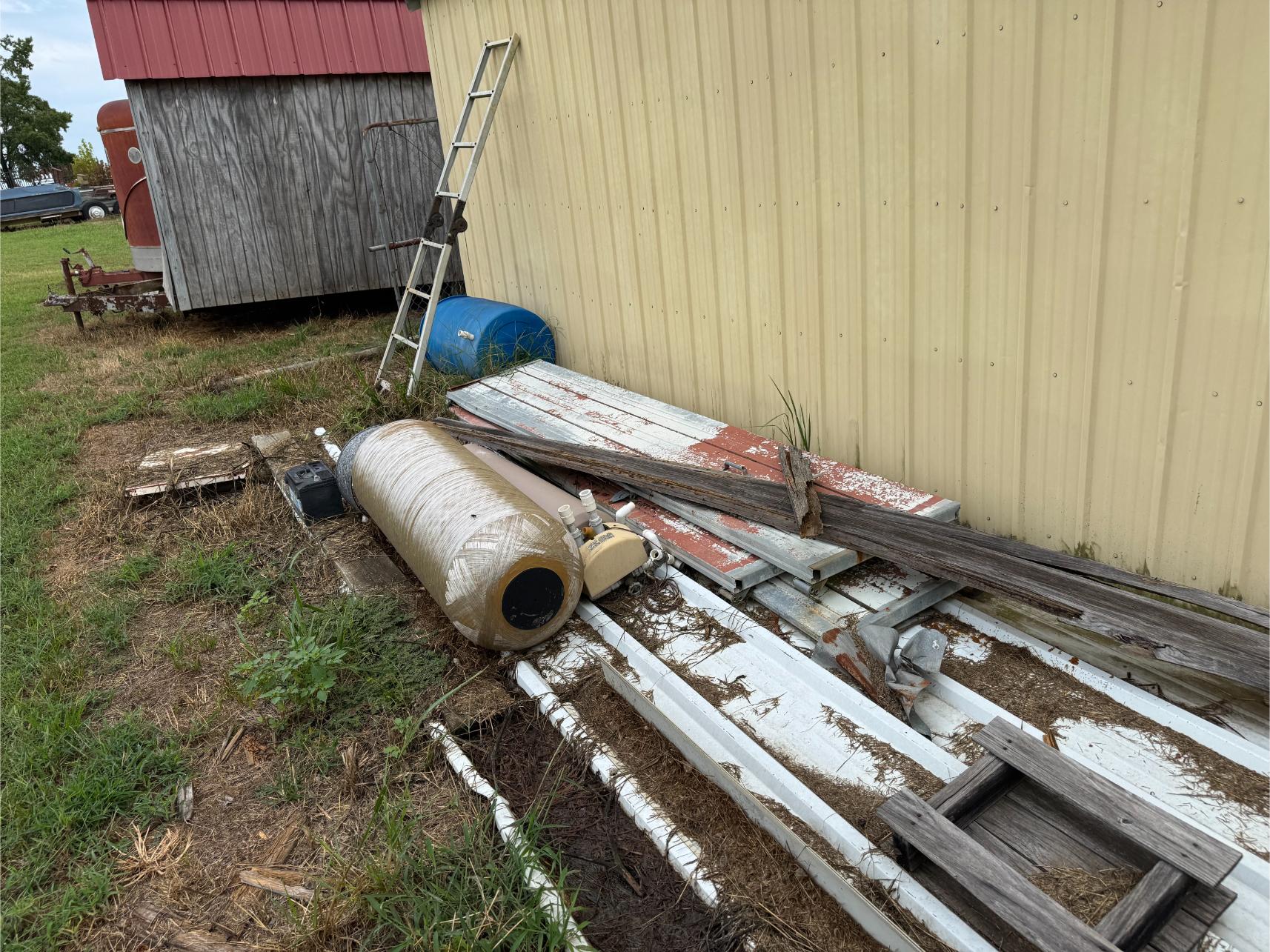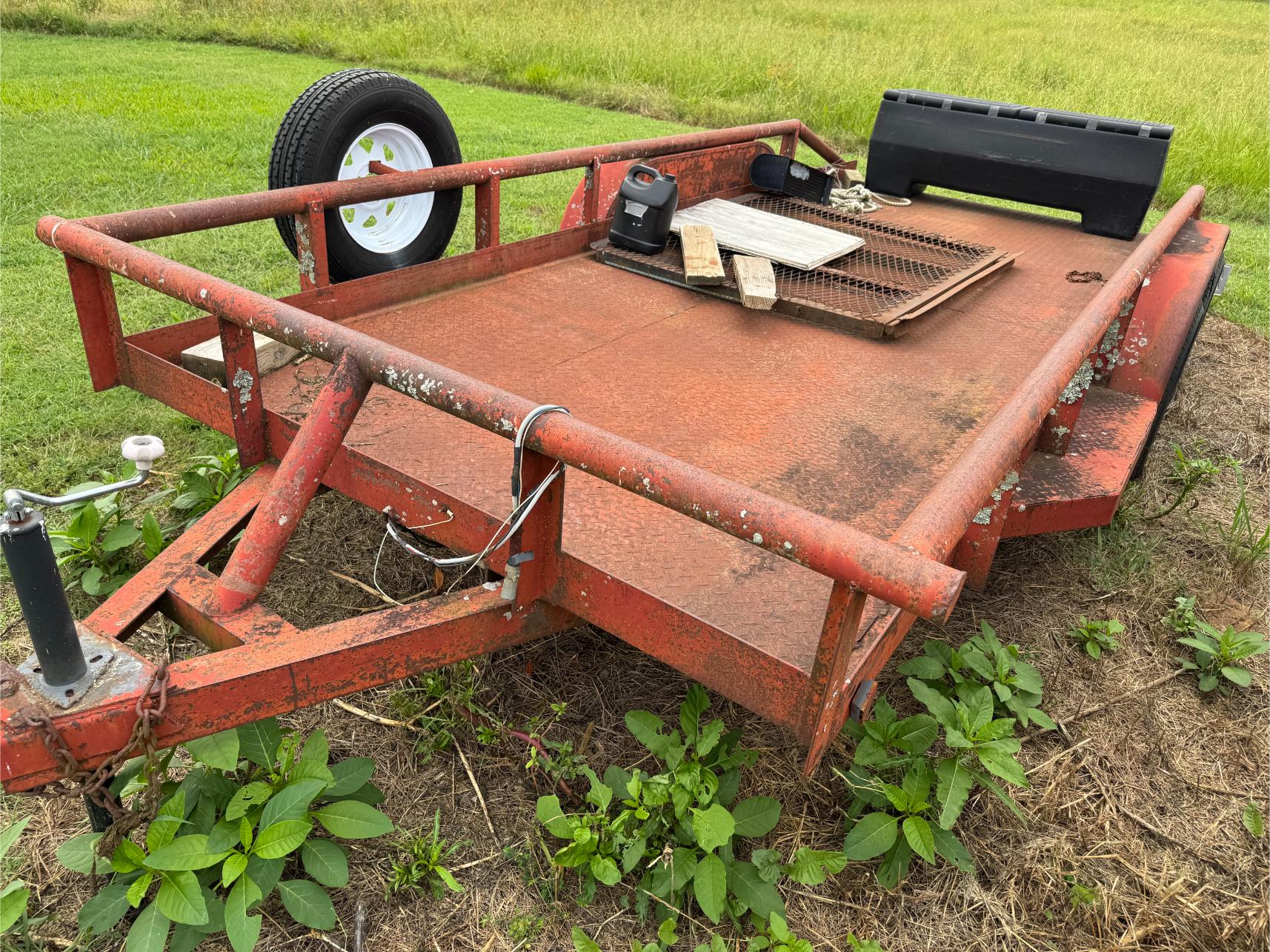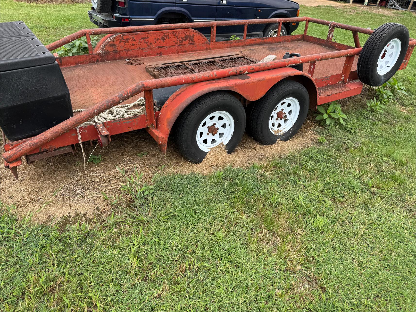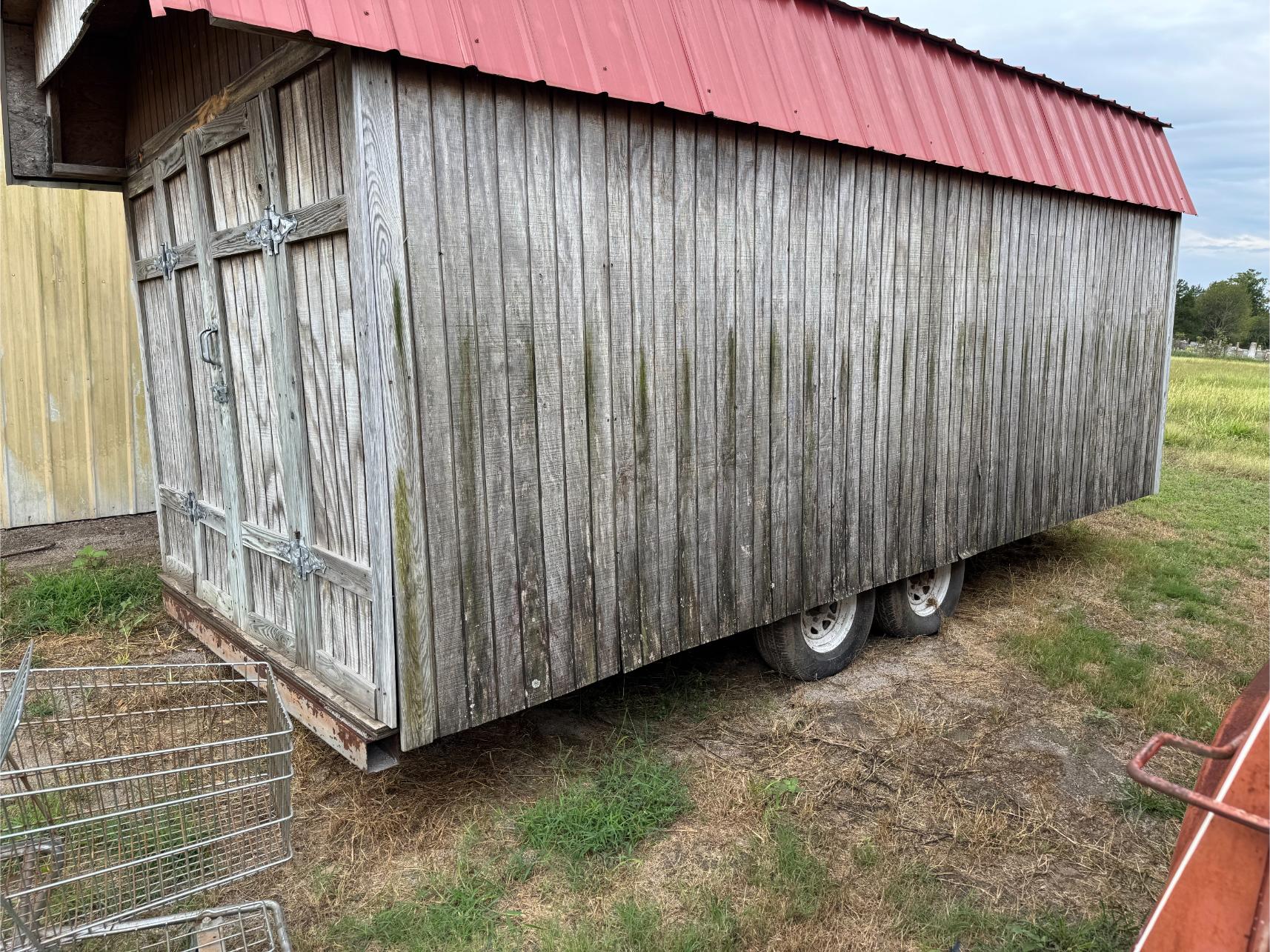 Shop Items & More:Â (2) 40′ Metal Shipping Containers – 16′ Portable Building on Trailer – Sheet Metal – Metal Pipe – Pipe Stand – Troy Bilt Riding Mower – Craftsman 46″ Riding Mower – 5,000 Watt Generator – Miller Welder – Acetylene Bottles, Torches & Cart – Platform Scales – Appx 15 Rolls of Barbed Wire – 100’s T-Posts – Galv Gates – Wire Panels – Romex Wire – Metal Ramps – Alum Ramps – (4) Job Boxes – Roll Around Toolboxes – Diamond Plate Toolboxes – 8,000 Winch – Engine Hoist – Miter Saw – Circular Saw – Craftsman Radial Arm Saw – Scaffolding – Shop Fan – (3) Buddy Heaters – Air Compressor – Drill Press – Bench Vise – Battery Charger – (3) 45 Watt Solar Panel Kits – Alum & Fiberglass Ext Ladders – Hand Tools – Bolt Bins- Dollys – Lumber – Metal Shelves – Propane Tank – Tires & Wheels – Metal Locker – Boat Seats – Security Lights – LED Lights – Camping Supplies – Hunting Clothes, Blinds