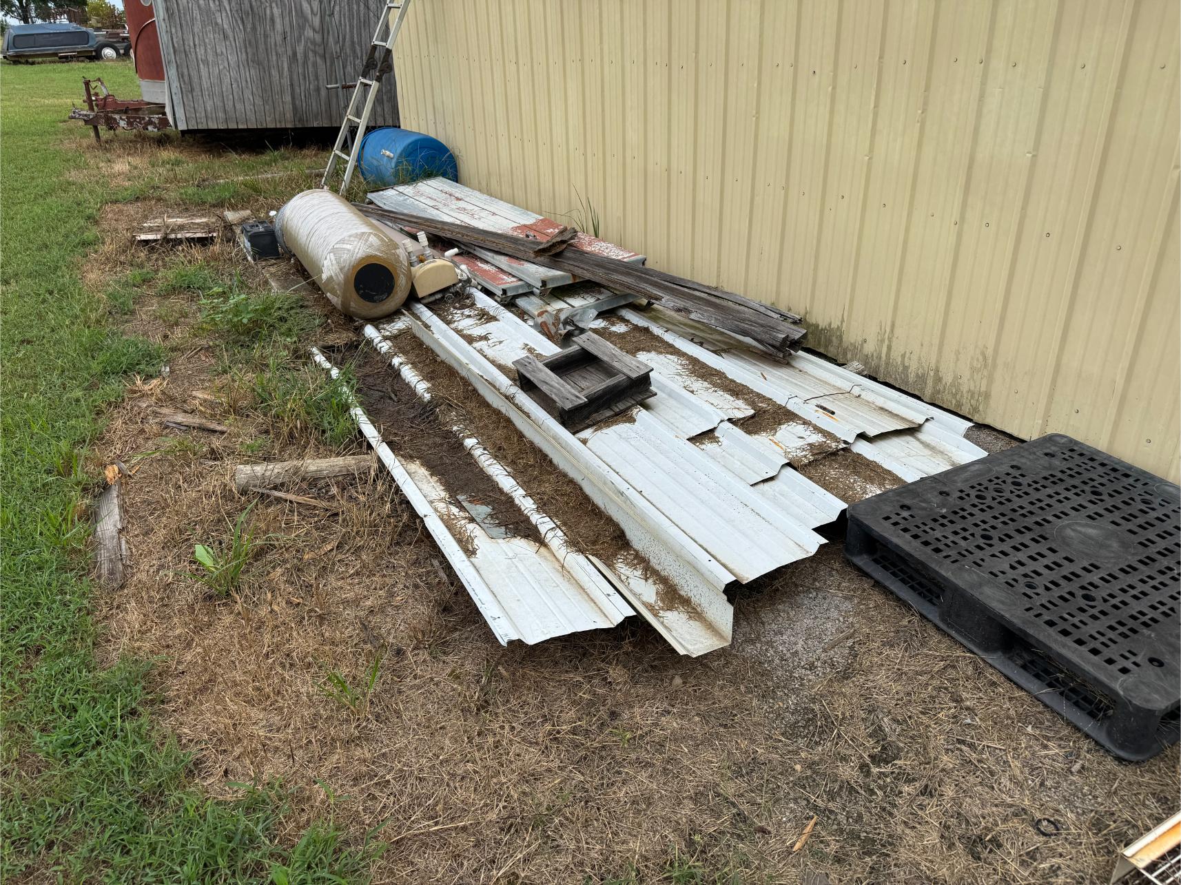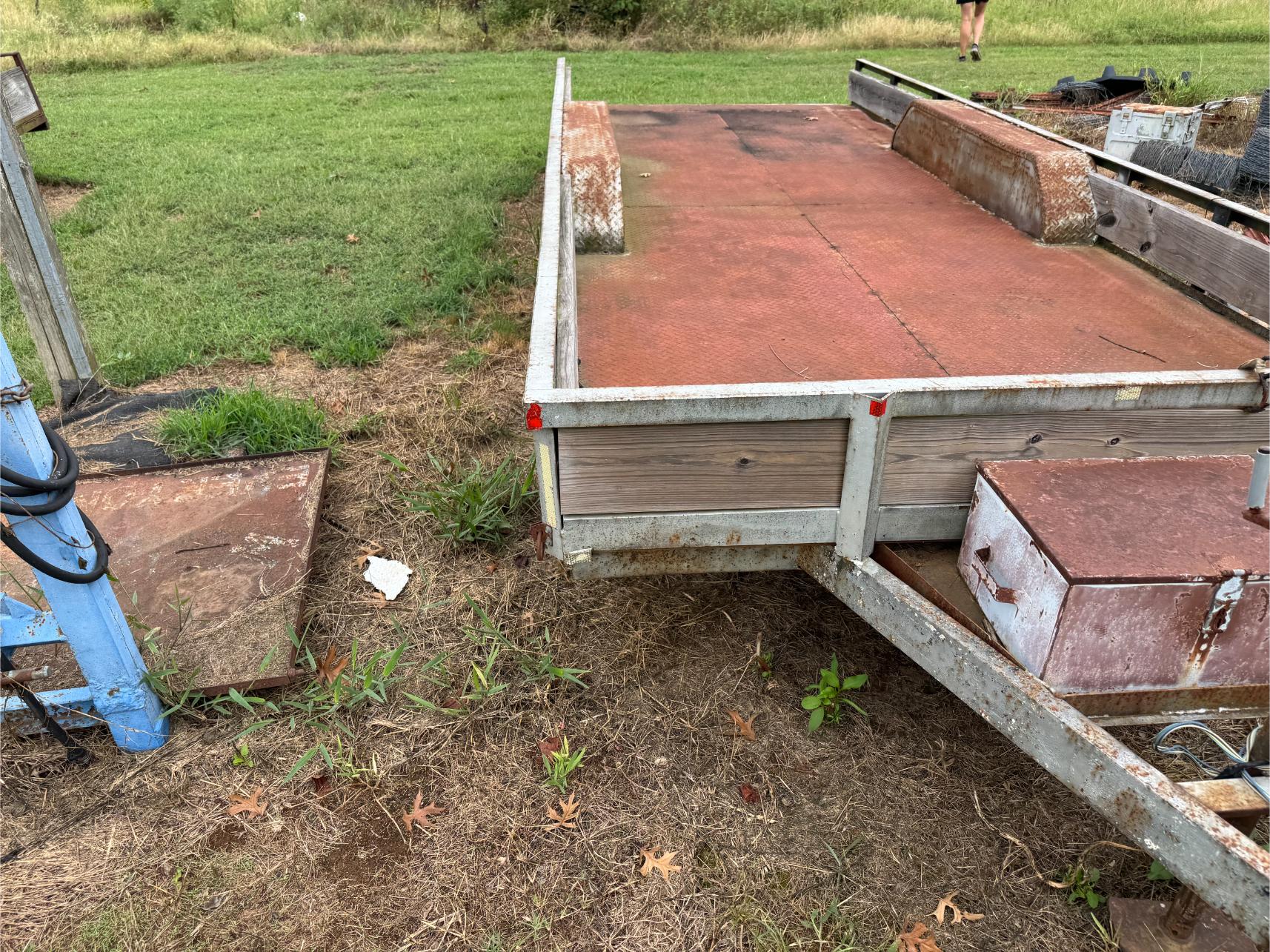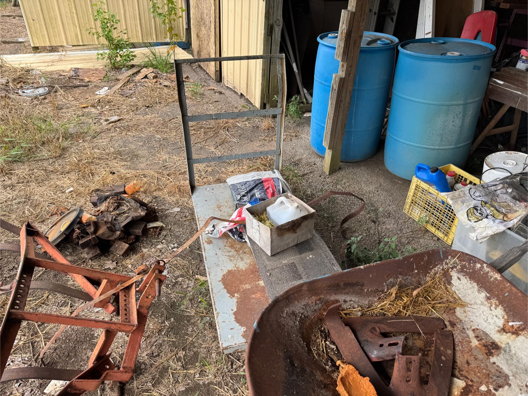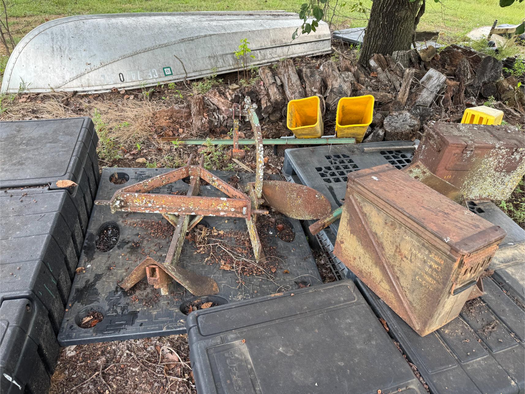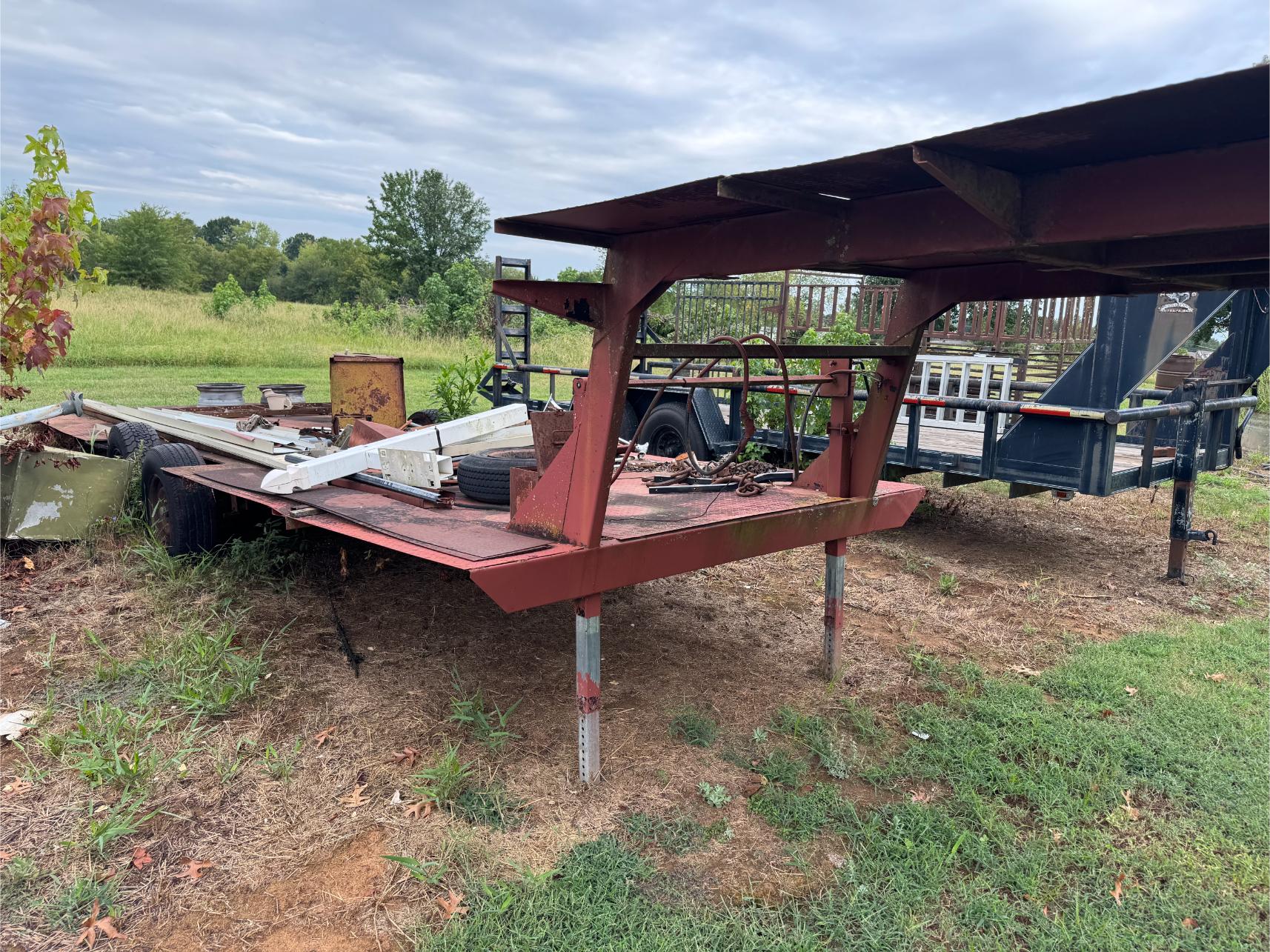 Shop Items & More:Â (2) 40′ Metal Shipping Containers – 16′ Portable Building on Trailer – Sheet Metal – Metal Pipe – Pipe Stand – Troy Bilt Riding Mower – Craftsman 46″ Riding Mower – 5,000 Watt Generator – Miller Welder – Acetylene Bottles, Torches & Cart – Platform Scales – Appx 15 Rolls of Barbed Wire – 100’s T-Posts – Galv Gates – Wire Panels – Romex Wire – Metal Ramps – Alum Ramps – (4) Job Boxes – Roll Around Toolboxes – Diamond Plate Toolboxes – 8,000 Winch – Engine Hoist – Miter Saw – Circular Saw – Craftsman Radial Arm Saw – Scaffolding – Shop Fan – (3) Buddy Heaters – Air Compressor – Drill Press – Bench Vise – Battery Charger – (3) 45 Watt Solar Panel Kits – Alum & Fiberglass Ext Ladders – Hand Tools – Bolt Bins- Dollys – Lumber – Metal Shelves – Propane Tank – Tires & Wheels – Metal Locker – Boat Seats – Security Lights – LED Lights – Camping Supplies – Hunting Clothes, Blinds