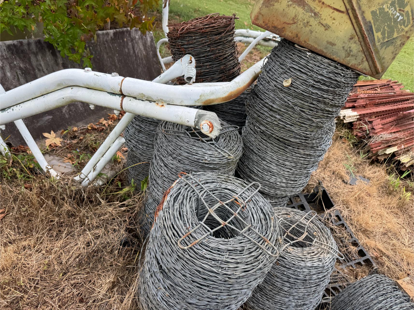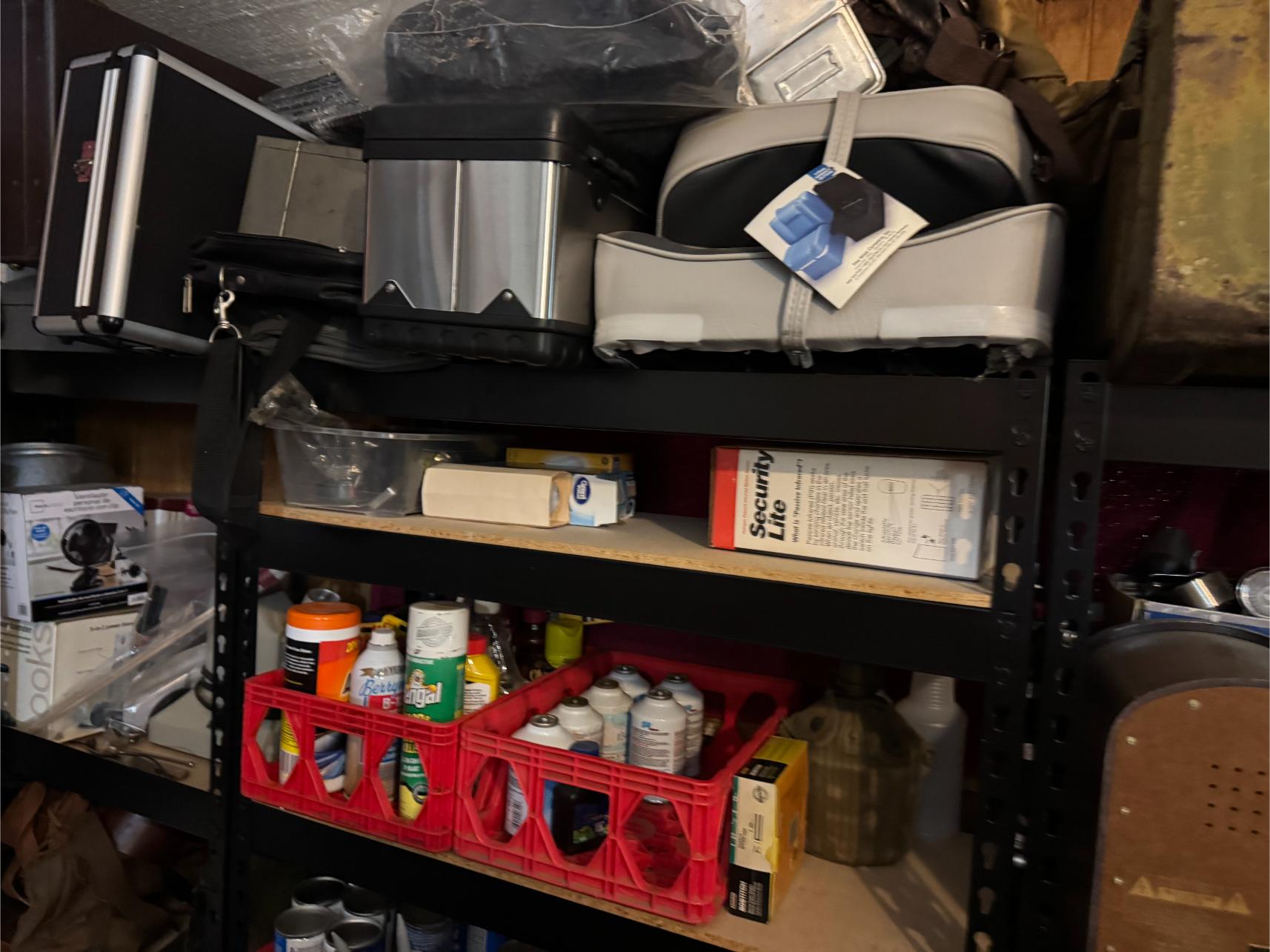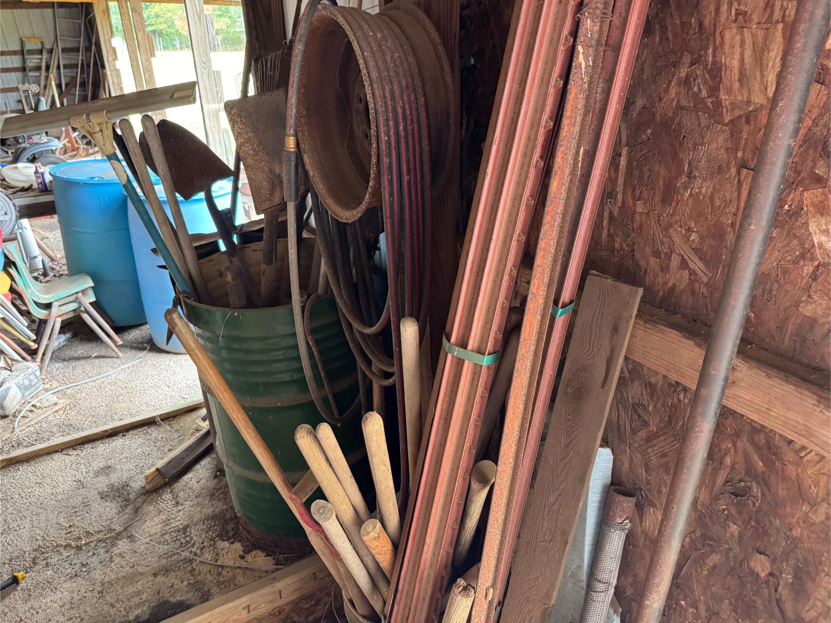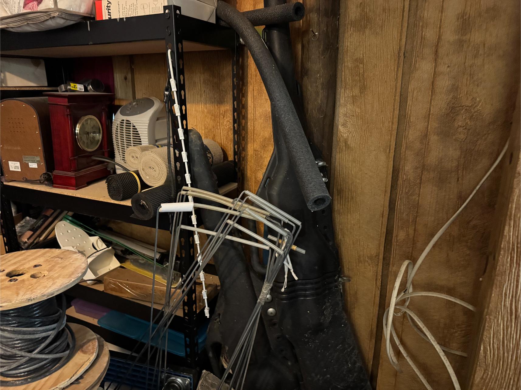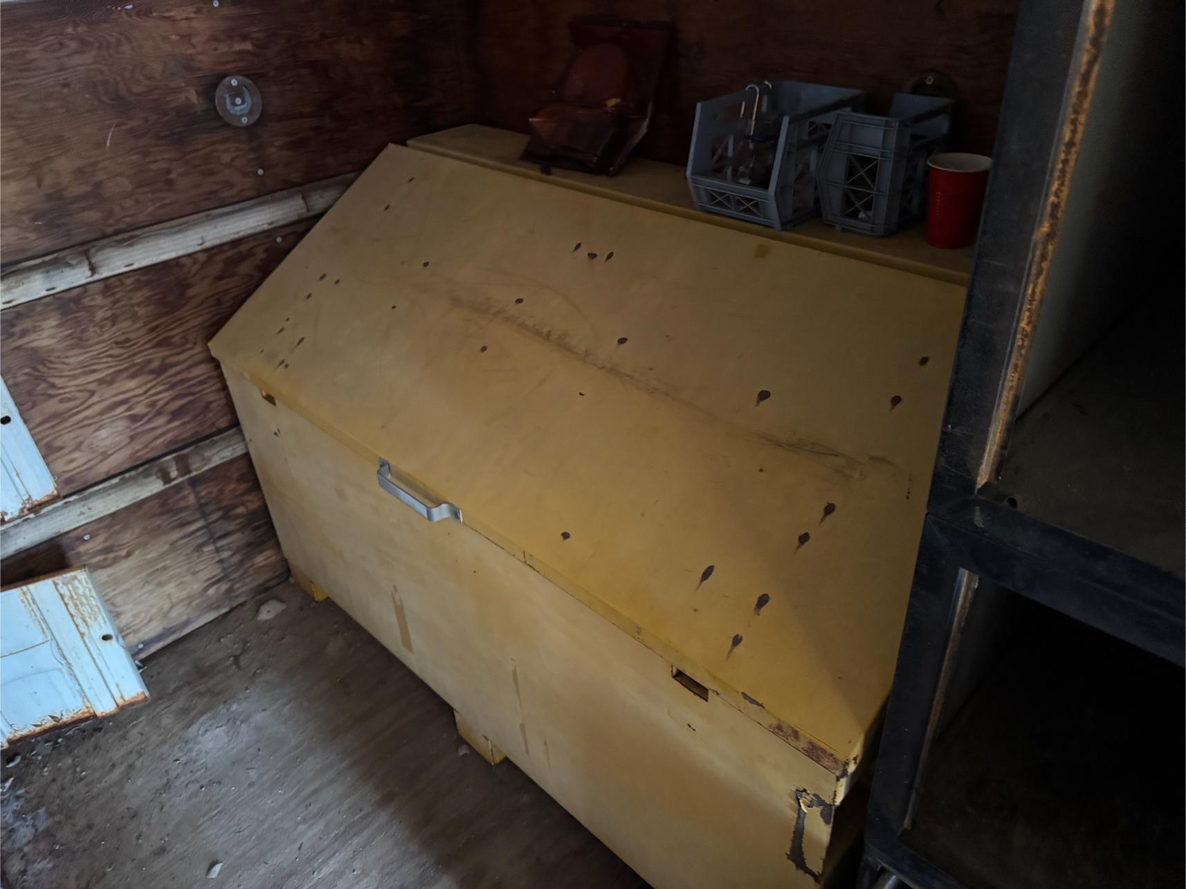 Shop Items & More:Â (2) 40′ Metal Shipping Containers – 16′ Portable Building on Trailer – Sheet Metal – Metal Pipe – Pipe Stand – Troy Bilt Riding Mower – Craftsman 46″ Riding Mower – 5,000 Watt Generator – Miller Welder – Acetylene Bottles, Torches & Cart – Platform Scales – Appx 15 Rolls of Barbed Wire – 100’s T-Posts – Galv Gates – Wire Panels – Romex Wire – Metal Ramps – Alum Ramps – (4) Job Boxes – Roll Around Toolboxes – Diamond Plate Toolboxes – 8,000 Winch – Engine Hoist – Miter Saw – Circular Saw – Craftsman Radial Arm Saw – Scaffolding – Shop Fan – (3) Buddy Heaters – Air Compressor – Drill Press – Bench Vise – Battery Charger – (3) 45 Watt Solar Panel Kits – Alum & Fiberglass Ext Ladders – Hand Tools – Bolt Bins- Dollys – Lumber – Metal Shelves – Propane Tank – Tires & Wheels – Metal Locker – Boat Seats – Security Lights – LED Lights – Camping Supplies – Hunting Clothes, Blinds