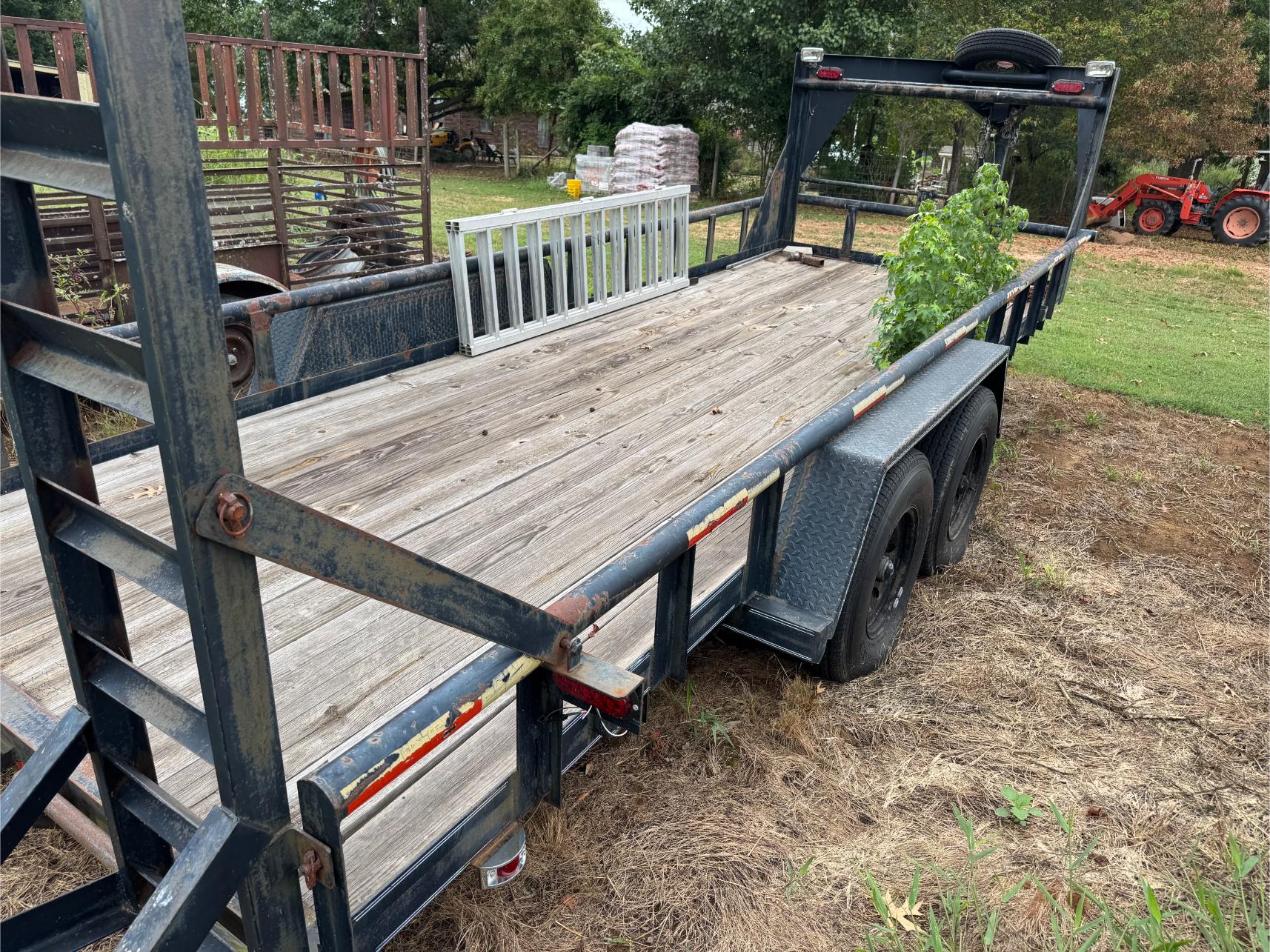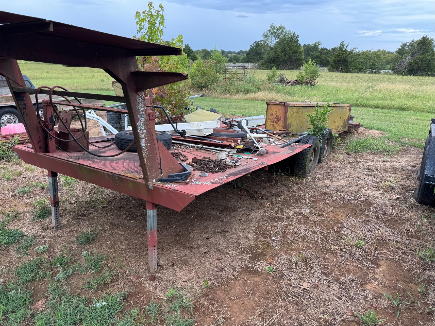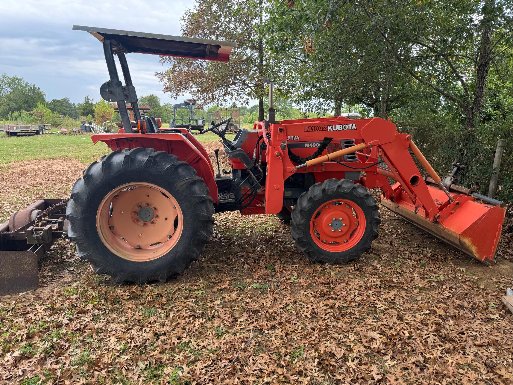Farm Equipment, Trucks, Trailers, etc: Kubota M4900 Tractor w/Loader (500 hrs) – Mitsubishi BD2G Dozer – Ford 8N or 9N Tractor – 3 pt Box Blade – 10′ Bush Hog Brush Hog – 6′ 3 pt King Kutter Brush Hog – 3 pt 5′ Brush Hog – Drag Brush Hog – Land Pride Finish Mower – 3 pt Rear Fork – 3 pt Blade – 3 pt Post Hole Digger – 3 pt Angle Blade – 5′ 3 pt King Kutter Tiller – 3 pt Rock Rake – 3 pt Seeder – 3 pt Middle Buster – 6′ 3 pt Disk – 3 pt Rear Platform – 3 pt Cultivator – 1995 Ford F-250 4×4 Ext Cap Pickup (79,000 miles) – 1972 Ford F-350 Flat Bed Truck – 2001 Texas Bragg 20′ Gooseneck Trailer w/Ramp – 20′ Metal Gooseneck Trailer – 1991 Chaparral 20′ Stock Trailer – 18′ Metal Double Axle Trailer – 16′ Metal Car Hauler Trailer w/Winch – 16′ Metal Trailer – Metal Single Axle Trailer w/Racks – Honda 4-Wheeler (New Tires) – Honda Four Trax 4-Wheeler – Alum Semi V Bottom Boat – Fuel Tank on StandÂ