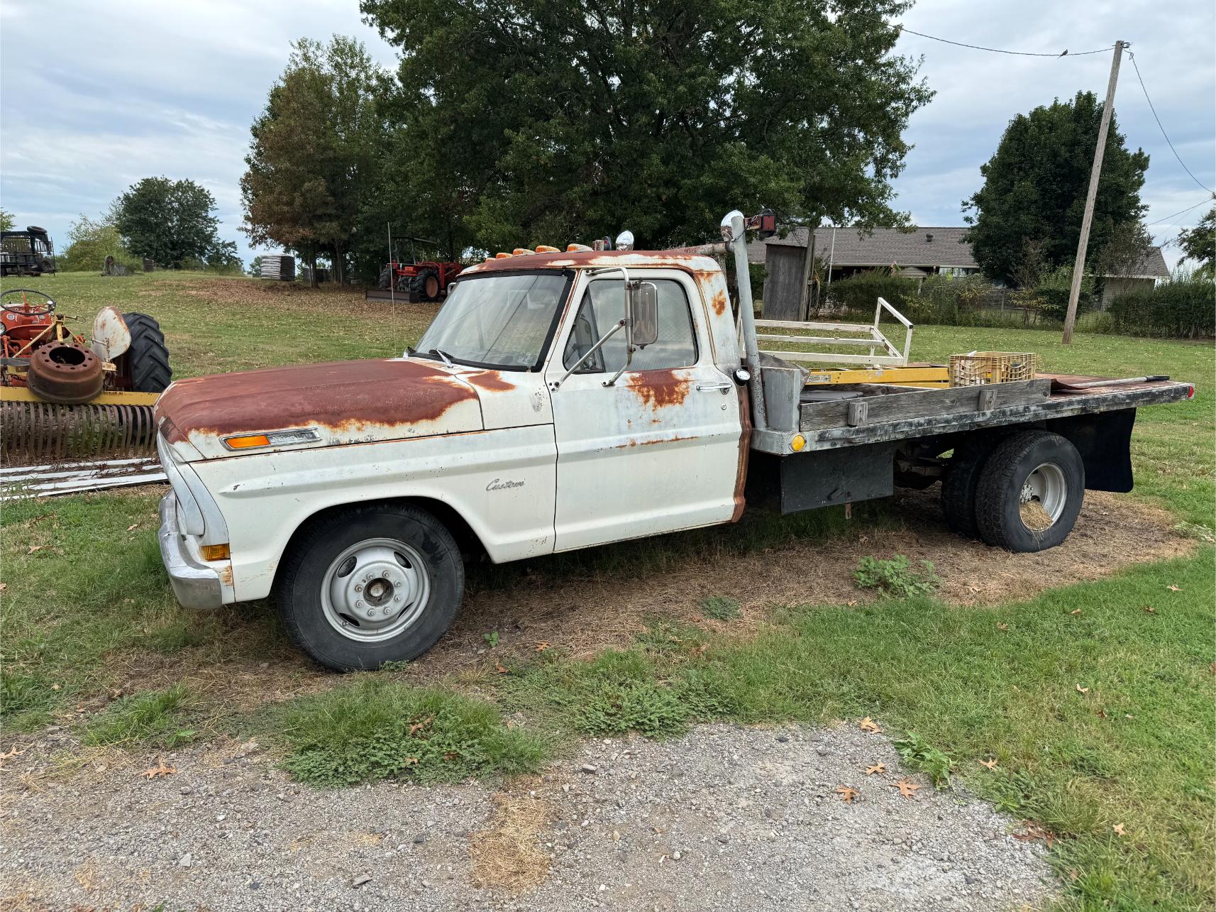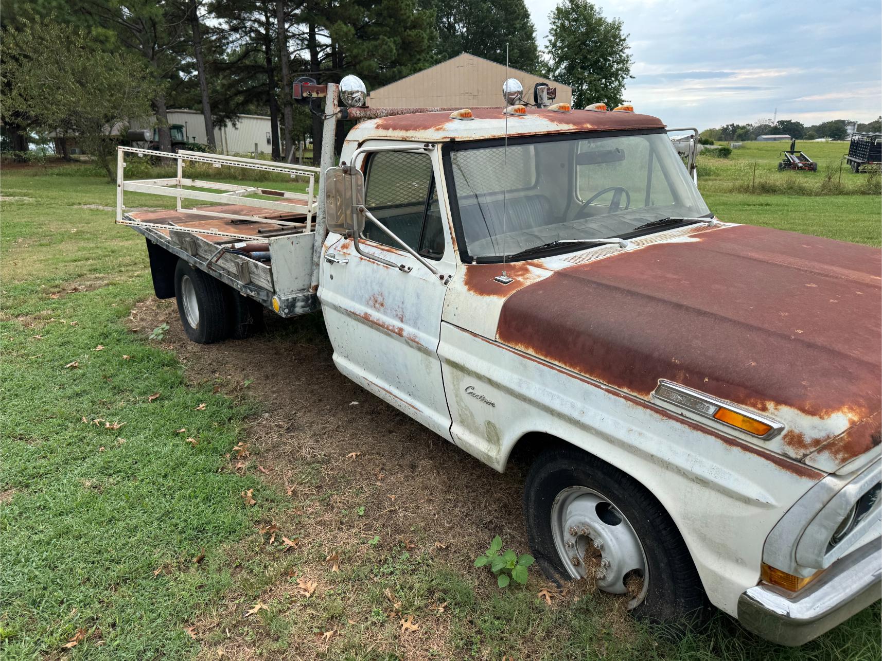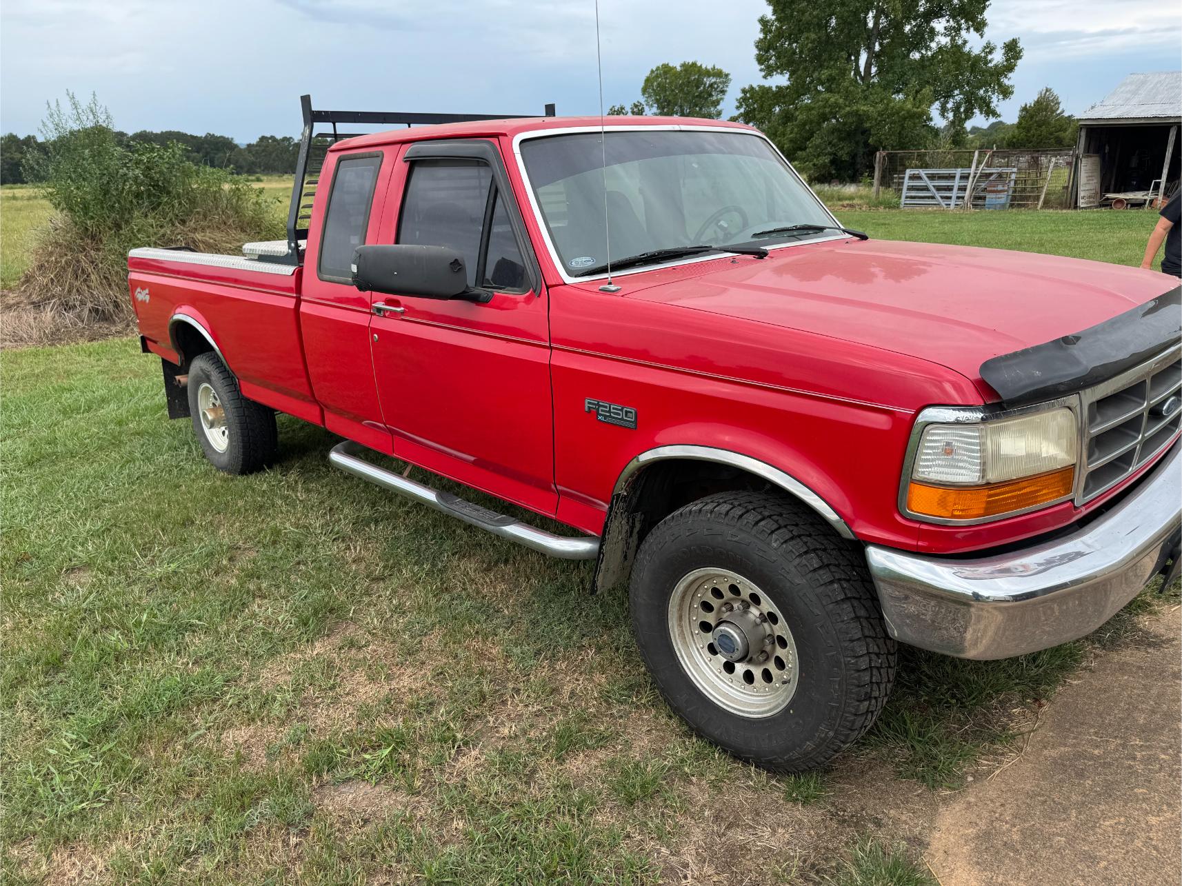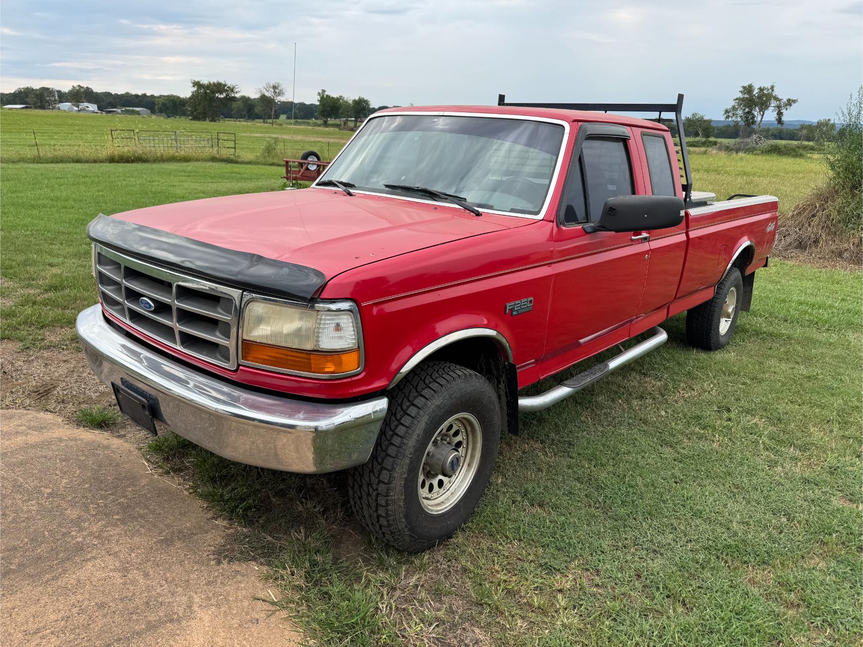 Farm Equipment, Trucks, Trailers, etc: Kubota M4900 Tractor w/Loader (500 hrs) – Mitsubishi BD2G Dozer – Ford 8N or 9N Tractor – 3 pt Box Blade – 10′ Bush Hog Brush Hog – 6′ 3 pt King Kutter Brush Hog – 3 pt 5′ Brush Hog – Drag Brush Hog – Land Pride Finish Mower – 3 pt Rear Fork – 3 pt Blade – 3 pt Post Hole Digger – 3 pt Angle Blade – 5′ 3 pt King Kutter Tiller – 3 pt Rock Rake – 3 pt Seeder – 3 pt Middle Buster – 6′ 3 pt Disk – 3 pt Rear Platform – 3 pt Cultivator – 1995 Ford F-250 4×4 Ext Cap Pickup (79,000 miles) – 1972 Ford F-350 Flat Bed Truck – 2001 Texas Bragg 20′ Gooseneck Trailer w/Ramp – 20′ Metal Gooseneck Trailer – 1991 Chaparral 20′ Stock Trailer – 18′ Metal Double Axle Trailer – 16′ Metal Car Hauler Trailer w/Winch – 16′ Metal Trailer – Metal Single Axle Trailer w/Racks – Honda 4-Wheeler (New Tires) – Honda Four Trax 4-Wheeler – Alum Semi V Bottom Boat – Fuel Tank on StandÂ
