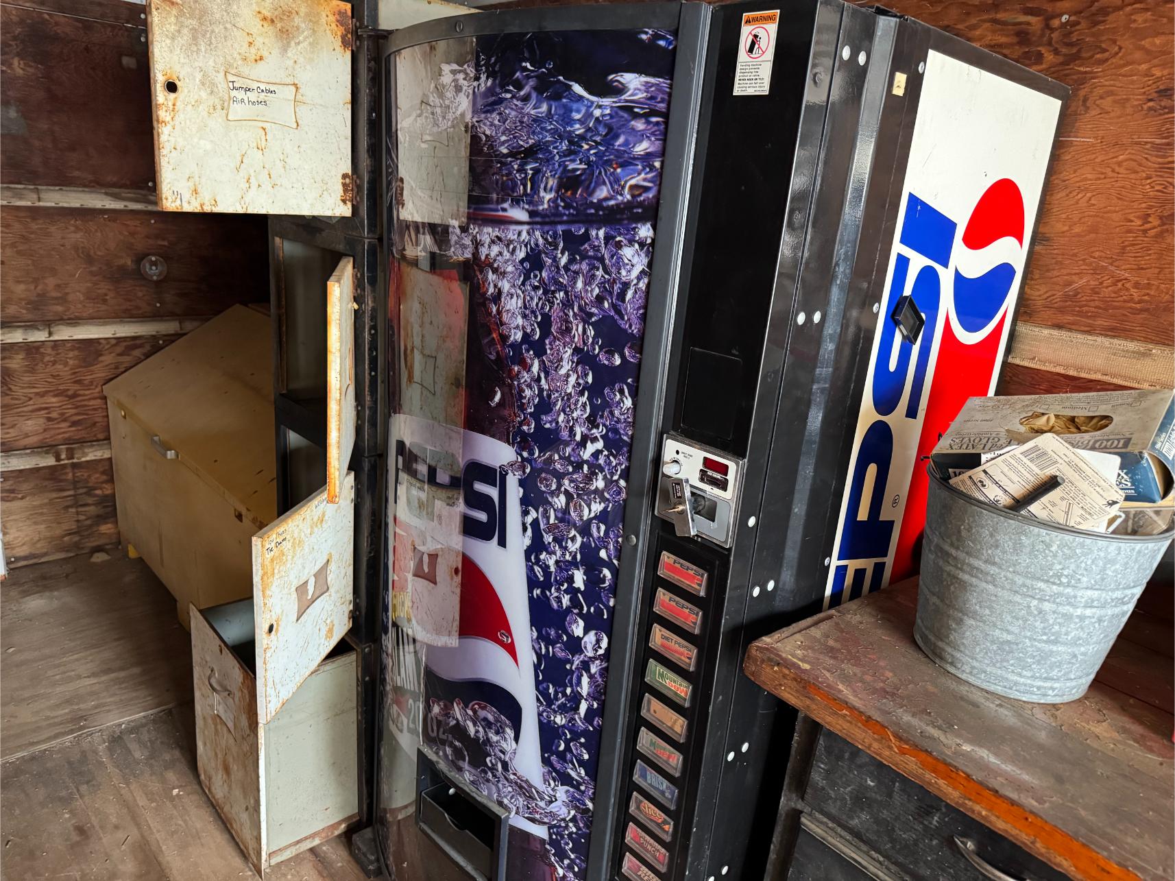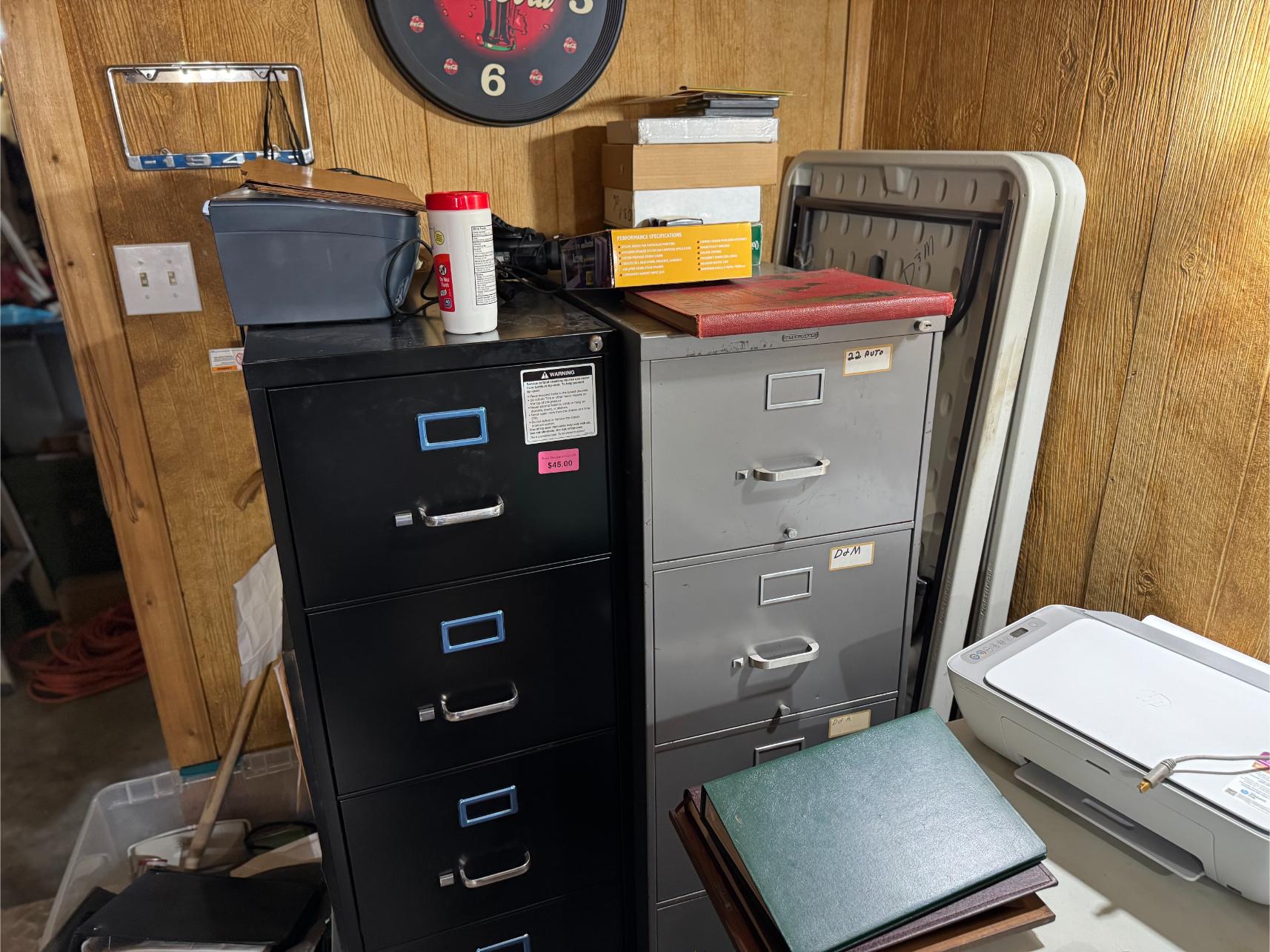 Household, Collectibles & Misc: Frigidaire Refrigerator (New) – Whirlpool Washer & Dryer – Microwave – Stereo – HP Copier/Printer – 32″ TV – Futon Bed – (2) Wardrobes – Mooncool 3-Wheel Bike – Swords – Knives – Pepsi Vending Machine – Tractor Seat Stool – Street Signs – 7Up Thermometer – New Levi’s Jeans – Cowboy Boots & Hats – Hat Shaper – Office Chairs – Lifetime Folding Tables – Appx 20 Lifetime Folding Chairs – Appx 60 Metal Folding Chairs – Home Theater System – Ammo Boxes