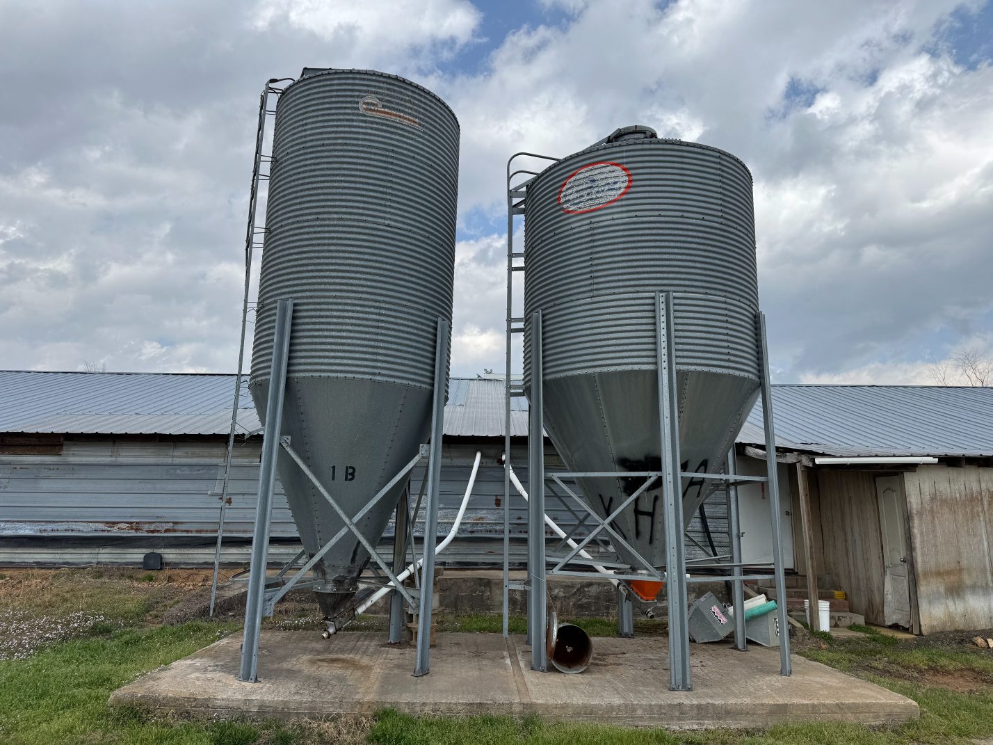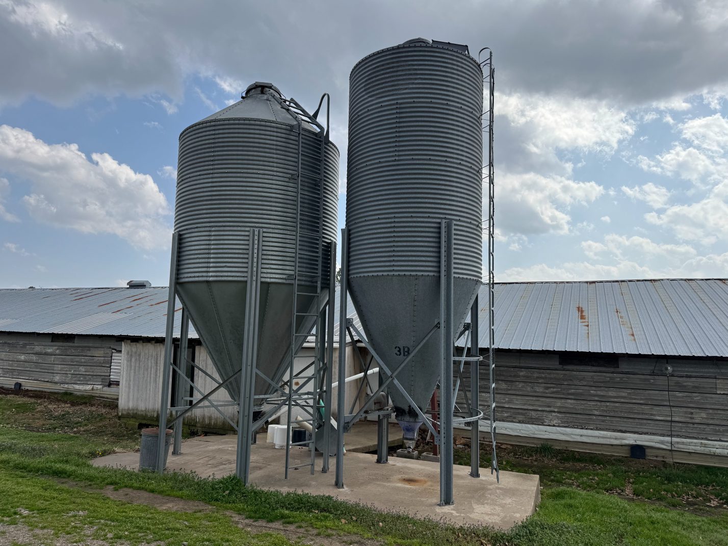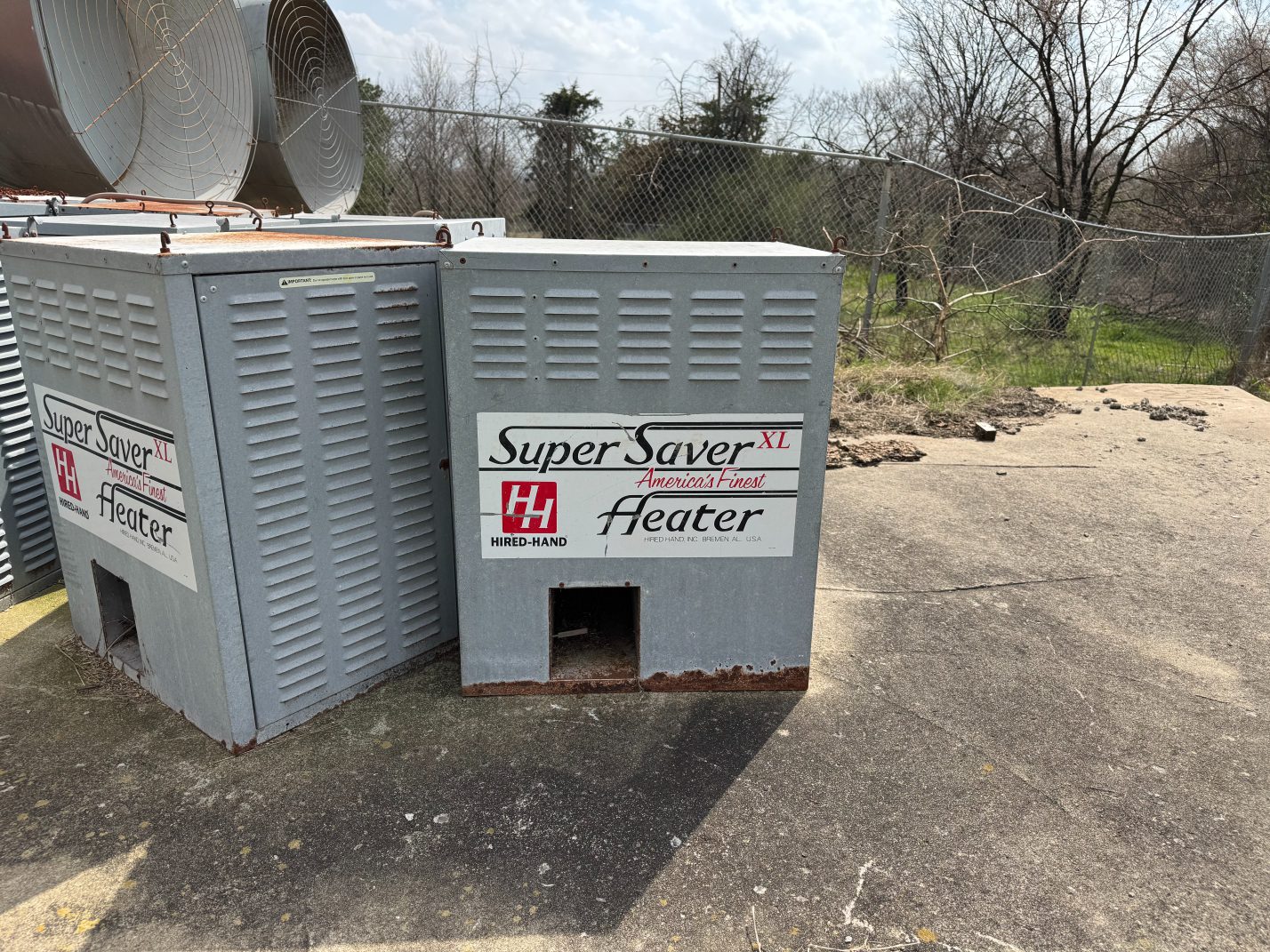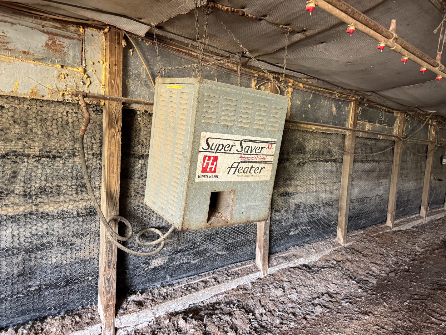 Poultry Houses/Supplies/Equipment: (2) 40’x400’ Poultry Houses (To Be Torn Down and Removed) – (6) Grain Bins – Hired-Hand Super Saver XL Heaters – Feeders – Poultry House Generator W/ Fuel Tank (Hours Read 585) – New Parts (Motors, Feeders, Etc.) – Poultry House Fans – Cumberland Integra Integrated Management System (Relay Panel) – LED Dimmer – Cumberland Expert SB Back-Up Safety Relay Box