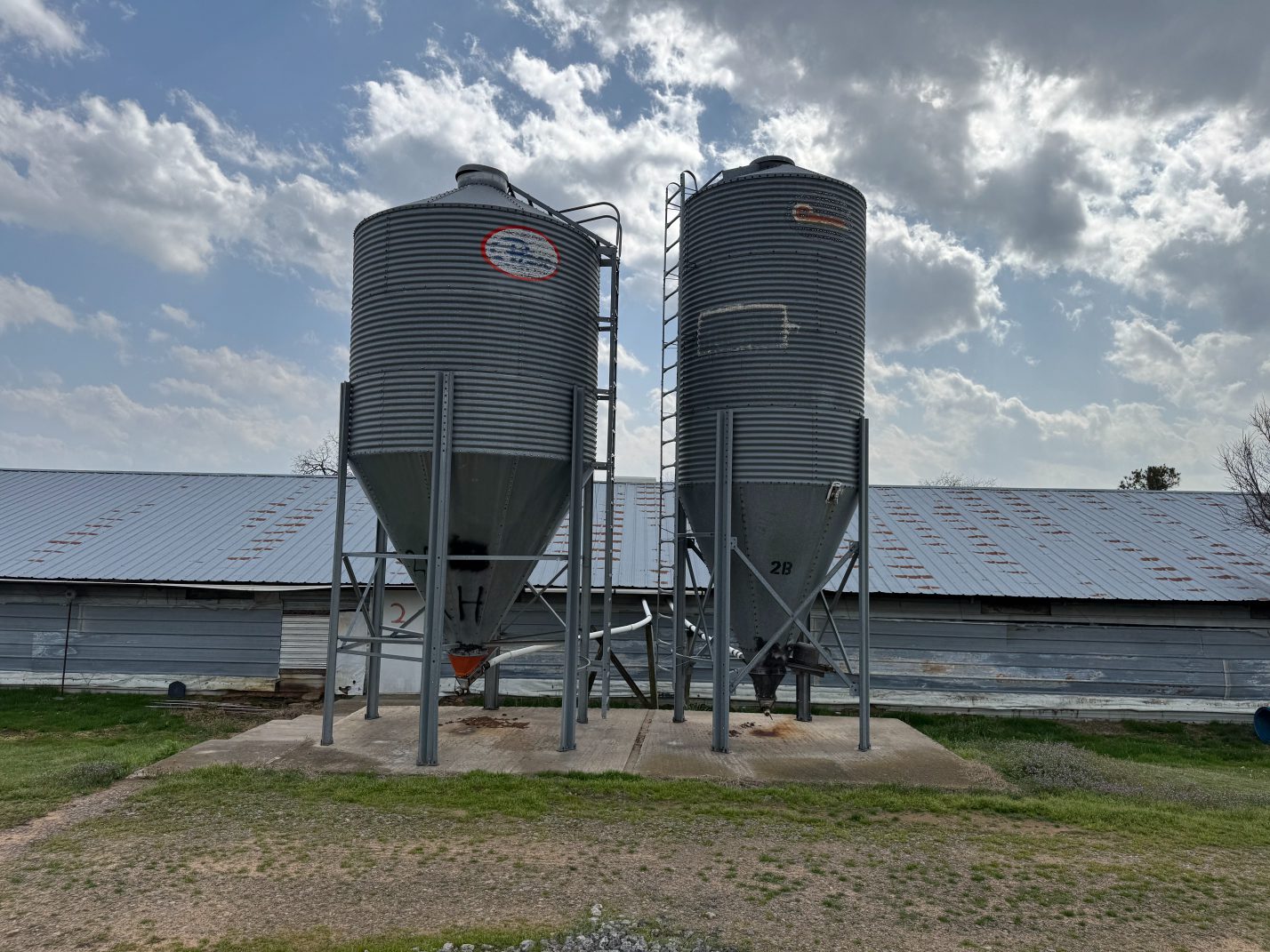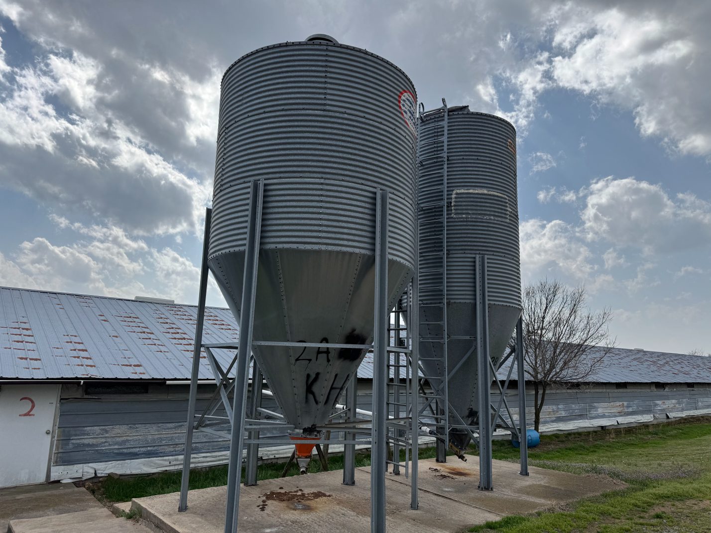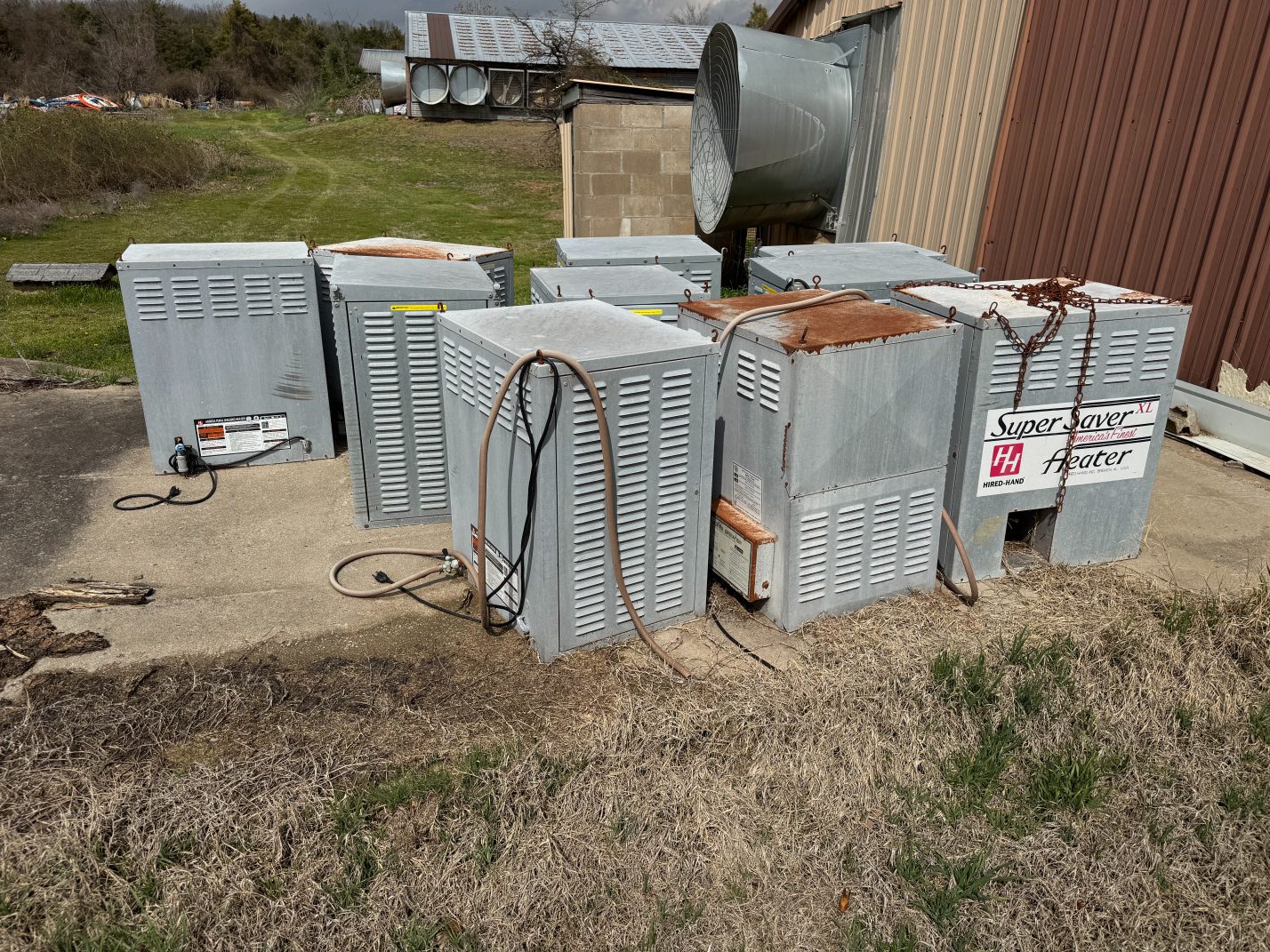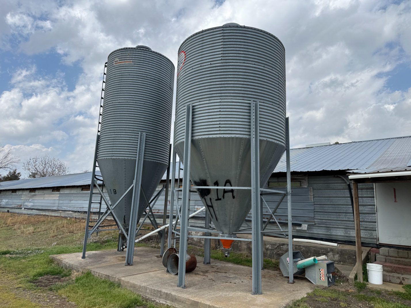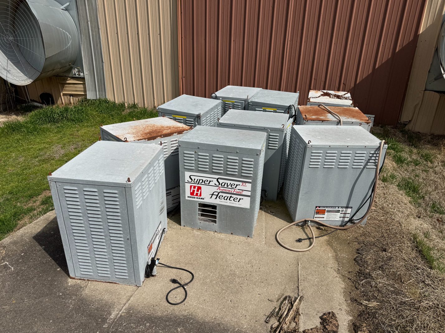 Poultry Houses/Supplies/Equipment: (2) 40’x400’ Poultry Houses (To Be Torn Down and Removed) – (6) Grain Bins – Hired-Hand Super Saver XL Heaters – Feeders – Poultry House Generator W/ Fuel Tank (Hours Read 585) – New Parts (Motors, Feeders, Etc.) – Poultry House Fans – Cumberland Integra Integrated Management System (Relay Panel) – LED Dimmer – Cumberland Expert SB Back-Up Safety Relay Box