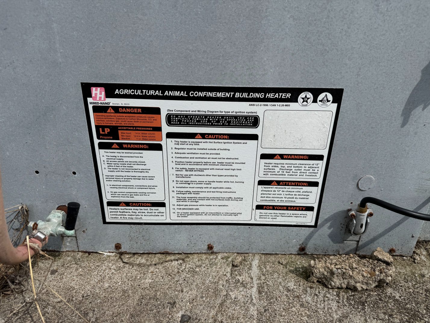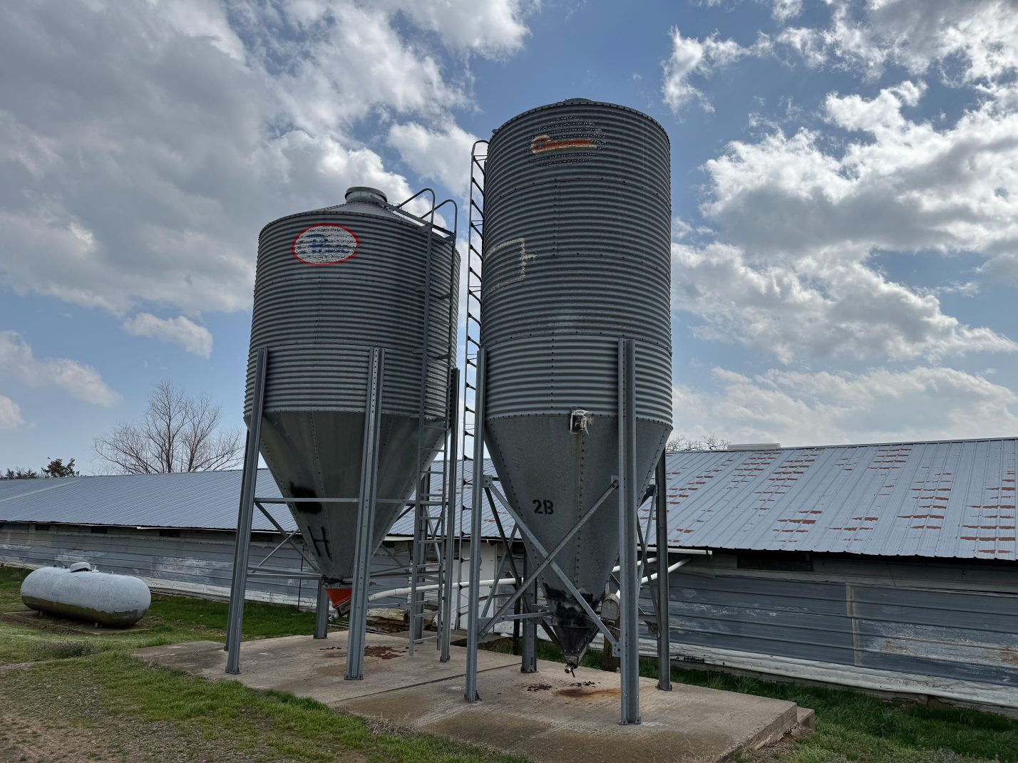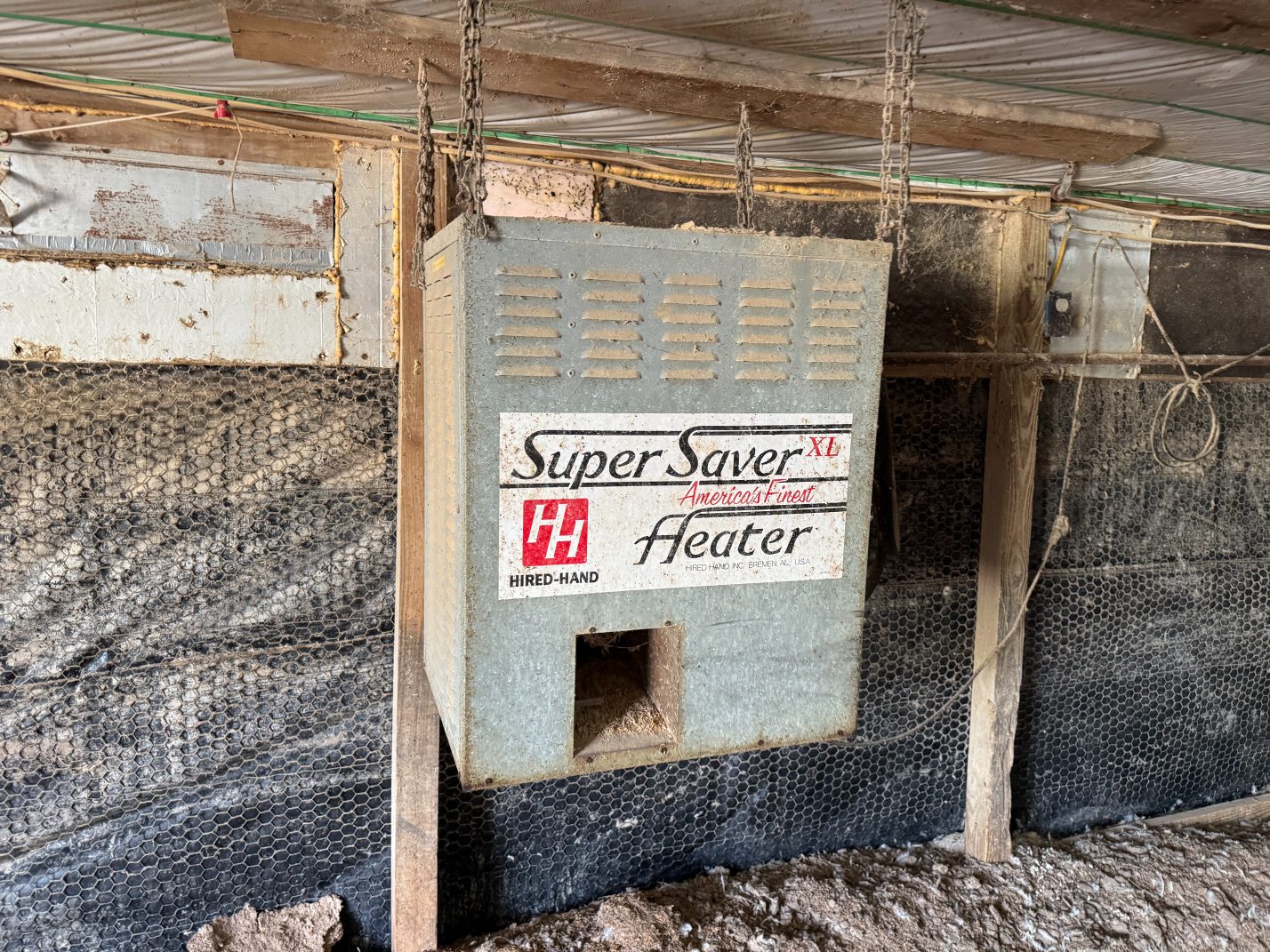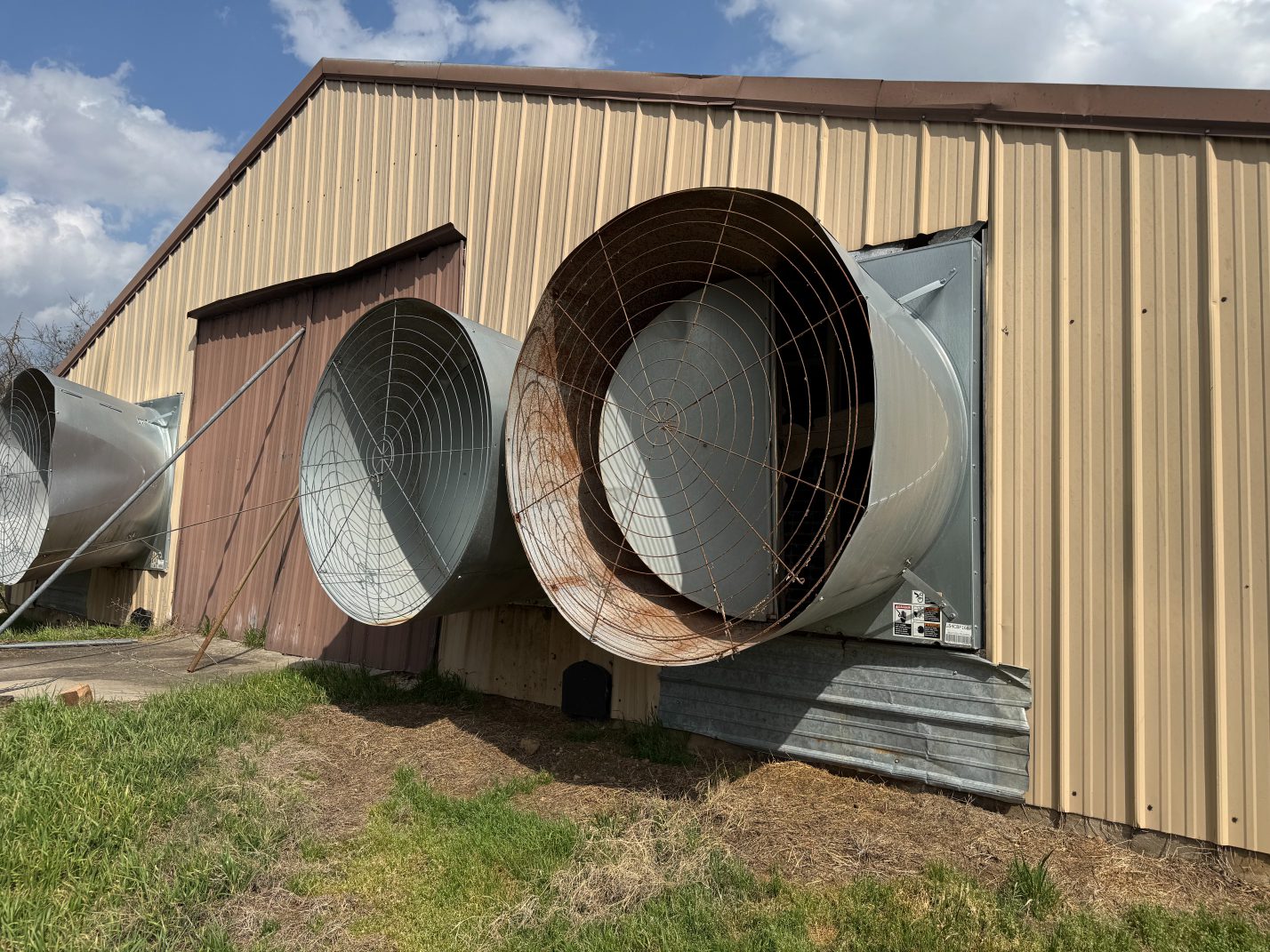 Poultry Houses/Supplies/Equipment: (2) 40’x400’ Poultry Houses (To Be Torn Down and Removed) – (6) Grain Bins – Hired-Hand Super Saver XL Heaters – Feeders – Poultry House Generator W/ Fuel Tank (Hours Read 585) – New Parts (Motors, Feeders, Etc.) – Poultry House Fans – Cumberland Integra Integrated Management System (Relay Panel) – LED Dimmer – Cumberland Expert SB Back-Up Safety Relay Box