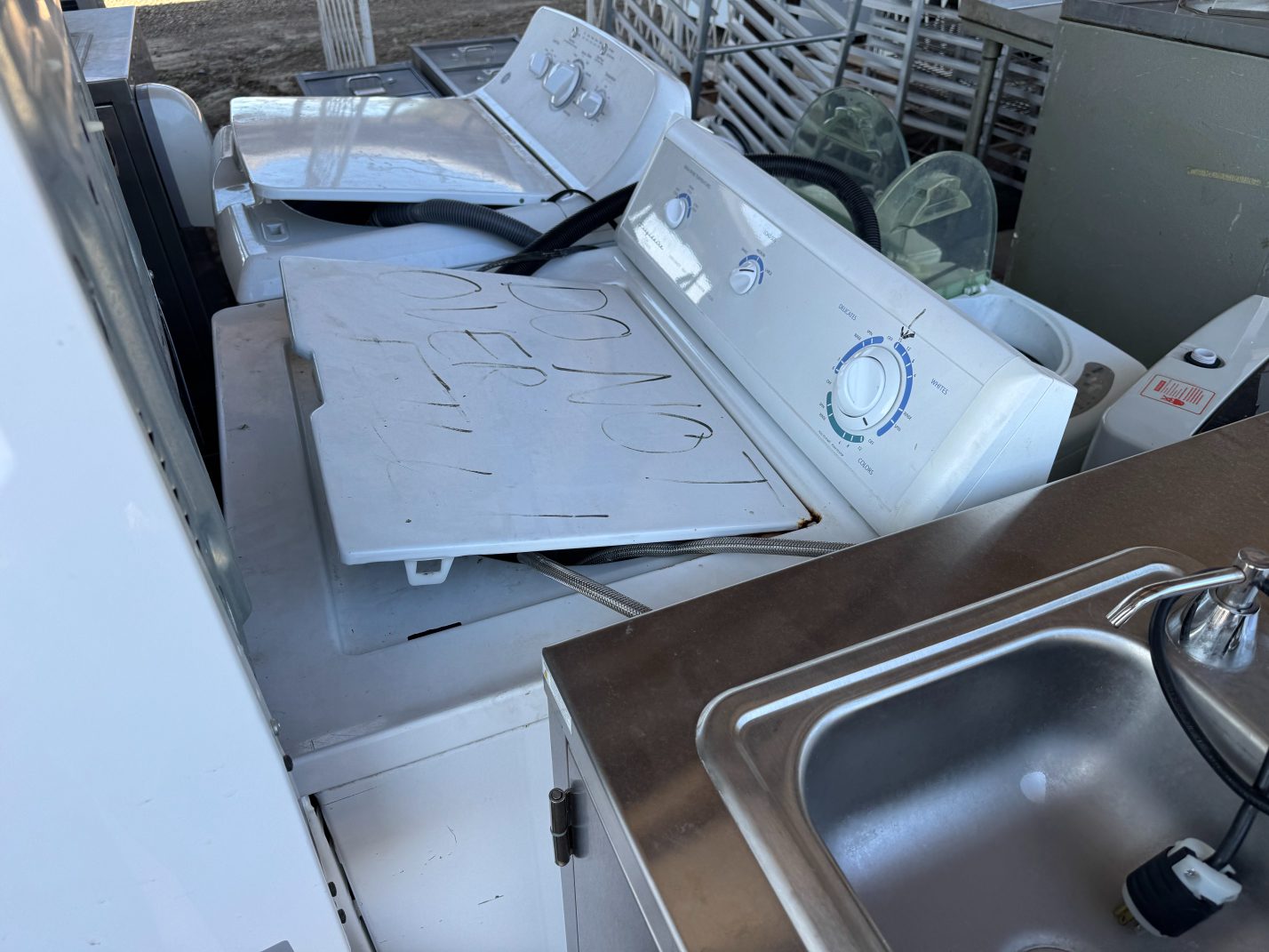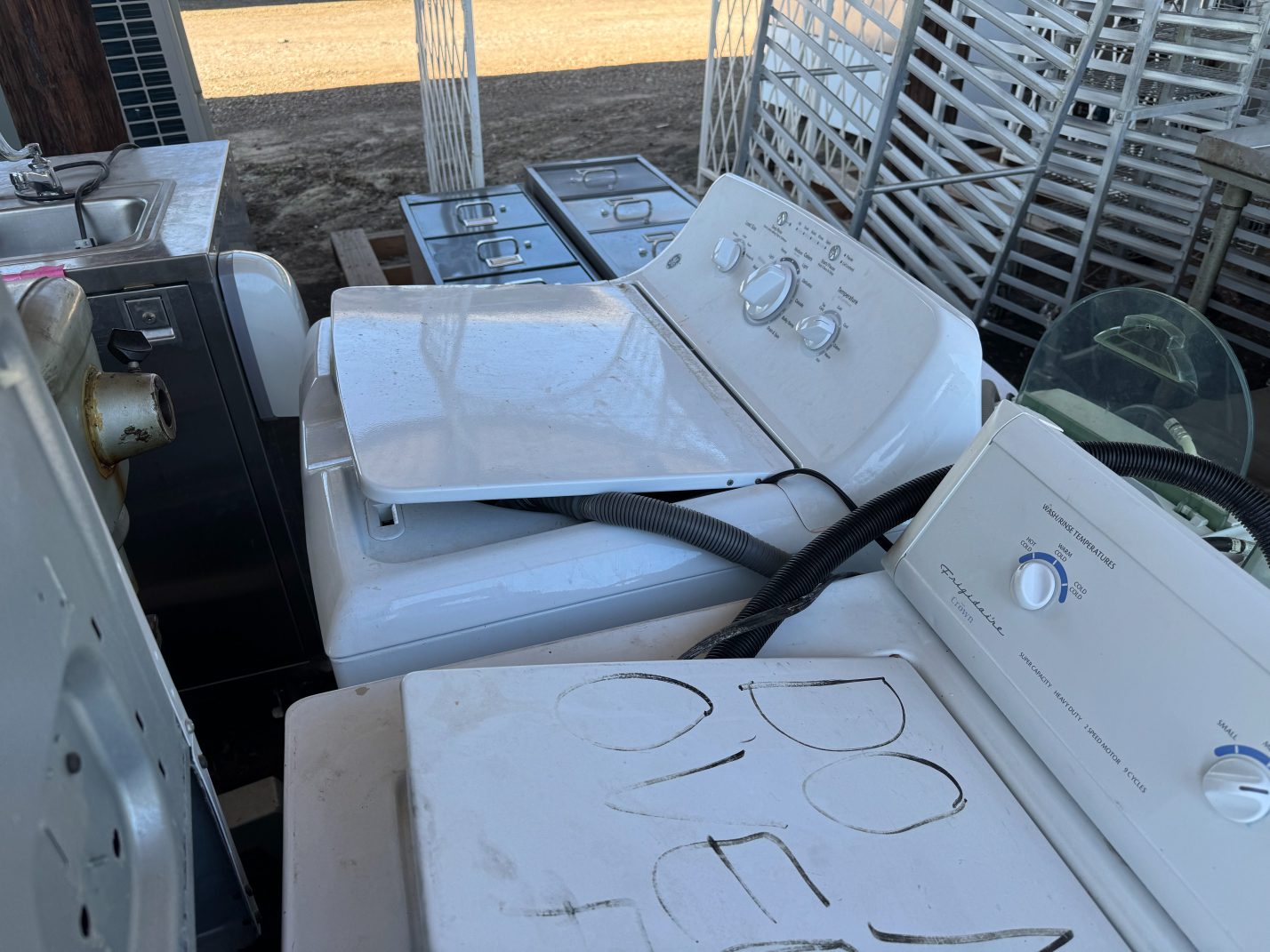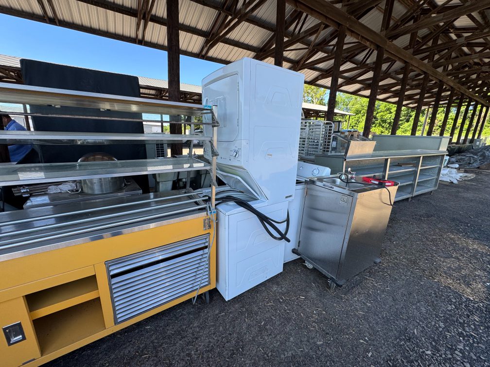 Restaurant:Â (2) Hobart Mixers – Beverage Air Reach-in Cooler – 12′ SS Bar – SS Roll Around Buffet – SS Sinks – 12′ L Shaped SS Table – SS Tables – Tyson SS Serving Cart – Alum Bread Carts – Refrigerators – Chest Freezers – Elec Cook Stoves – SS Dishwashing Equipment – Portable Lunch Tables – Stackable Washer & Dryer – RV Washing Machines