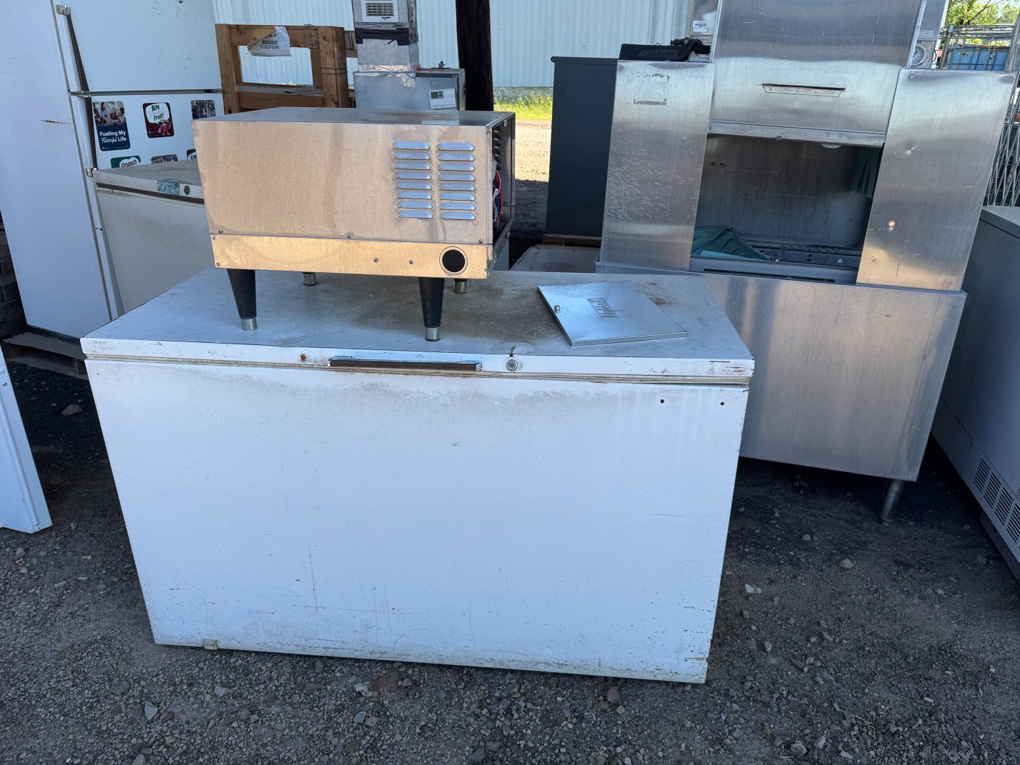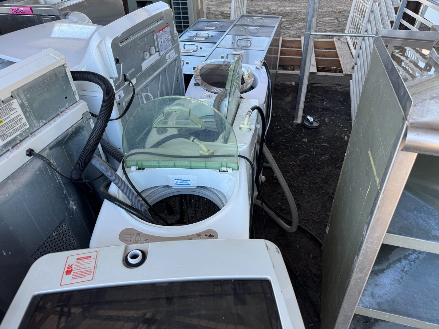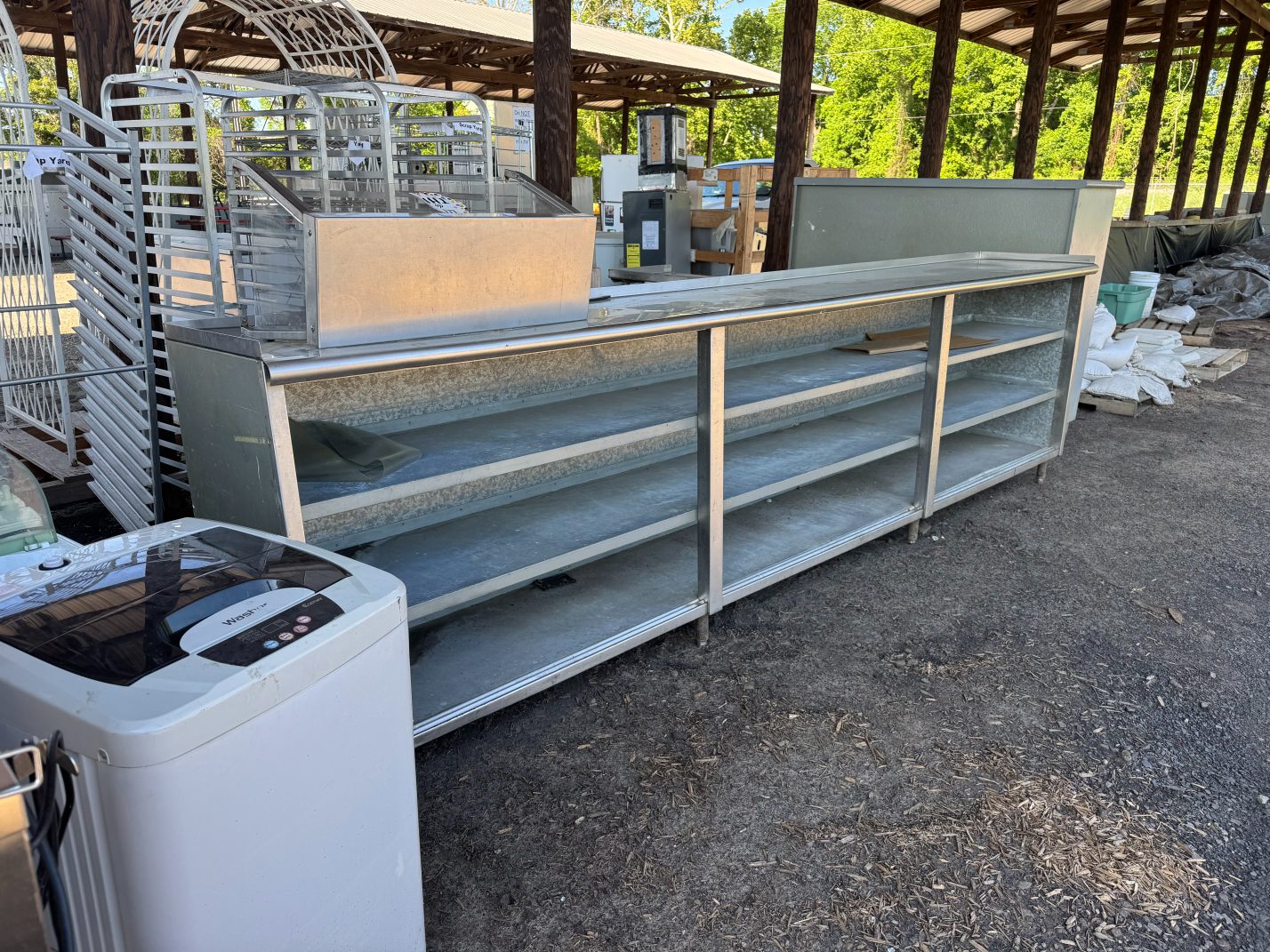 Restaurant:Â (2) Hobart Mixers – Beverage Air Reach-in Cooler – 12′ SS Bar – SS Roll Around Buffet – SS Sinks – 12′ L Shaped SS Table – SS Tables – Tyson SS Serving Cart – Alum Bread Carts – Refrigerators – Chest Freezers – Elec Cook Stoves – SS Dishwashing Equipment – Portable Lunch Tables – Stackable Washer & Dryer – RV Washing Machines