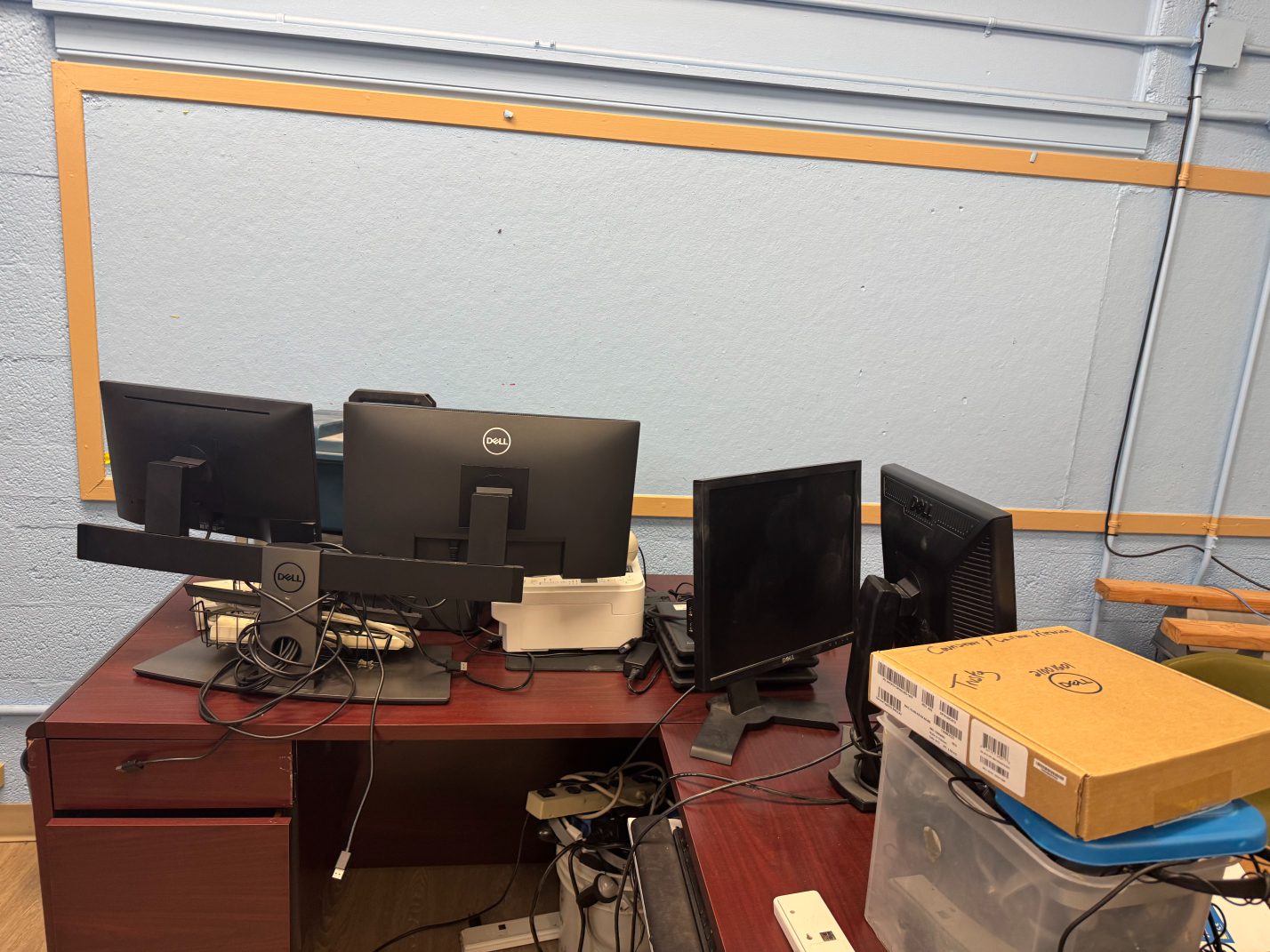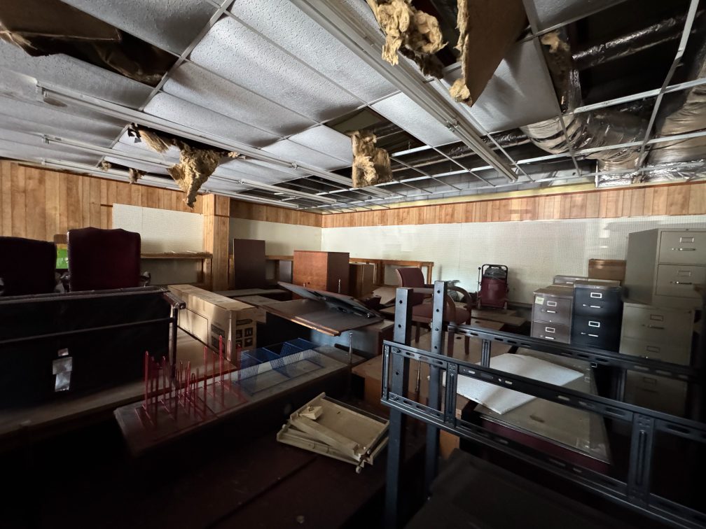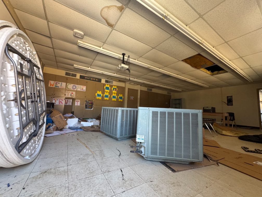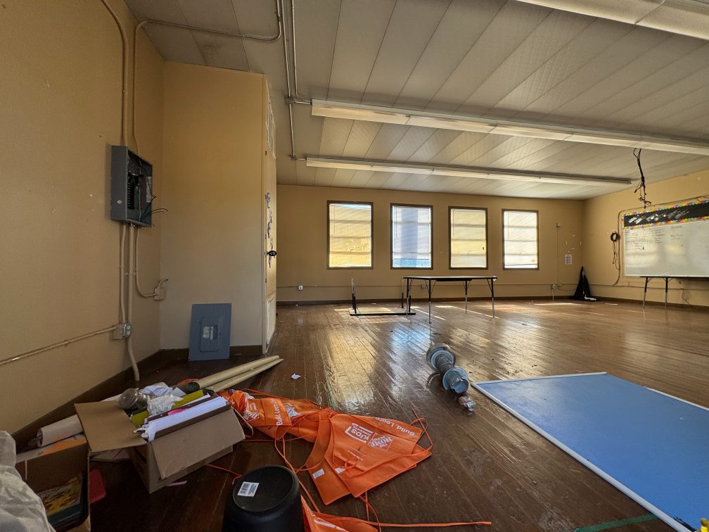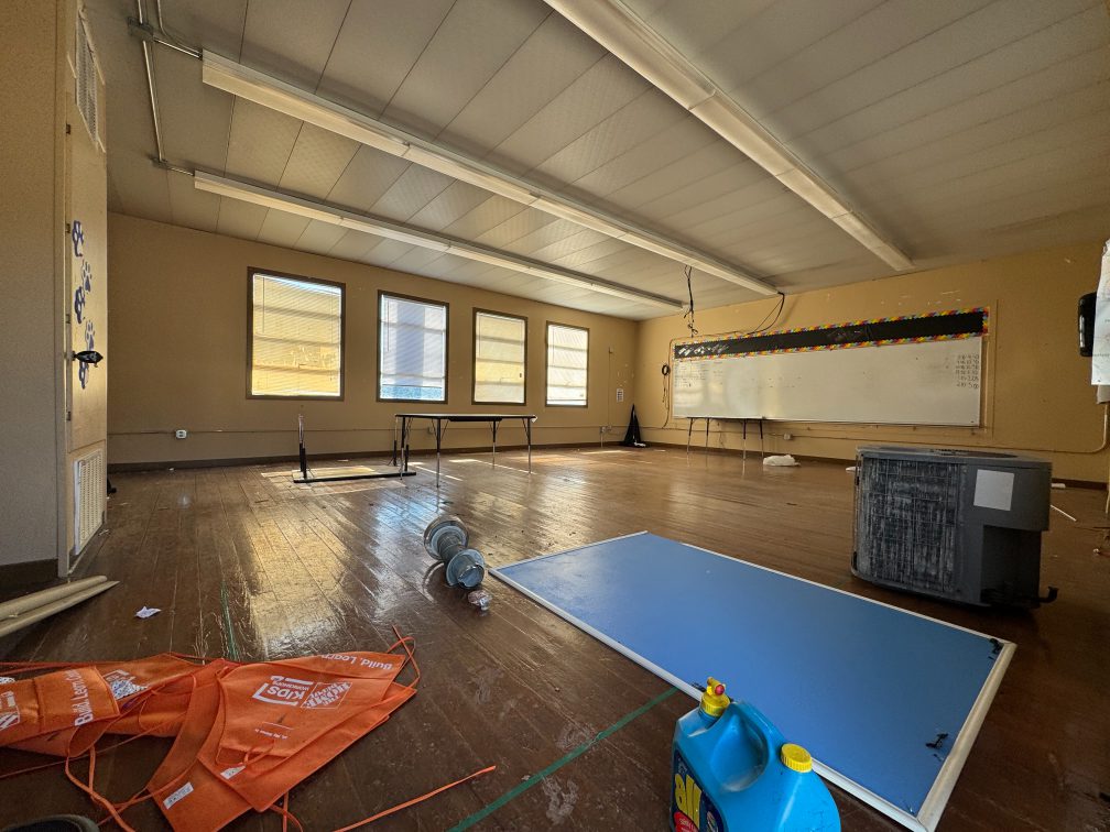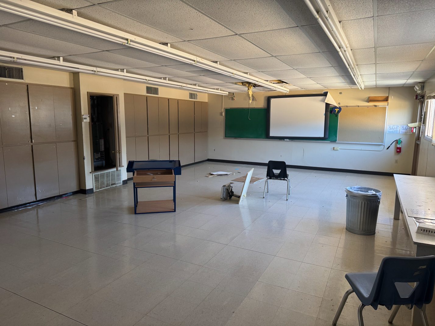 12′ Buffet Bar – True SS 2-Door Refrigerator – (2) USA Range 6-Burner Gas Stoves – 3-Vat SS Sink – SS Dishwashing Table w/Disposal – SS Table w/Pot Rack & Can Opener – SS Tables – Cafeteria Tables – Desks – Chairs – Metal Shelves – Electronics (Computers, Printers, Projectors) – Metal & Rubbermaid Cabinets – File Cabinets – Roll Around Shelves – Portable Stairs – Tables