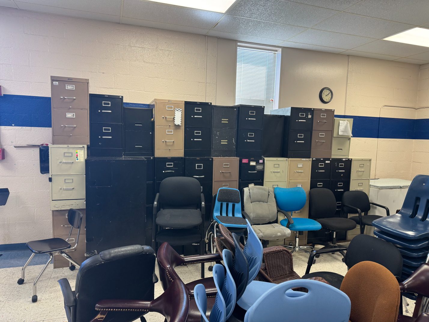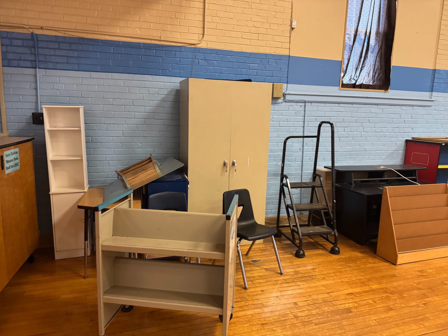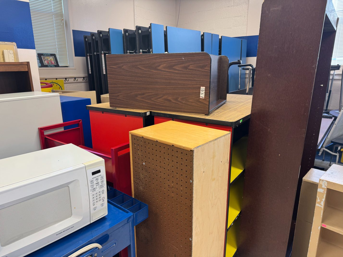 Furniture & More:Â Challenge Champion 305 XD Paper Cutter – Challenge Paper Drilling Machine – Inter-lake Model 53A Stitcher – Rosback Auto Stitcher – Uline Picnic Tables – Commercial Entry Doors – Alum Showcases – Kid’s & Office Chairs – Desks – Roll Around Tables – Lockers – Bookshelves – Computer Cabinets – File Cabinets – Lateral File Cabinets – Paper Towel Dispenser – Day Care Items – Toys – Wheelchairs – Speed Scrubber – Clark Floor Cleaner – Floor Buffers/Polishers – Carpet Cleaners – Drums – Musical Equipment – Exercise Equipment – Uniforms