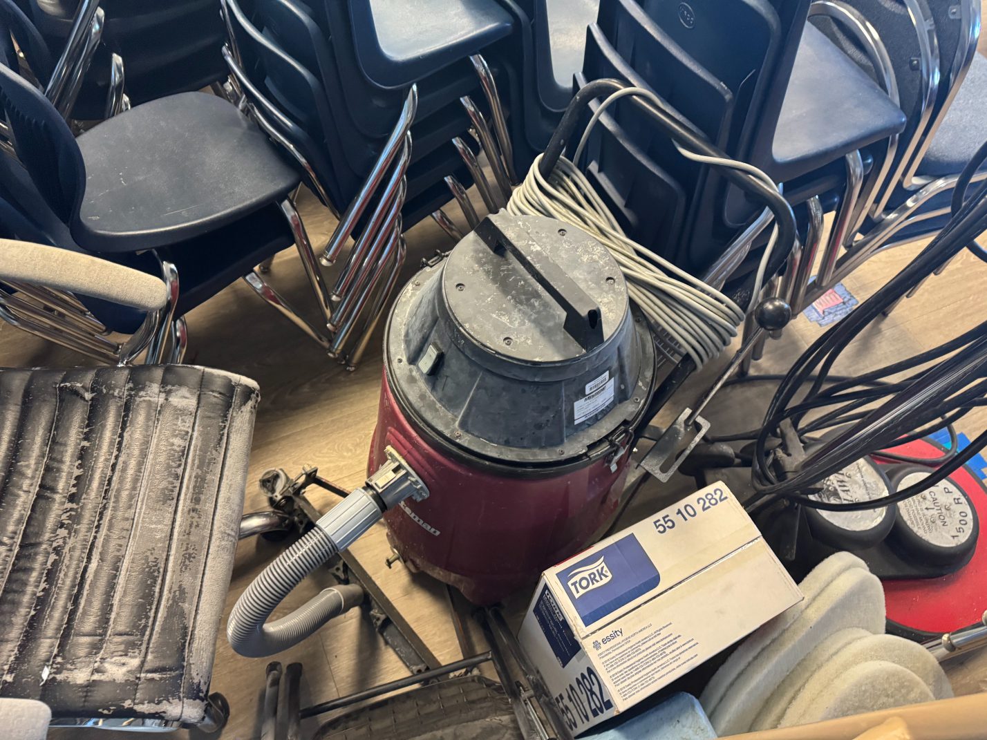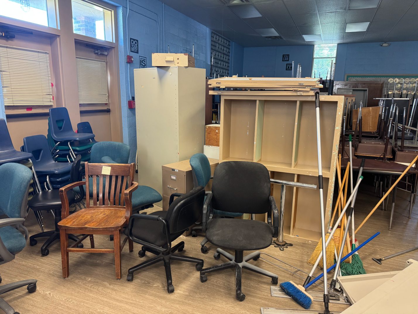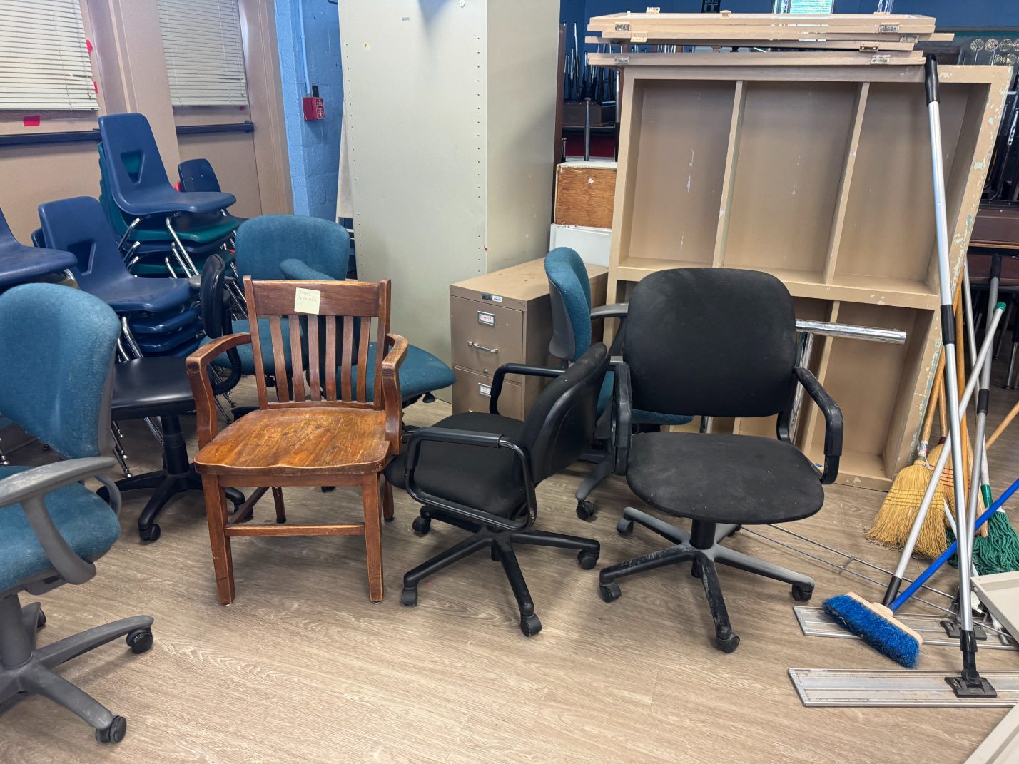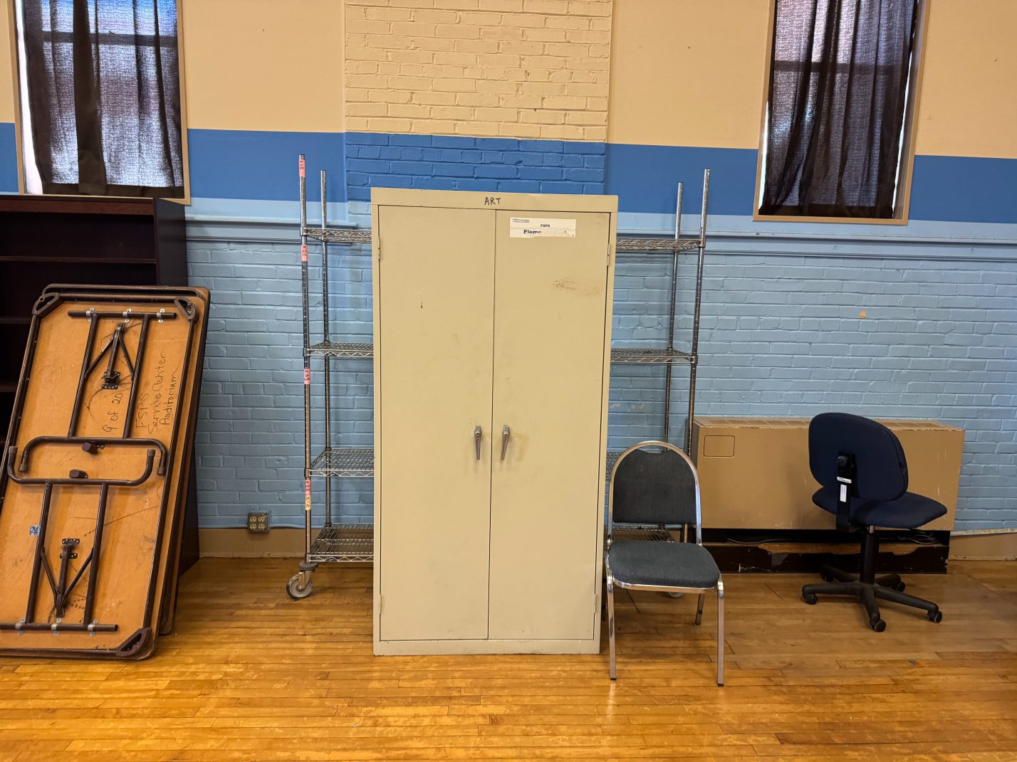 Furniture & More:Â Challenge Champion 305 XD Paper Cutter – Challenge Paper Drilling Machine – Inter-lake Model 53A Stitcher – Rosback Auto Stitcher – Uline Picnic Tables – Commercial Entry Doors – Alum Showcases – Kid’s & Office Chairs – Desks – Roll Around Tables – Lockers – Bookshelves – Computer Cabinets – File Cabinets – Lateral File Cabinets – Paper Towel Dispenser – Day Care Items – Toys – Wheelchairs – Speed Scrubber – Clark Floor Cleaner – Floor Buffers/Polishers – Carpet Cleaners – Drums – Musical Equipment – Exercise Equipment – Uniforms