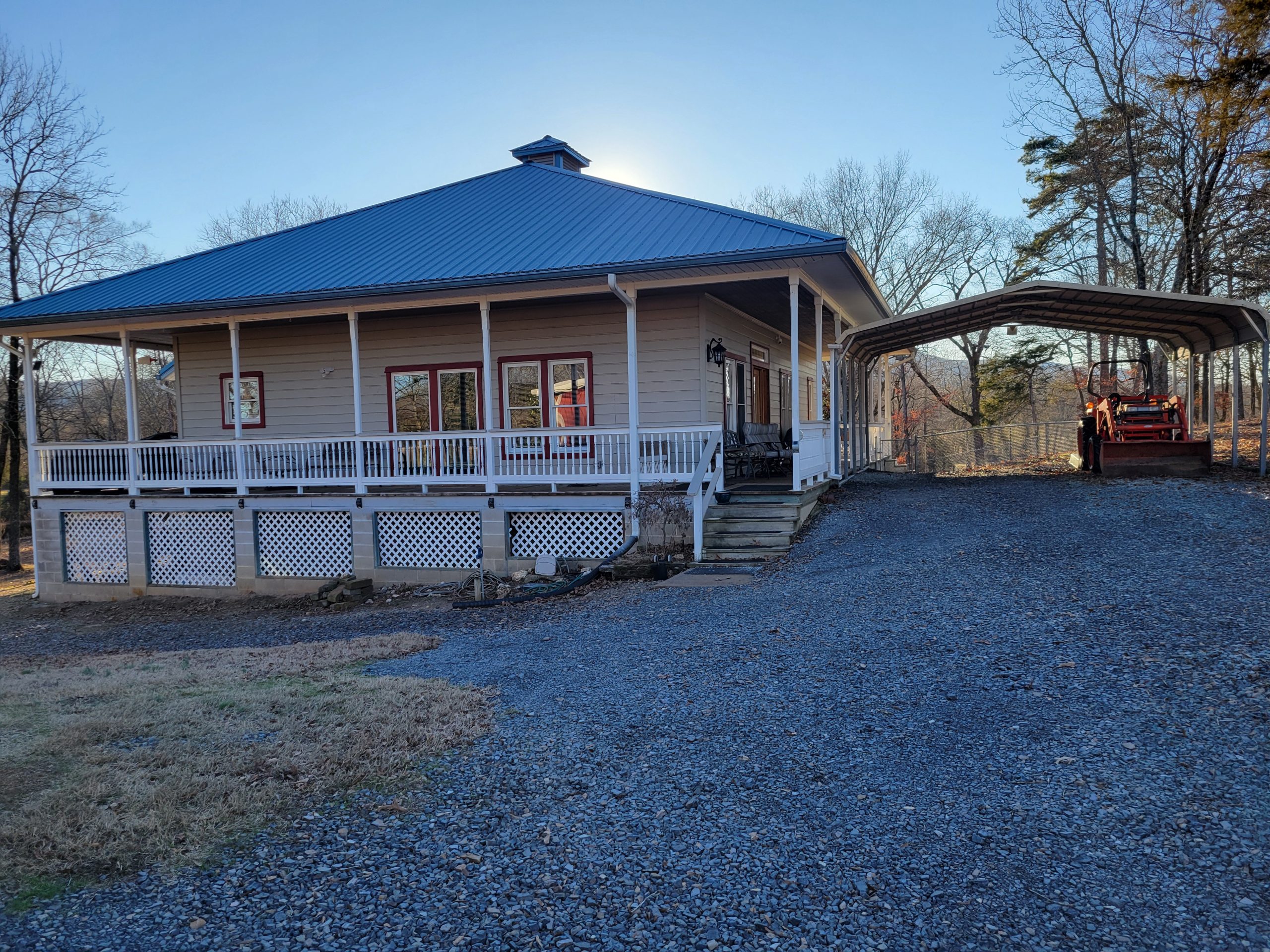 This incredible retreat-like property features an approximately 1,607 sq ft, 3-bedroom, 2-bath home with a spacious open kitchen/living area and a wrap-around deck perfect for taking in the serene views. The home boasts a durable metal roof and rural water, complemented by a well for watering plants.